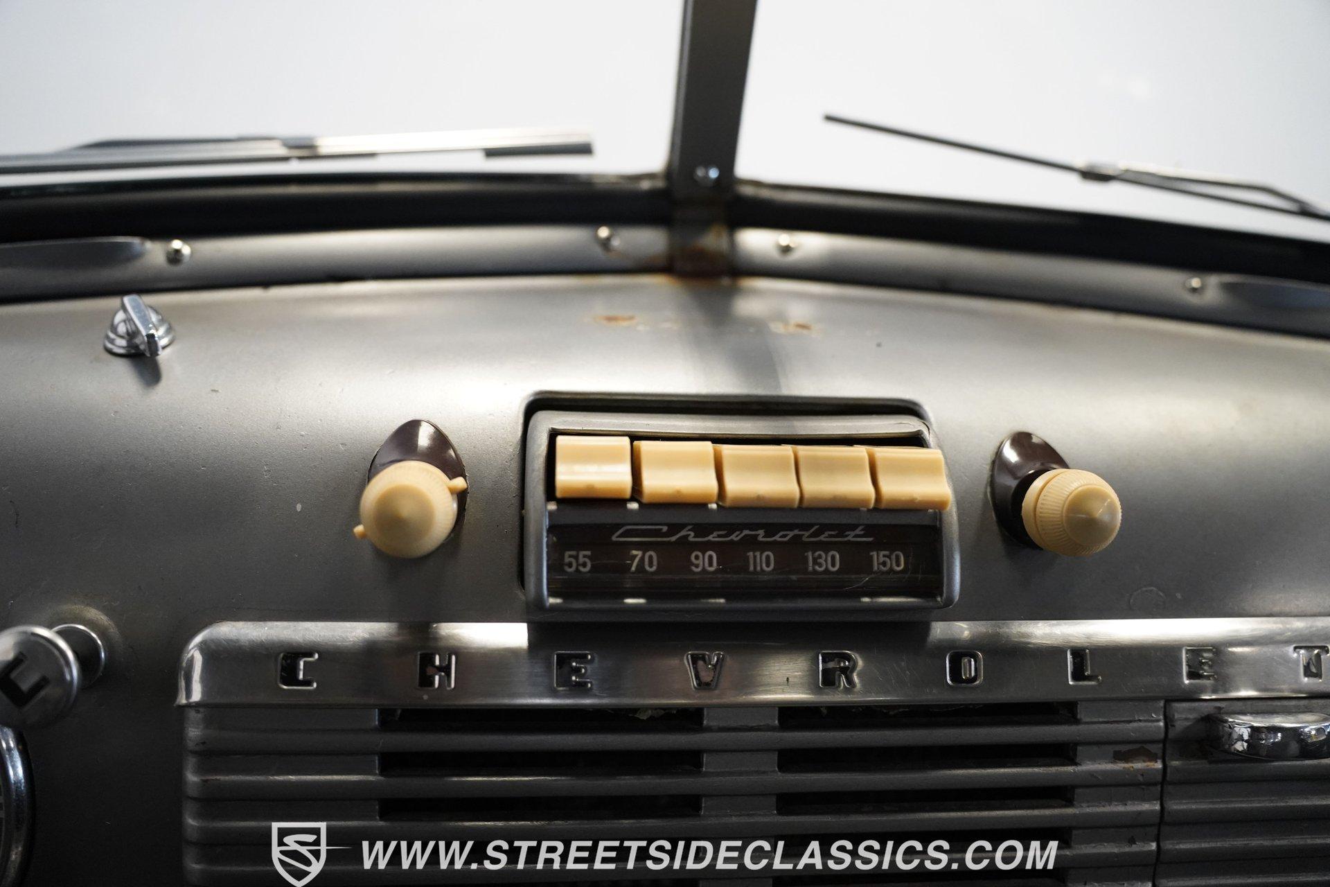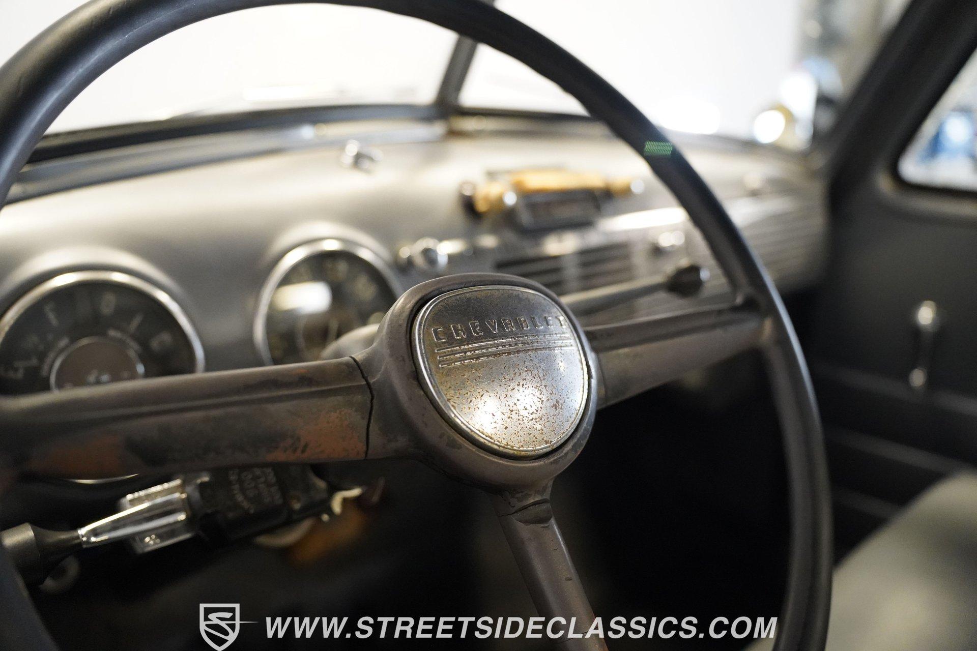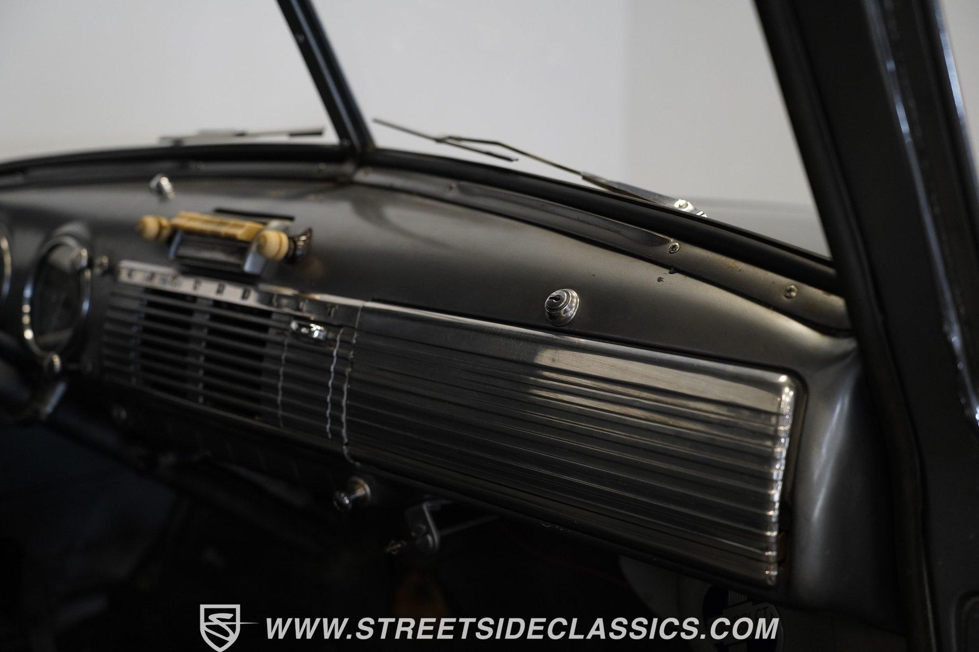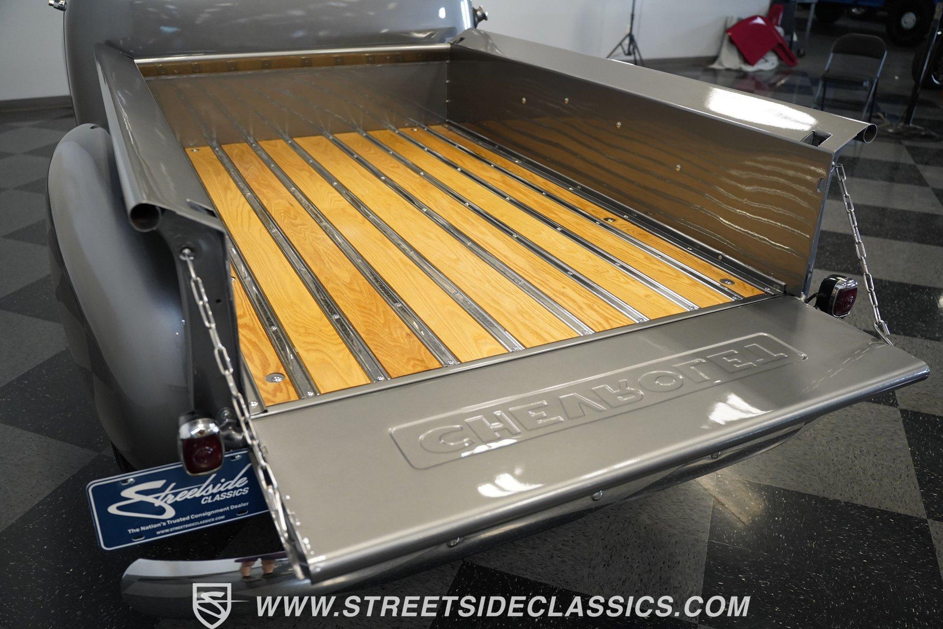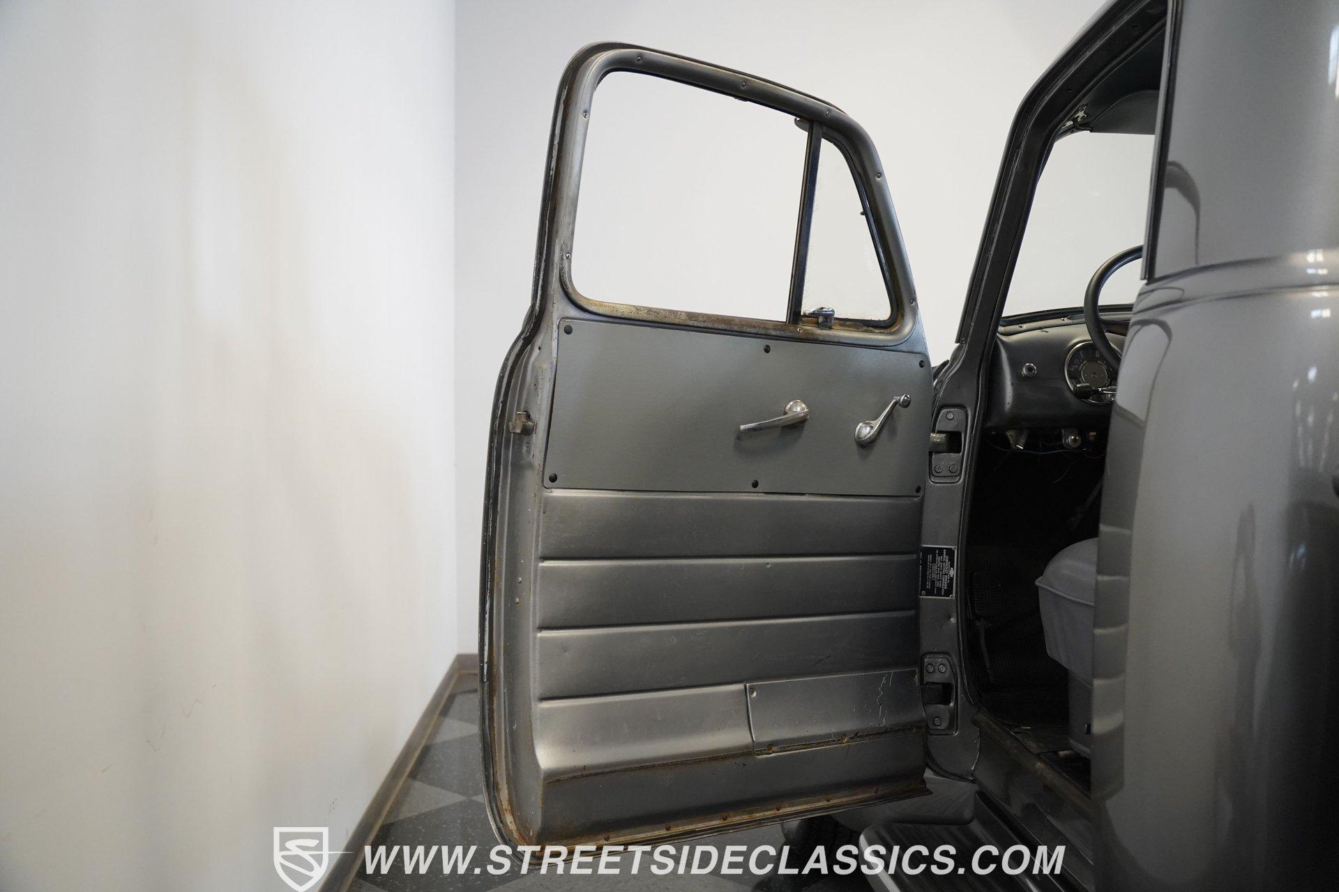 Silver metallic flake shines on this 1950 Chevrolet 3100 pickup truck, a true street cruiser with show quality details. Chrome accents grab your attention from every angle - from the bold Chevrolet emblem on the front grille to the substantial chrome bumpers front and rear. The custom woodgrain bed with polished chrome trim adds a custom touch that truck guys appreciate. Those 15" Chrome Cragar SS wheels wrapped in 235/70R15 BFG Radial TA tires look right at home under the fenders of this classic hauler. Gray vinyl wraps the bench seat inside this 1950 Chevrolet 3100, matched by gray door panels for a clean, coordinated interior. The dash houses the factory instrument cluster giving you all the vital info at a glance. The three-on-the-tree shifter juts from the column, controlling the 3-speed manual transmission with old-school cool. Original AM radio and simple controls for hazards, headlights, and brake release maintain the truck's authentic vibe. Vinyl flooring keeps things simple and sturdy - perfect for a truck built to cruise and show. A 235 cubic inch inline-six engine powers this 1950 Chevrolet 3100 pickup truck. The clean engine bay shows attention to detail with the black firewall providing contrast. The 3-speed manual transmission connects to an upgraded 80's-90's S10 10-bolt rear end for improved durability. Dual remote oil filters and an alternator upgrade add modern reliability for weekend cruising. Front disc brakes improve stopping power, while the I-beam front suspension with leaf springs and solid axle rear maintain the truck's authentic feel. A single exhaust with glasspack style muffler adds a subtle rumble when you hit the gas. HIGHLIGHTS: 235 I6 Engine 3-Speed Manual Transmission Front Disc Brakes I-Beam With Leaf Springs Front Suspension Solid Axle With Leaf Springs Rear Suspension 10-Bolt Rear End (80's-90's S10) Dual Remote Oil Filters Alternator Upgrade Single Exhaust With Glasspack Muffler Silver Metallic Flake Paint 15" Chrome Cragar SS Wheels 235/70R15 BFG Radial TA Tires Chrome Front And Rear Bumpers Woodgrain Bed With Chrome Accents Chrome "3100" Emblem Gray Interior With Bench Seat Column-Mounted Shifter Original Instrument Cluster AM Radio Vinyl Flooring Custom trucks like this 1950 Chevrolet 3100 offer the best of both worlds, classic looks with upgraded performance. The inline-six engine, disc brakes, and upgraded rear end let you drive and enjoy this truck while the silver metallic paint, chrome accents, and custom details make it a standout at any car show. Call today!