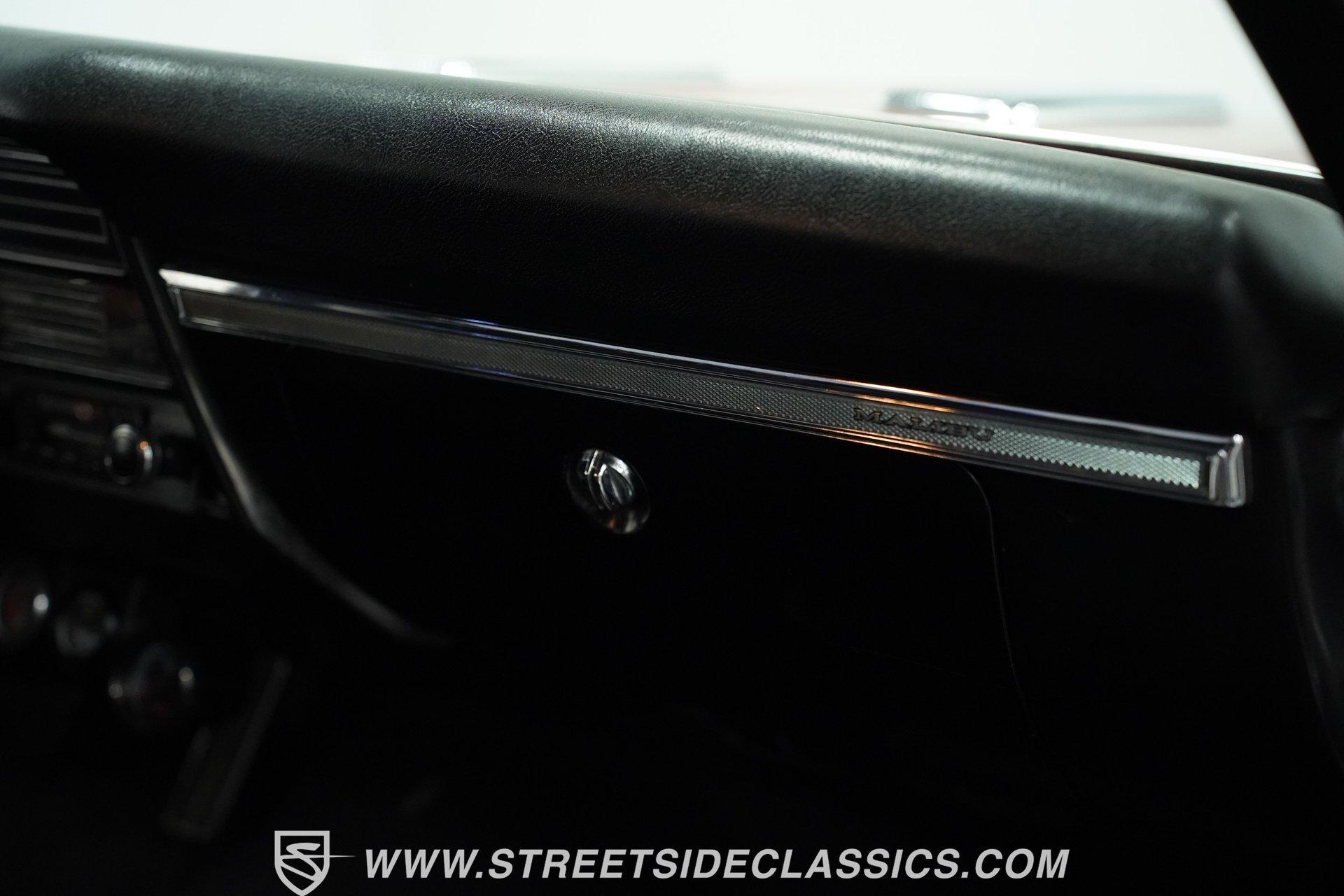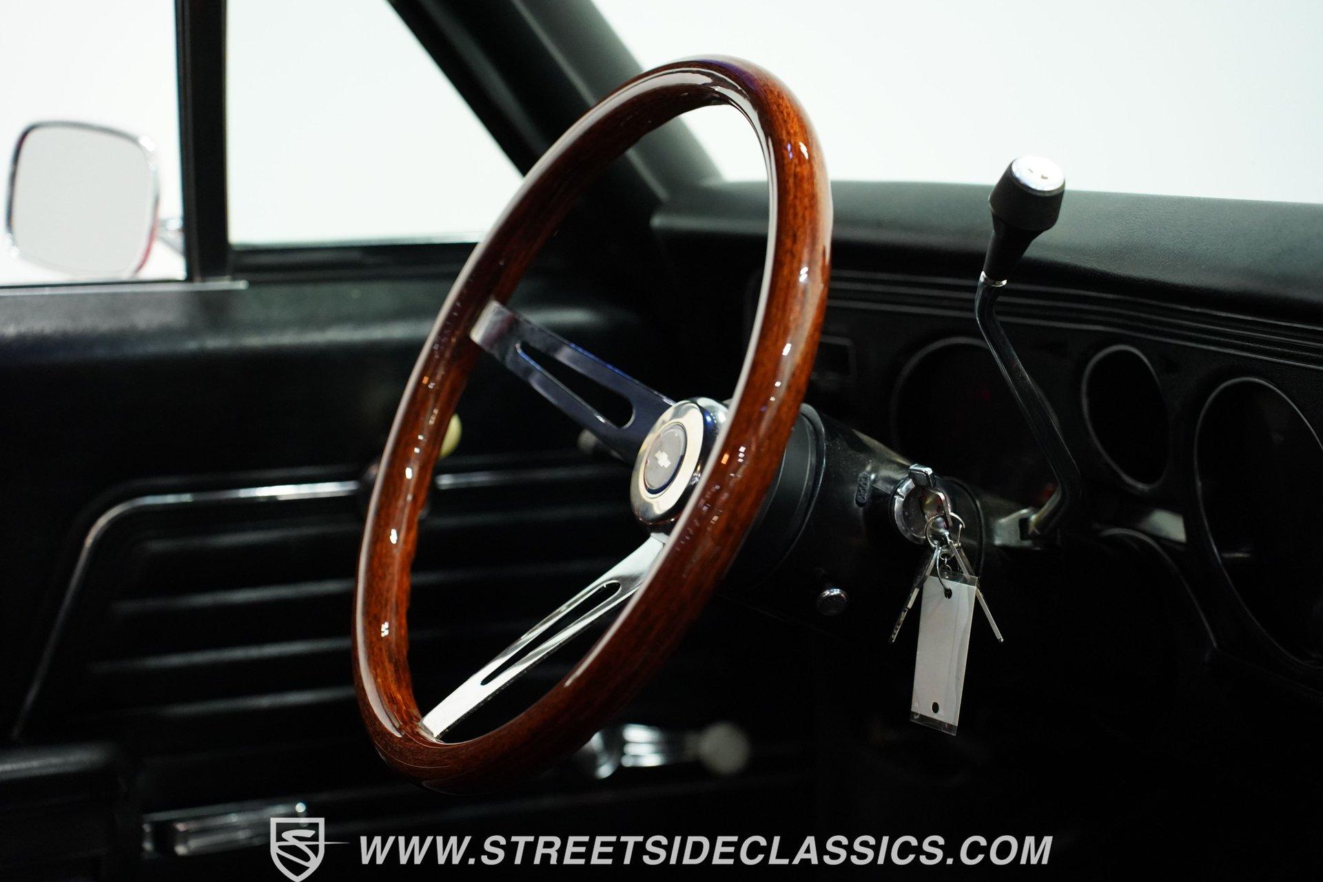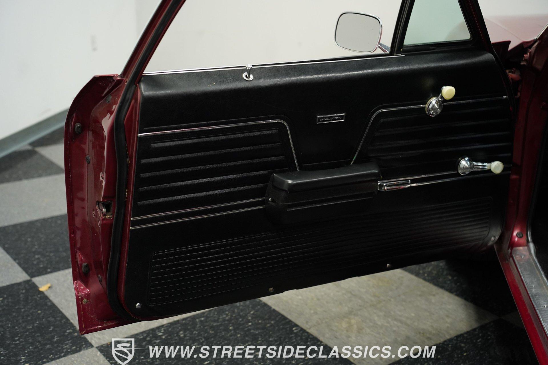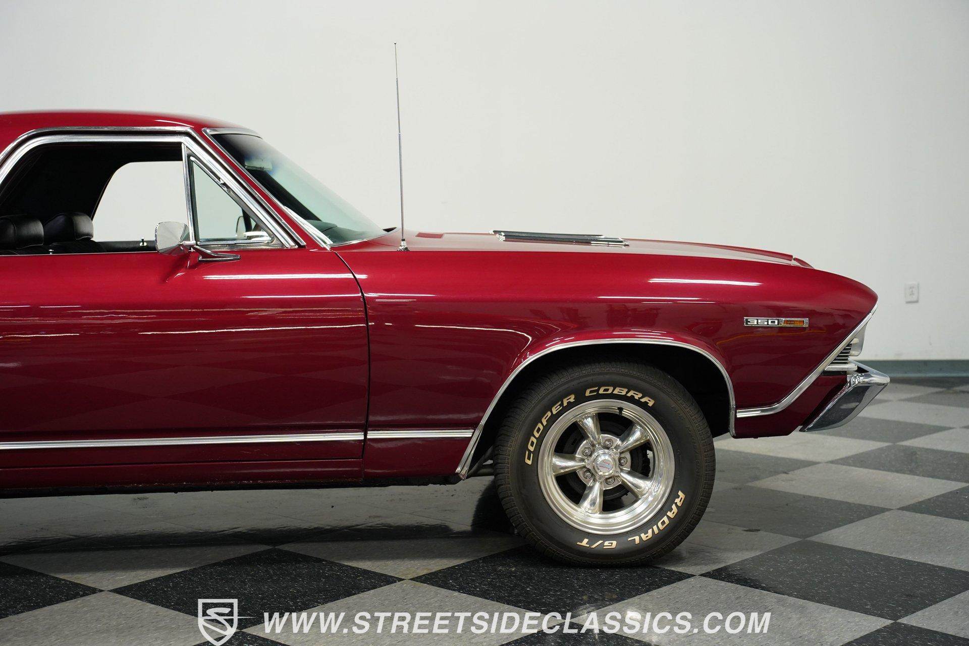 Burgundy paint lays across the panels of this 1969 Chevrolet El Camino, giving it a strong, clean look that fits the streets just right. The stance is set by 15" American Racing Torq Thrust wheels wrapped in P245/60R15 tires, balancing size and proportion for a confident posture. A snap-down soft bed cover stretches neatly across the back, completing the exterior with a sharp and functional touch. Together, these details make this vehicle carry itself with an unmistakable presence. Inside, the cabin is finished in black with a cloth bench seat at the center. Coated fabric trim adds continuity, while the column shifter keeps things true to its era. The wood steering wheel adds both style and grip, breaking up the darker surfaces with natural contrast. Beneath the dash sit auxiliary gauges, giving extra readouts without overcomplicating the layout. An AM/FM cassette stereo supplies the entertainment, rounding out a cabin that mixes factory-correct details with subtle upgrades. Underneath it all, a 350 cubic inch V8 forms the backbone, paired to a 2-speed Powerglide automatic transmission. The Weiand intake and Edelbrock 4-barrel carburetor feed the setup, while long tube headers push through a FlowMaster dual exhaust, giving the vehicle the right kind of rumble. A 10-bolt rear axle supports the power, and both power steering and power brakes are included. Suspension is A-arm coils and shocks up front, with a coil spring rear and aftermarket trailing arms for added strength and stability. HIGHLIGHTS 350 V8 Engine Edelbrock 4-Barrel Carburetor Weiand Intake 2-Speed Powerglide Automatic Transmission Long Tube Headers FlowMaster Dual Exhaust 10-Bolt Rear End Power Steering Power Brakes A-Arm Front Suspension With Coil Springs And Shocks Rear Coil Suspension With Shocks And Aftermarket Trailing Arms Burgundy Full Repaint 15" American Racing Torq Thrust Wheels P245/60R15 Tires Snap-Down Soft Bed Cover Black Interior With Bench Seat (Trim Code 755) Cloth Upholstery Column Shifter Wood Steering Wheel AM/FM Cassette Stereo Auxiliary Gauges Under Dash This 1969 Chevrolet El Camino has classic looks with a tough drivetrain and the right touches inside and out. With the stance, sound, and presence already dialed in, it's the kind of vehicle built to be enjoyed immediately. Call today!
