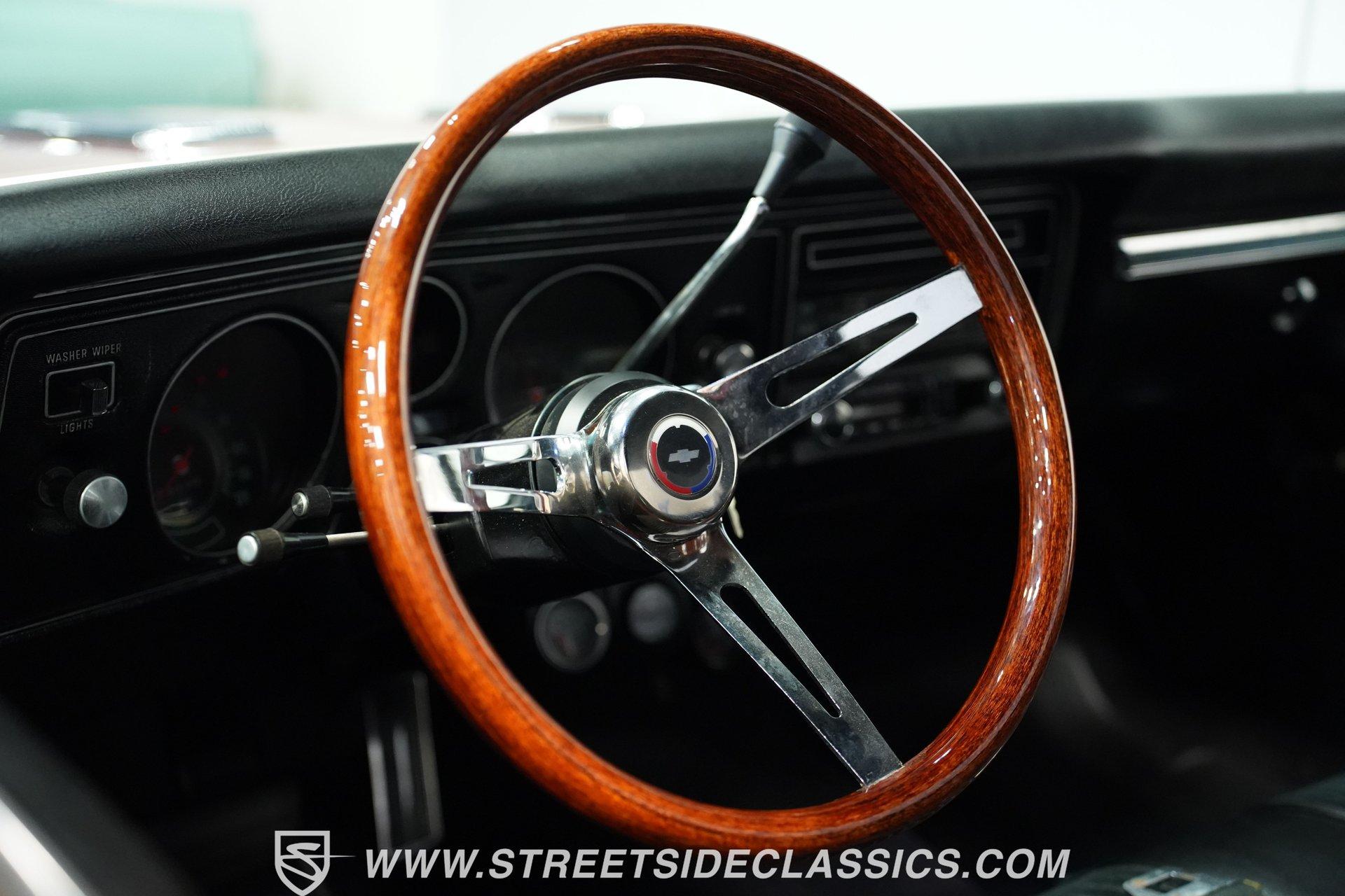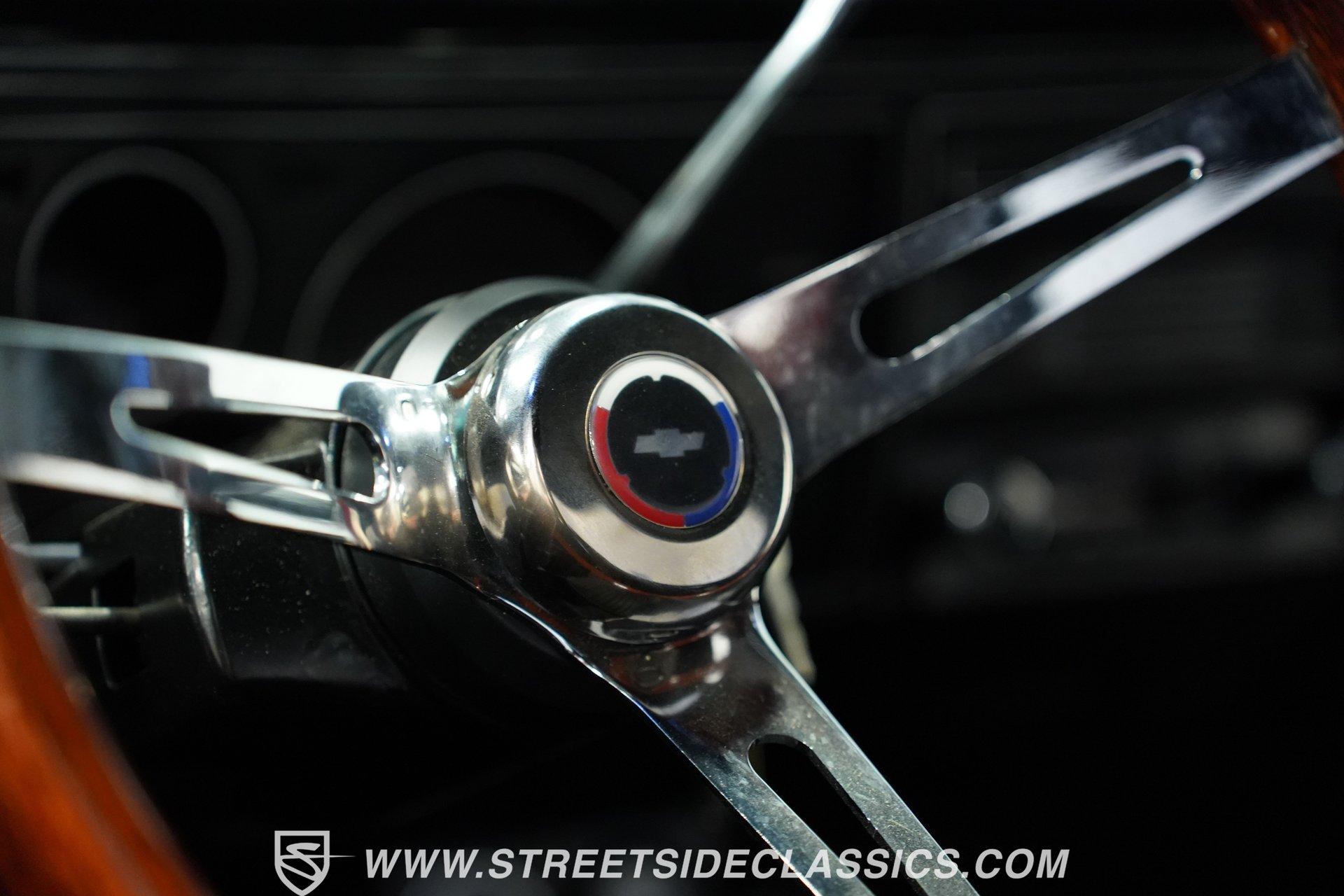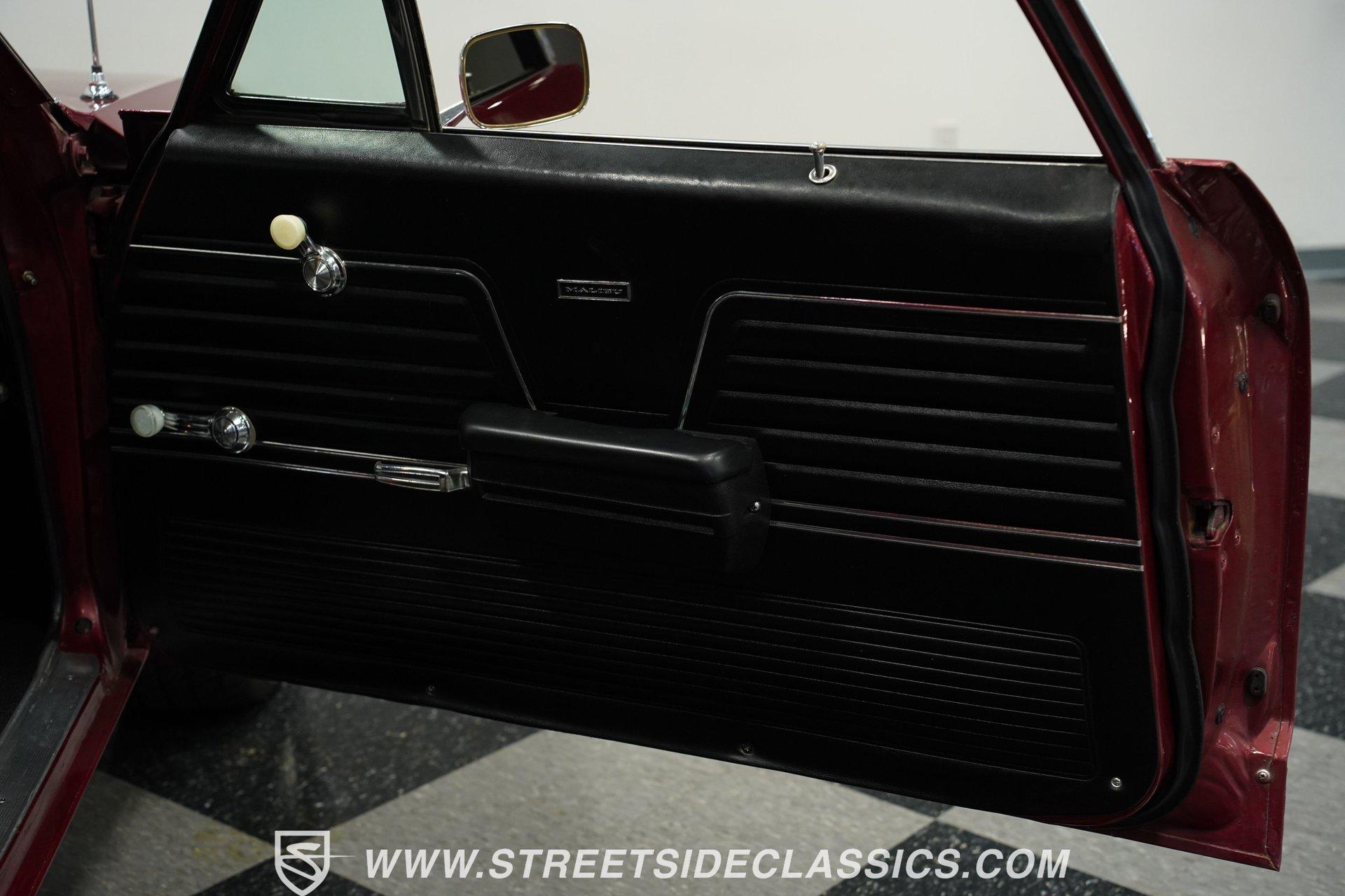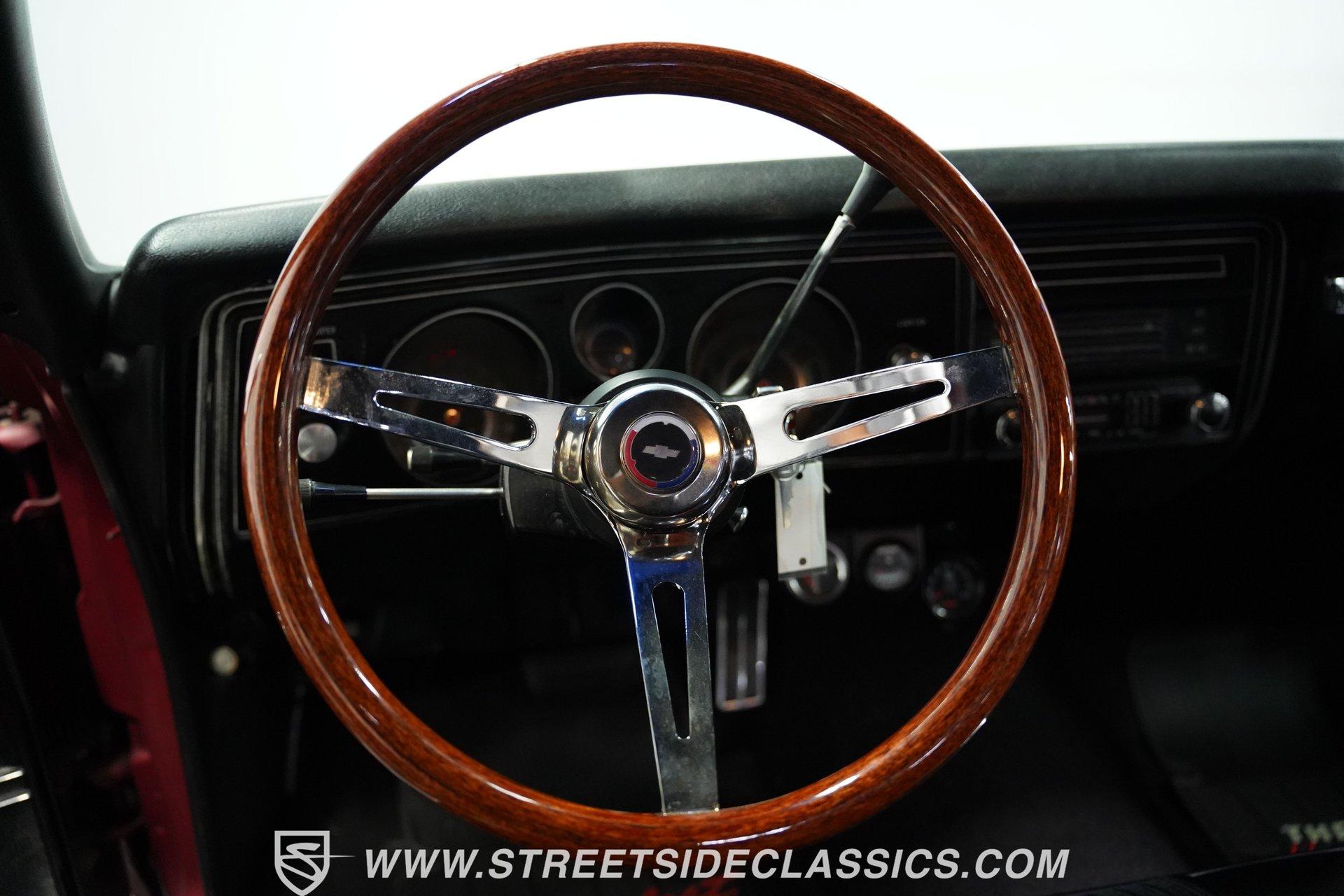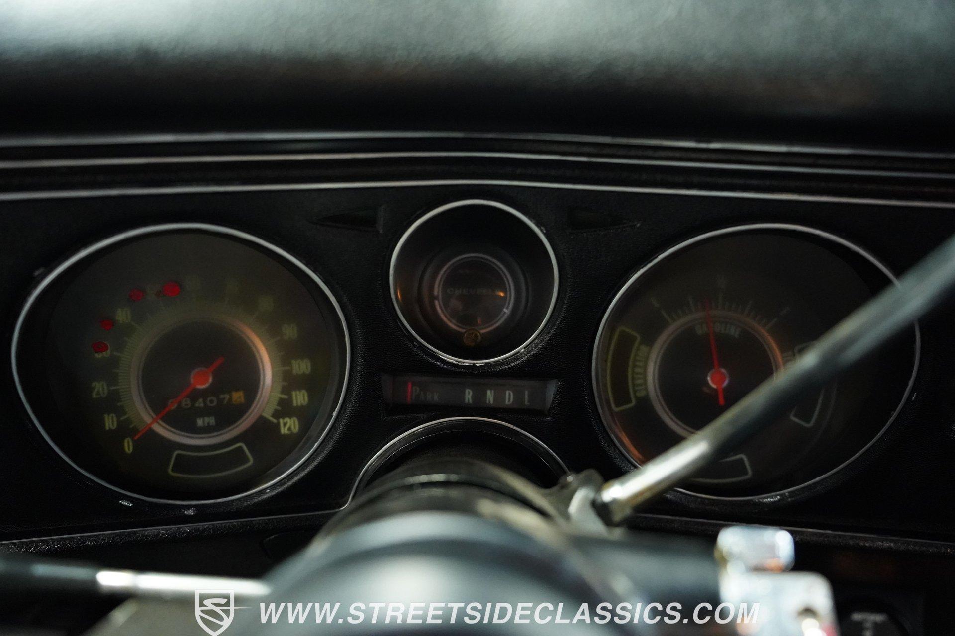 Burgundy paint lays across the panels of this 1969 Chevrolet El Camino, giving it a strong, clean look that fits the streets just right. The stance is set by 15" American Racing Torq Thrust wheels wrapped in P245/60R15 tires, balancing size and proportion for a confident posture. A snap-down soft bed cover stretches neatly across the back, completing the exterior with a sharp and functional touch. Together, these details make this vehicle carry itself with an unmistakable presence. Inside, the cabin is finished in black with a cloth bench seat at the center. Coated fabric trim adds continuity, while the column shifter keeps things true to its era. The wood steering wheel adds both style and grip, breaking up the darker surfaces with natural contrast. Beneath the dash sit auxiliary gauges, giving extra readouts without overcomplicating the layout. An AM/FM cassette stereo supplies the entertainment, rounding out a cabin that mixes factory-correct details with subtle upgrades. Underneath it all, a 350 cubic inch V8 forms the backbone, paired to a 2-speed Powerglide automatic transmission. The Weiand intake and Edelbrock 4-barrel carburetor feed the setup, while long tube headers push through a FlowMaster dual exhaust, giving the vehicle the right kind of rumble. A 10-bolt rear axle supports the power, and both power steering and power brakes are included. Suspension is A-arm coils and shocks up front, with a coil spring rear and aftermarket trailing arms for added strength and stability. HIGHLIGHTS 350 V8 Engine Edelbrock 4-Barrel Carburetor Weiand Intake 2-Speed Powerglide Automatic Transmission Long Tube Headers FlowMaster Dual Exhaust 10-Bolt Rear End Power Steering Power Brakes A-Arm Front Suspension With Coil Springs And Shocks Rear Coil Suspension With Shocks And Aftermarket Trailing Arms Burgundy Full Repaint 15" American Racing Torq Thrust Wheels P245/60R15 Tires Snap-Down Soft Bed Cover Black Interior With Bench Seat (Trim Code 755) Cloth Upholstery Column Shifter Wood Steering Wheel AM/FM Cassette Stereo Auxiliary Gauges Under Dash This 1969 Chevrolet El Camino has classic looks with a tough drivetrain and the right touches inside and out. With the stance, sound, and presence already dialed in, it's the kind of vehicle built to be enjoyed immediately. Call today!