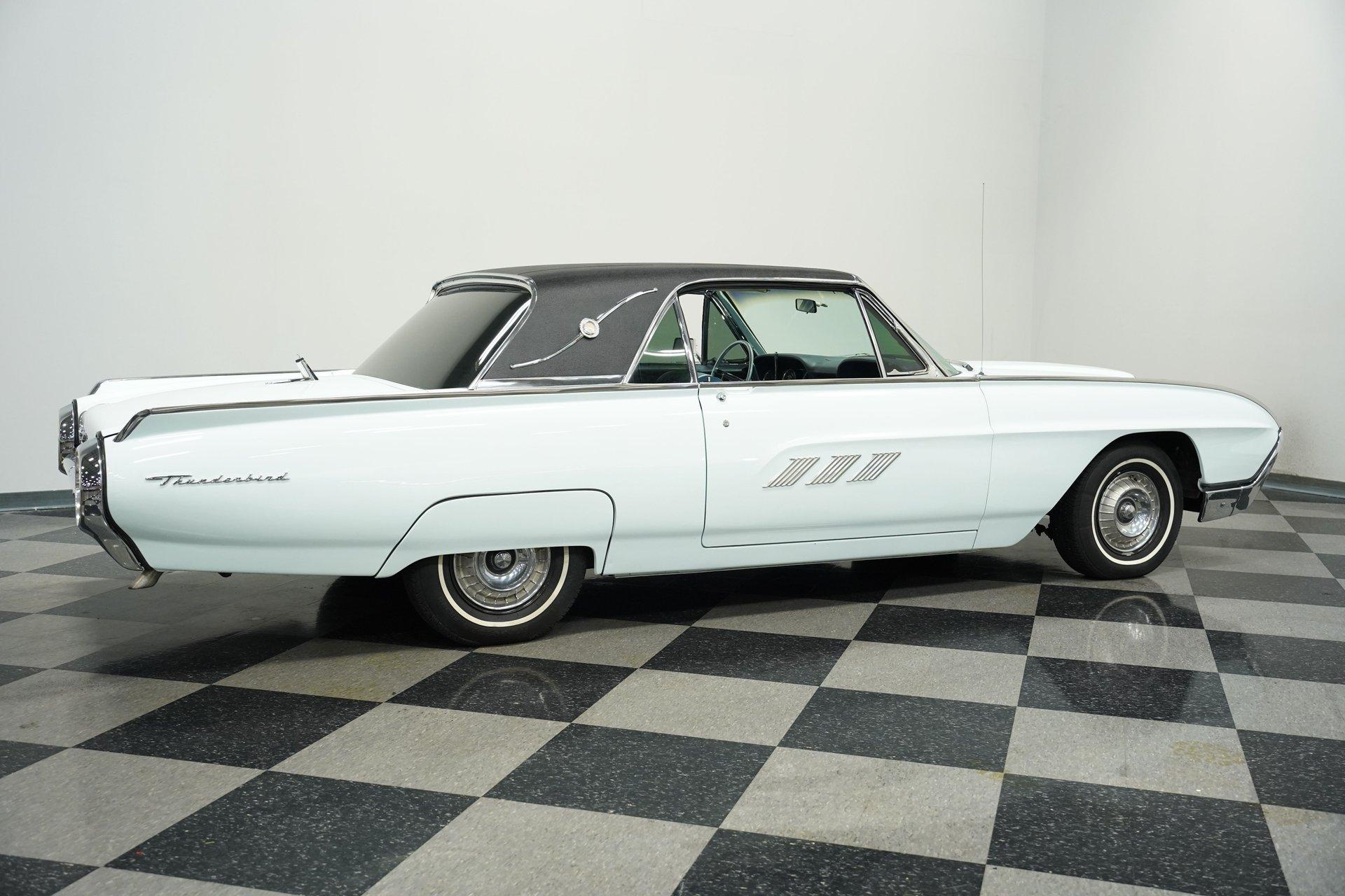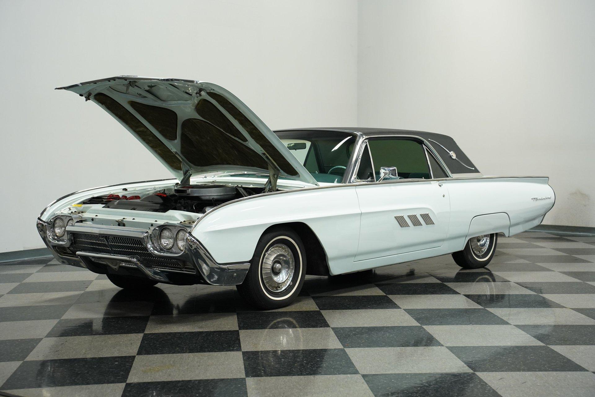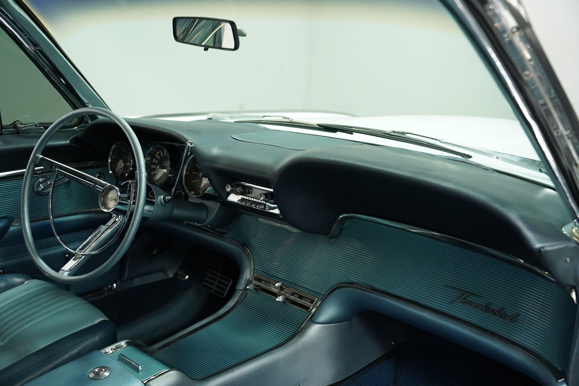 There is something timeless about sliding behind the wheel of a classic Thunderbird and feeling the quiet confidence it projects. This car is as much a statement as it is a cruiser, conjuring weekend drives, open roads, and the kind of presence that turns heads without trying too hard. The lines and the color invite compliments while the overall package promises relaxed, confident motoring. If you are drawn to classic style with real driving capability, take a closer look at this 1963 Ford Thunderbird finished in Diamond Blue and wearing a Landau-style vinyl roof and Landau bars. Step inside and you will find a largely original, very good two-tone blue interior that presents nicely. The upholstery, door panels, and dash show the care of an older restoration and convey a comfortable, period-correct environment. The cabin still offers vintage conveniences such as AM radio and 8-track, with factory trim and brightwork that complement the exterior. Overall the passenger compartment is attractive and ready to enjoy. Under the hood sits a strong 390 cubic-inch V8 paired with the factory 4-barrel carburetor and Ford Cruise-O-Matic three-speed automatic transmission. The suspension remains stock and the rear axle carries a 3.00 ratio, providing relaxed cruising characteristics. Braking is power-assisted up front with power rear drums, and the car rides on 14-inch wheels shod with P205/75R14 tires. Highlights Originally a standard coupe by trim tag but upgraded to Landau appearance with vinyl roof and Landau bars 390 CID V8 with factory 4-barrel carburetor; engine rebuild date unknown Stock 4-barrel carburetor and factory fuel delivery Ford Cruise-O-Matic 3-speed automatic; rebuild status unknown Rear axle: 3.00 ratio Power-assisted front brakes with power rear drum brakes Power steering equipped for easy low-speed maneuvering Stock suspension components Stock two-tone blue interior in very good condition; vintage AM radio and 8-track present 14-inch wheels with P205/75R14 tires This Thunderbird represents a great mix of classic style and comfortable driving. It has been well cared for as an older restoration, shows very nicely in Diamond Blue, and is ready to be enjoyed. Call today to schedule a visit or test drive and see whether this 1963 Thunderbird is the classic you have been looking for.