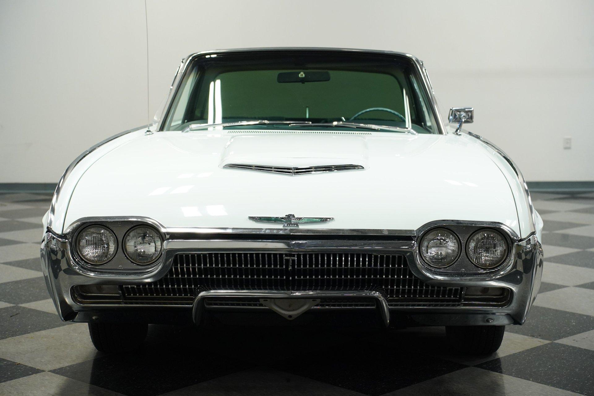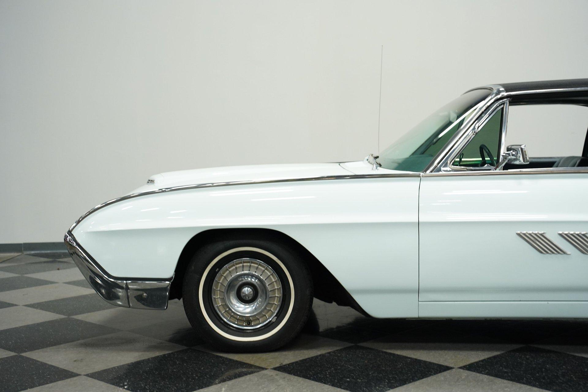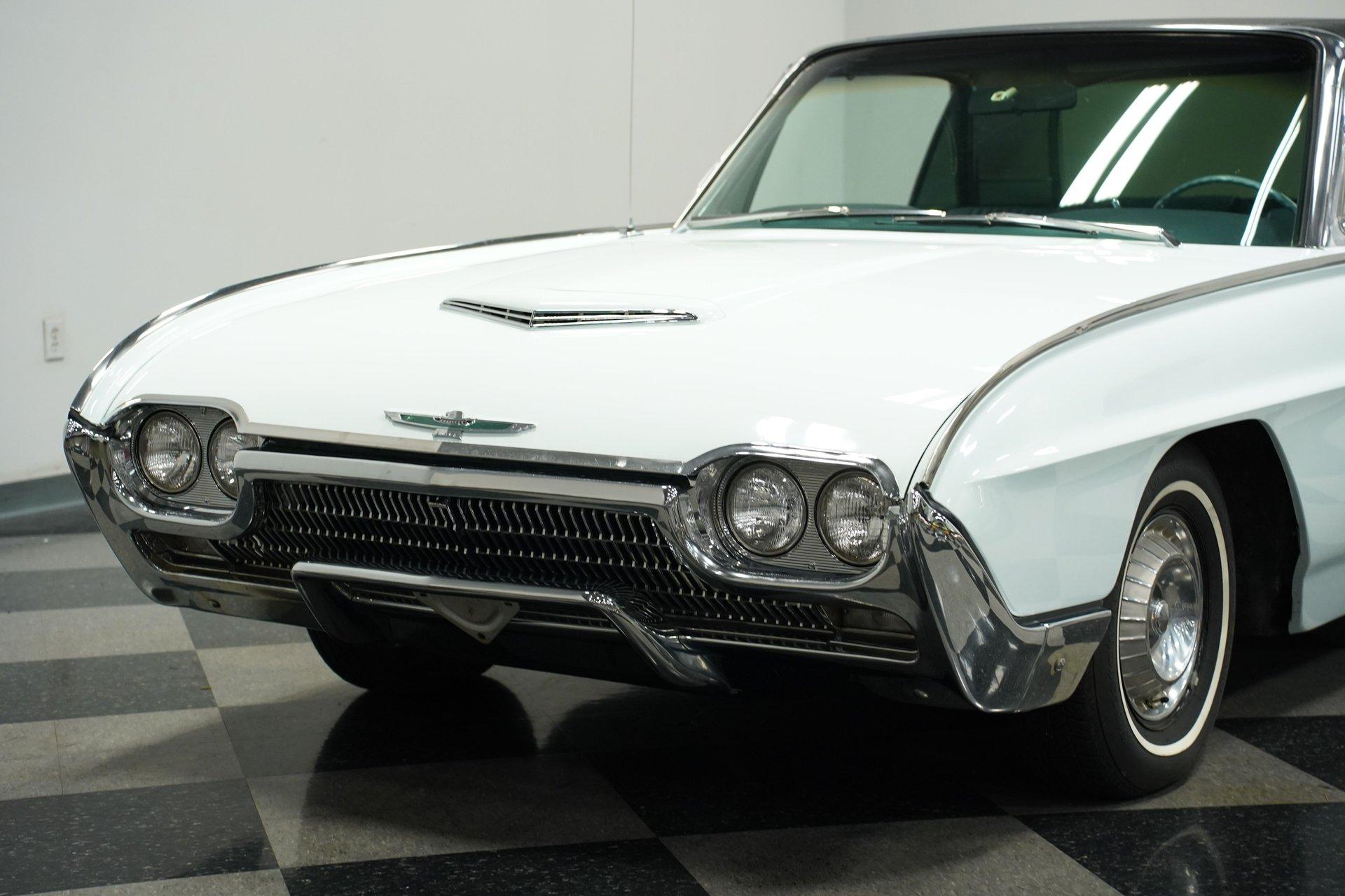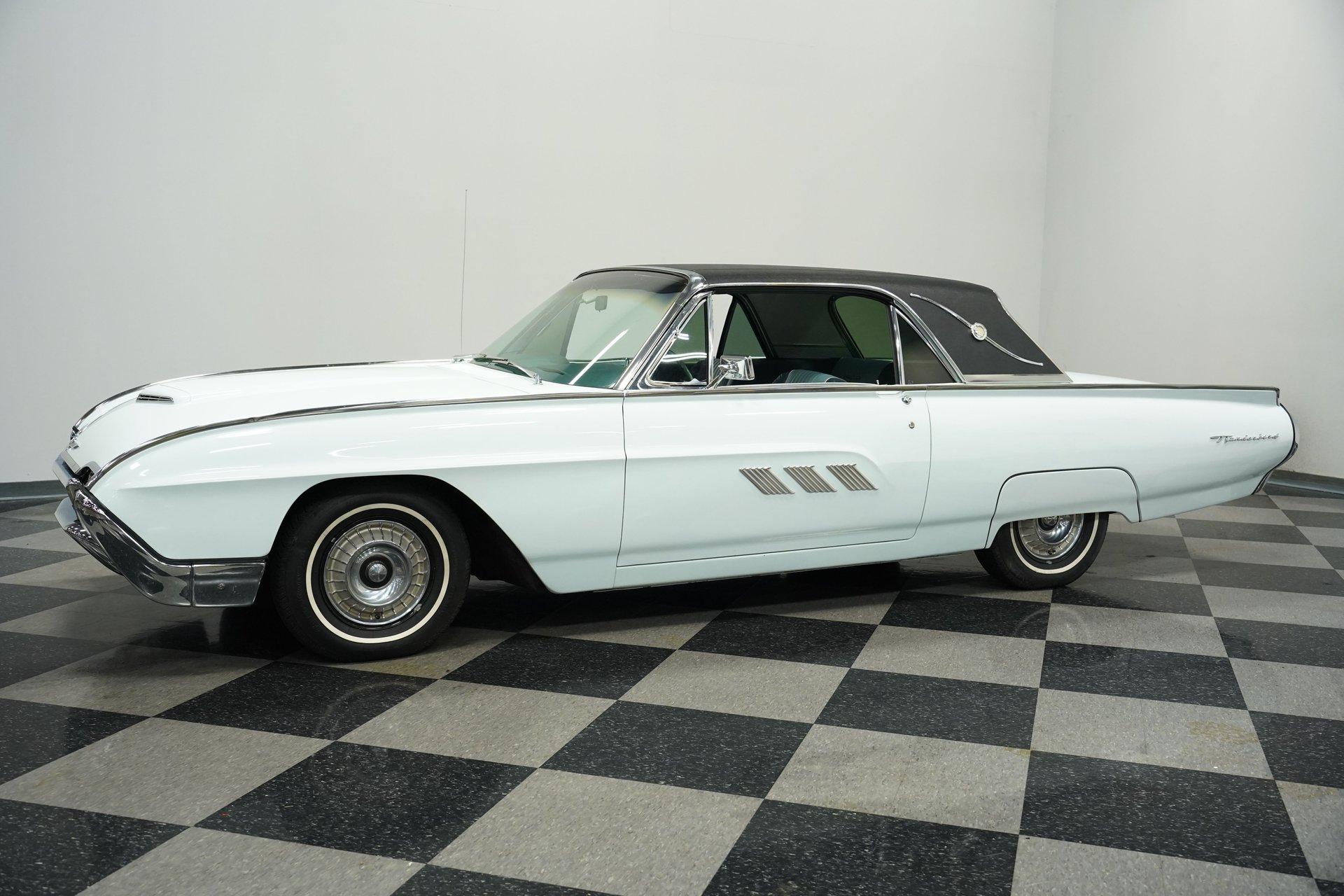 There is something timeless about sliding behind the wheel of a classic Thunderbird and feeling the quiet confidence it projects. This car is as much a statement as it is a cruiser, conjuring weekend drives, open roads, and the kind of presence that turns heads without trying too hard. The lines and the color invite compliments while the overall package promises relaxed, confident motoring. If you are drawn to classic style with real driving capability, take a closer look at this 1963 Ford Thunderbird finished in Diamond Blue and wearing a Landau-style vinyl roof and Landau bars. Step inside and you will find a largely original, very good two-tone blue interior that presents nicely. The upholstery, door panels, and dash show the care of an older restoration and convey a comfortable, period-correct environment. The cabin still offers vintage conveniences such as AM radio and 8-track, with factory trim and brightwork that complement the exterior. Overall the passenger compartment is attractive and ready to enjoy. Under the hood sits a strong 390 cubic-inch V8 paired with the factory 4-barrel carburetor and Ford Cruise-O-Matic three-speed automatic transmission. The suspension remains stock and the rear axle carries a 3.00 ratio, providing relaxed cruising characteristics. Braking is power-assisted up front with power rear drums, and the car rides on 14-inch wheels shod with P205/75R14 tires. Highlights Originally a standard coupe by trim tag but upgraded to Landau appearance with vinyl roof and Landau bars 390 CID V8 with factory 4-barrel carburetor; engine rebuild date unknown Stock 4-barrel carburetor and factory fuel delivery Ford Cruise-O-Matic 3-speed automatic; rebuild status unknown Rear axle: 3.00 ratio Power-assisted front brakes with power rear drum brakes Power steering equipped for easy low-speed maneuvering Stock suspension components Stock two-tone blue interior in very good condition; vintage AM radio and 8-track present 14-inch wheels with P205/75R14 tires This Thunderbird represents a great mix of classic style and comfortable driving. It has been well cared for as an older restoration, shows very nicely in Diamond Blue, and is ready to be enjoyed. Call today to schedule a visit or test drive and see whether this 1963 Thunderbird is the classic you have been looking for.