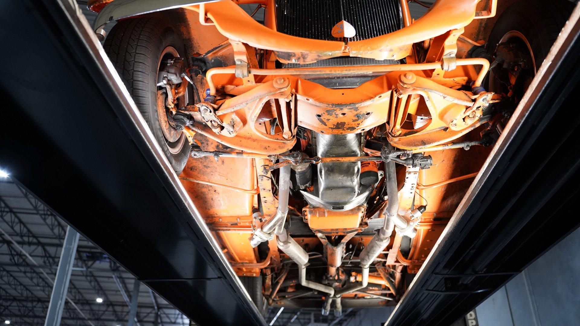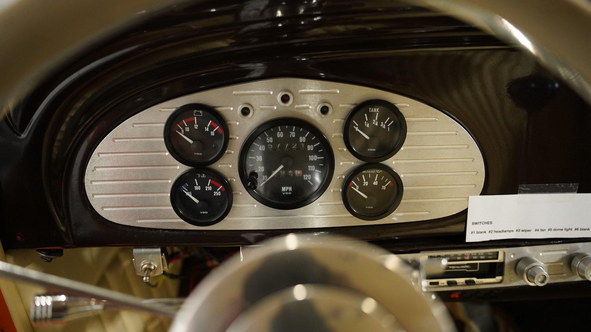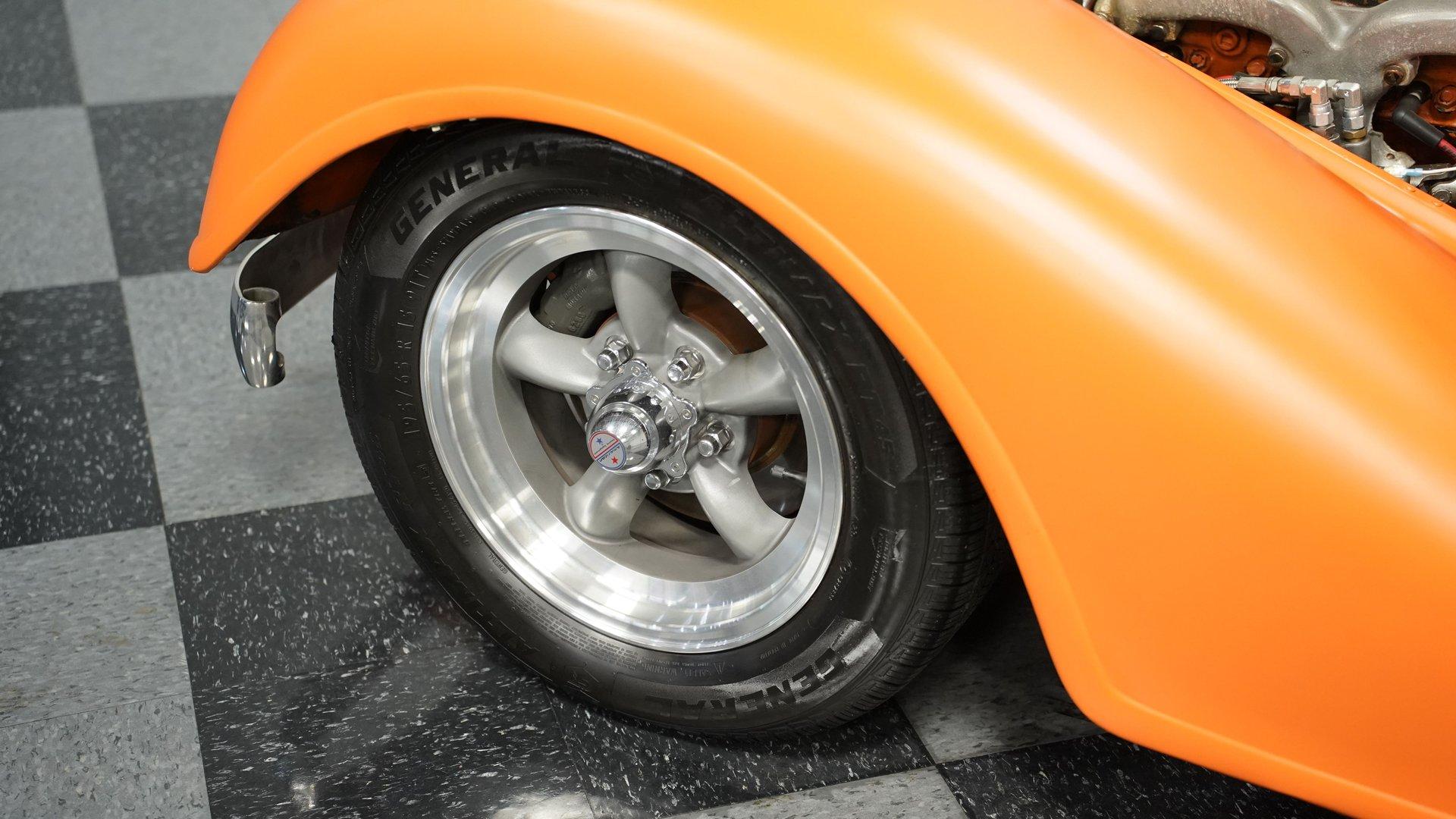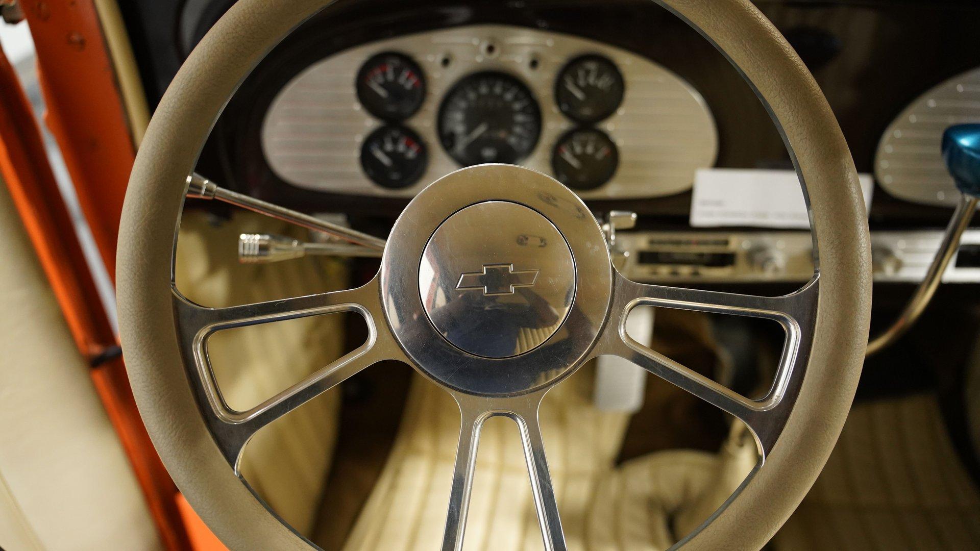 Crafted from genuine steel throughout, from body to fenders and running boards, this 1934 Chevrolet 5 Window Coupe sports a distinct matte orange finish. The clean, streamlined profile benefits from shaved door handles and frenched antenna and tail lights for a smooth, uncluttered appearance. Contrasting American Racing wheels - 15" up front and 16" in back - complete the stance, wrapped in 195/65R15 front and 235/65R15 rear rubber. A cowl-mounted tachometer adds a functional touch to the classic profile. Inside the cabin, cream-colored rolled and pleated Naugahyde creates a contrast against the orange exterior. The dashboard features clear gauges framed by billet aluminum surrounds, matching the door pulls and glove box accents. A chrome steering column connects to a color-coordinated steering wheel, while a Genie floor-mounted shifter puts control at your disposal. The AM/FM cassette player provides entertainment while you cruise in comfort. Both the headliner above and trunk below received matching upholstery treatment. A 350 cubic inch V8 (casting #3970010) powers this classic Chevy, fed by an Edelbrock AVS 650 carburetor with electric choke. The engine bay shines with billet valve covers and polished accessories. A Griffin aluminum radiator with electric cooling fan keeps temperatures in check. The TH350 3-speed automatic transmission sends power to the C3 Corvette rear end with 3.73 gears. Ram-style manifolds with electric cutouts allow for sound adjustment, while four-wheel power disc brakes complete the package. HIGHLIGHTS: 350 V8 Engine TH350 3-Speed Automatic Transmission Edelbrock AVS 650 Carburetor With Electric Choke Griffin Aluminum Radiator With Electric Cooling Fan Electric Cutouts HEI Distributor With 8mm Wires Four-Wheel Power Disc Brakes C3 Corvette Rear End With 3.73 Gears Ram-Style Manifolds Matte Orange PaintWith Gyeone Ceramic Coating All Steel Body, Fenders, And Running Boards Shaved Door Handles Frenched Antenna And Tail Lights 15" Front, 16" Rear American Racing Wheels 195/65R15 Front, 235/65R15 Rear Tires Cowl-Mounted Tachometer Chrome Bumpers Cream Rolled And Pleated Naugahyde Interior Bench Seat Billet Aluminum Gauge Surrounds, Door Pulls, And Glove Box Chrome Steering Column Genie Floor-Mounted Shifter Matching Steering Wheel AM/FM Cassette Player Power Windows Air Conditioning Flaming River Variable Power Steering Tilt Wheel Backup Camera In Trunk This 1934 Chevrolet 5 Window Coupe with all-steel construction, timeless hot rod styling, and proven small block power into one cohesive package. It's a build that's ready for show or street, and it's got the details to back it up. Call today!