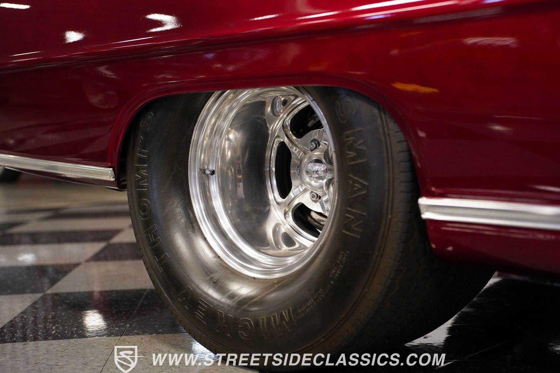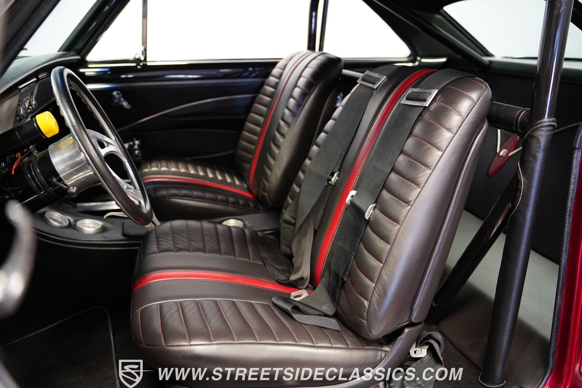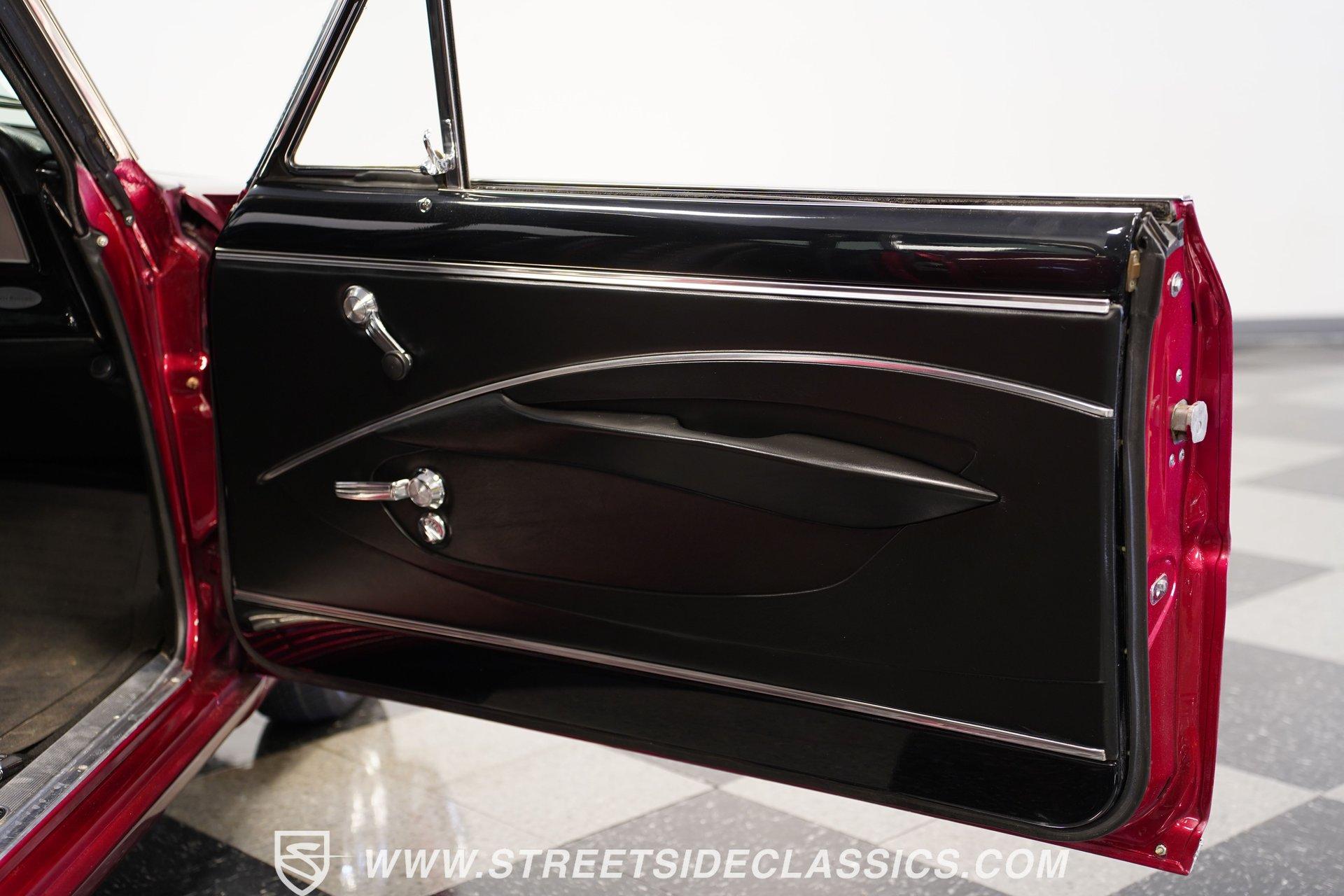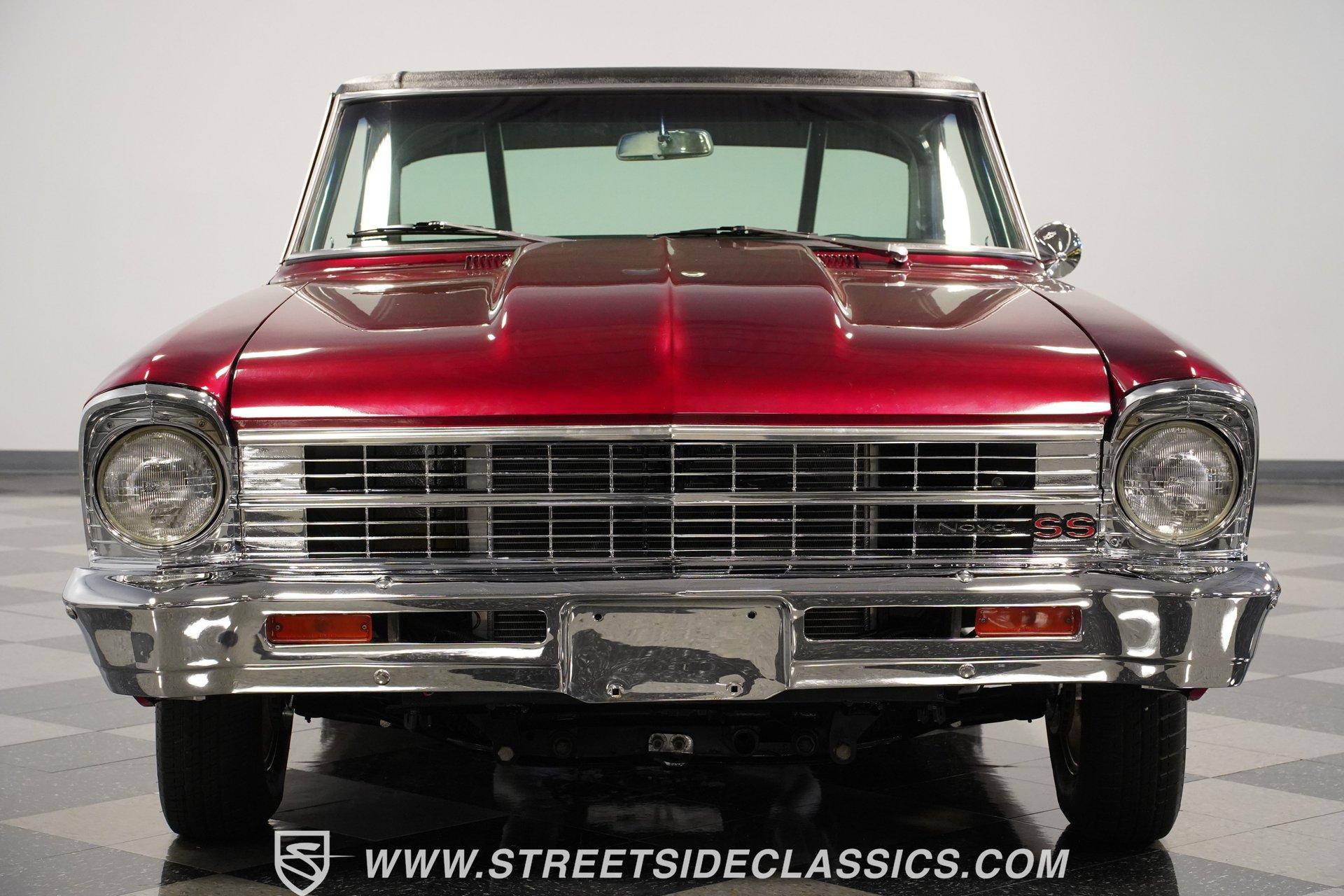 A chrome-dipped grille sits proudly out front of this 1967 Chevrolet Nova Chevy II Pro Street, setting off the Brandywine Candy paint that drapes across its panels with intensity. The cowl hood gives it a hard-edged presence, flanked by SS badging that signals its attitude. A black vinyl roof adds contrast to the body, while the Billet Specialties wheels, staggered with narrow 165/80R15 fronts and mammoth 33x19.5-15LT rears, anchor down the tubbed stance. This car looks every bit ready for business. Inside, the black and red theme runs deep. Leather bucket seats with a full-length console set the tone, while Autometer gauges line up across the dash to keep tabs on the power. A Hurst ratchet shifter takes center stage, wrapped in gloss finishes that carry across the doors and dashboard. A roll bar stretches through the cabin with added bracing, racing harnesses in place. Door panels, carpets, and headliner are cleanly fitted, giving the interior a straight-to-the-point feel. Muscle is supplied by a 540 cubic-inch V8 equipped with a Quickfuel 850 carburetor, Edelbrock intake, aluminum heads, and long tube headers. Backing it is a TH400 three-speed automatic with a fresh converter feeding a narrowed Ford 9-inch rear end set with 4.10 gears. A Mustang II front suspension pairs with QA1 coilovers and ladder bars in the rear, tied together with subframe connectors. SSBC front disc brakes with a Wilwood master cylinder, dual electric fans on a large aluminum radiator, and FlowMaster dual exhaust round out a mechanical setup that was built to put power to pavement. HIGHLIGHTS 540 V8 Engine (662HP/685TQ Dyno Sheet) Quickfuel 850 4-Barrel Carburetor Edelbrock Aluminum Intake Aluminum Heads Long Tube Headers TH400 3-Speed Automatic Transmission Ford 9-Inch Rear End With 4.10 Gears Mustang II Front Suspension QA1 Coilovers With Ladder Bars Subframe Connectors SSBC Front Disc Brakes Wilwood Master Cylinder Aluminum Radiator With Dual Electric Fans Dual Exhaust With FlowMaster Mufflers Brandywine Candy Paint With Black Vinyl Top Billet Specialties Wheels With 165/80R15 Front Tires And 33x19.5-15LT Rear Tires Chrome Front Grille SS Badging Cowl Hood Black And Red Interior With Leather Bucket Seats Racing Harnesses Carpet, Headliner, And Door Panels In Black Custom Console With Autometer Gauges Hurst Ratchet Shifter Gloss Painted Dash And Door Tops Roll Bar With Additional Bracing Original Gauge Cluster AM Radio Dyno Sheet This1967 Chevrolet Nova Chevy II Pro Street packs the right look and the right equipment, with a serious drivetrain, tough suspension, and a bold Brandywine finish. It's ready-made ground-pounding Pro Street machine with attitude and presence. Call today!