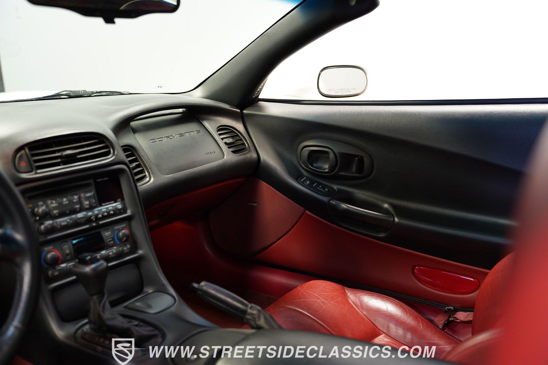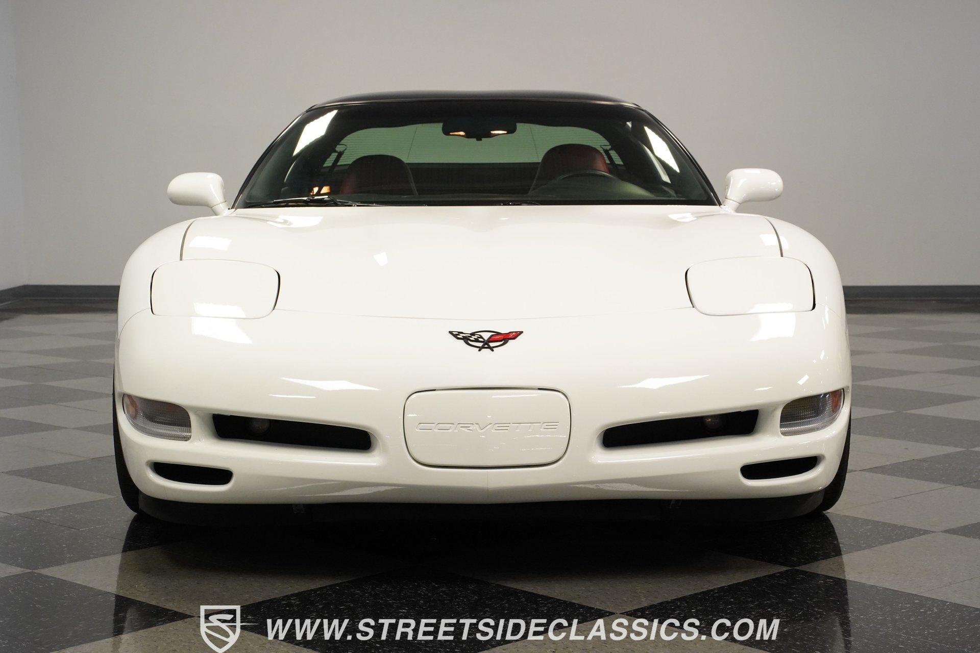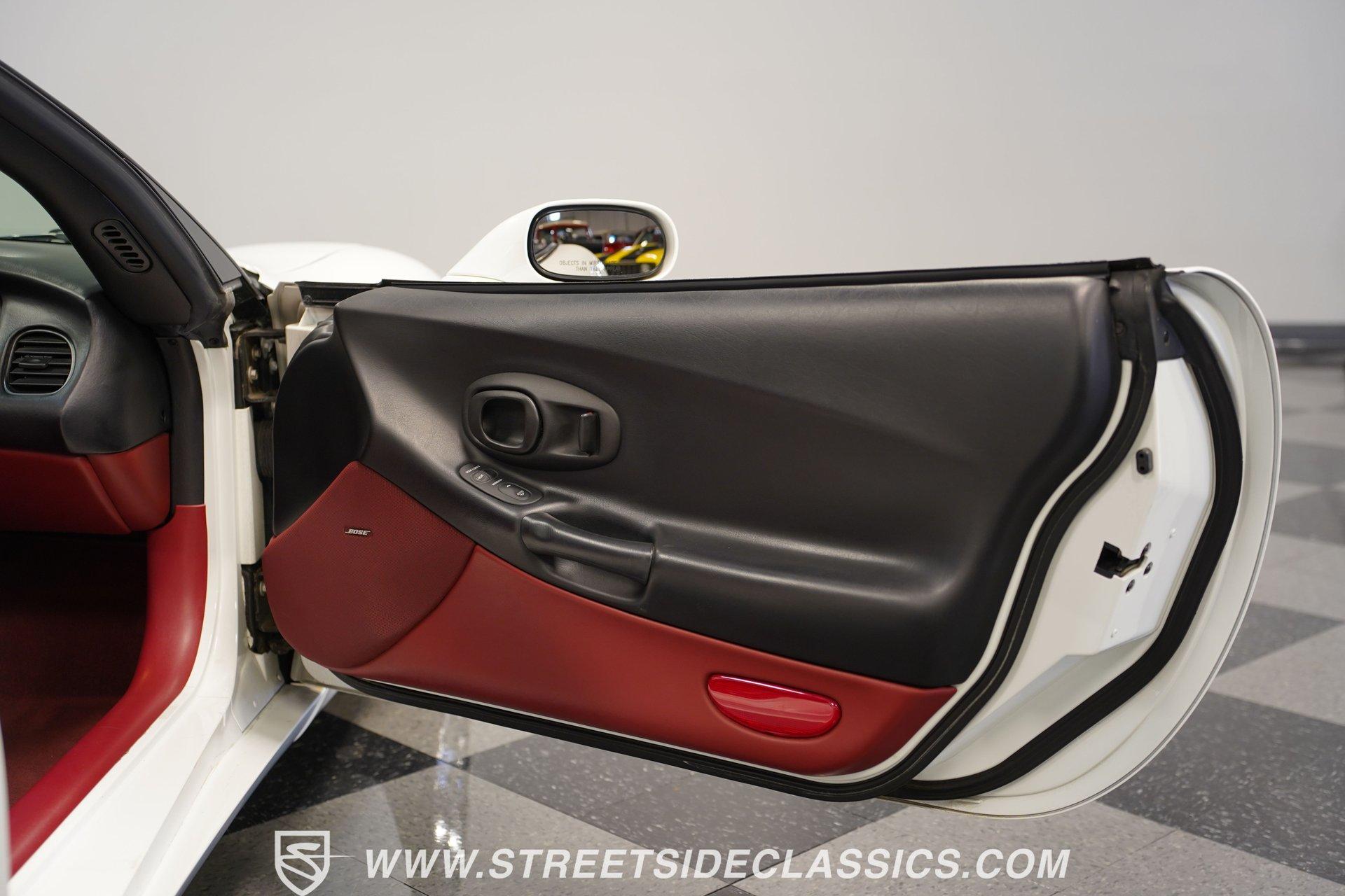 The 1997 Chevrolet Corvette represents the first year of the C5, and this example certainly makes it memorable. With only 41,065 carefully driven miles from new, and details like the factory-applied Arctic White paint, polished C6 ZR1 alloys, and LS1 motor are looking exceptionally well-kept. Corvette engineers crafted this fifth-generation sports car with flowing curves and aggressive angles that still look spectacular today. The removable targa top provides open-air driving enjoyment when desired. Upgraded chrome C6 Z06-style 17-inch wheels provide the perfect visual anchor, while the meaty tires staggered 275/40ZR17 front and 295/35ZR17 rear, offer substantial contact patches for maximum grip during spirited driving maneuvers. The interior features Firethorn Red leather, one of the rarest options for 1997. It was one of only three interior color options, but it is believed less than 728 were produced in this exciting color. The supportive bucket seats hold occupants firmly in place during aggressive cornering, while providing long-distance comfort for extended cruising sessions. The instrument panel displays vital information with classic Corvette clarity, putting critical data directly in the driver's field of vision. Luxury touches abound with power windows, power locks, and a climate control system that maintains perfect cabin temperatures. The AM/FM/CD stereo system with Bose speakers stands ready to provide the soundtrack for your next road adventure. Lifting the hood reveals the heartbeat of this iconic Corvette. The 5.7 Liter LS-1 V8, with its electronic fuel injection, is ready to provide that classic Corvette power, and is mated to a smooth-shifting 4-speed automatic 700R4 transmission for effortless performance. When it comes to cornering, the factory independent front and rear suspension setup provides confident handling for those twisty backroads. The power disc brakes (front and rear) ensure reliable stopping power when you need it. HIGHLIGHTS First-Year C5 Corvette Arctic White Paint Rare Firethorn Red Leather Seats 41,065 Miles from New C6 ZR1 Polished Alloys Rare and Attractive Firethorn Red Leather Interior Dual-Zone Automatic A/C Climate Control Power Steering, Windows, Locks, Mirrors, and Seats Cruise Control Dual Airbags and ABS AM/FM/CD Stereo System with Bose Speakers 5.7-Liter LS1 Fuel-Injected V8 Four-Speed Automatic Transmission with Overdrive Four-Wheel Power Disc Brakes Fully Independent Suspension Owner's Manual Experience pure American performance engineered for driving excitement with this low-mileage 1997 Chevrolet Corvette Coupe. With its low-mileage, rare Firethorn Red interior and thunderous V8, this Corvette delivers performance thrills on demand. Call today!