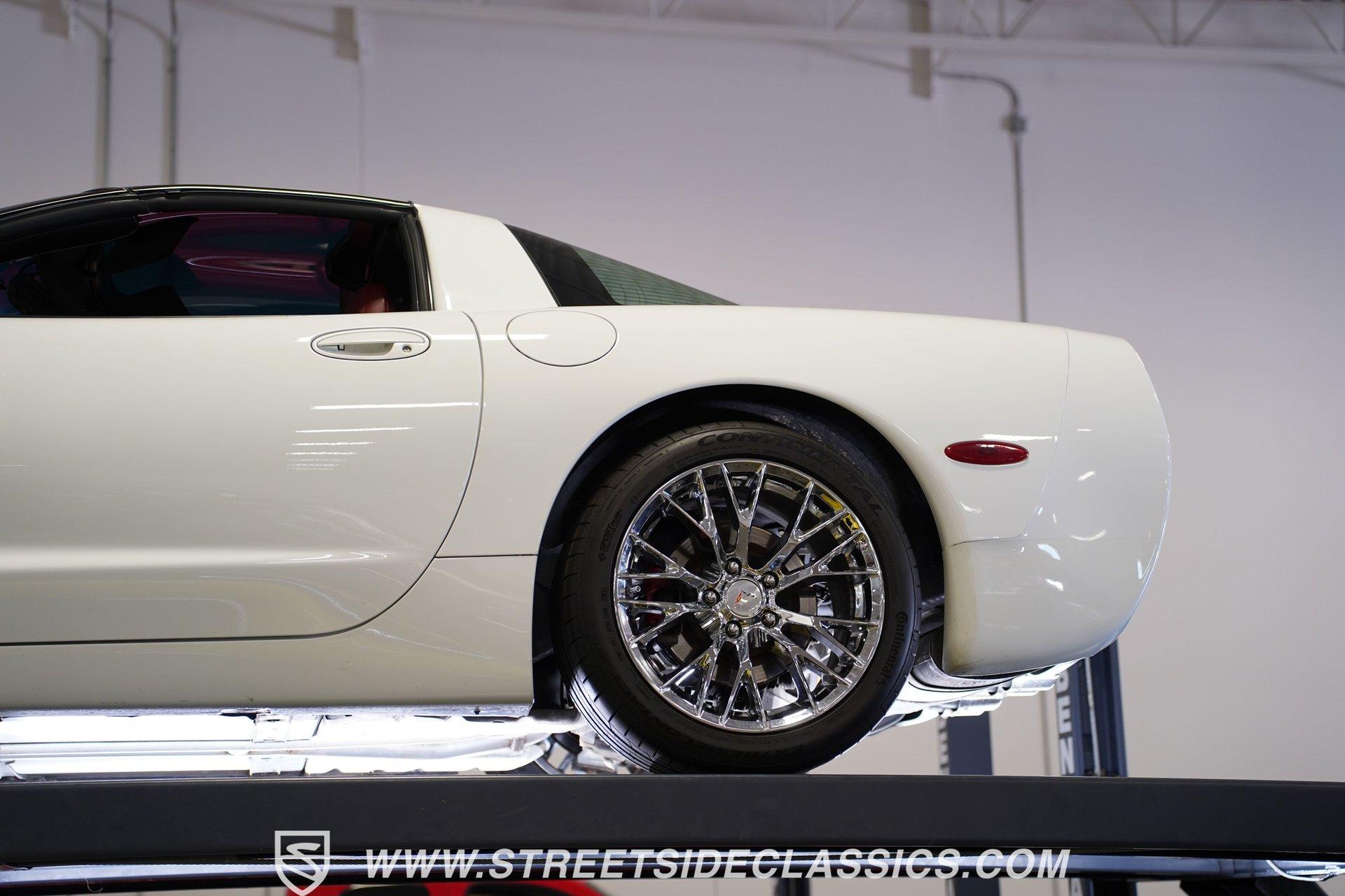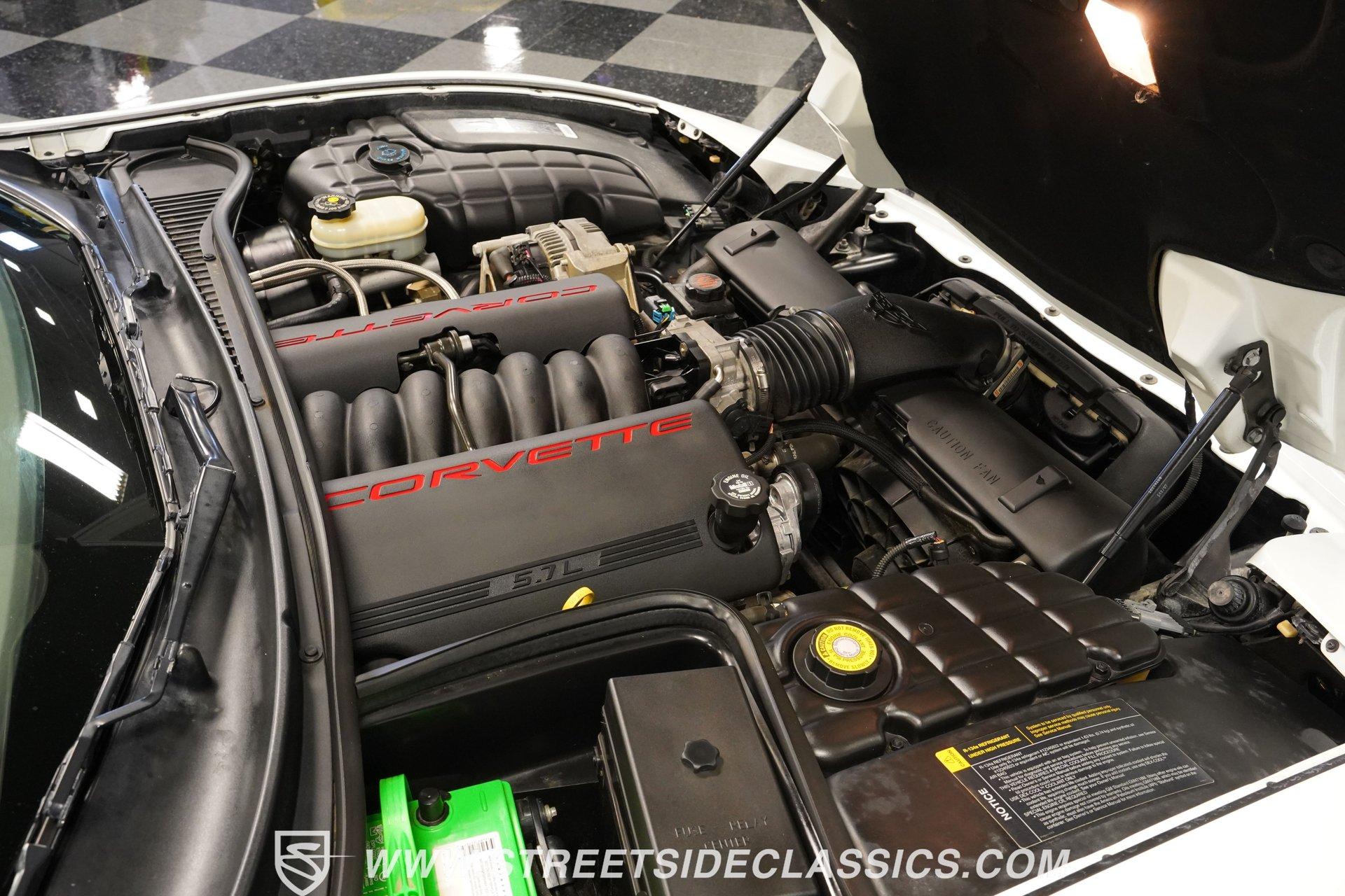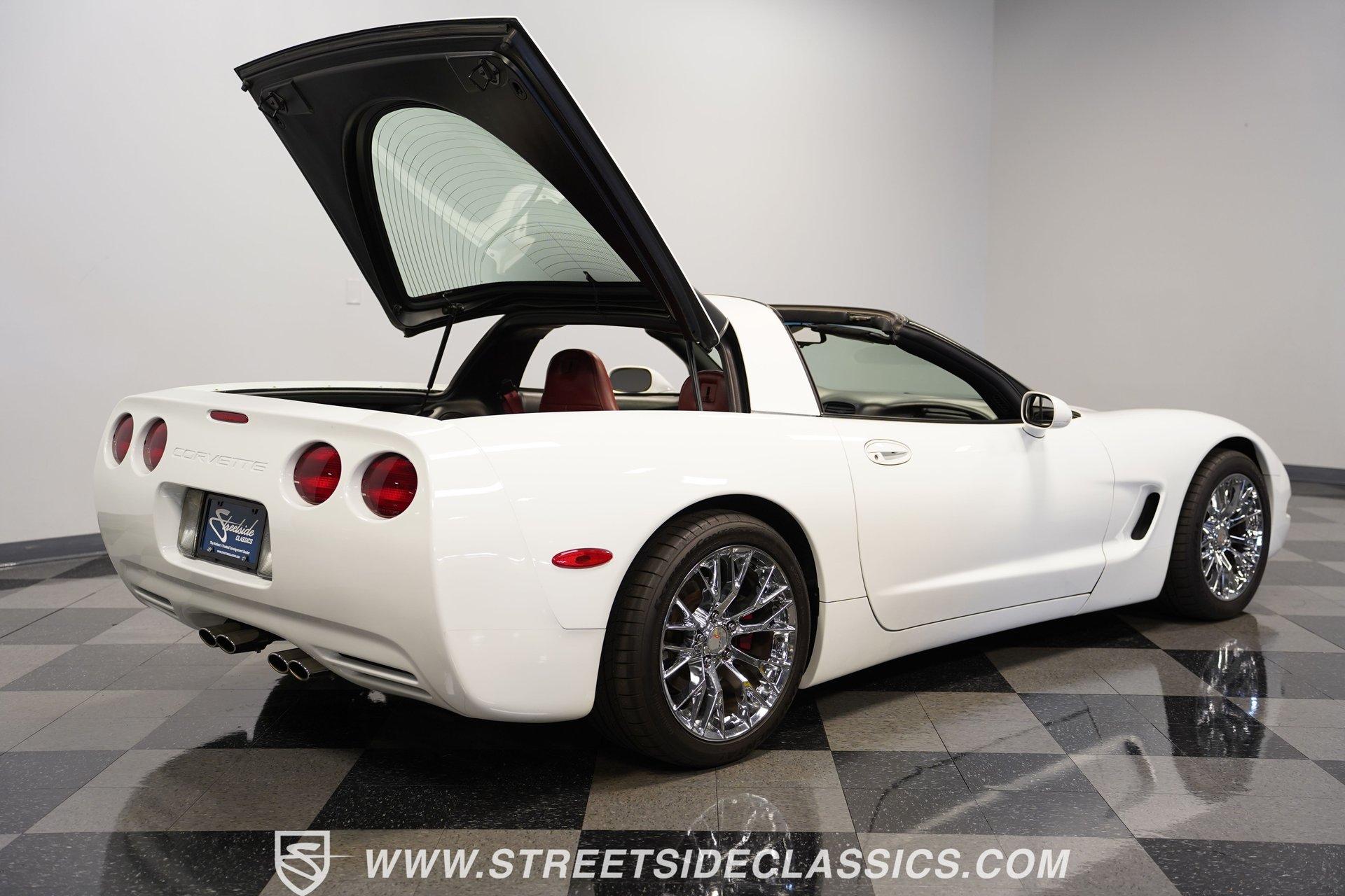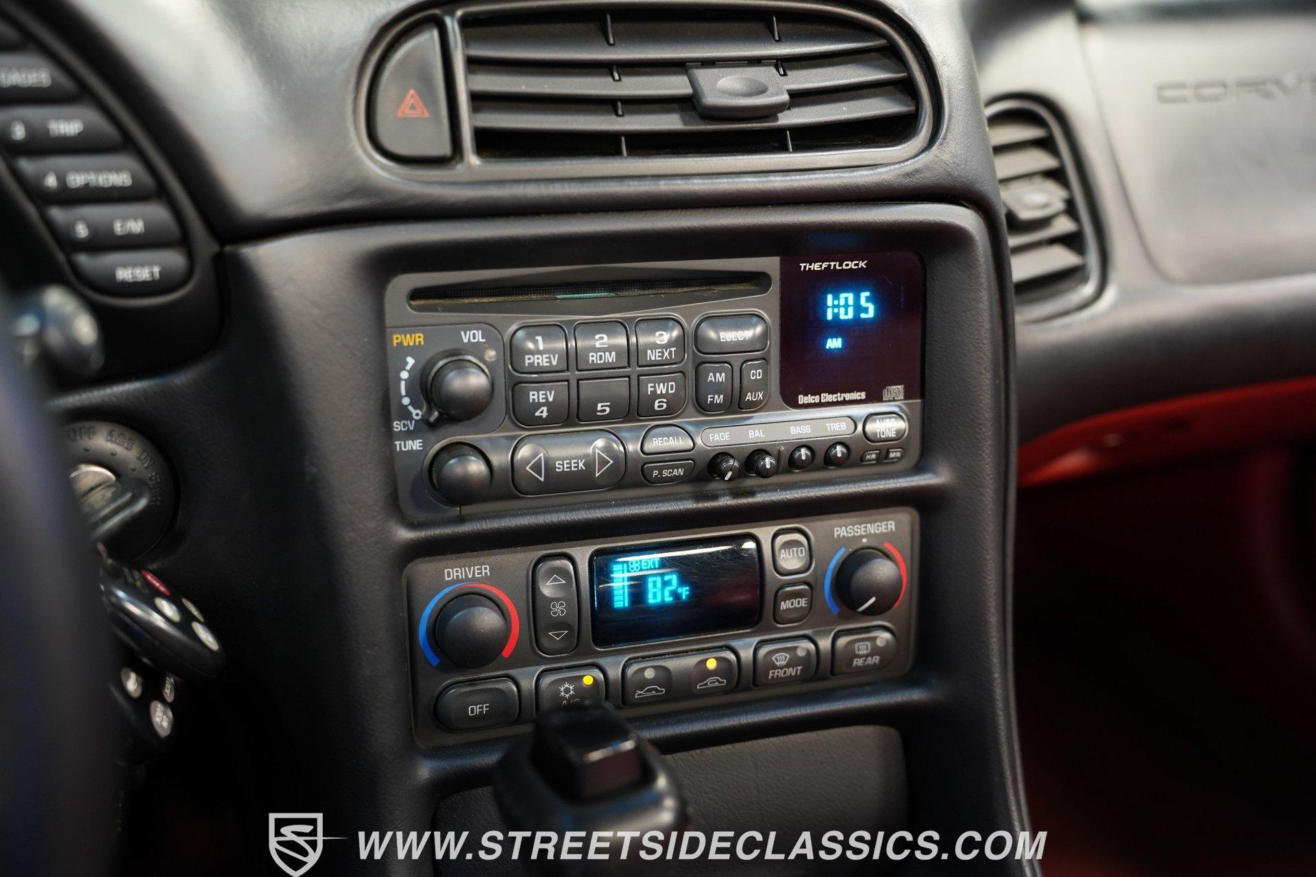 The 1997 Chevrolet Corvette represents the first year of the C5, and this example certainly makes it memorable. With only 41,065 carefully driven miles from new, and details like the factory-applied Arctic White paint, polished C6 ZR1 alloys, and LS1 motor are looking exceptionally well-kept. Corvette engineers crafted this fifth-generation sports car with flowing curves and aggressive angles that still look spectacular today. The removable targa top provides open-air driving enjoyment when desired. Upgraded chrome C6 Z06-style 17-inch wheels provide the perfect visual anchor, while the meaty tires staggered 275/40ZR17 front and 295/35ZR17 rear, offer substantial contact patches for maximum grip during spirited driving maneuvers. The interior features Firethorn Red leather, one of the rarest options for 1997. It was one of only three interior color options, but it is believed less than 728 were produced in this exciting color. The supportive bucket seats hold occupants firmly in place during aggressive cornering, while providing long-distance comfort for extended cruising sessions. The instrument panel displays vital information with classic Corvette clarity, putting critical data directly in the driver's field of vision. Luxury touches abound with power windows, power locks, and a climate control system that maintains perfect cabin temperatures. The AM/FM/CD stereo system with Bose speakers stands ready to provide the soundtrack for your next road adventure. Lifting the hood reveals the heartbeat of this iconic Corvette. The 5.7 Liter LS-1 V8, with its electronic fuel injection, is ready to provide that classic Corvette power, and is mated to a smooth-shifting 4-speed automatic 700R4 transmission for effortless performance. When it comes to cornering, the factory independent front and rear suspension setup provides confident handling for those twisty backroads. The power disc brakes (front and rear) ensure reliable stopping power when you need it. HIGHLIGHTS First-Year C5 Corvette Arctic White Paint Rare Firethorn Red Leather Seats 41,065 Miles from New C6 ZR1 Polished Alloys Rare and Attractive Firethorn Red Leather Interior Dual-Zone Automatic A/C Climate Control Power Steering, Windows, Locks, Mirrors, and Seats Cruise Control Dual Airbags and ABS AM/FM/CD Stereo System with Bose Speakers 5.7-Liter LS1 Fuel-Injected V8 Four-Speed Automatic Transmission with Overdrive Four-Wheel Power Disc Brakes Fully Independent Suspension Owner's Manual Experience pure American performance engineered for driving excitement with this low-mileage 1997 Chevrolet Corvette Coupe. With its low-mileage, rare Firethorn Red interior and thunderous V8, this Corvette delivers performance thrills on demand. Call today!