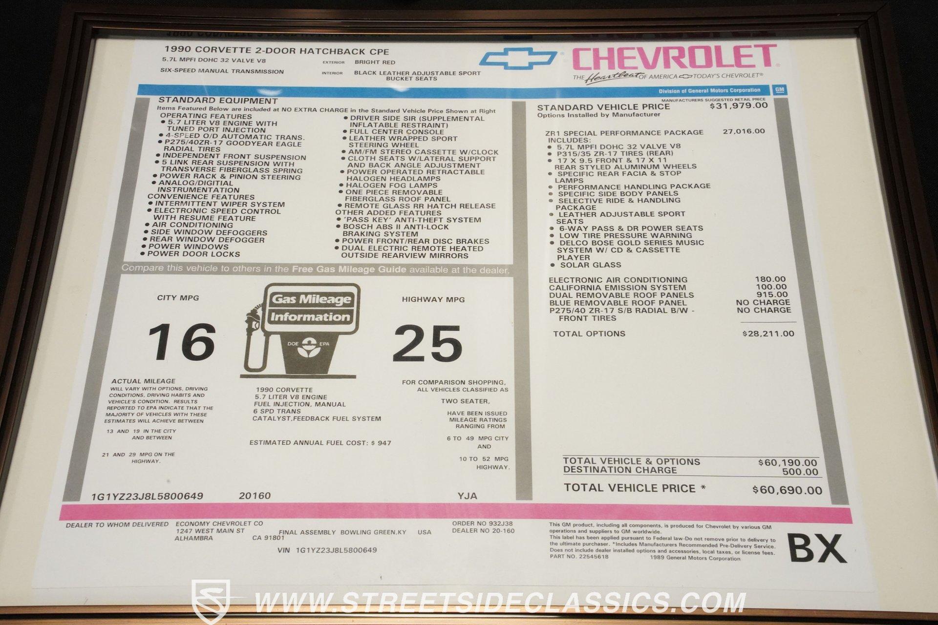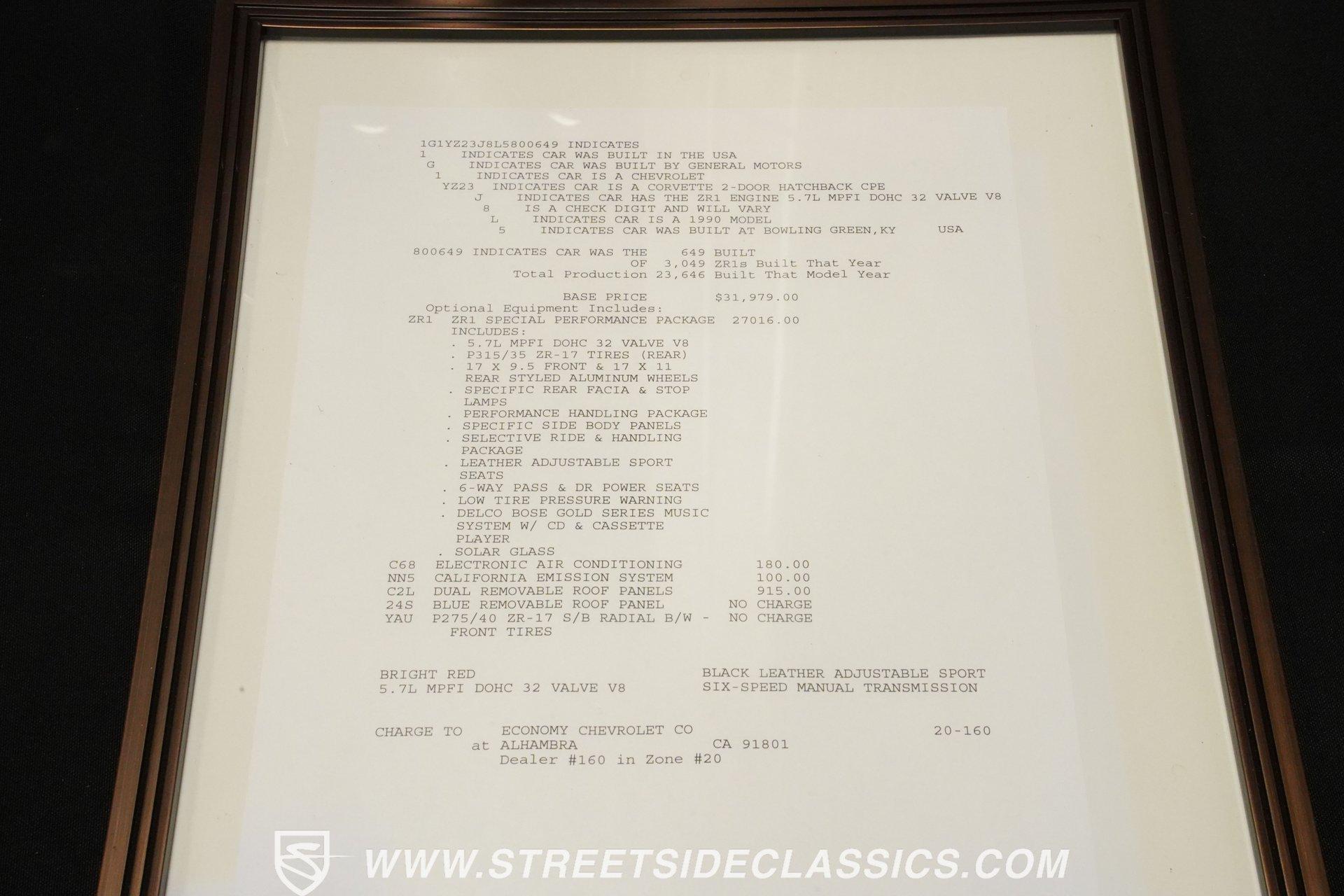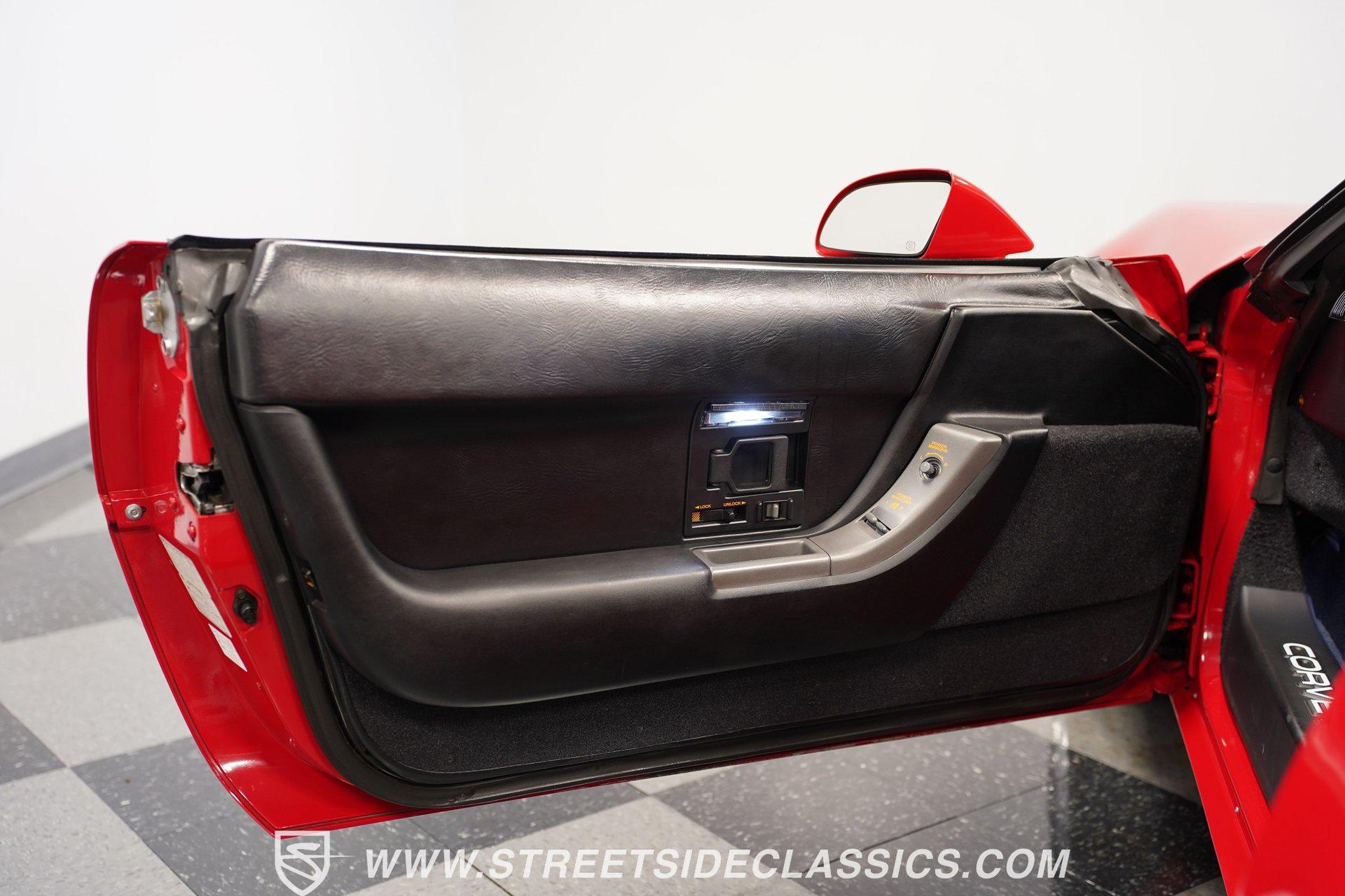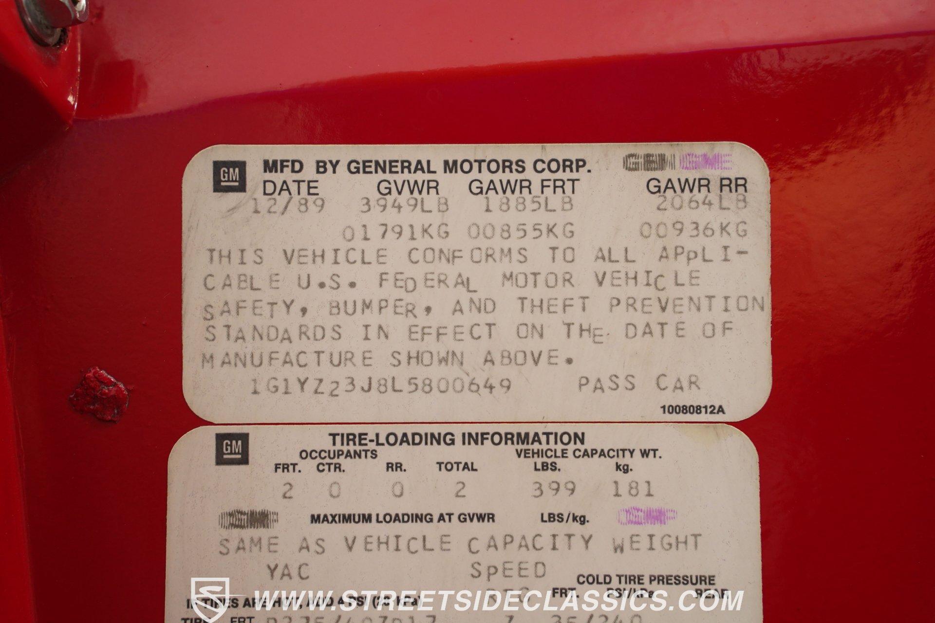 This is a real-deal, first-year C4 Chevrolet Corvette ZR-1. With gleaming Bright Red paint and only 20,304 miles on the odometer, this rare 1990 Corvette ZR-1 is striking. The Corvette has always been America's version of the European sports car, but the ZR-1 truly merged this attitude. It went to finishing school with the racing masters at Lotus in England, and you could instantly tell this was a special car. Back in 1990, the convex rear end and square-ish quad tail lights were exclusive to the "King of the Hill." Plus, the wider fenders gave this a more aggressive stance. And because this was the first year for the ultimate Corvette (it cost nearly double the standard car) its collectability has been firmly established. This is a factory red car, and that's always attractive on a Corvette. The factory-correct red interior looks great against the red exterior. But you can tell from its quality condition that it didn't spend too much time with targa roof out to showcase this very premium full color combo. The ZR-1 is meant to be a true driver's car, that's why the leather sports seats power adjust to your ideal position; the gauges are a terrific mix of analog and digital; and the shifter effortlessly falls into your right hand. More than just the ultimate sports car, this is also a terrific luxury coddler. That's because this classic comes loaded with features like automatic A/C climate control, power windows, power locks, an alarm system, cruise control, power steering, and an upgraded Alpine AM/FM/CD stereo. Because this is a modern classic, there are also great modern safety features like a driver airbag and anti-lock brakes. The ZR-1 engine still knows how to draw a crowd today. With the multi-valve setup developed by Lotus, and built by the sturdy masters at Mercury Marine, this was a unique motor the likes of which we might never see again. This 5.7-liter 32-valve V8 was rated at 375 hp, and it loves to pull hard through all six speeds. A supercar-level motor like this deserves the upgraded FX3 adjustable suspension that was part of the ZR-1 package. Plus, the powerful four-wheel disc brakes can halt the car's 175 mph capabilities. HIGHLIGHTS: 20,304 Miles from New Rare ZR-1 5.7-Litre, 32-Valve V8 6-Speed Manual Transmission Window Sticker Bright Red Paint 4-Wheel Disc Brakes Red Leather Interior Air Conditioning Exceptional Original Condition Upgrades Alpine CD Stereo Removable Targa Top Build Sheet This exceptional 1990 Chevrolet Corvette ZR-1 comes nicely documented with the original window sticker, build sheet and owner's manual. When such a desirable first-year ZR-1 is offered for such an affordable price, you know you need to hurry to take this supercar home. Call today!