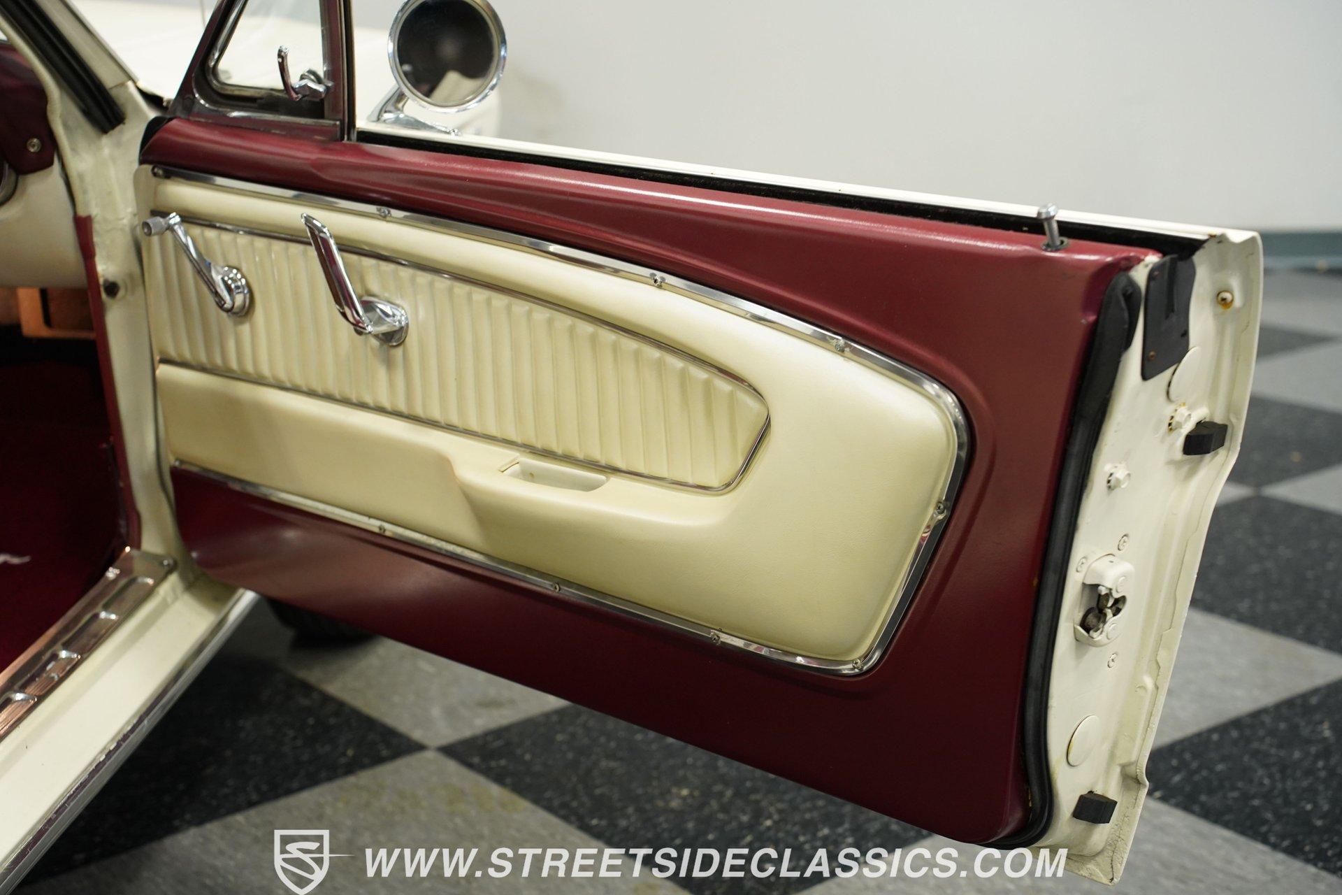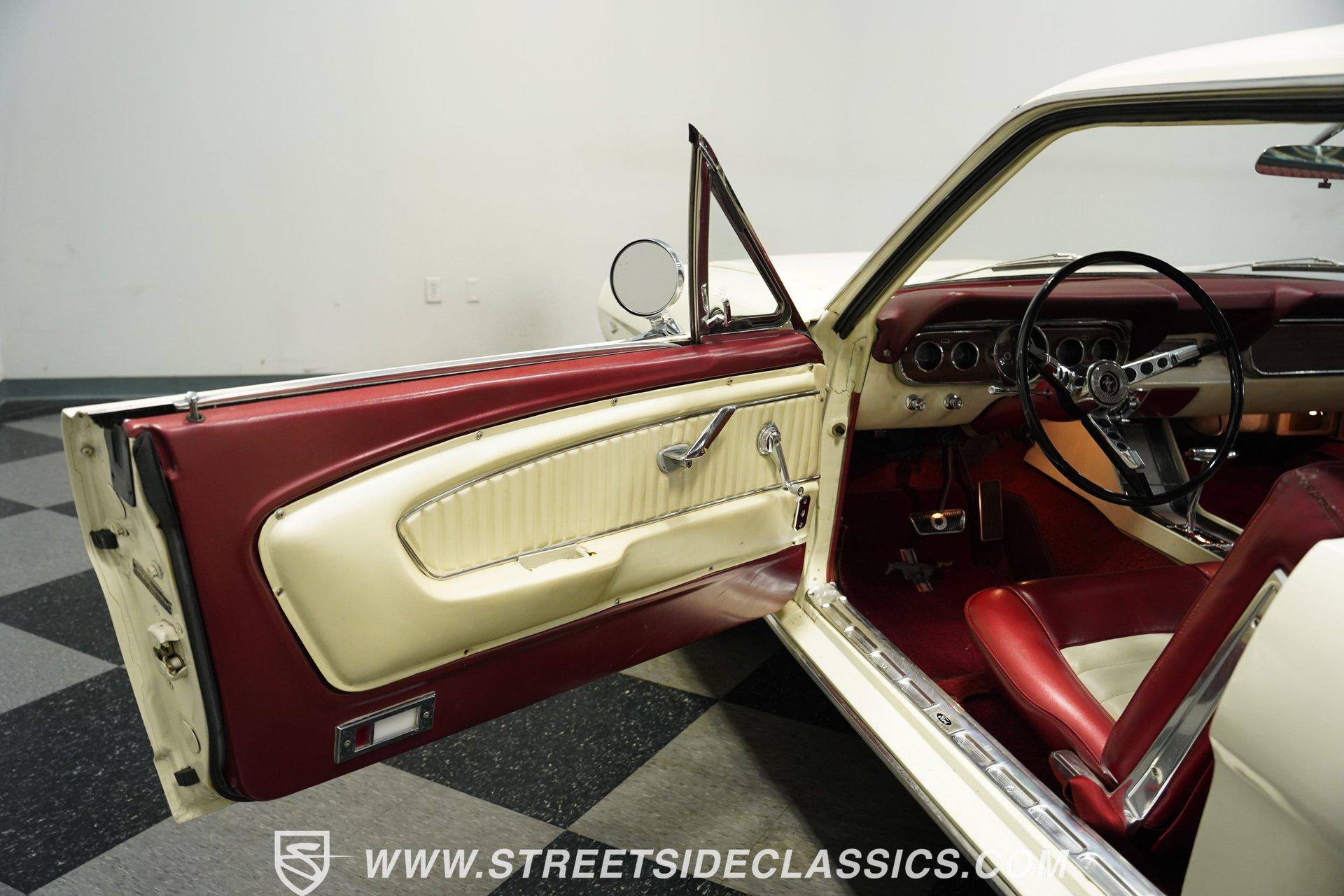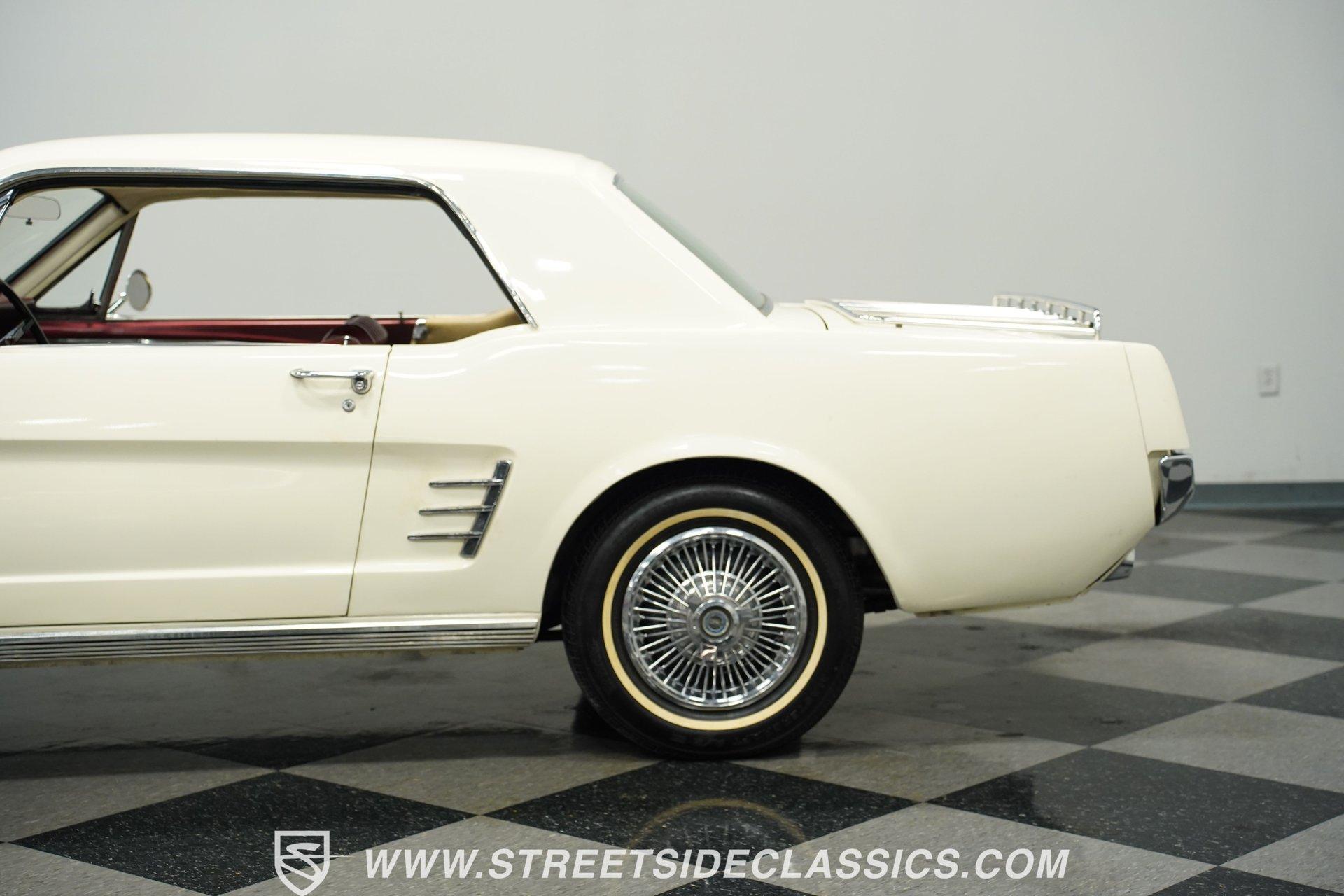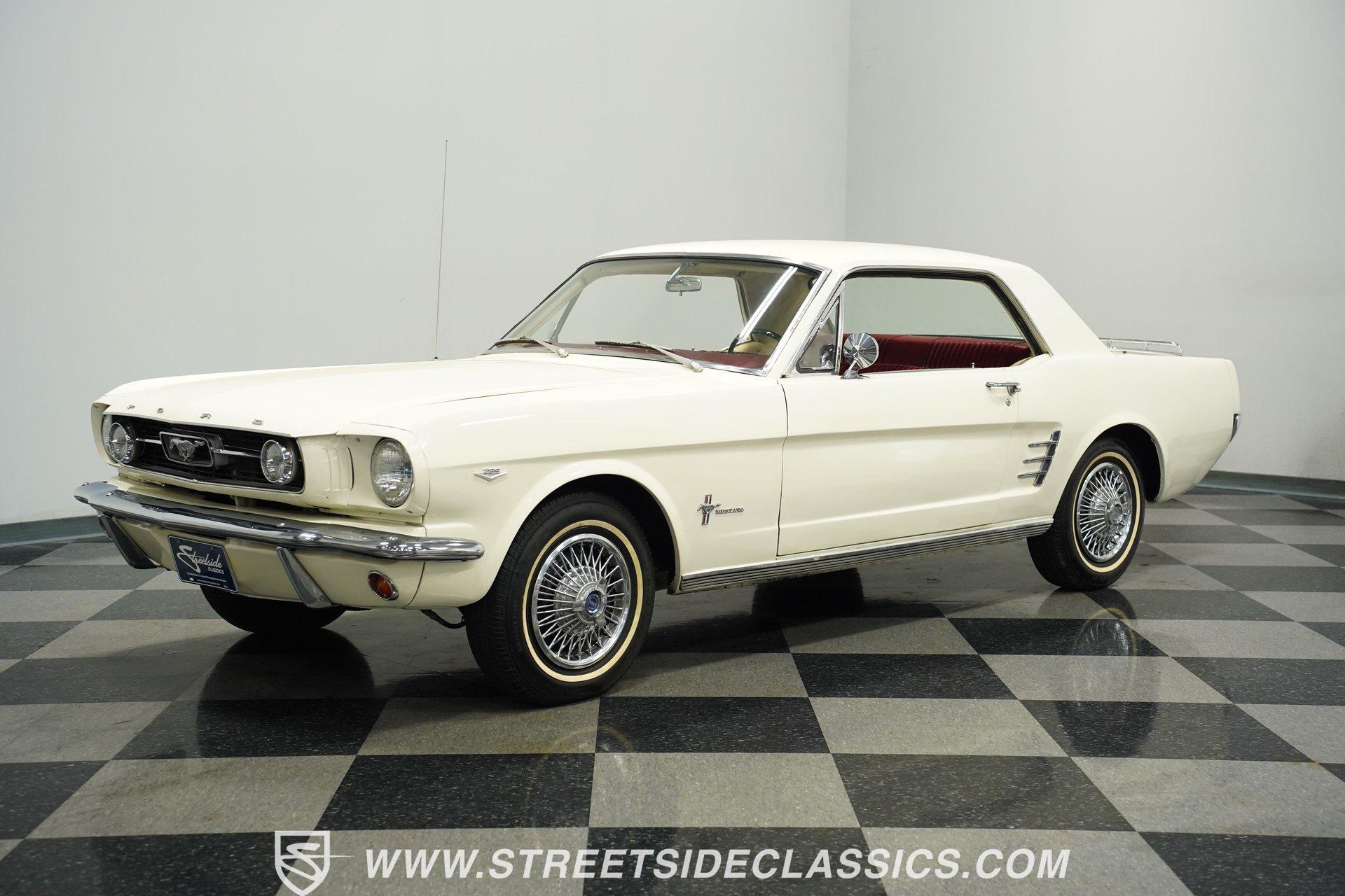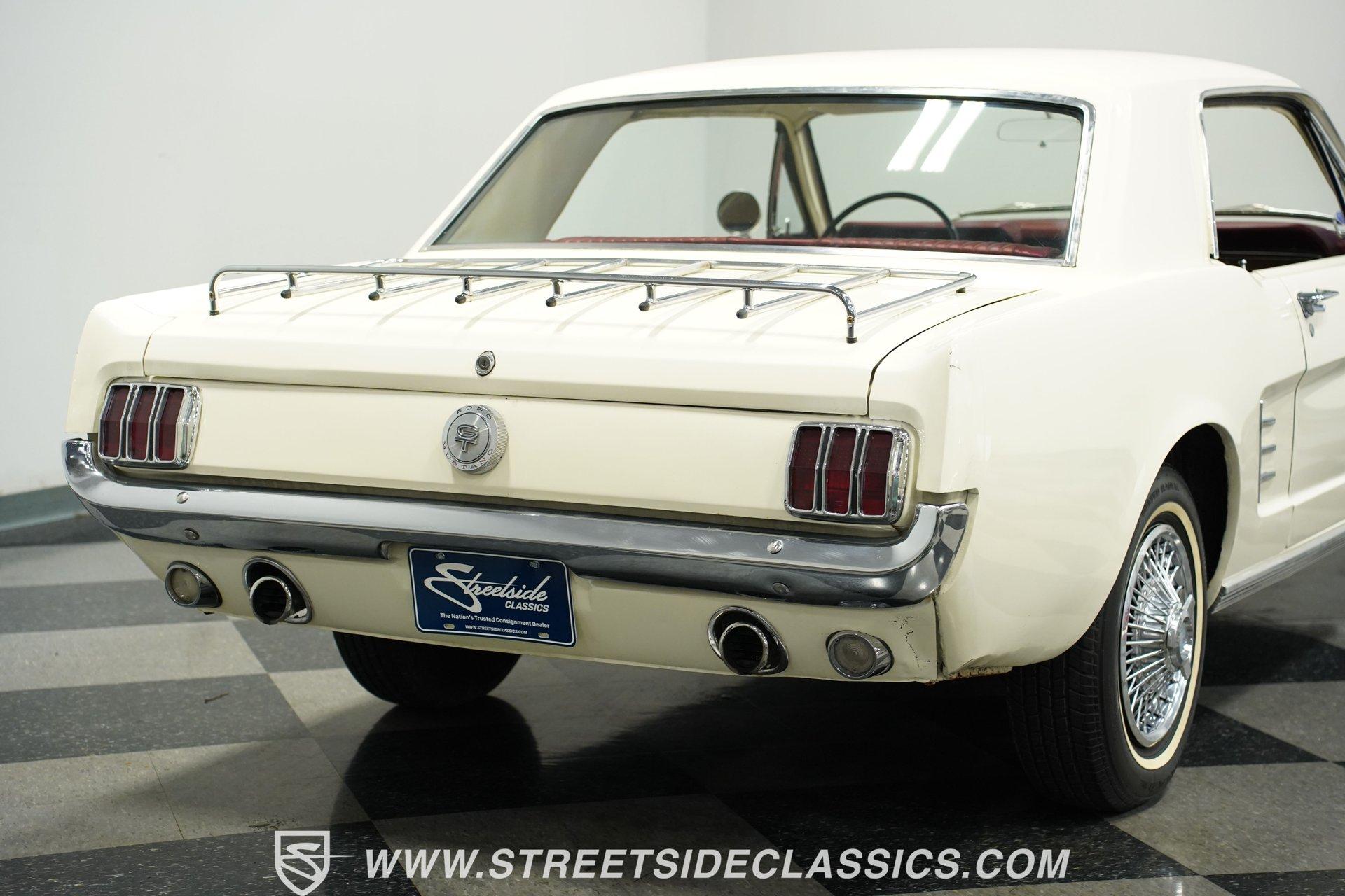 From the factory fog lights mounted in the grille to the signature GT gas cap, the 1966 Ford Mustang GT displays authentic performance credentials. Finished in white, this muscular coupe features dual exhaust pipes exiting through the rear valance for an aggressive look from behind. The 14-inch wheels carry P195/75R14 tires that fill out the wheel wells perfectly. Every angle of this classic American muscle car shows off the iconic lines Ford perfected in their early pony cars. Red and white upholstery creates a bold cabin with unmistakable 60s flair. Luxury package bucket seats wrapped in vinyl provide the right look for this GT, while the floor-mounted console houses the automatic shifter for quick gear changes. The factory AM radio adds to the authentic driving experience, completing an interior that Ford fans will appreciate. The original Pony interior package was uncommon for A-code Mustangs, giving this example extra distinction among collectors. Ford's potent 289 cubic inch V8 produces 225 horsepower through a single 4-barrel Holley carburetor. The C4 3-speed automatic transmission transfers power to the rear wheels, while power steering makes for easy cruising. Front disc brakes bring everything to a stop when needed. The suspension setup uses front coils with shocks and rear leaf springs, maintaining the classic Mustang driving character. Dual exhaust with aftermarket mufflers adds the right sound to match this GT's performance capabilities. HIGHLIGHTS: 289 V8 Engine 225 Horsepower 4-Barrel Holley Carburetor C4 3-Speed Automatic Transmission Front Disc Brakes Dual Exhaust With Aftermarket Mufflers Coil Front Suspension With Shocks Leaf Spring Rear Suspension White Exterior 14" Wheels P195/75R14 Tires GT Fog Lights GT Gas Cap Dual Exhaust Through Rear Valance Red & White Interior With Bucket Seats Luxury Package Seats Pony Interior Package Center Console Floor Shifter Power Steering AM Radio American muscle at its purest form. The 1966 Ford Mustang GT gives you V8 power, classic GT styling, and a hard-to-find Pony interior package. With its A-code 289 engine and crisp white-on-red color scheme, this Mustang GT delivers the ultimate classic car experience. Call today!