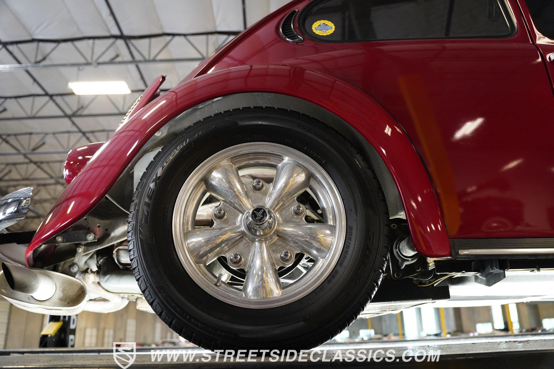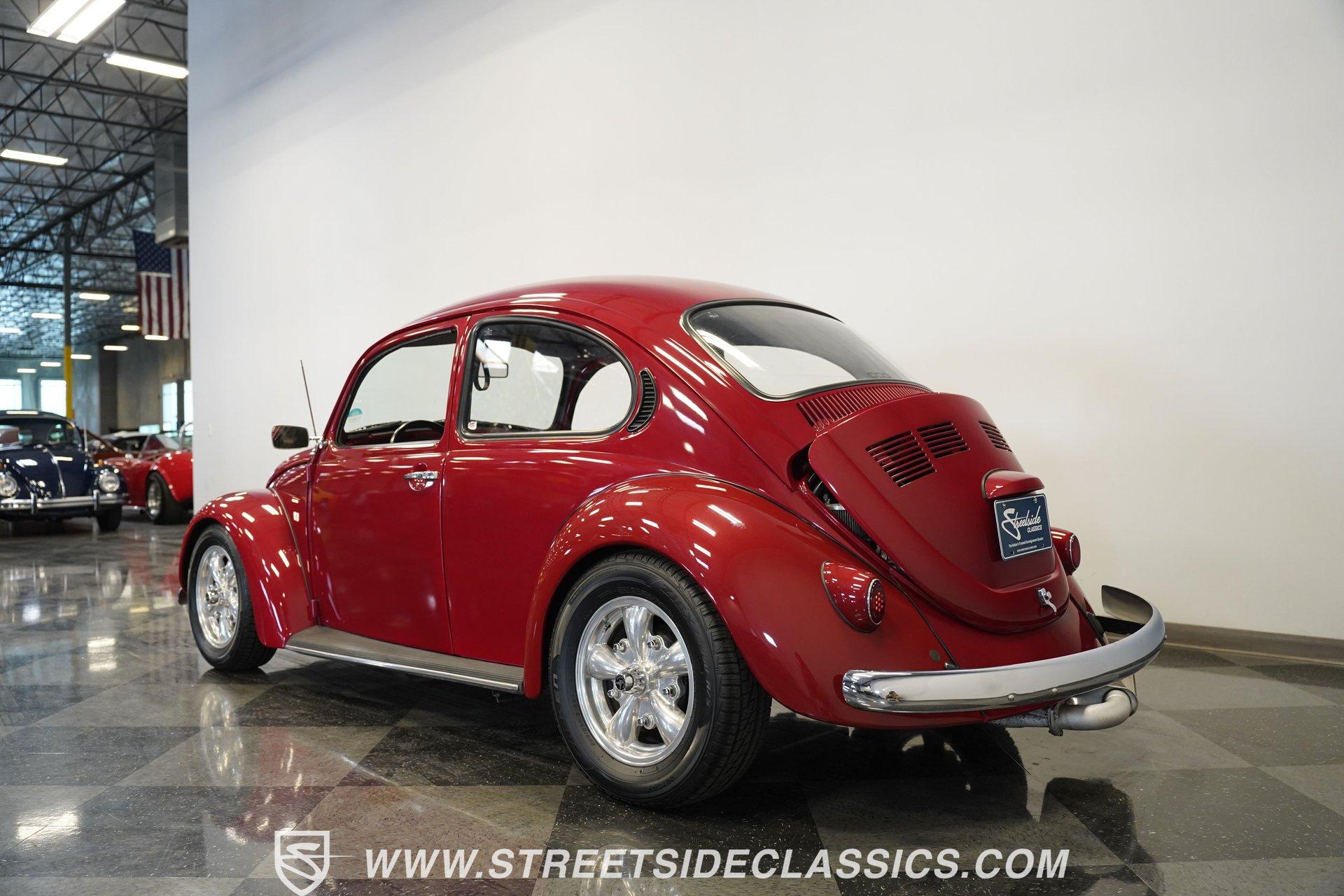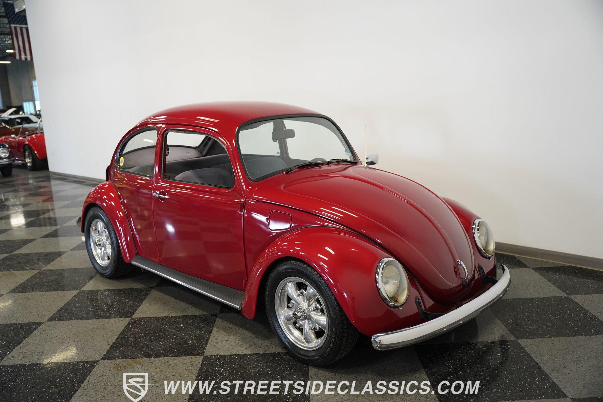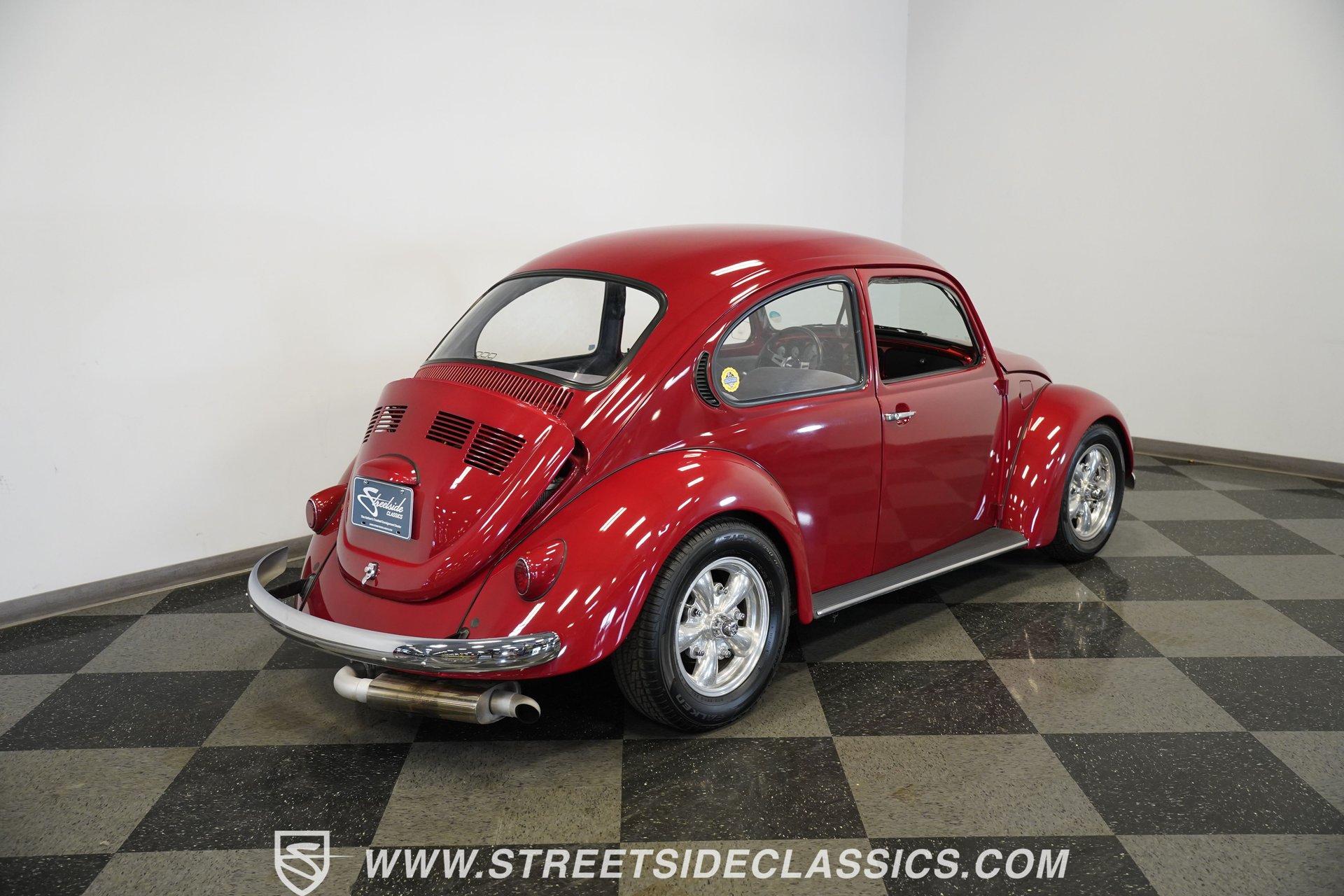 Getting the chance to pull a bona fide automotive icon into your garage is a rare enough opportunity in itself, but when that icon comes equipped with style that provides a callout to the model's storied past, along with a level of drivability that's sure to put a smile on your face, the opportunity becomes even rarer. That's exactly what this 1973 Volkswagen Beetle offers. Wearing a coat of glossy red paint, it's got an awesome pre-'60s vibe via a few modifications that offer a callback to the Beetle's earlier days, including deep-set headlights and the noticeable absence of the turn signal lenses normally mounted on top of the front fenders. A set of Spirit of America polished aluminum 5-spoke wheels adds a nice modern touch. You'll find some well-chosen modifications inside, leaving the interior with plush, upholstered seats in both front and back that are flanked by matching door panels. Up front, a Grant steering wheel sits on the column, while just behind it, Phantom II AutoMeter gauges keep tabs on your motoring functions. When it comes time for musical accompaniment for your road-bound adventures, there's a Kenwood AM/FM stereo waiting at the center of the dash, with both an auxiliary jack and Sirius XM connectivity to provide your own personal soundtrack. The 2110cc engine now sitting in the rear engine compartment represents a substantial power upgrade from the unenhanced powerplants of its era. Since its expanded displacement comes from the stock engine that a '73 would have rolled off the assembly line with, it does so without sacrificing authenticity. Fed by a 2-barrel carb and mated with a 4-speed manual transmission that shifts smoothly, it makes for a very pleasant driving experience. The engine idles smoothly and offers nice, smooth acceleration. Front disc brakes offer a level of fade-resistance and stopping ability that really come in handy in everyday driving conditions. And while a certain amount of steering wheel "sawing" has often been seen as part and parcel with classic cars, you'll find no such drawback on this VW, as it tracks straight and steers precisely. Highlights Upgraded 2110cc engine Smooth shifting 4-speed manual transmission Front disc brakes Aftermarket dual exhaust Kenwood AM/FM stereo with auxiliary input and Sirius XM connectivity. High-gloss red exterior Awesome pre-'60s look Spirit of America polished aluminum 5-spoke wheels Gray cloth interior Phantom II AutoMeter gauges Rust-free undercarriage Bucket seats With its handful of tasteful exterior modifications that do a great job of paying homage to this Bug's storied heritage while offering some nice modern touches, a very comfortable and inviting interior, and an experience behind the wheel that's hard to beat in a car of this era, this 1973 Volkswagen Beetle is a standout! It's a fun car to drive, with sharp road manners and enhanced power that equip it for the challenge of real-world road conditions. This is one very appealing German classic you won't want to miss. Call today!