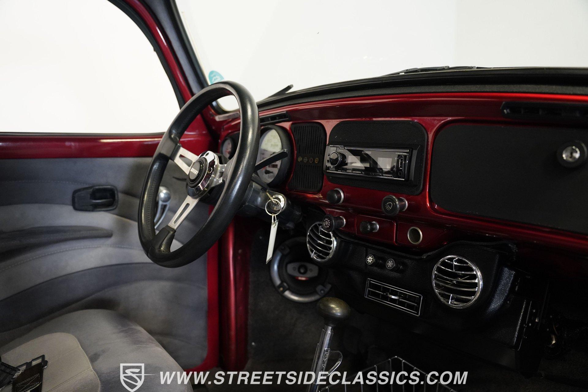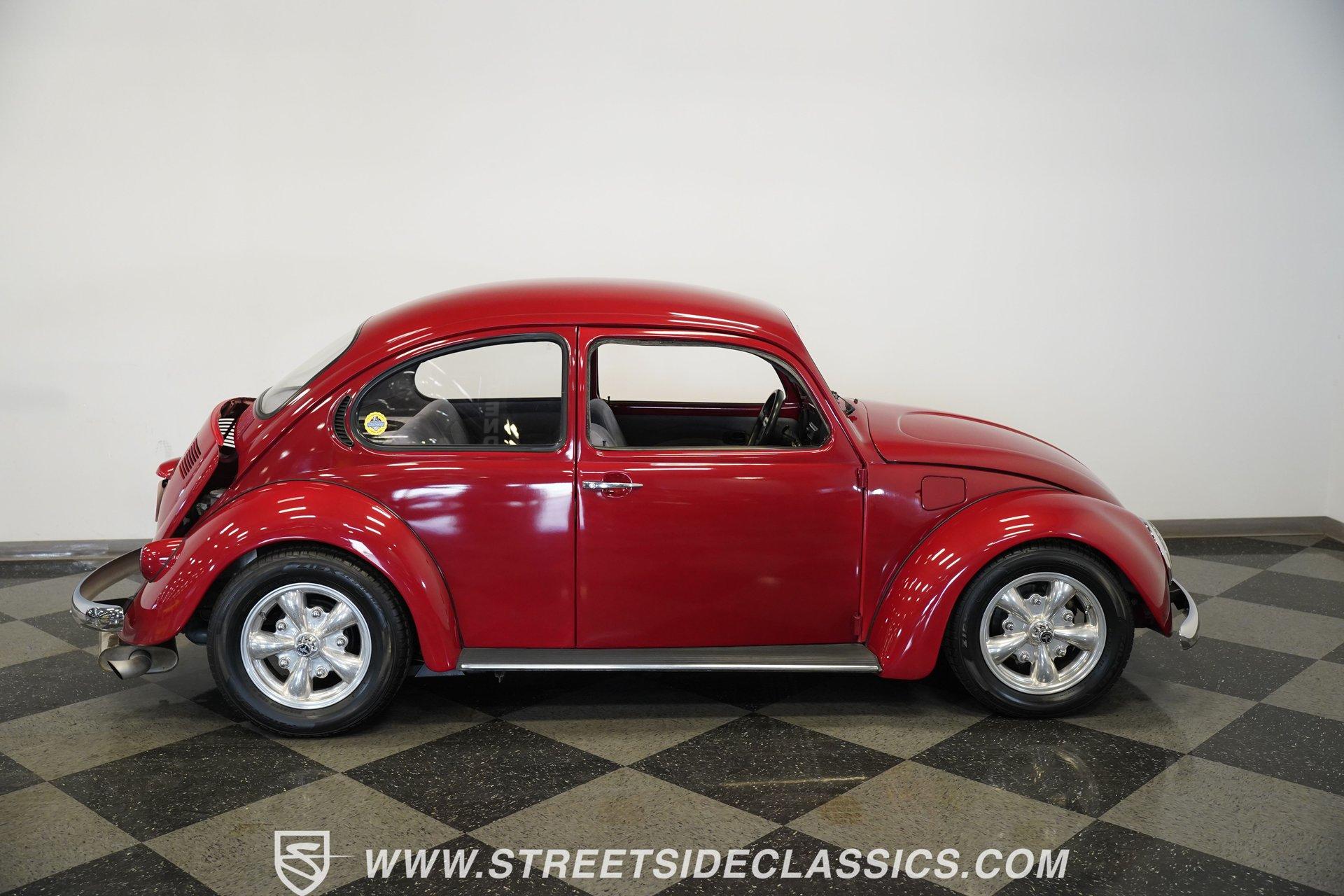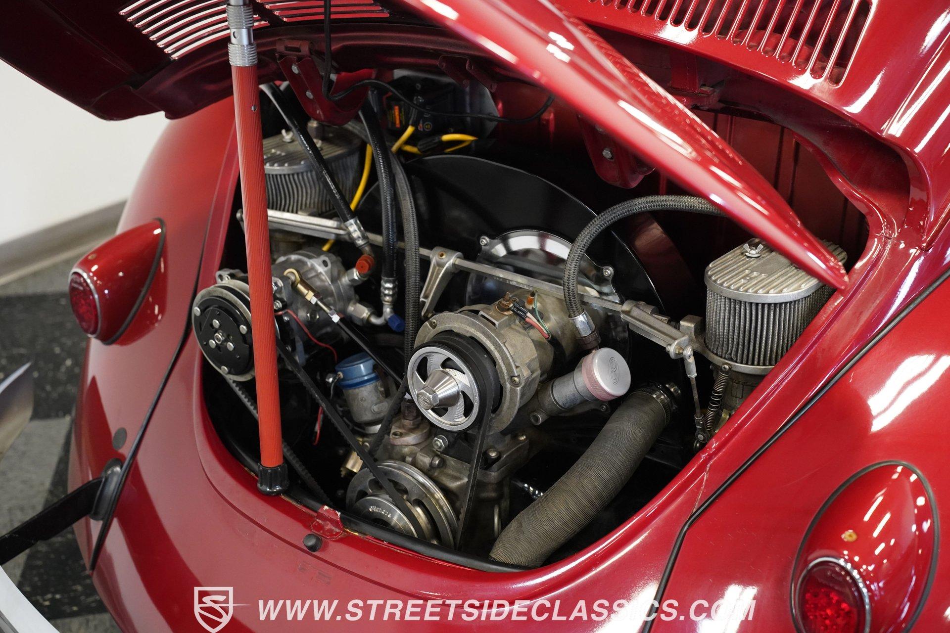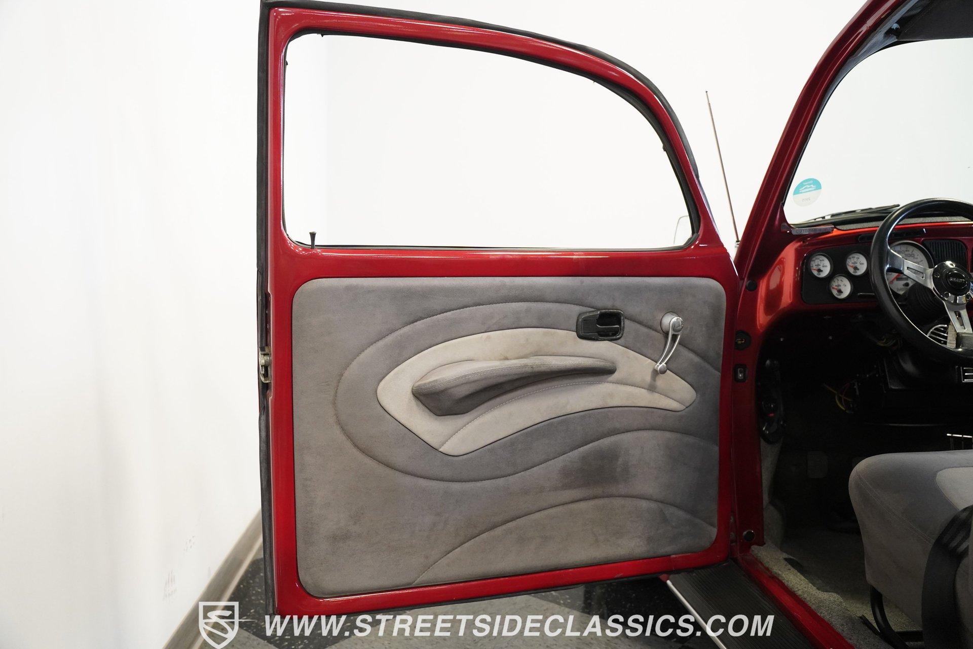 Getting the chance to pull a bona fide automotive icon into your garage is a rare enough opportunity in itself, but when that icon comes equipped with style that provides a callout to the model's storied past, along with a level of drivability that's sure to put a smile on your face, the opportunity becomes even rarer. That's exactly what this 1973 Volkswagen Beetle offers. Wearing a coat of glossy red paint, it's got an awesome pre-'60s vibe via a few modifications that offer a callback to the Beetle's earlier days, including deep-set headlights and the noticeable absence of the turn signal lenses normally mounted on top of the front fenders. A set of Spirit of America polished aluminum 5-spoke wheels adds a nice modern touch. You'll find some well-chosen modifications inside, leaving the interior with plush, upholstered seats in both front and back that are flanked by matching door panels. Up front, a Grant steering wheel sits on the column, while just behind it, Phantom II AutoMeter gauges keep tabs on your motoring functions. When it comes time for musical accompaniment for your road-bound adventures, there's a Kenwood AM/FM stereo waiting at the center of the dash, with both an auxiliary jack and Sirius XM connectivity to provide your own personal soundtrack. The 2110cc engine now sitting in the rear engine compartment represents a substantial power upgrade from the unenhanced powerplants of its era. Since its expanded displacement comes from the stock engine that a '73 would have rolled off the assembly line with, it does so without sacrificing authenticity. Fed by a 2-barrel carb and mated with a 4-speed manual transmission that shifts smoothly, it makes for a very pleasant driving experience. The engine idles smoothly and offers nice, smooth acceleration. Front disc brakes offer a level of fade-resistance and stopping ability that really come in handy in everyday driving conditions. And while a certain amount of steering wheel "sawing" has often been seen as part and parcel with classic cars, you'll find no such drawback on this VW, as it tracks straight and steers precisely. Highlights Upgraded 2110cc engine Smooth shifting 4-speed manual transmission Front disc brakes Aftermarket dual exhaust Kenwood AM/FM stereo with auxiliary input and Sirius XM connectivity. High-gloss red exterior Awesome pre-'60s look Spirit of America polished aluminum 5-spoke wheels Gray cloth interior Phantom II AutoMeter gauges Rust-free undercarriage Bucket seats With its handful of tasteful exterior modifications that do a great job of paying homage to this Bug's storied heritage while offering some nice modern touches, a very comfortable and inviting interior, and an experience behind the wheel that's hard to beat in a car of this era, this 1973 Volkswagen Beetle is a standout! It's a fun car to drive, with sharp road manners and enhanced power that equip it for the challenge of real-world road conditions. This is one very appealing German classic you won't want to miss. Call today!