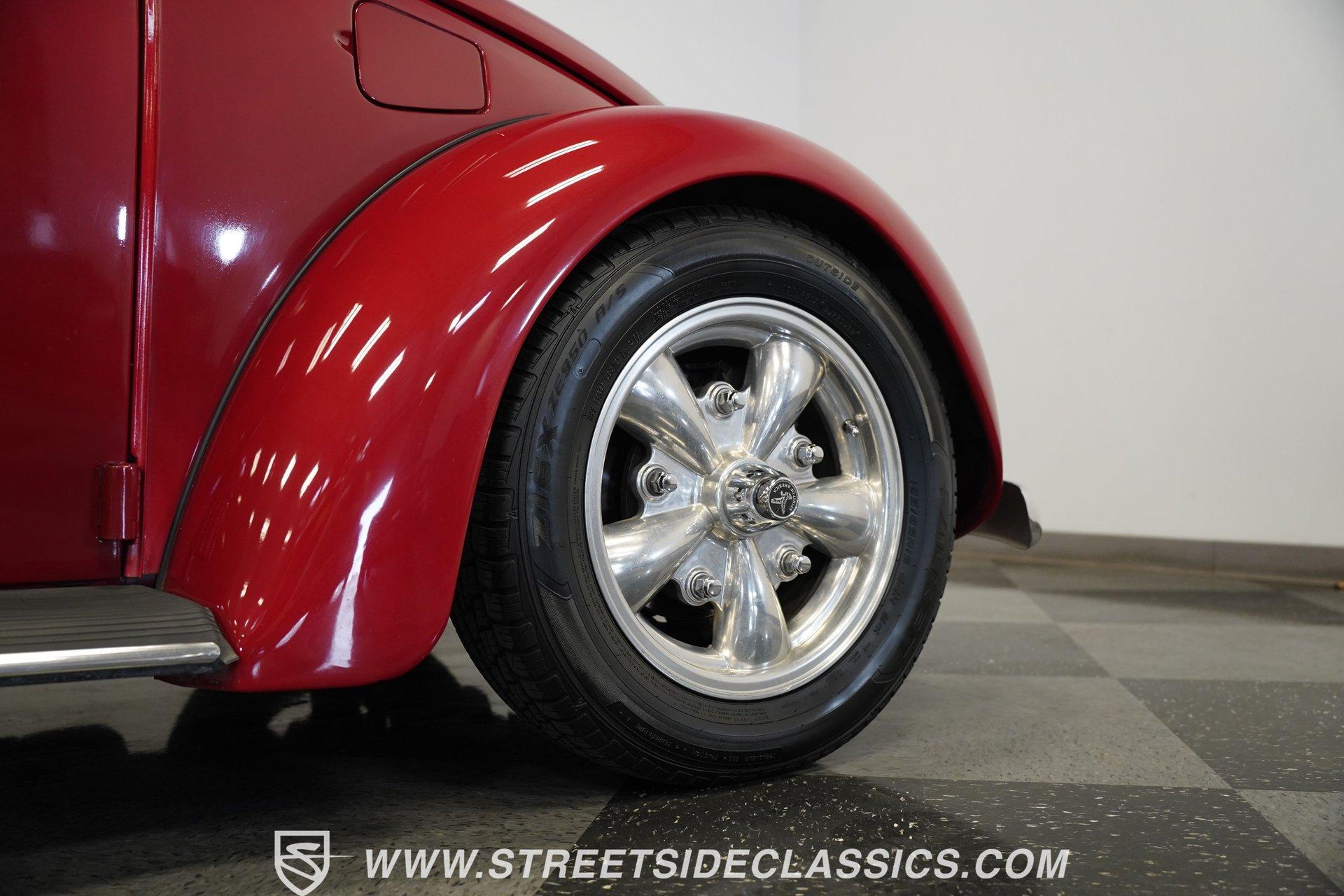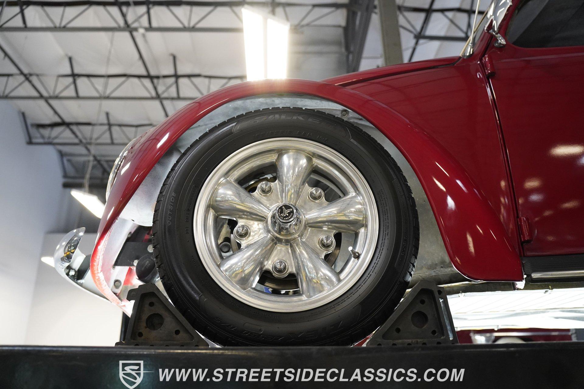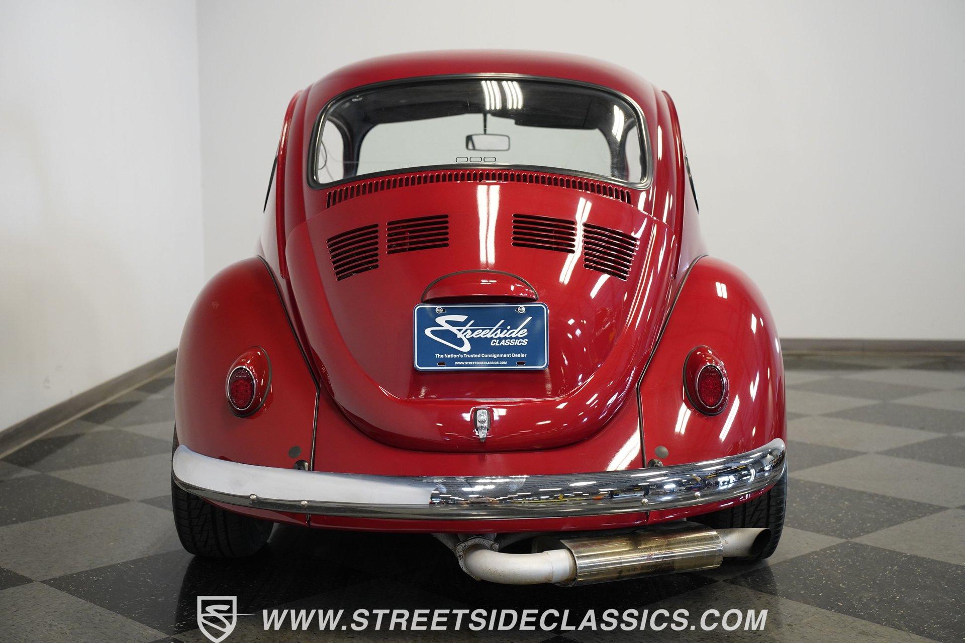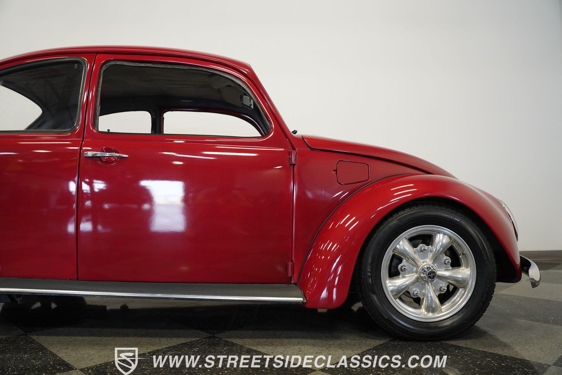Getting the chance to pull a bona fide automotive icon into your garage is a rare enough opportunity in itself, but when that icon comes equipped with style that provides a callout to the model's storied past, along with a level of drivability that's sure to put a smile on your face, the opportunity becomes even rarer. That's exactly what this 1973 Volkswagen Beetle offers. Wearing a coat of glossy red paint, it's got an awesome pre-'60s vibe via a few modifications that offer a callback to the Beetle's earlier days, including deep-set headlights and the noticeable absence of the turn signal lenses normally mounted on top of the front fenders. A set of Spirit of America polished aluminum 5-spoke wheels adds a nice modern touch. You'll find some well-chosen modifications inside, leaving the interior with plush, upholstered seats in both front and back that are flanked by matching door panels. Up front, a Grant steering wheel sits on the column, while just behind it, Phantom II AutoMeter gauges keep tabs on your motoring functions. When it comes time for musical accompaniment for your road-bound adventures, there's a Kenwood AM/FM stereo waiting at the center of the dash, with both an auxiliary jack and Sirius XM connectivity to provide your own personal soundtrack. The 2110cc engine now sitting in the rear engine compartment represents a substantial power upgrade from the unenhanced powerplants of its era. Since its expanded displacement comes from the stock engine that a '73 would have rolled off the assembly line with, it does so without sacrificing authenticity. Fed by a 2-barrel carb and mated with a 4-speed manual transmission that shifts smoothly, it makes for a very pleasant driving experience. The engine idles smoothly and offers nice, smooth acceleration. Front disc brakes offer a level of fade-resistance and stopping ability that really come in handy in everyday driving conditions. And while a certain amount of steering wheel "sawing" has often been seen as part and parcel with classic cars, you'll find no such drawback on this VW, as it tracks straight and steers precisely. Highlights Upgraded 2110cc engine Smooth shifting 4-speed manual transmission Front disc brakes Aftermarket dual exhaust Kenwood AM/FM stereo with auxiliary input and Sirius XM connectivity. High-gloss red exterior Awesome pre-'60s look Spirit of America polished aluminum 5-spoke wheels Gray cloth interior Phantom II AutoMeter gauges Rust-free undercarriage Bucket seats With its handful of tasteful exterior modifications that do a great job of paying homage to this Bug's storied heritage while offering some nice modern touches, a very comfortable and inviting interior, and an experience behind the wheel that's hard to beat in a car of this era, this 1973 Volkswagen Beetle is a standout! It's a fun car to drive, with sharp road manners and enhanced power that equip it for the challenge of real-world road conditions. This is one very appealing German classic you won't want to miss. Call today!