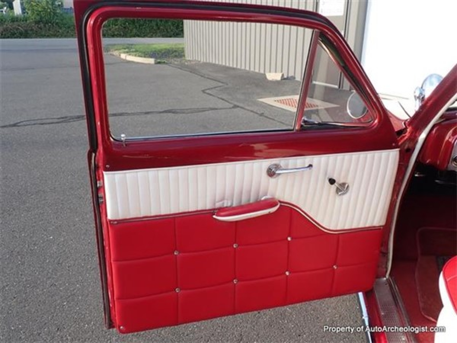 Plunk down in the rather comfortable red and white bench seat, turn the key, hear the electric fuel pump tick, turn the key one more notch and with two pumps of the gas pedal, the small block Chevy fires to life and rumbles through the custom bent dual exhaust. It sounds great, most SBC's do with headers and dual exhaust. Pull the shifter back to D and off she goes. Acceleration is quick and firm, steering is crisp, brakes stop the car very securely.