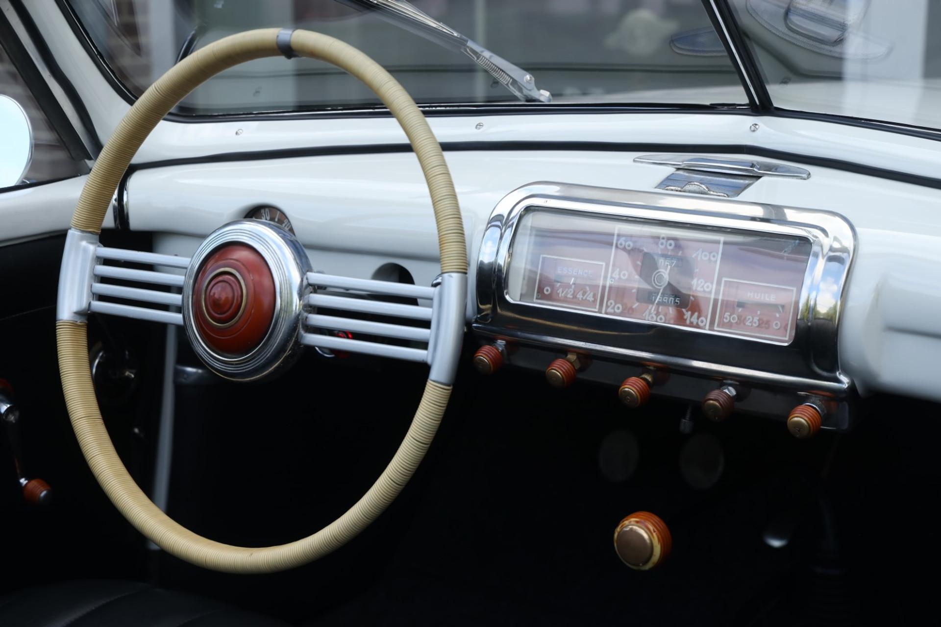 The Simca 8 Sport Cabriolet from 1950 is an exceptionally rare and refined example of French automotive craftsmanship combined with Italian design. Founded in 1934 as the French licensee of Fiat, Simca quickly gained a reputation for elegant and reliable cars. The 8 Sport was developed as an exclusive convertible, with its elegant lines penned by Pinin Farina and its aluminium body crafted by Facel Metallon. The result of this unique collaboration between Simca, Facel, and Stabilimenti Farina gives the car a distinguished place in post-war automotive history.