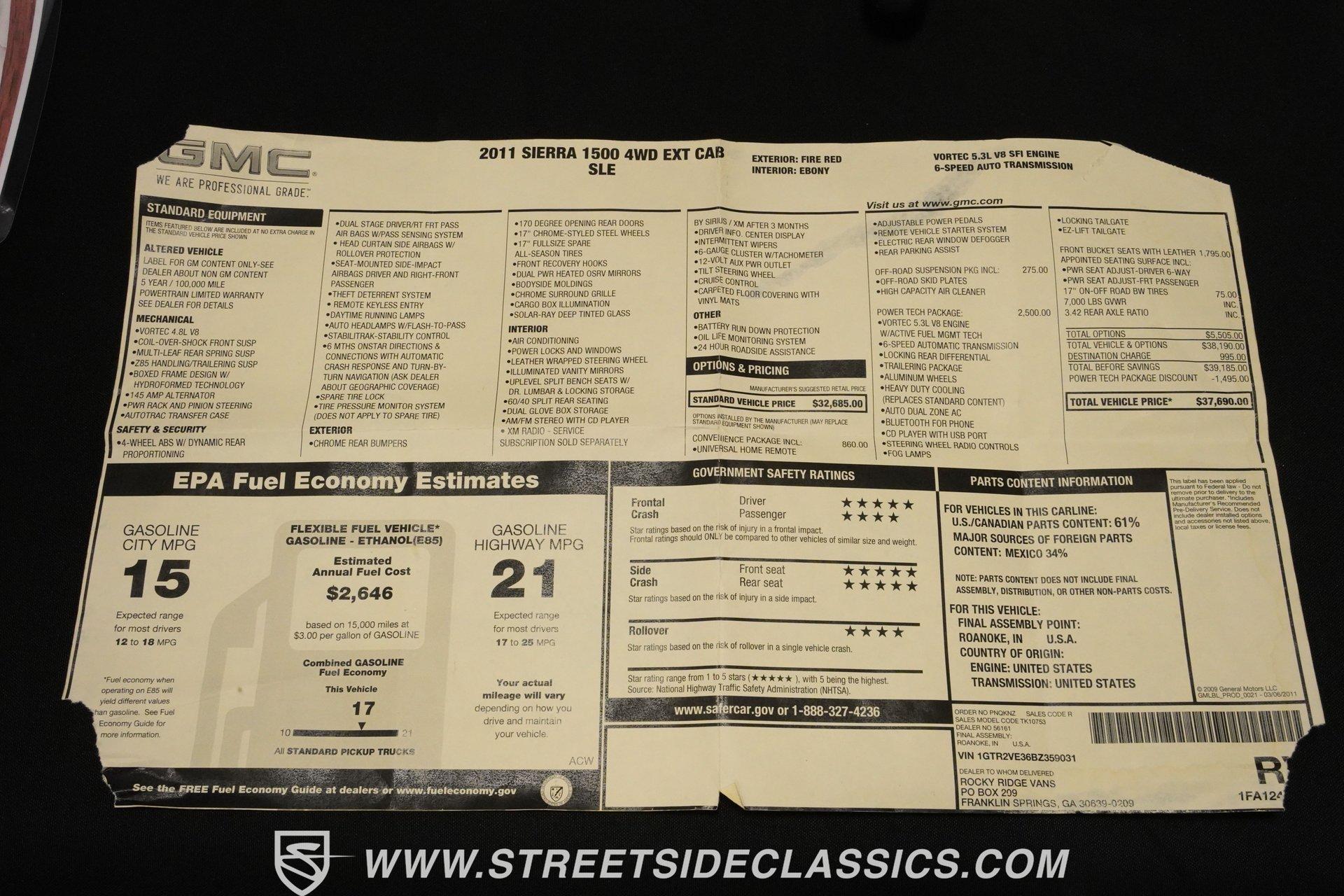 Second chances are always a good thing. If you were not in the financial position to buy a truck like this 2011 GMC Sierra 1500 Z71 4x4, you're in luck. With an almost-new 534 miles on its odometer, this Victory Red full-sized truck sports a Z82 heavy-duty trailering package and locking tailgate to complement its already-impressive Z71 Off-Road Package that includes things like metal skid plates, two-speed transfer case, off-road suspension, automatic locking rear differential, Hill Descent Control, and recovery hooks. Open up the front or clever rear-hinged rear doors, and we find an extremely inviting interior decked out in soft black leather. Large door pockets, center console storage, front seatback pockets, and rear storage compartments with 12-volt power outlets provide space for everything and everyone you want to bring along for the ride. A power-assisted and padded steering wheel features thumb controls, while an adjustable pedal set makes it easy for even shorter drivers to maneuver this large vehicle. An AM/FM/CD/AUX factory head unit comes complete with Bluetooth connectivity. At the same time, power heated seats, power locks, windows, and mirrors, along with remote door openers, offer a plethora of modern amenities. Under the hood, we find an aluminum block and heads, overhead valve 5.3-liter V-8 engine. Thanks in part to variable-valve timing, this small block is able to produce an impressive 315 horsepower at 5,200 rpm and 335 pound-feet of torque at 4,000 rpm, while still achieving 21 mpg on the highway. Power is routed through a 6L80E six-speed automatic transmission before being sent out to either the rear wheels or all four corners. HIGHLIGHTS: *534 Actual Miles *Original Window Sticker *Z71 Off Road Package *Rocky Ridge Suspension *Lifted *Hi-Po Fox Shocks *Reinforced Components *Heavy Duty Skid Plates *G80 HD Differential *Leather *Power Adjustable Pedals *Bluetooth *Power Everything *Heated Seats *Remote Door Openers *Original Owner's Manual *Original Window Sticker This 2011 GMC Sierra 1500 Z71 4x4 is equipped with an optional Rocky Ridge Suspension, which provides a better-than-stock ground clearance lift kit, high-performance Fox shocks, and reinforced components that are stronger and more durable than their stock counterparts, while still allowing the truck to maintain its factory steering geometry. This barely broken-in Z71 comes with its owner's manual and its original window sticker, making it easy to feel basically brand new, fourteen years later. So if you missed out the first time, here is your second chance to own this stellar Sierra.