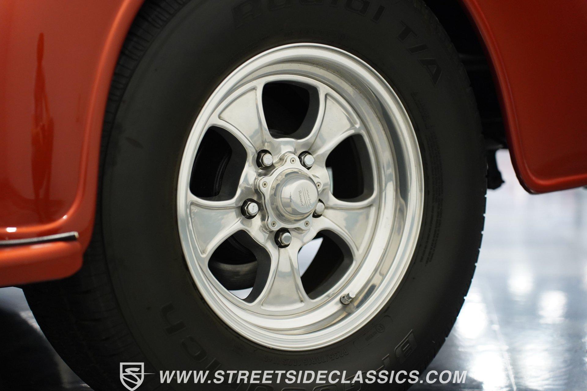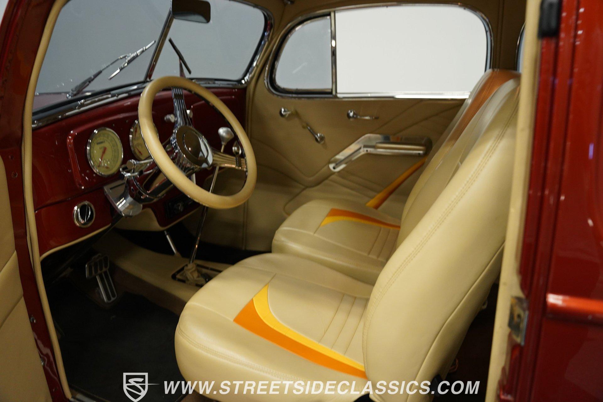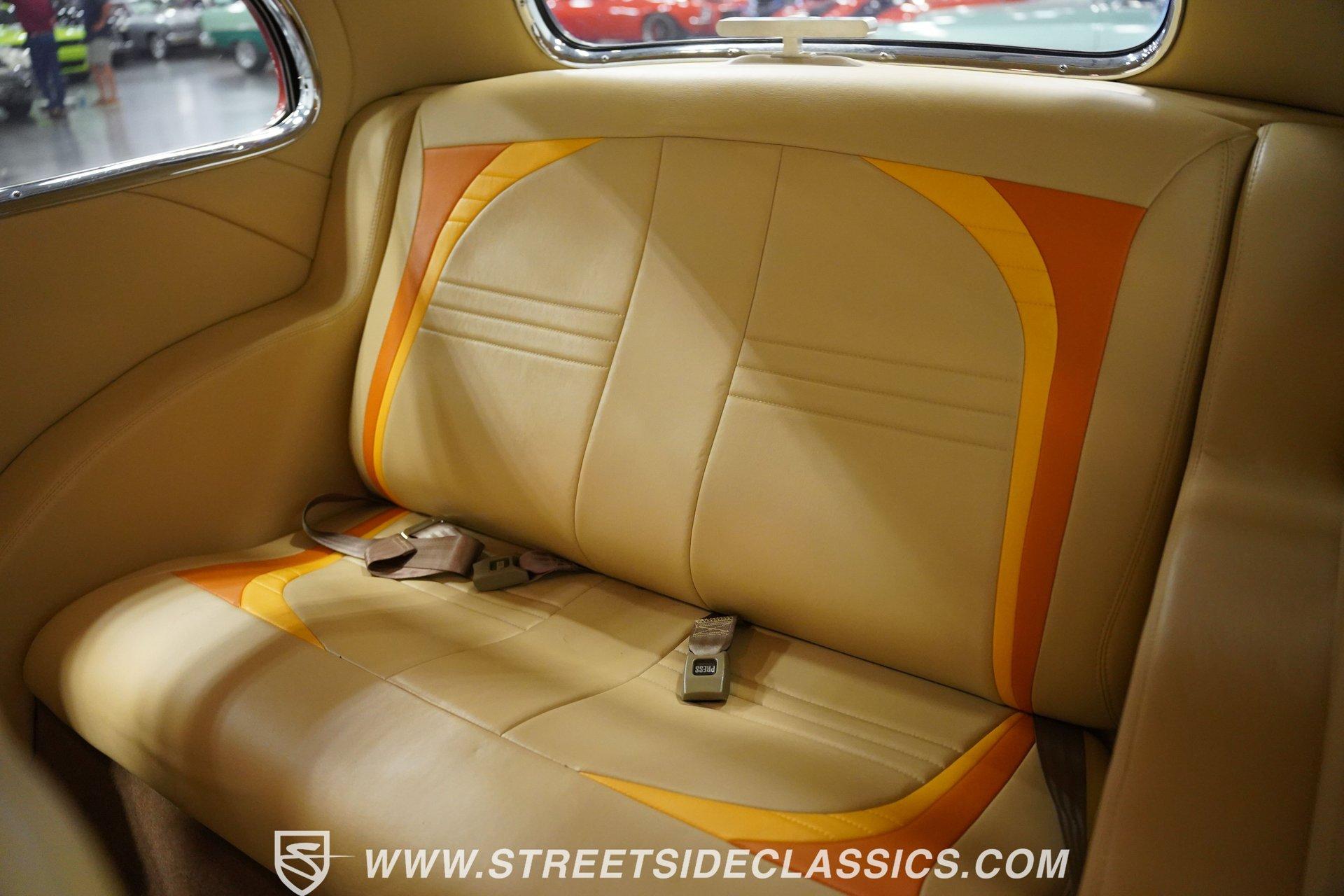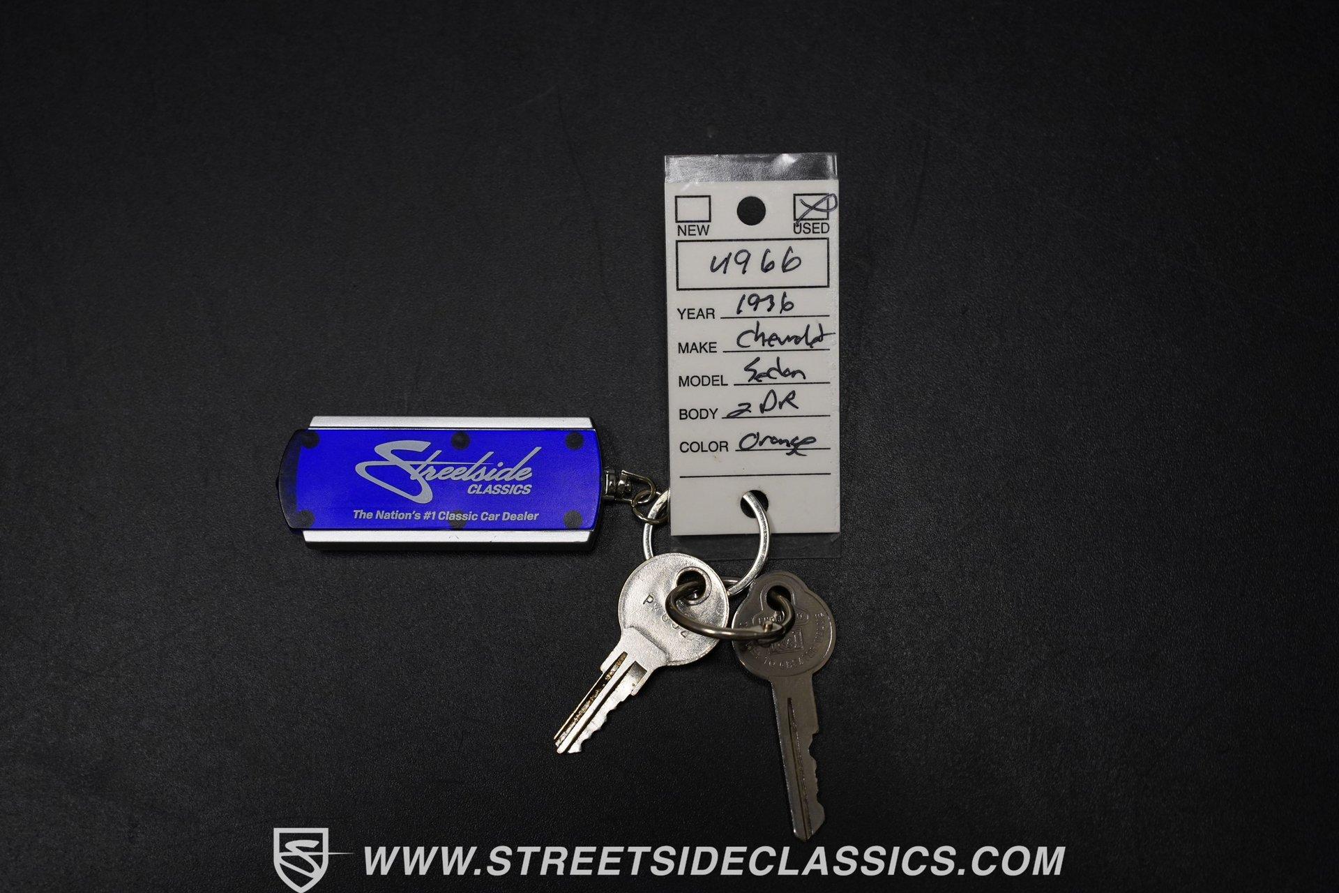 If you like older-looking classics, you'll feel right at home driving this 1936 Chevrolet Sedan Street Rod. The bright orange paint paired with the tan interior gives it a sophisticated look. Polished aluminum wheels, chrome bumpers, and a chrome front grille break up the orange nicely. There's nothing overly fancy about this Chevy-except it perfectly capitalizes on the phrase "less is more." The stance, the body lines, and the fiberglass wheel wells say it all without going overboard. It's simply a beautifully designed work of art. The interior looks great as well. Beige seats and door panels with elegant orange/yellow accents add a creative touch. Chrome details throughout the interior highlight the orange dashboard that matches the exterior paint. Aftermarket gauges look sharp, are easy to read, and tie in with the color scheme. The steering wheel blends seamlessly with the rest of the interior, while the tilt steering column and long shifter lever make driving and shifting a breeze. A Pioneer AM/FM/Aux radio with Bluetooth lets you enjoy your favorite music, and the Vintage Air Cluster gives you full control over heat, defrost, and A/C. And out back, the trunk features a clean, well-organized setup for all your cargo needs. Under the hood sits a 350 cubic-inch V8 crate motor paired with a 700R4 4-speed automatic transmission. This respected transmission runs back to a Chevy solid rear axle with 3.73 gears. Up front, a Mustang II clip with tubular A-arms and Fatman coilovers handles suspension duties, while the rear uses leaf springs, shocks, and a sway bar. The Chevy rolls on 15-inch American Racing wheels wrapped in P215/70R15 tires up front and P235/70R15 tires in the rear. Power disc brakes at all four corners ensure reliable stopping power. For that unmistakable V8 sound, the 350 breathes through shorty headers, dual exhaust, and aftermarket mufflers. Highlights: 350 Cubic-Inch Crate Motor Holley Carbaruter Edelbrock Intake 700R4 4-Speed Automatic Transmission Chevy Solid Rear Axle With 3.73 Gears Front Mustang II Clip With Tubular A-arms And Fatman Coilovers Rear Leaf Springs, Shocks, And A Sway Bar 15-inch American Racing Wheels Front And Rear Power Disc Brakes Front P215/70R15 Tires And Rear P235/70R15 Tires Shorty Headers With Dual Exhaust, And Aftermarket Mufflers Pioneer AM/FM/Aux Radio With Bluetooth Vintage Air Cluster For Heat/Defrost/A/C Vintage Steering Wheel With Tilt Long Custom Floor Shifter Vintage Aftermarket Gauges When you picture yourself cruising in a classic, imagine being behind the wheel of this 1936 Chevrolet Sedan Street Rod. You'll grab attention everywhere you go while showing the world what a true classic street rod is all about. Call Today.