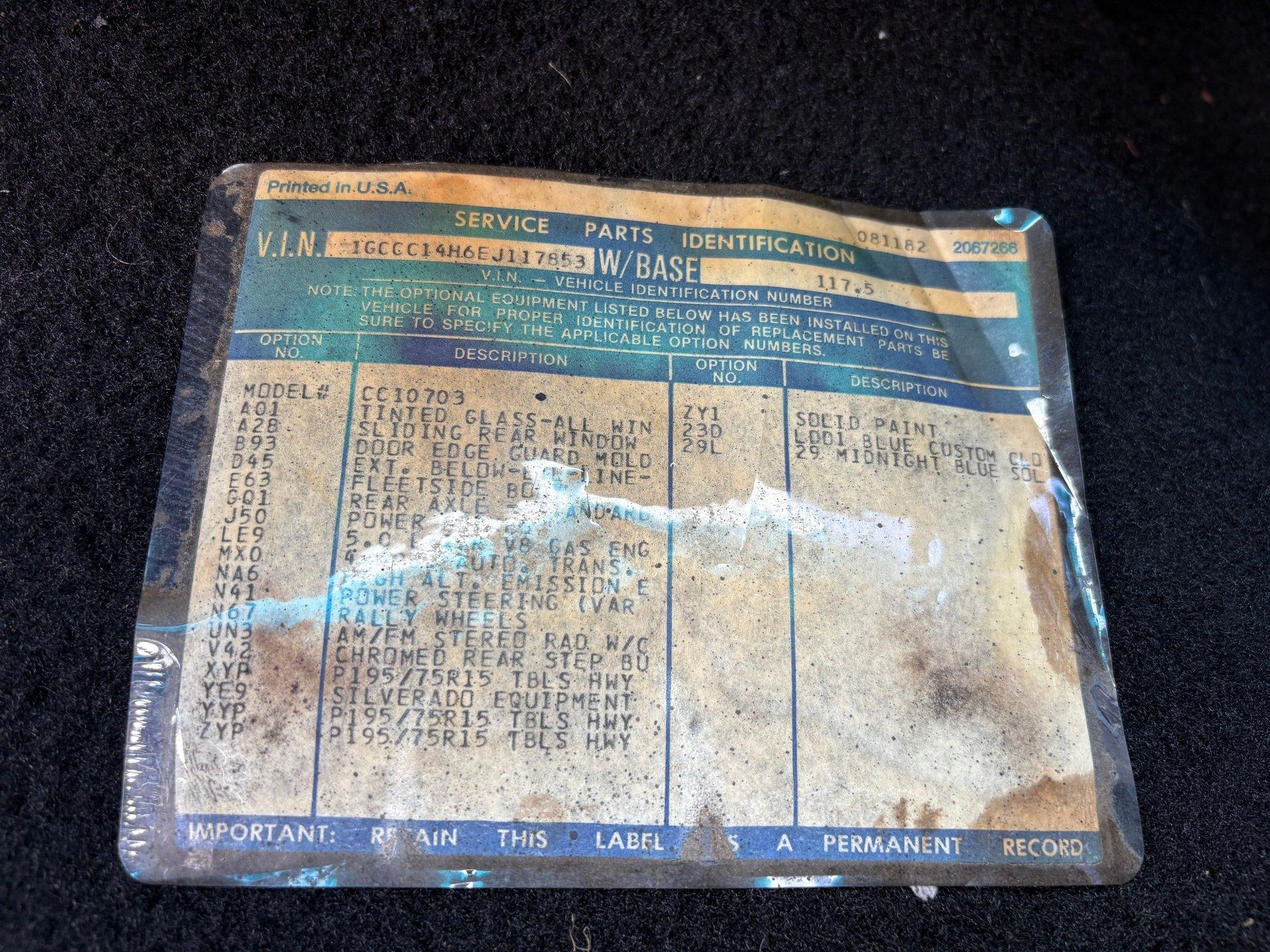 - VIN Code1GCCC14H6EJ117853
