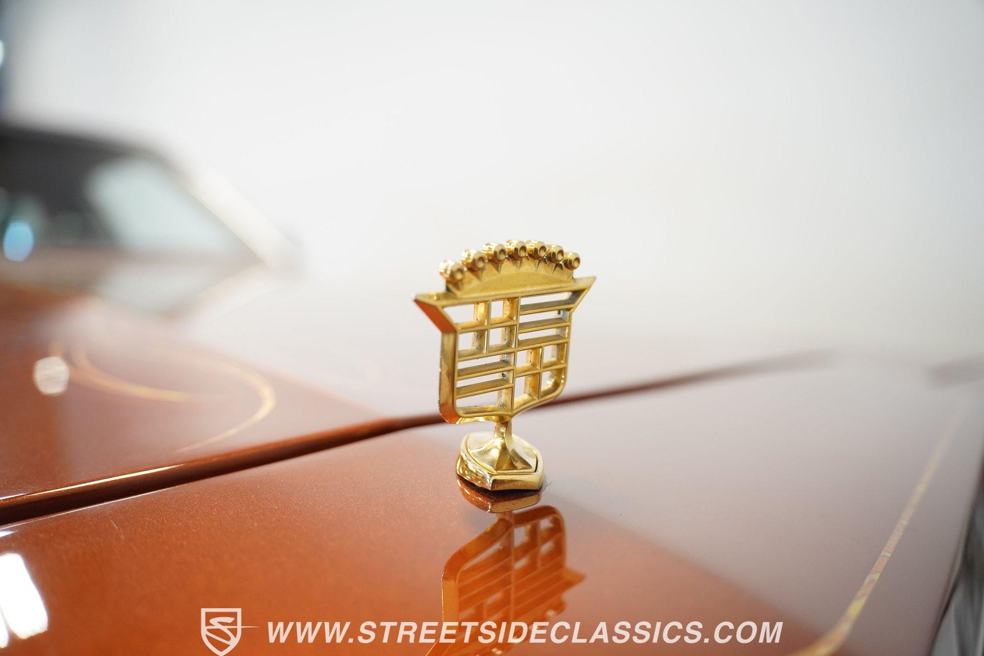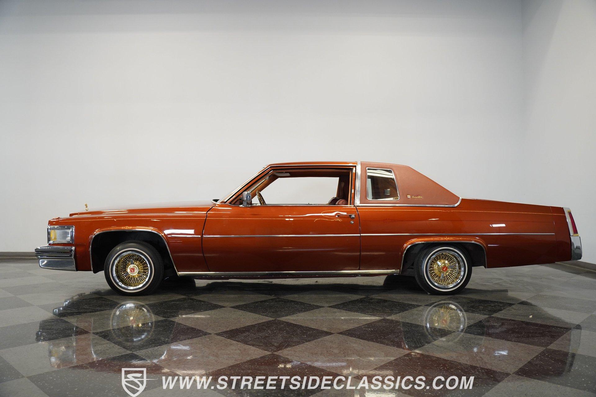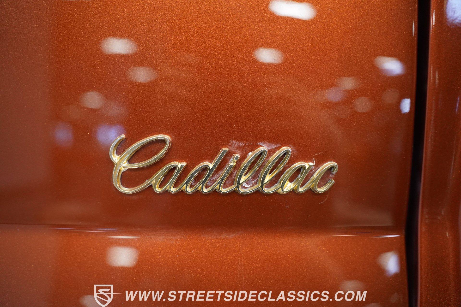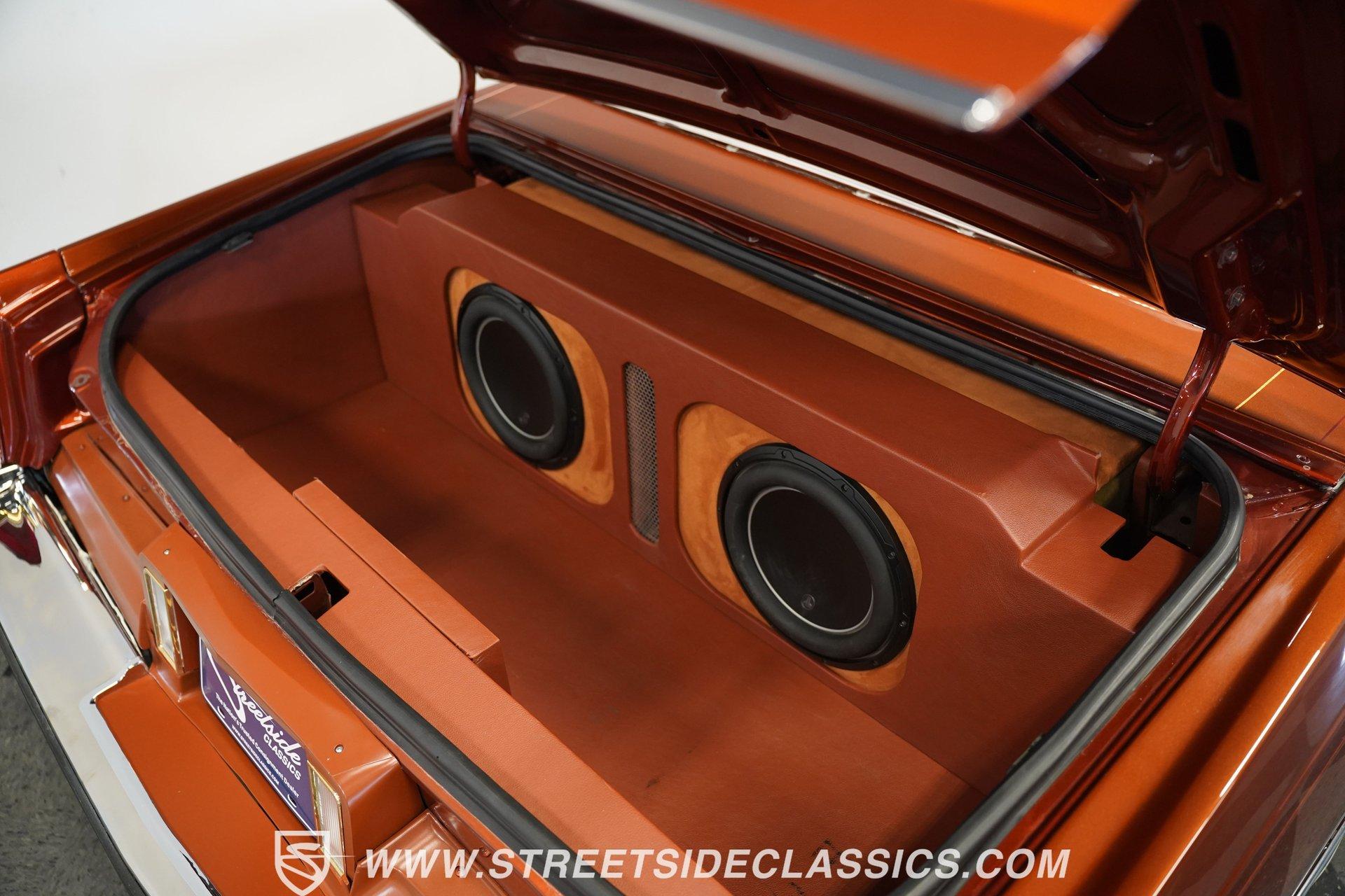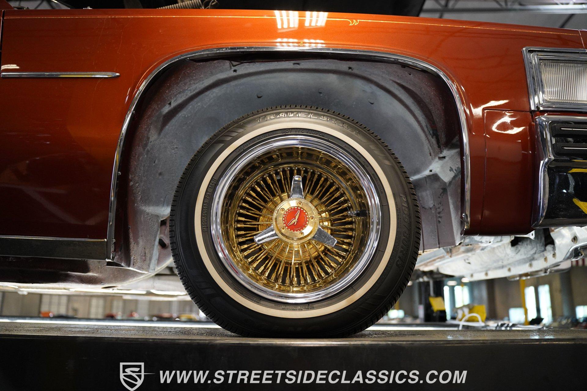 Custom orange metallic flake paint adorns this 1977 Cadillac Coupe DeVille Lowrider, crafted for the streets and shows alike. Artisan-applied gold leaf details trace the classic Cadillac lines with precision while hand-executed pinstriping adds another dimension of craftsman's touch. The leather top remains unmarked, displaying the Coupe DeVille insignia with pride. The profile sits low and ready on 13" Zenith knock-off wire wheels, each wrapped in fresh 155/80/13 rubber sporting 2024 date codes. This big-bodied Caddy carries the unmistakable lowrider identity through every square inch of its massive frame. Open the door to an all-orange interior that pulls you into a world of custom cruiser luxury. The bench seats mix vinyl with faux suede in matching orange hues, creating a unified color palette throughout the cabin. Rear cup holders have even been integrated. A column shifter sits ready for action while power windows add convenience at the touch of a button. The tilt wheel adjusts for comfort during long boulevard sessions. An AM/FM/AUX stereo fills the cabin with your chosen soundtrack, backed by upgraded speakers and trunk-mounted subwoofers that add bass to your cruise down main street. The substantial 425 V8 big block sits within the engine bay, fuel fed through a QJet single 4-barrel carburetor for strong acceleration when called upon. A TH400 3-speed automatic transmission sends power to the 10-bolt rear end without fuss. The front independent suspension with control arms and coil springs works with the solid rear axle setup to achieve the perfect street stance. Front power disc brakes pull this boulevard cruiser to a stop with authority while power steering makes navigation through tight spots a breeze during car shows or night cruises. HIGHLIGHTS: 425 V8 Engine 3-Speed Automatic TH400 Transmission QJet Single 4-Barrel Carburetor Front Power Disc Brakes Independent Front Suspension with Control Arms and Coil Springs Solid Rear Axle with Coil Springs and Shocks 10-Bolt Rear Axle Orange Metallic Custom Paint Gold Leaf Accents and Hand Pinstriping 13" Zenith Knock-Off Wire Wheels 155/80/13 Tires with 2024 Date Code Leather Top with Coupe DeVille Emblem Custom Orange Interior With Faux Suede Bench Seating Column Shifter Power Steering Power Windows Tilt Wheel AM/FM/AUX Stereo Aftermarket Stereo System Upgraded Speakers Subwoofers in Trunk This 1977 Cadillac Coupe DeVille Lowrider has old-school custom car culture with genuine Cadillac luxury. A spectacular blend of craftsmanship, audio upgrades, and proper lowrider style makes this Coupe DeVille the perfect addition to any collection or weekend cruise night. Call today!