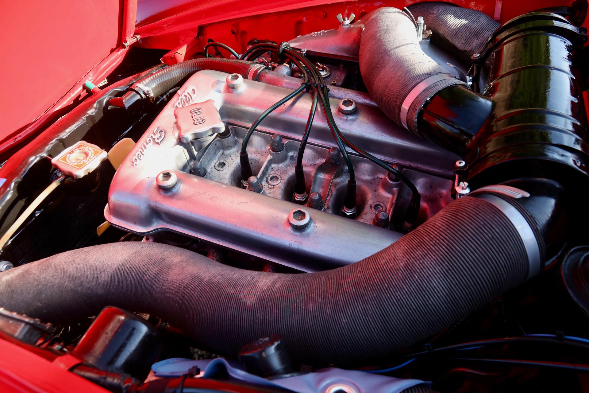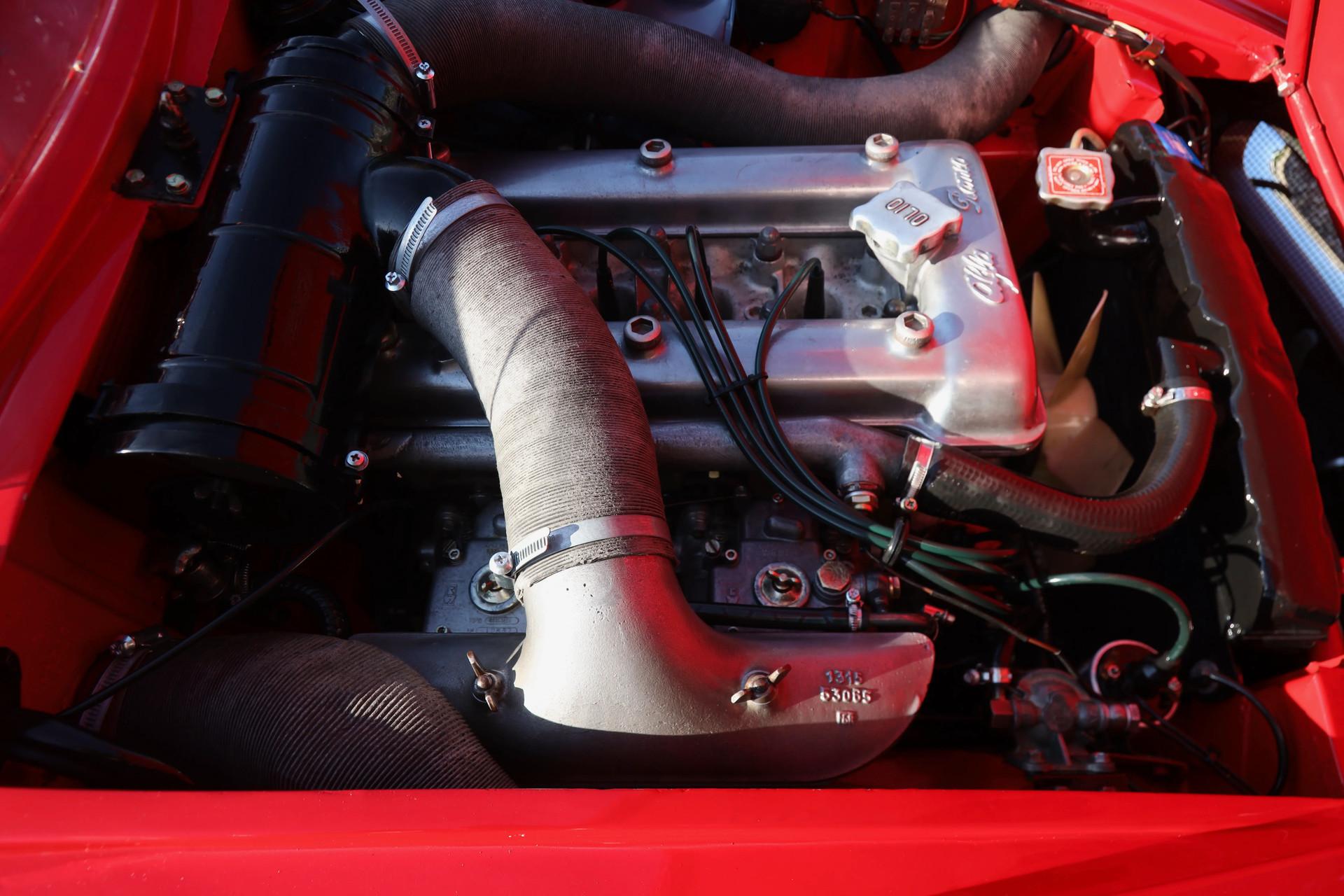 Beneath the hood lies the heart of a true driver's car: a 1,300 cc all-aluminum four-cylinder fitted with twin Weber carburetors. With about 116 horsepower on tap, it is more than capable of propelling this featherweight two-seater to nearly 200 km/h. At the time, that was significantly faster than the standard Giulietta Sprint.