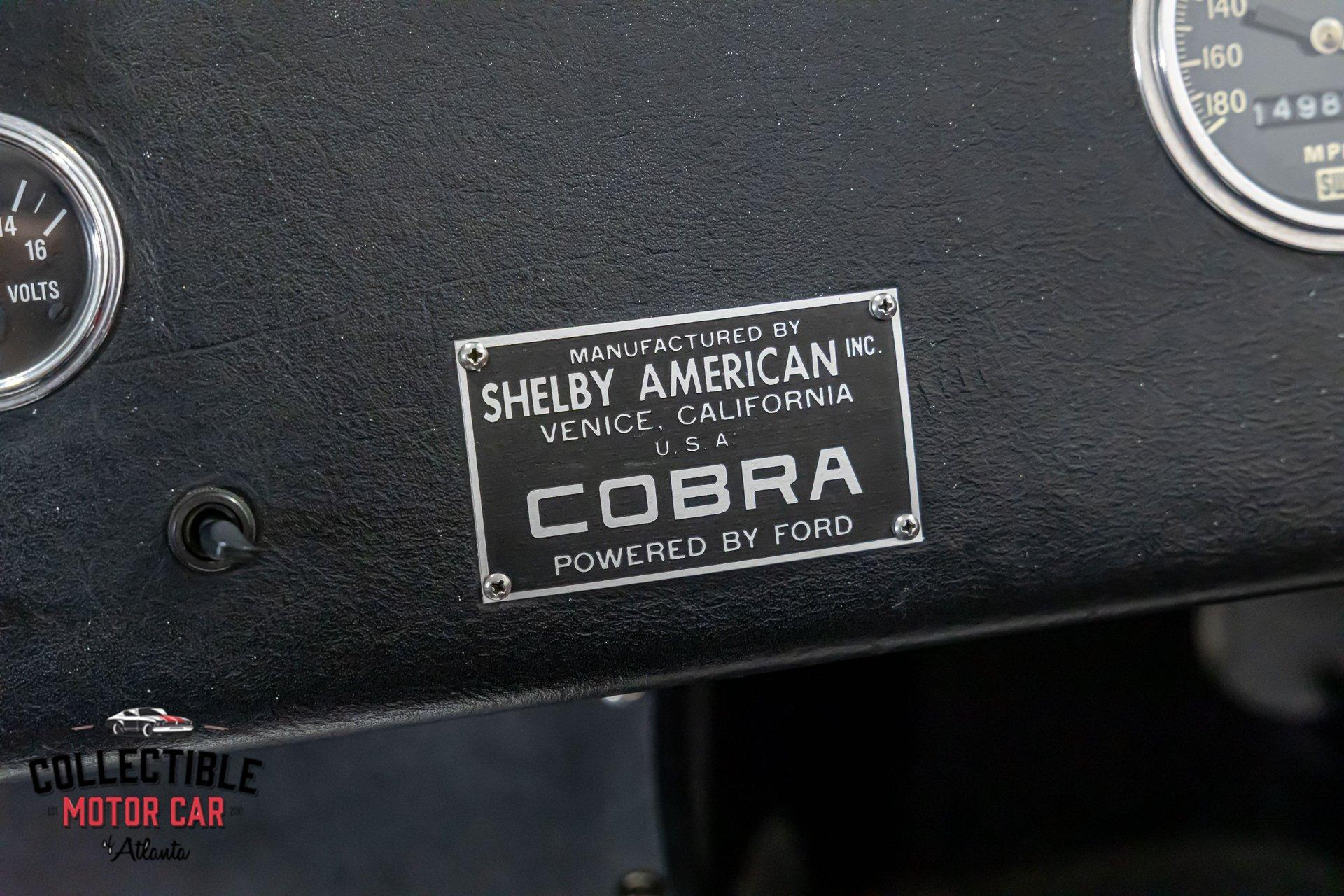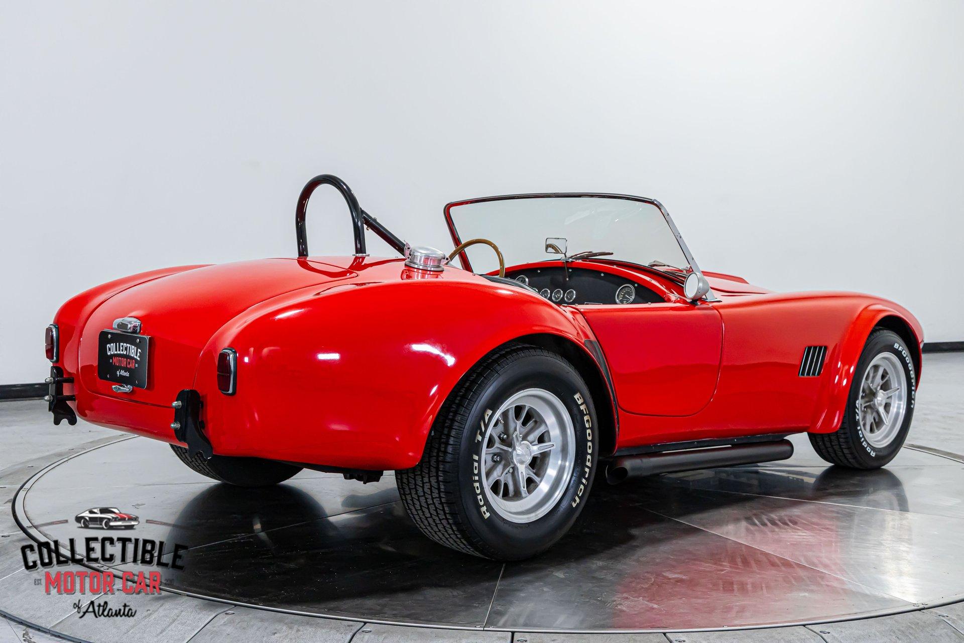 1964 Shelby Cobra – Johnex Replica Collectible Motorcar of Atlanta proudly presents this striking 1964 Shelby Cobra, crafted by Johnex in Canada and built for pure driving excitement. Finished with a purposeful stance and aggressive side-pipe rumble, this Cobra blends iconic styling with modern performance upgrades for an unforgettable road experience. Power & Performance Under the hood, you’ll find a potent 331 cubic-inch stroker V8, freshly serviced with new fluids and topped with a new Canton oil pan. The motor is paired to a Tremec 3550 five-speed manual transmission, delivering power through a bulletproof Ford 9-inch rear end with 3.50 posi gears. The engine features a big, healthy cam that gives it a deep, throaty idle and strong acceleration. Braking & Handling Stopping power comes from four-wheel disc brakes, now enhanced with new front calipers, brake lines, and a rear master cylinder with fresh flex line. New tires, with less than 300 miles on them, are wrapped around vintage wine-glass style wheels, giving the car period-correct flair with modern grip. Upgrades & Details Side pipes powder-coated for durability and style New Stewart Warner tachometer for classic instrumentation accuracy Push-button start and rear power shut-off for convenience and safety Vintage-inspired touches paired with modern reliability Runs and drives beautifully, with a crisp, engaging feel Whether you’re looking for a show-stopping weekend cruiser or a thrilling backroad companion, this Johnex-built 1964 Shelby Cobra delivers the full package—authentic looks, modern upgrades, and serious performance. Phone 770-738-7111 Address 1750 Enterprise Way Suite 109Marietta, GA 30067 Hours of Operation Monday- Friday - 9-5pm Saturday - 9-3pm (Appointment only) Sunday - Closed