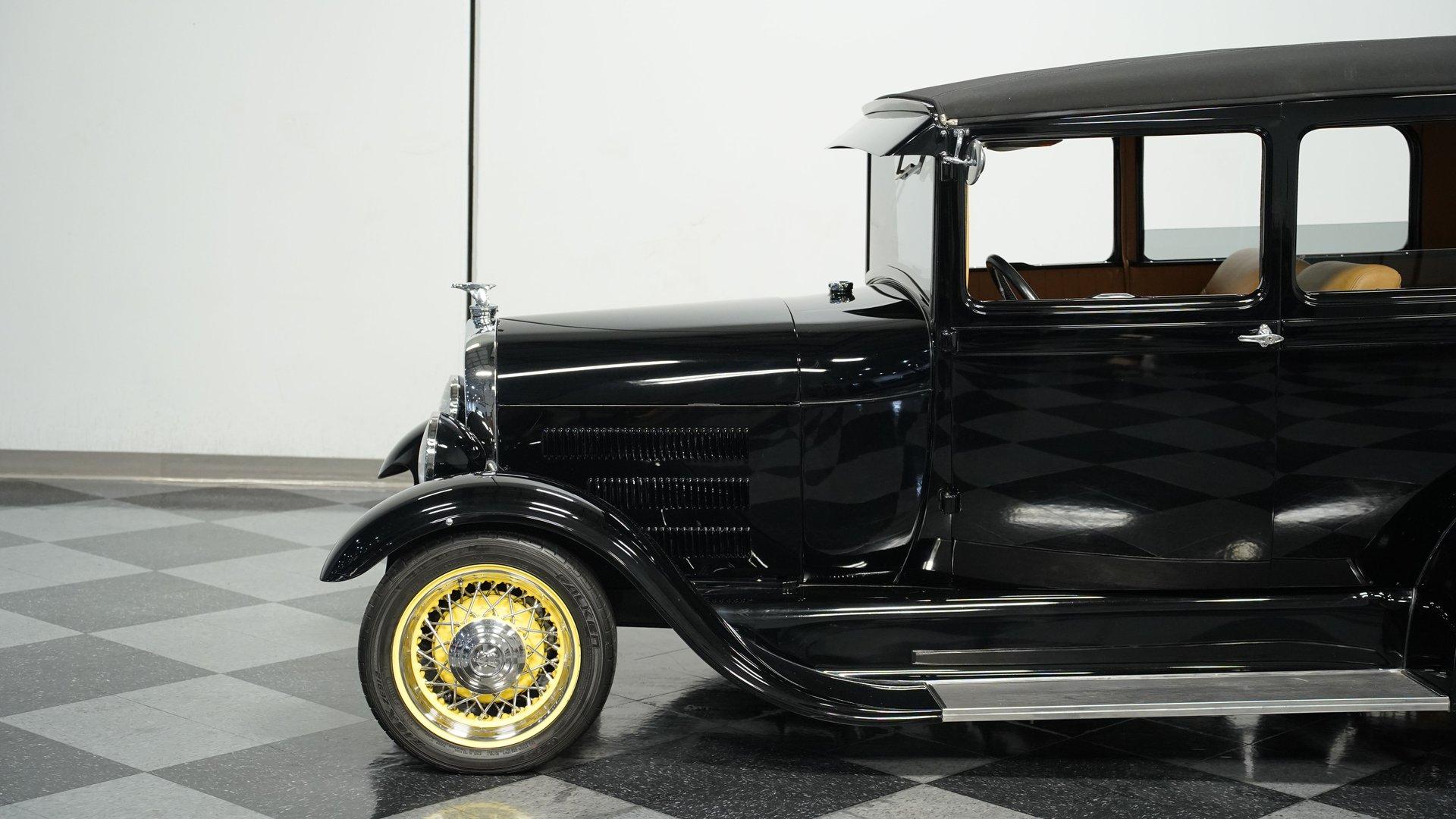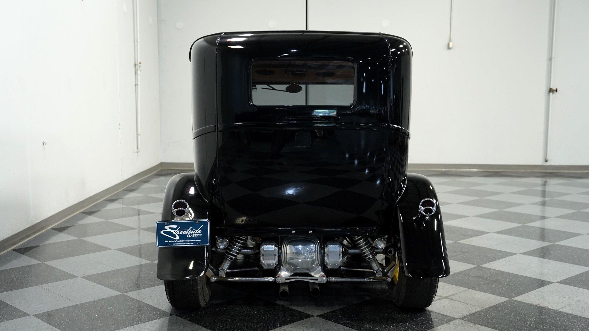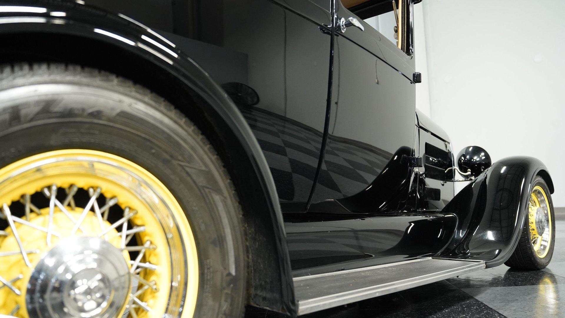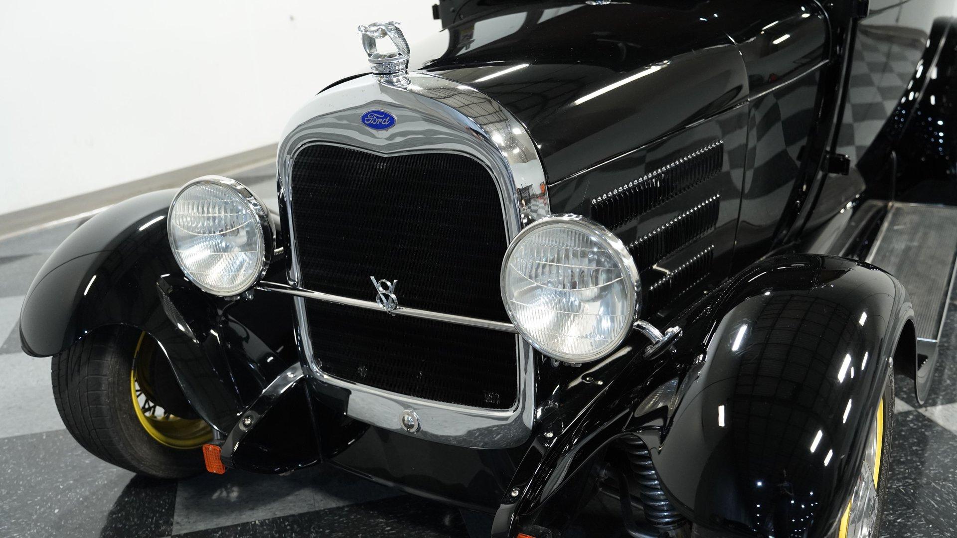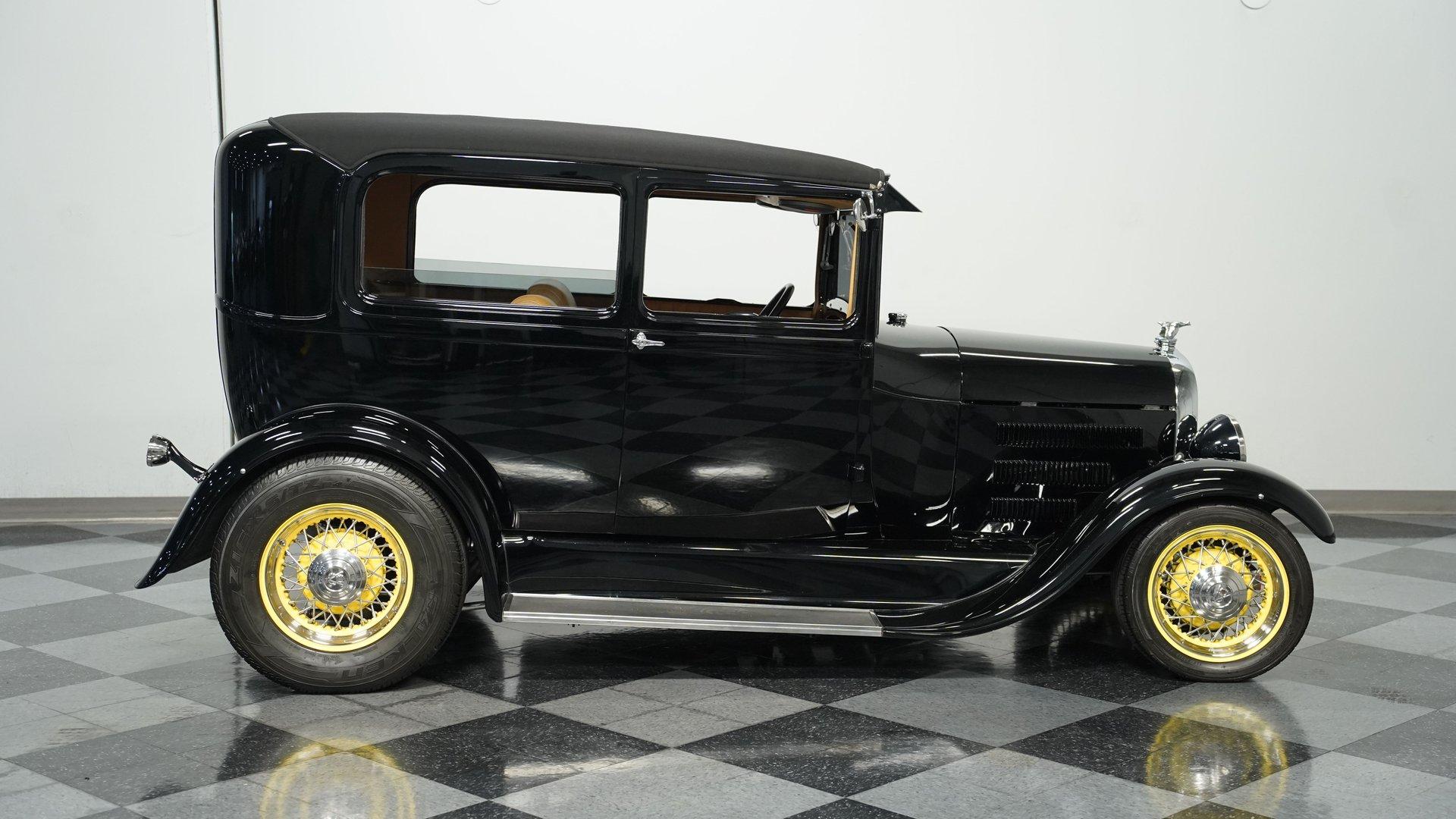Historically speaking, not many positive things are said about the year 1929, for obvious reasons, perhaps. But, this 1929 Ford Model A Tudor Sedan Street Rod is here to prove it is the exception to that rule. Its steel body has been fully repainted in a subtle, glossy black, while its silver and gold wire wheels, polished rear end, and dual chrome exhaust pipes poking out from beneath the backside of the cabin hint that there is a bit more to this car beneath its understated veneer. Inside, we find a custom walnut leather interior, featuring a pair of plush bucket seats in the front and a two-person bench in the back. A padded, banjo-style steering wheel comes with a V-8 emblem center cap, which sits in front of a three-pod Classic Instruments gauge cluster. A 7,000 rpm tachometer is flanked by a 120 mph speedometer and a quartet of auxiliary gauges, all housed within a larger display that matches the other two in size for uniformity. A tilt steering column, power windows, defrost, air conditioning, and an AM/FM/CD player add plenty of modern conveniences to allow this old-school hot rod to drive comfortably anywhere it goes. Prop up that throwback hood and you're treated to a clean engine bay that looks rather tight thanks to the BluePrint 350 cubic-inch crate V-8 engine stuffed between the fenders. Powered by an MSD Atomic electronic fuel injection system, this new small block sends spent gases out through a full stainless steel dual exhaust system capped off by a pair of MagnaFlow mufflers. Power is routed through a late-model 4L60E four-speed automatic transmission before the chrome-plated rear end sends those ponies to the pavement via a pair of 16-inch wire wheels shod in big 245/70R-16 Falken rubber. At the same time, a narrower set of 195/50R-15 tires handles steering duties, giving this car its classic staggered look. *Steel Body *Full Black Repaint *BluePrint Crate 350 V8 *MSD Atomic EFI *Full Stainless Steel Exhuast *MagnaFlow Mufflers *Full TCI Chassis *Tubular A Arms *Jaguar IRS Rear *Coilovers *Power Brakes *Four Wheel Discs *Custom Interior *Walnut Leather *Tilt Wheel *Air Conditioning *Classic Instruments Gauges *Power Windows *Heat *Defrost *CD Player This 1929 Ford Model A Tudor Sedan Street Rod sits on a full TCI suspension that utilizes a tubular A-arm setup in front, a Jaguar independent rear out back, and coilovers at all four corners, giving this hot rod a ride that couldn't have even been dreamt of a century ago. Adding to that are a set of four-wheel power disc brakes, covering every aspect of what is needed for a truly comfortable and carefree drive. So, while the stock market may have plummeted in 1929, this Model A is a blue-chip hot rod, sure to be a great investment, and ready to pay you back with dividends of fun. But don't wait, call today!