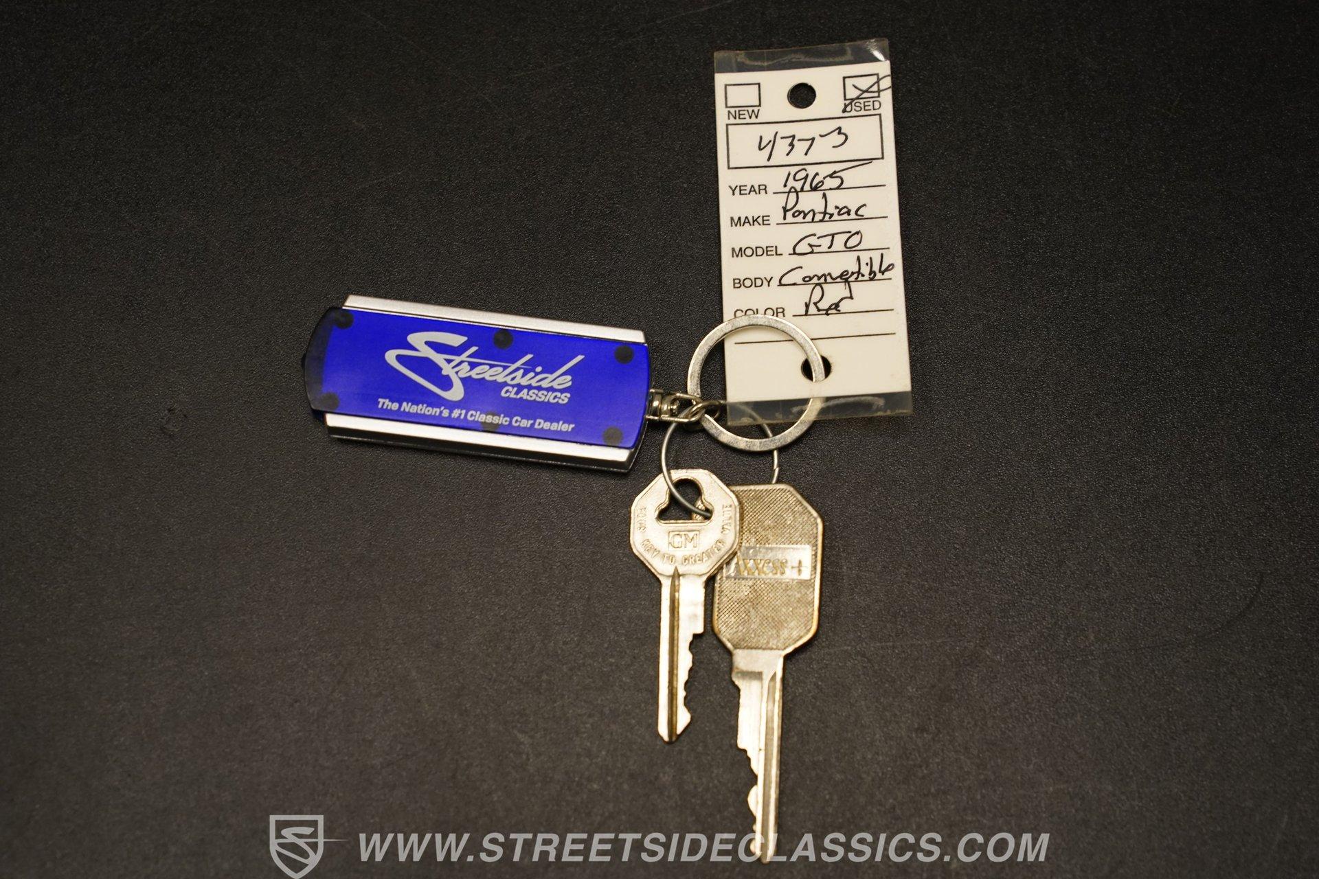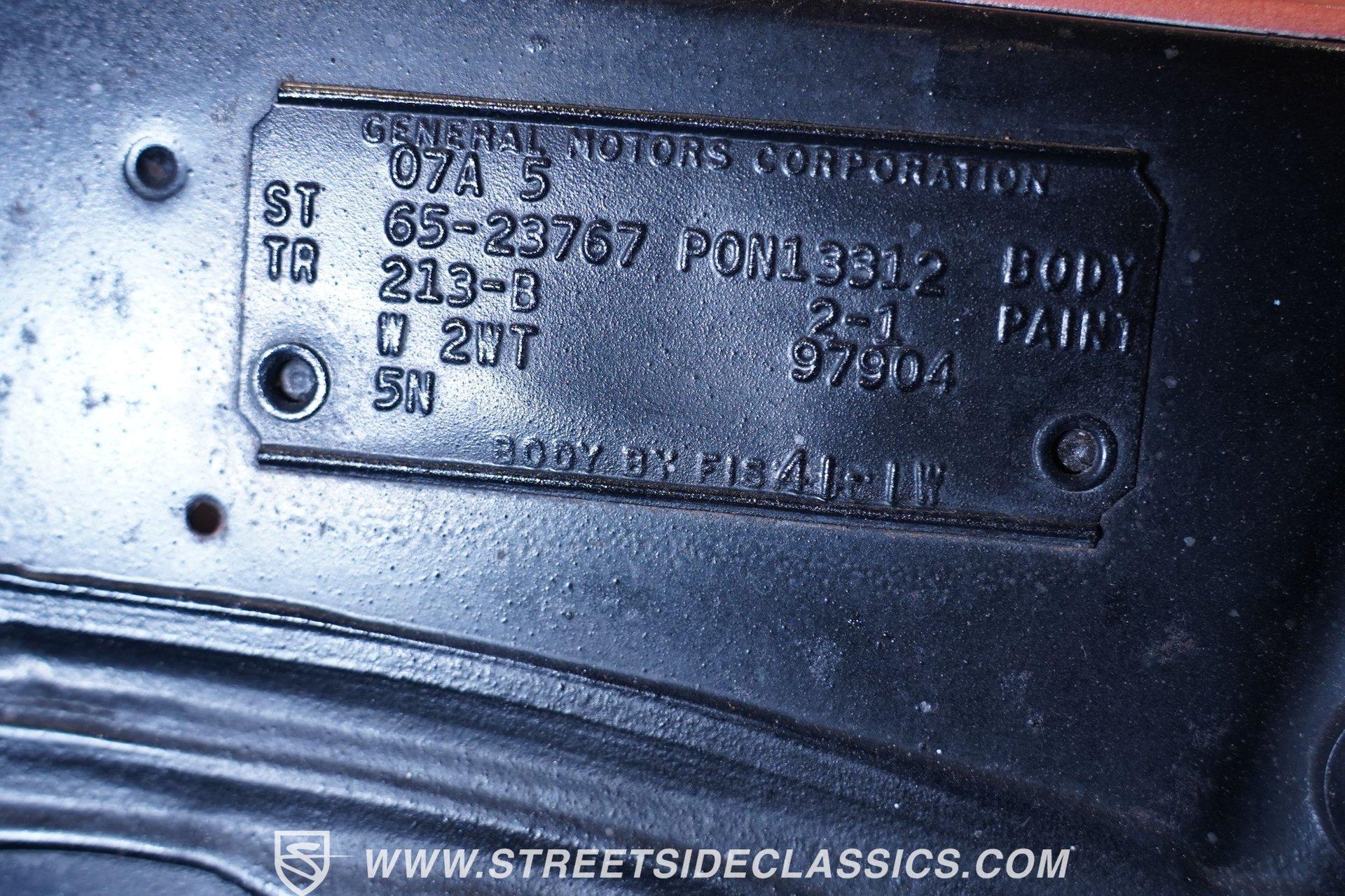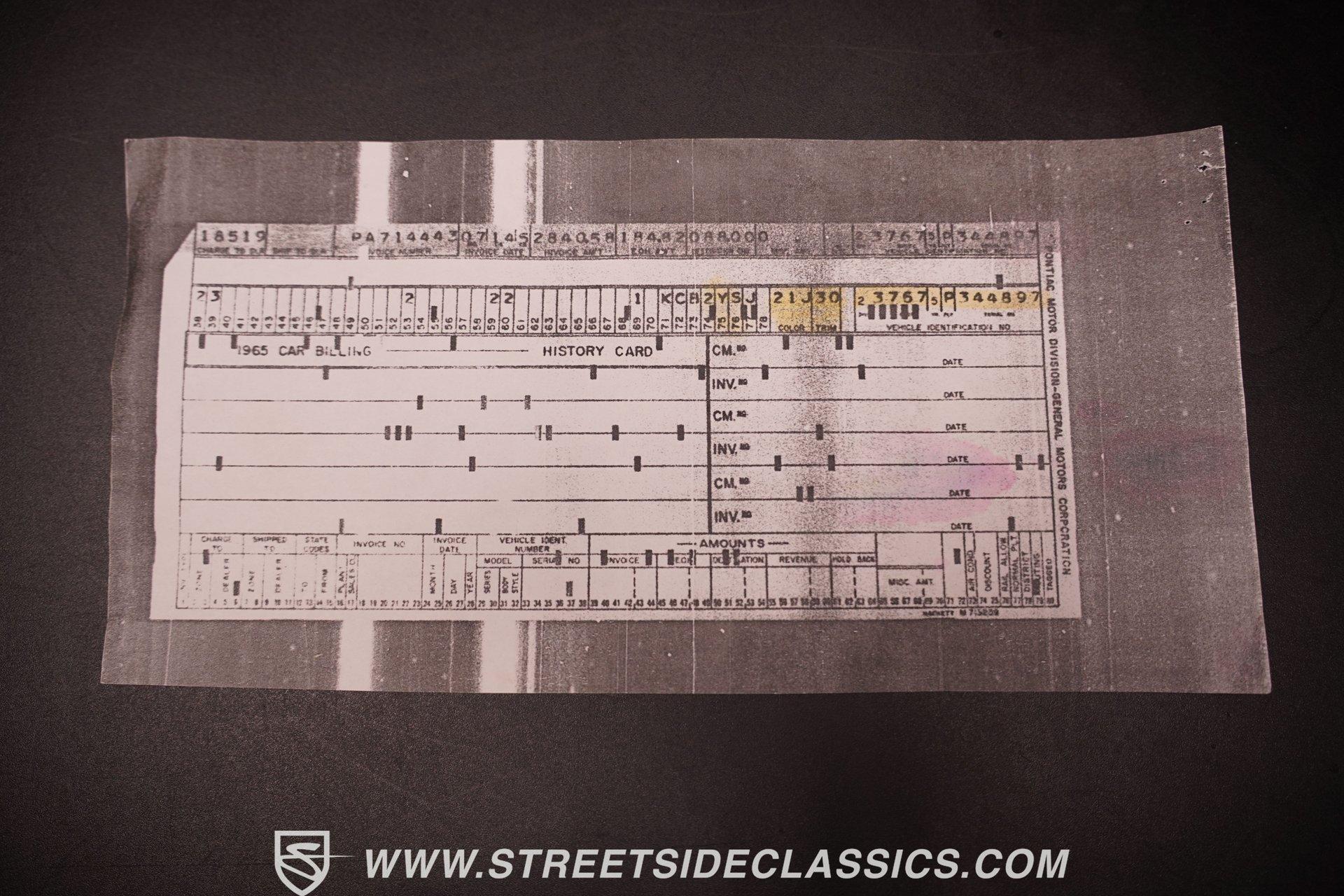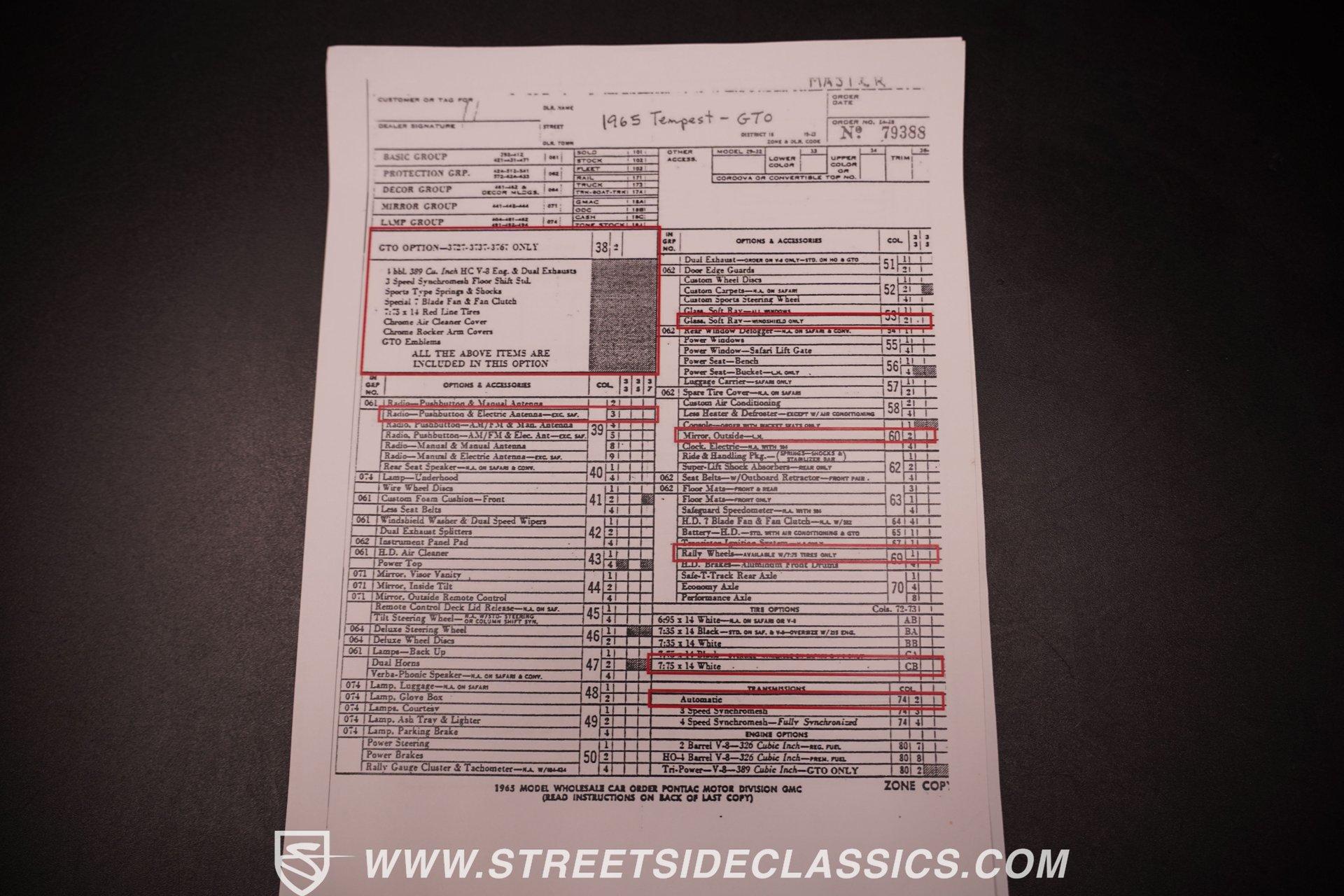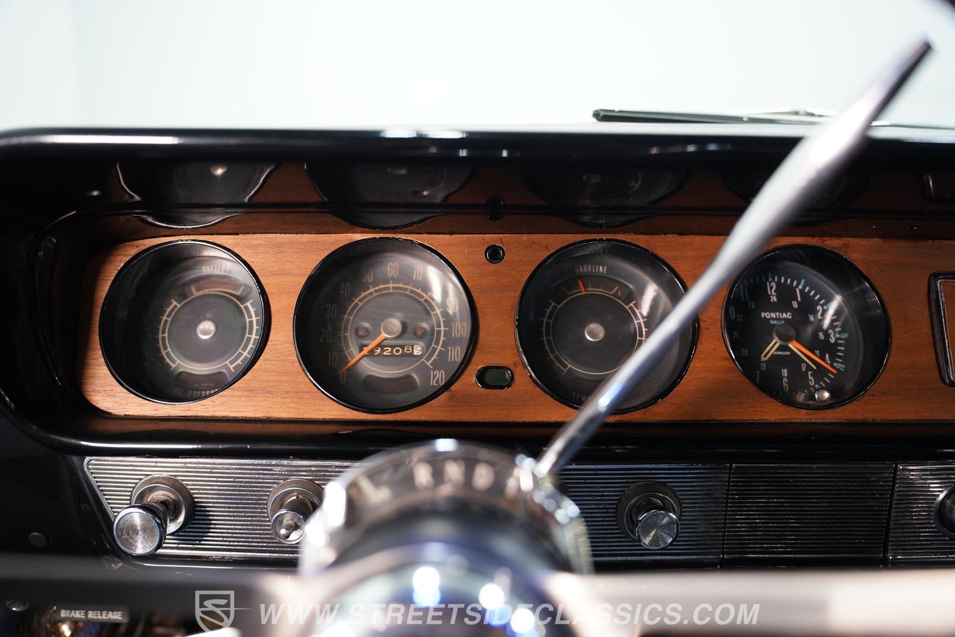 This 1965 Pontiac GTO Convertible makes its presence known with a bold Sunfire Red exterior. The muscular body lines stretch from the distinctive split grille to the powerful rear fenders. A black vinyl top provides a sharp contrast against the vibrant paint. The GTO rolls on 14-inch wheels fitted with P215/70R14 BFGoodrich tires, embodying classic muscle car style. The interior features black vinyl bucket seats, inviting drivers into a performance-oriented cockpit. A billet steering wheel offers enhanced grip and control. The upgraded AM/FM radio delivers tunes for your drive. The column-mounted shifter and well-laid-out instrument panel maintain the GTO's original look while providing modern functionality. A 389 cubic inch V8 engine powers this GTO, mated to a 2-speed Super Turbine 300 automatic transmission. An Edelbrock AVS2 1806 600 CFM 4-barrel carburetor boosts the V8's performance. The dual exhaust system with aftermarket mufflers produces a deep, aggressive tone. Power steering and power drum brakes provide confident control, while the 3.23 rear axle ratio balances acceleration and highway cruising. HIGHLIGHTS: 389 V8 engine 2-speed Super Turbine 300 automatic transmission Edelbrock AVS2 1806 600 CFM 4-barrel carburetor Dual exhaust with aftermarket mufflers Power steering Power brakes 3.23 rear axle ratio Coil spring suspension Sunfire Red paint Black vinyl convertible top 14-inch wheels P215/70R14 BFGoodrich tires Black vinyl bucket seats Billet steering wheel Upgraded AM/FM radio Column-mounted shifter PHS documentation This 1965 Pontiac GTO Convertible combines iconic muscle car design with potent V8 power. Its Sunfire Red paint and growling 389 engine create an unforgettable driving experience. Call today!