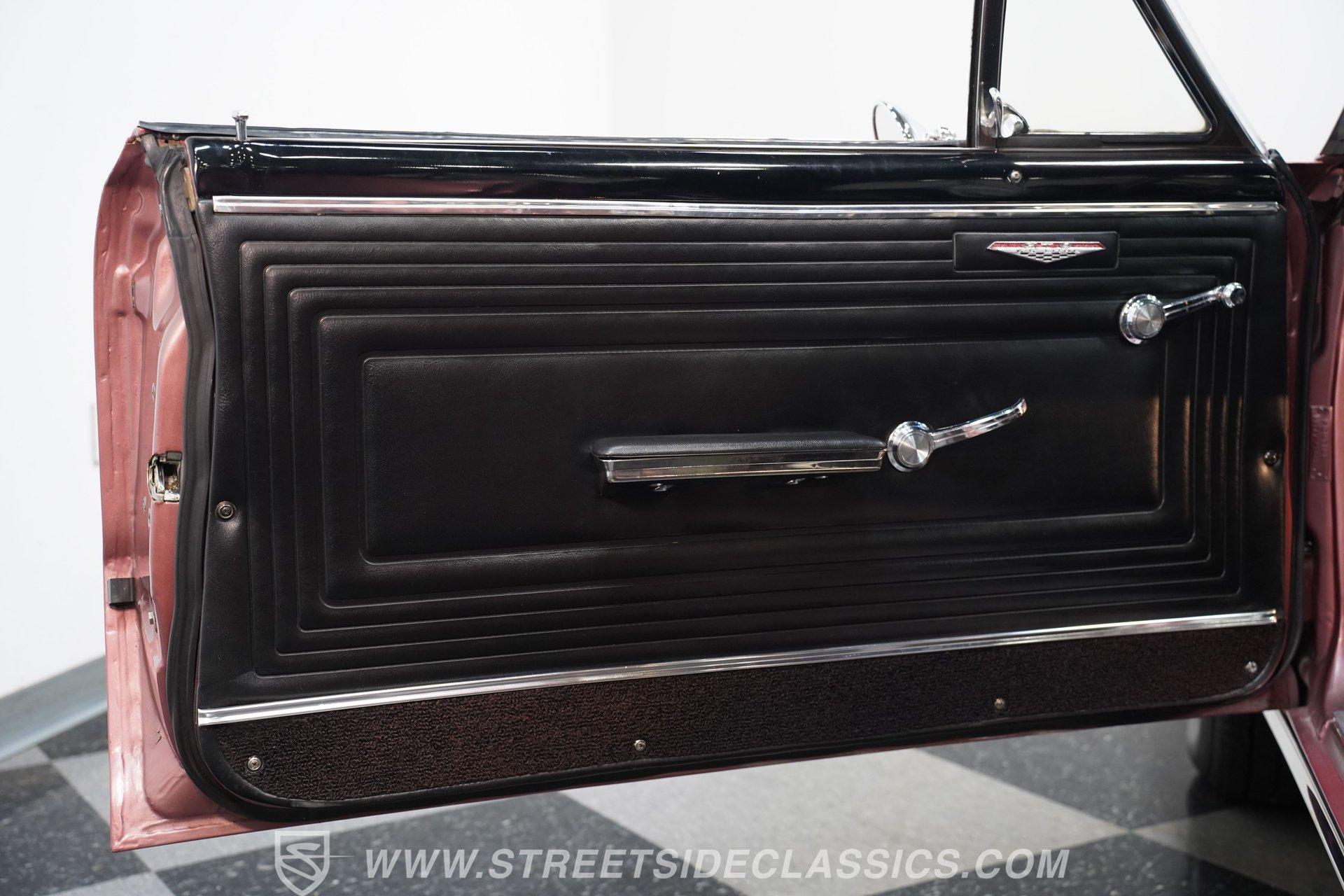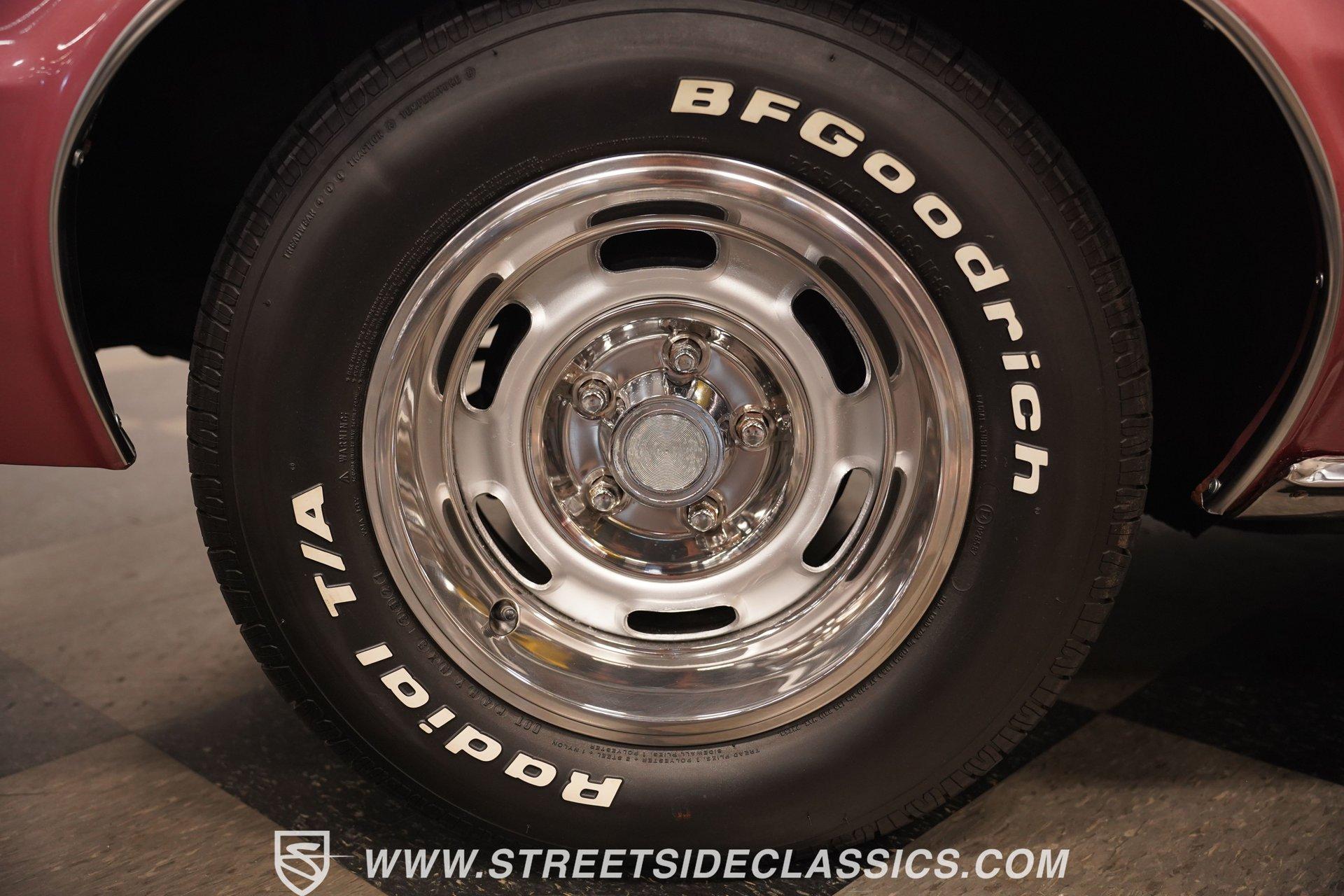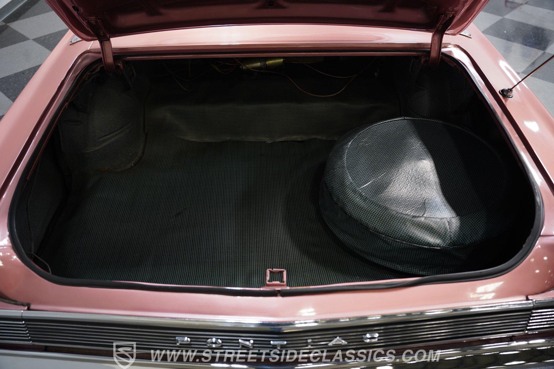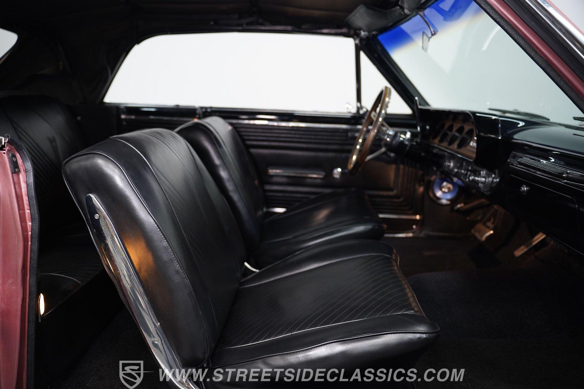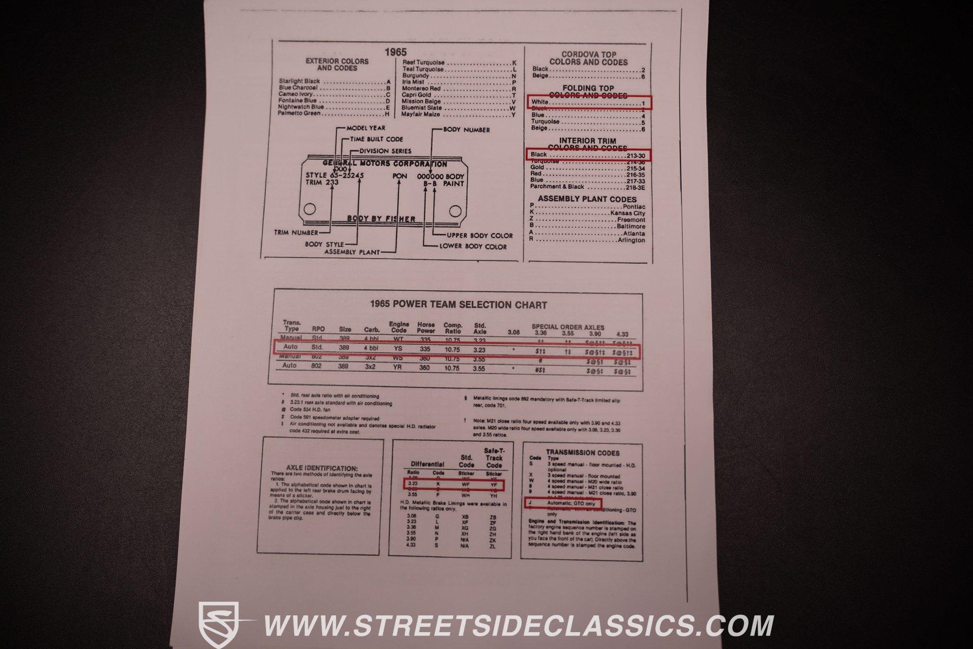 This 1965 Pontiac GTO Convertible makes its presence known with a bold Sunfire Red exterior. The muscular body lines stretch from the distinctive split grille to the powerful rear fenders. A black vinyl top provides a sharp contrast against the vibrant paint. The GTO rolls on 14-inch wheels fitted with P215/70R14 BFGoodrich tires, embodying classic muscle car style. The interior features black vinyl bucket seats, inviting drivers into a performance-oriented cockpit. A billet steering wheel offers enhanced grip and control. The upgraded AM/FM radio delivers tunes for your drive. The column-mounted shifter and well-laid-out instrument panel maintain the GTO's original look while providing modern functionality. A 389 cubic inch V8 engine powers this GTO, mated to a 2-speed Super Turbine 300 automatic transmission. An Edelbrock AVS2 1806 600 CFM 4-barrel carburetor boosts the V8's performance. The dual exhaust system with aftermarket mufflers produces a deep, aggressive tone. Power steering and power drum brakes provide confident control, while the 3.23 rear axle ratio balances acceleration and highway cruising. HIGHLIGHTS: 389 V8 engine 2-speed Super Turbine 300 automatic transmission Edelbrock AVS2 1806 600 CFM 4-barrel carburetor Dual exhaust with aftermarket mufflers Power steering Power brakes 3.23 rear axle ratio Coil spring suspension Sunfire Red paint Black vinyl convertible top 14-inch wheels P215/70R14 BFGoodrich tires Black vinyl bucket seats Billet steering wheel Upgraded AM/FM radio Column-mounted shifter PHS documentation This 1965 Pontiac GTO Convertible combines iconic muscle car design with potent V8 power. Its Sunfire Red paint and growling 389 engine create an unforgettable driving experience. Call today!