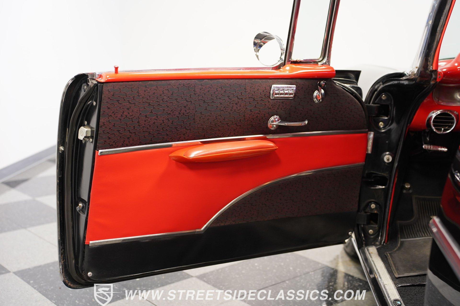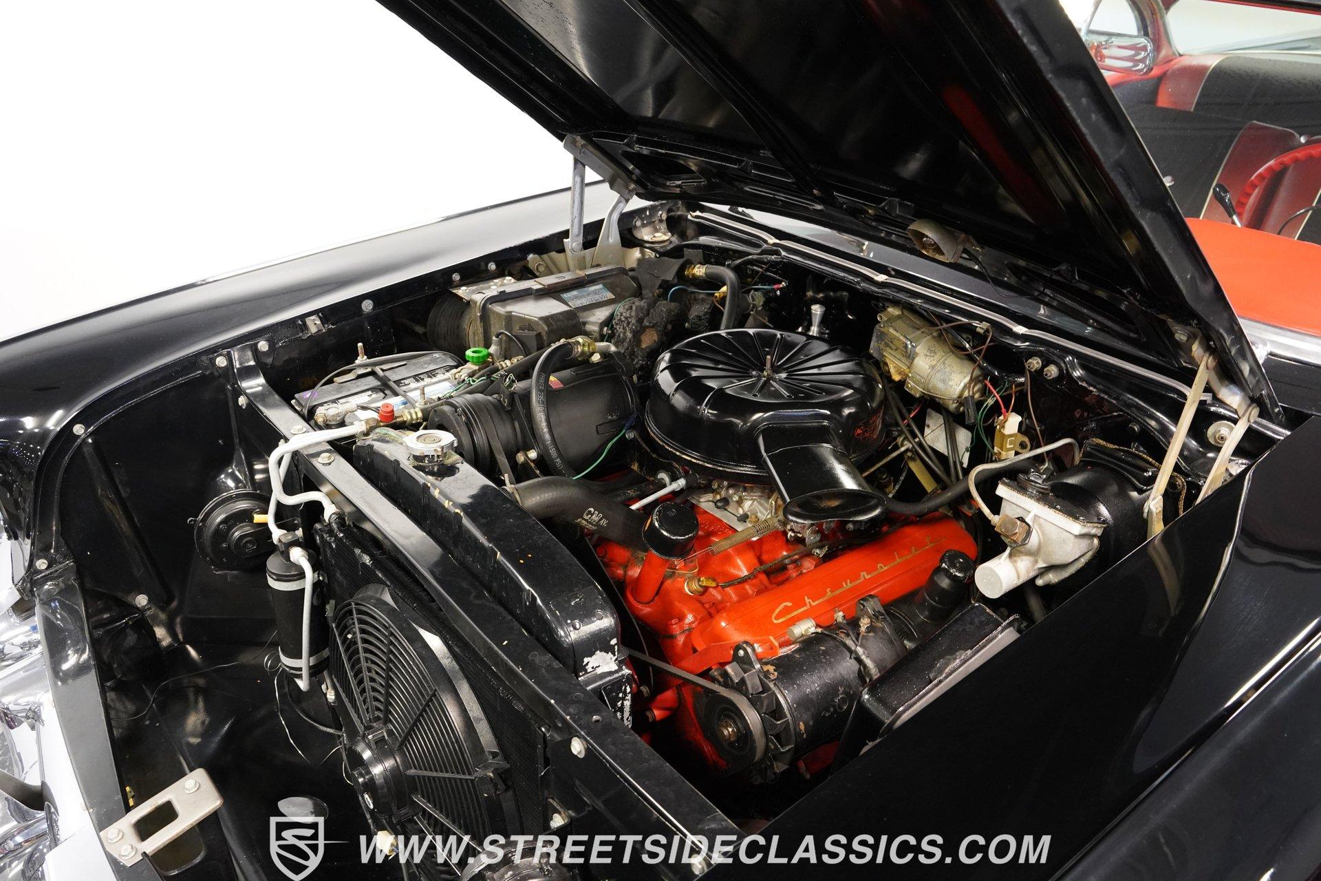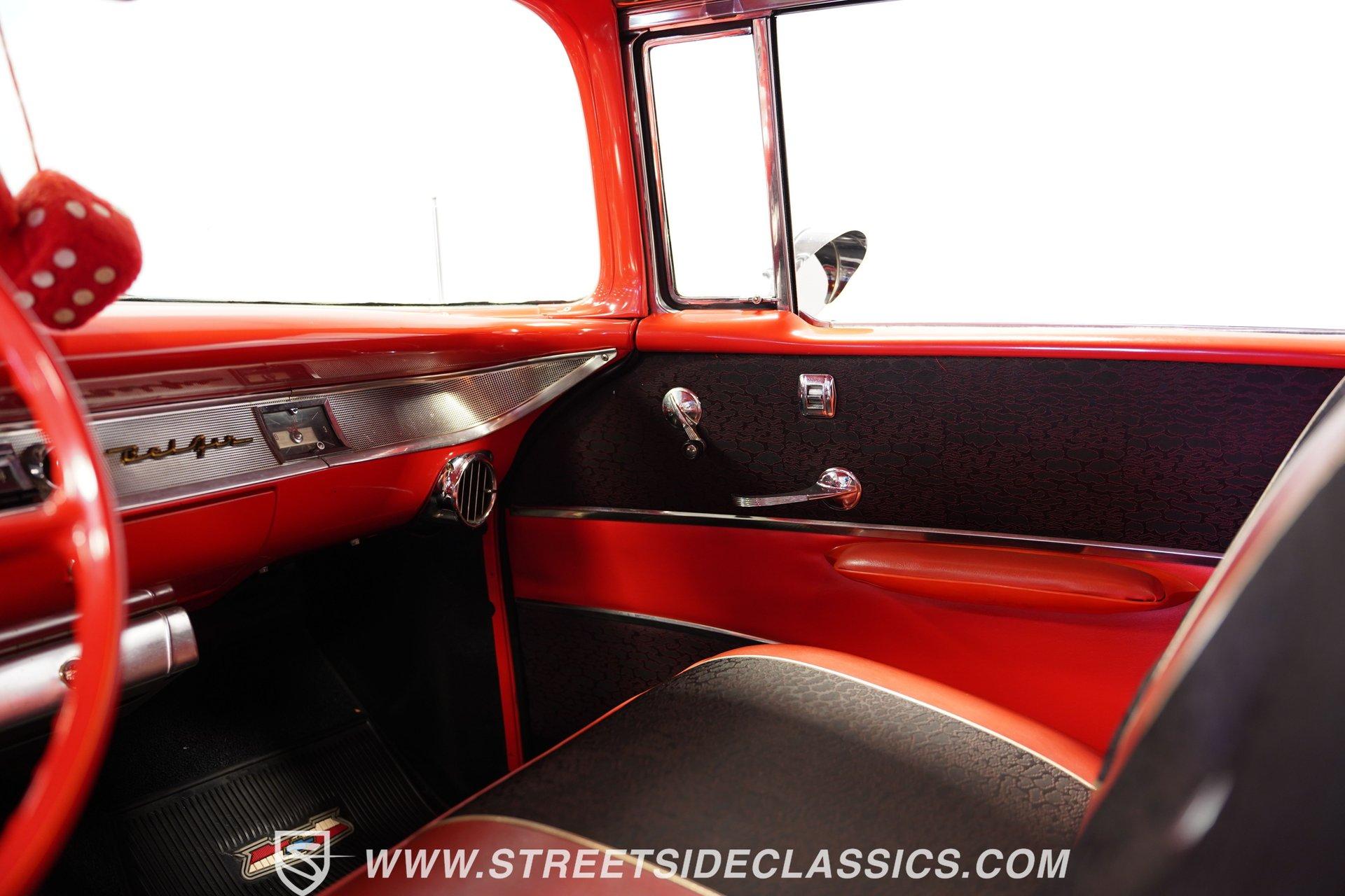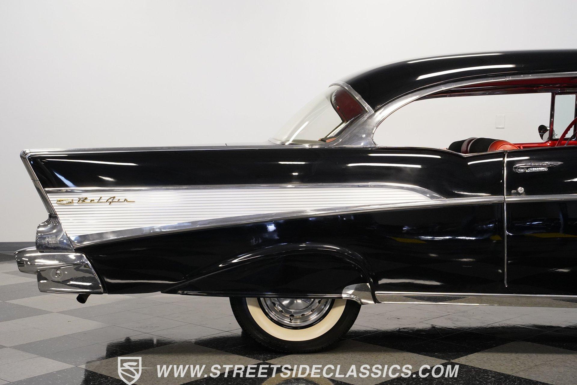 This 1957 Chevrolet Bel Air is among the most recognizable American automobiles of all time, an icon of its age. In the final year of the model's third generation, it offered an intoxicating blend of style, performance and features with its freshly designed front end and tastefully executed tailfins. This Bel Air has the distinction of being previously owned by Joe Gibbs of the racing team and Football coach fame. Finished in deep Onyx Black, this 1957 Chevrolet Bel Air looks sharp and is loaded with factory options. The glass-like paint job throws back light like a mirror, making the chrome bumpers, grille, and trim pop against the dark background. Gold Chevrolet, Bel Air, and "V" badges tell you this is no ordinary '57. The stance is perfect, sitting on 14" steel wheels wrapped in Silvertown radial white wall 205/75R14 tires and topped with factory Chevrolet deluxe spinner wheel covers. Exterior accessories include fender skirts, front and rear bumper guards, both left and right-side mirrors and ribbed trunk lid molding. The black and red interior hits you with its bold factory-correct style the moment you open the door. Two-tone vinyl and cloth cover the bench seats and look great. Desirable options include factory air conditioning, power windows, power seat and Wonderbar radio. The trunk compartment is equally impressive with its factory mat, spare, and jack all properly placed and presented. Under the hood is a smooth-running 283 cubic inch V8 engine. Orange paint covers the block and valve covers just as Chevrolet intended back in '57. The clean engine bay appears largely stock in appearance, however there is an upgraded Edelbrock 4-barrel carburetor. This V8 pushes power through an upgraded 700R4 4-speed automatic transmission, that combined with factory power steering and power brakes, makes this iconic Bel Air a pleasure to drive. The dual exhaust gives this Bel Air the perfect rumble when cruising down Main Street. HIGHLIGHTS: 283 V8 Engine 4-Speed Automatic Transmission Factory Air Conditioning Dual Exhaust System Power Steering Onyx Black Paint Chrome Bumpers, Grille, Emblems and Trim Gold Chevy, Bel Air and "V" Emblems 14" Steel Wheels with Chevrolet Spinner Hubcaps Silvertown White Wall Radial Tires Black and Red Interior with Bench Seats Power Brakes Wonderbar Radio Power Windows Edelbrock Carburetor Power Seat Factory Trunk Mat with Spare Tire and Jack Fender Skirts A genuine 1957 Chevrolet Bel Air sits at the top of most collector wish lists for good reason. This clean and well-optioned example gives you the chance to own one of Chevrolet's most legendary machines. Call today!