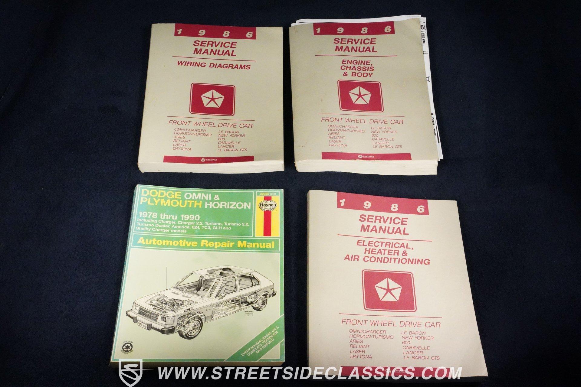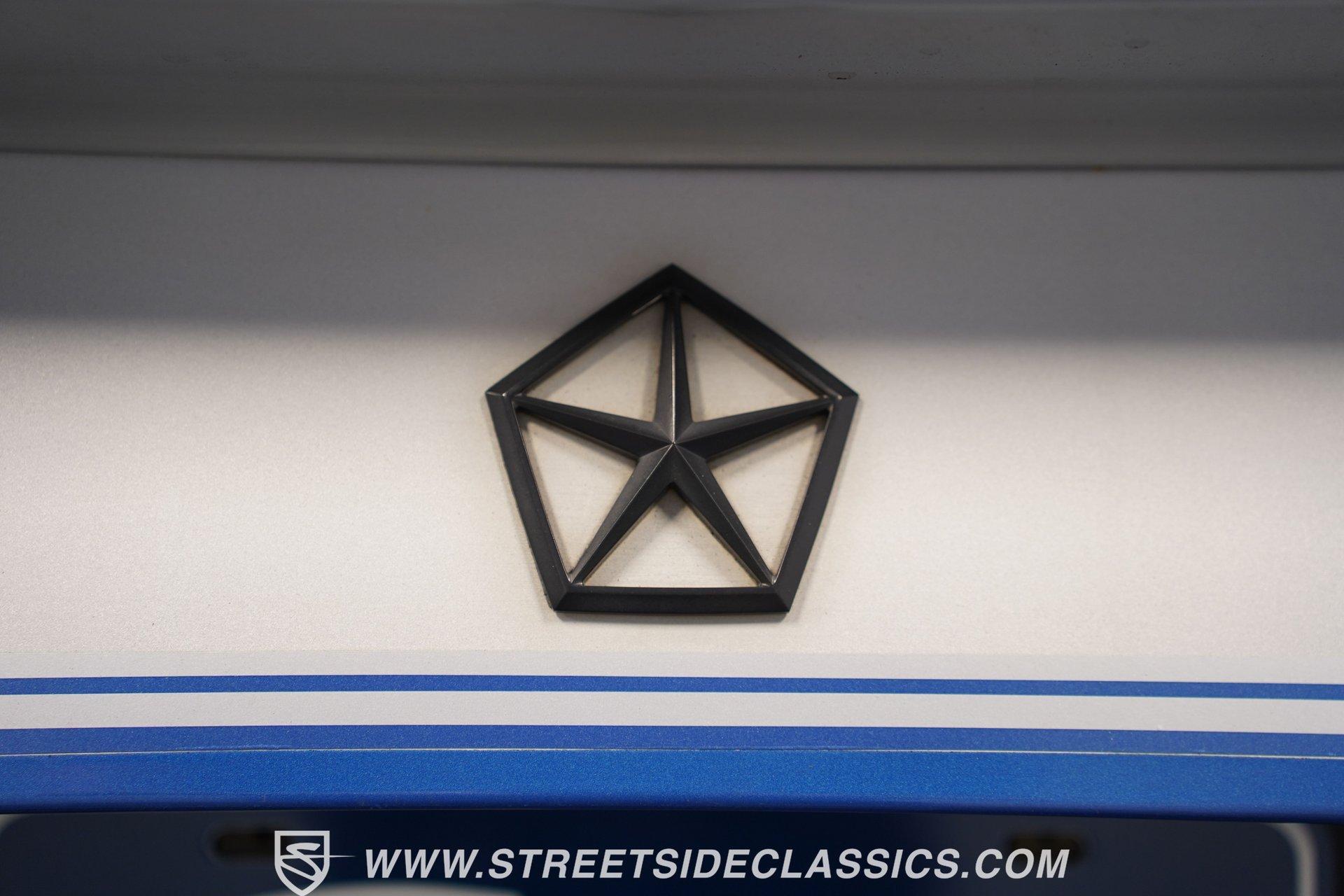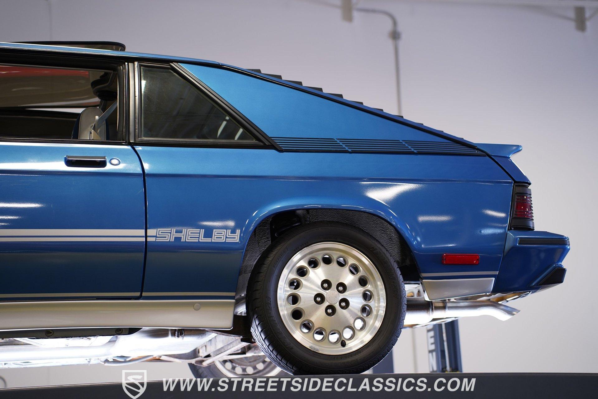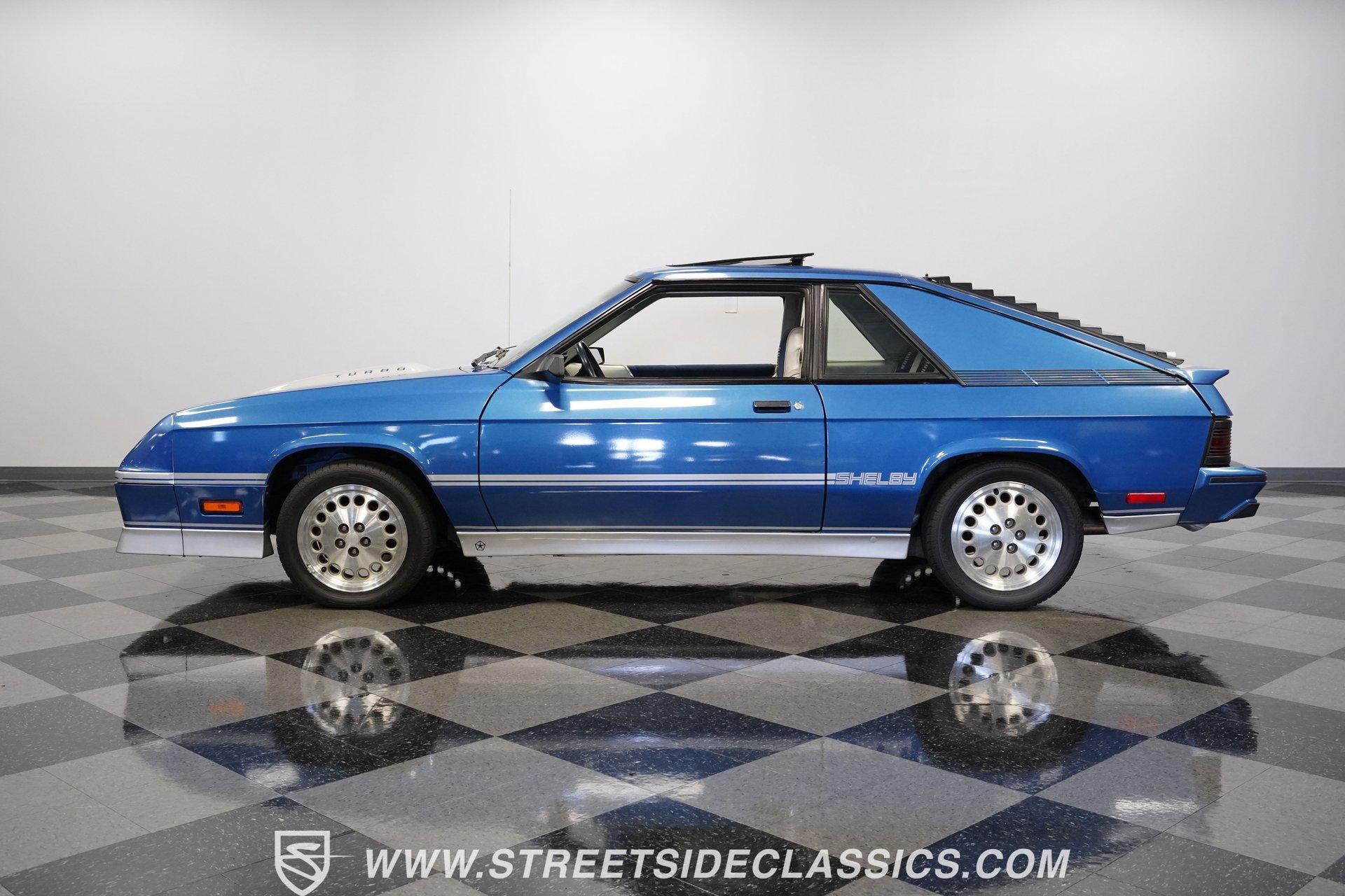 As it turns out, not every fastback with the Shelby name is a six-figure car. This sleek turbocharged and fuel-injected 1986 Dodge Charger Shelby is a budget-priced, fun classic coupe that can enjoyed and draws attention. The Omni-based Chargers were of a different breed than the muscle car legends we associate with this name. But they may just fit into the Shelby lifestyle better than some of its Hemi brothers. Carroll Shelby loved powerful motors in lightweight packages, and this is the right place to start. Plus, the long hood and hatchback profile were just begging for some speedy style. It has an exclusive nose treatment that added more emphasis to both the steeper slope of the inner hood and the offset power bulge for the turbo, as well as a full ground effects body kit and a well-integrated spoiler. The blue and silver take full advantage of the two-tone to really show off these special pieces as much as possible. Only 7,699 Charger Shelbys were produced in 1986, and a mere 793 were painted in this attractive and desirable blue color. Just like the exterior, there is an impressive two-tone blue and silver presentation on the seats, panels, and carpeting. Even the hatchback's trunk is done to match and looking fantastic. There are nice comfort features like an armrest console, rear defroster, and Chrysler's premium AM/FM/cassette stereo, but what you'll really like is the true driver experience. There are comfortable Shelby Charger logo high-back bucket seats with good bolstering, a grippy steering wheel that also gives you a good view to the full gauges, and the stick shift feels substantial in your hands. When you open the hood, your eyes gravitate to the bright head cover in the middle that says everything you want to know: TURBO. The 2.2-liter fuel-injected motor was turbocharged to nearly 150 horsepower, which was quite good during the low-power era of the '80s. And more importantly, the lightweight package gives this coupe 0 to 60 times that rival some established Europeans of the day. With a five-speed manual transmission, front disc brakes, a semi-independent rear suspension, and sporty tires, this is some nimble fun for very little cash. HIGHLIGHTS: Rare Shelby Charger 2.2-Liter Engine Factory Turbo 5-Speed Manual Transmission One of Only 793 Factory Blue Cars Factory AM/FM/Cassette Radio Factory Ground Effects Blue and White Interior Shelby Logo Bucket Seats Sunroof Rear Glass Sun Louvers Factory Alloy Wheels Service Manuals Shelby Graphics Power Front Disc Brakes Complete with service manuals, this is a sleek 1986 Dodge Charger Shelby with a great originality and style is a lot of fun to drive. This is an exceptional package at any price. Don't miss this hot hatch, call today!