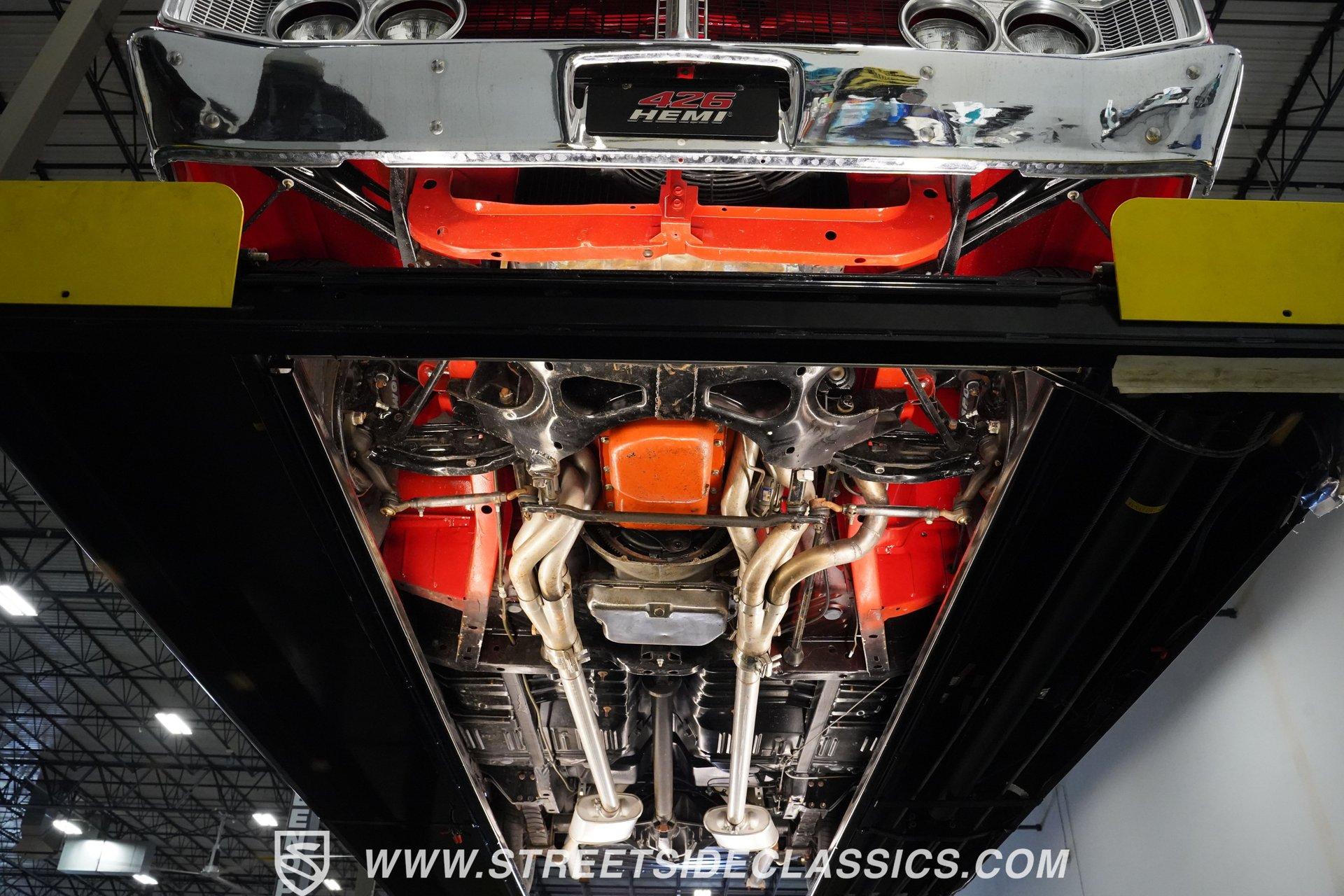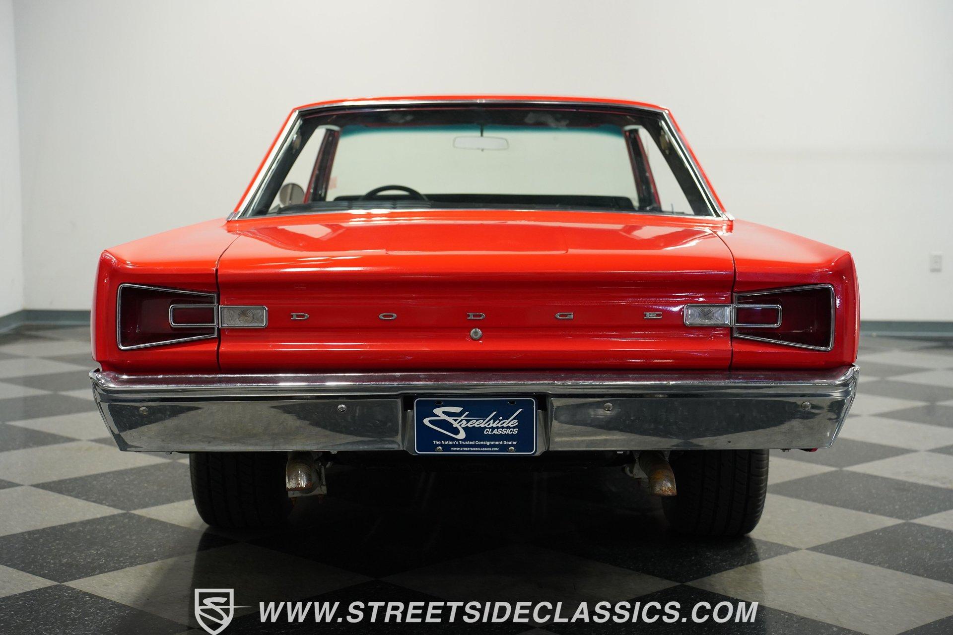The chance to pull a bona fide example of mid-'60s Mopar awesomeness into your garage doesn't present itself very often, but when that coveted ride is also powered by one of the most iconic engines ever to emerge from an American assembly line, that opportunity becomes much rarer. Yet, that's just what this 1966 Dodge Coronet Hemi Tribute offers. Clad in attention-getting red paint, this is a great-looking classic. As you draw closer, you're likely to appreciate just how precisely aligned it is, with nice, even body panel gaps from front to back and no dents or dings to detract from its visual impact. Clear glass surrounds the cabin, and you'll find a complete assortment of period-correct badging well-represented. Climb inside and you'll be surrounded by a black vinyl interior that's been thoroughly refreshed, mostly in its native factory configuration, with a pair of bucket seats up front that straddle a very fresh center console and a bench seat in back that shows only the slightest of wear. For that matter, this entire driving environment presents very nicely, with a clean dash that harbors an assortment of clear factory gauges joined by an aftermarket tachometer just in front of the shift lever. Raise the hood and you'll find a 426 cubic-inch Hemi V8 lurking in a very clean engine bay. As the engine that essentially put Dodge on the mid-'60s muscle car map, the bar of expectations is set awfully high for this powerplant, and yet it clears that bar effortlessly. Built by the experts at Ray Barton Racing Engines in Pennsylvania and fed by a pair of Edelbrock 4-barrel carburetors, this iconic motor starts right up and pulls with all the ferocity you'd imagine, given its storied history. It pairs with a 3-speed automatic TorqueFlite A727 transmission that's shifting with slip-free precision to make up a drivetrain fully capable of pinning you back in your seat with no problem at all. And when you tap on the accelerator, shorty headers leading out to a pair of Dynomax mufflers provide just the perfect resonant exhaust note for a classic muscle car like this. The added electric power steering makes navigation nice and easy. Yes, this vintage Dodge is an absolute blast to drive. HIGHLIGHTS 426 CUBIC-INCH HEMI V8 ENGINE DUAL EDELBROCK 4-BARREL CARBS 3-SPEED AUTOMATIC A727 TORQUEFLITE TRANSMISSION ELECTRIC POWER STEERING DUAL EXHAUST WITH DYNOMAX MUFFLERS SHORTY HEADERS 15" STEEL WHEELS WITH DOG DISH CENTERS DRUM BRAKES EYE-CATCHING RED EXTERIOR BLACK VINYL UPHOLSTERY AFTERMARKET TACHOMETER AND AUXILIARY GAUGES ADDED BUCKET SEATS CENTER CONSOLE PERIOD CORRECT AM RADIO Representing its manufacturer at a great point in its history, this 1966 Dodge Coronet Hemi Tribute is sure to attract admiring glances as it cruises on a set of 15" steel wheels with dog dish centers that are wrapped with Mickey Thompson black wall tires for just the right classic look. Call today!