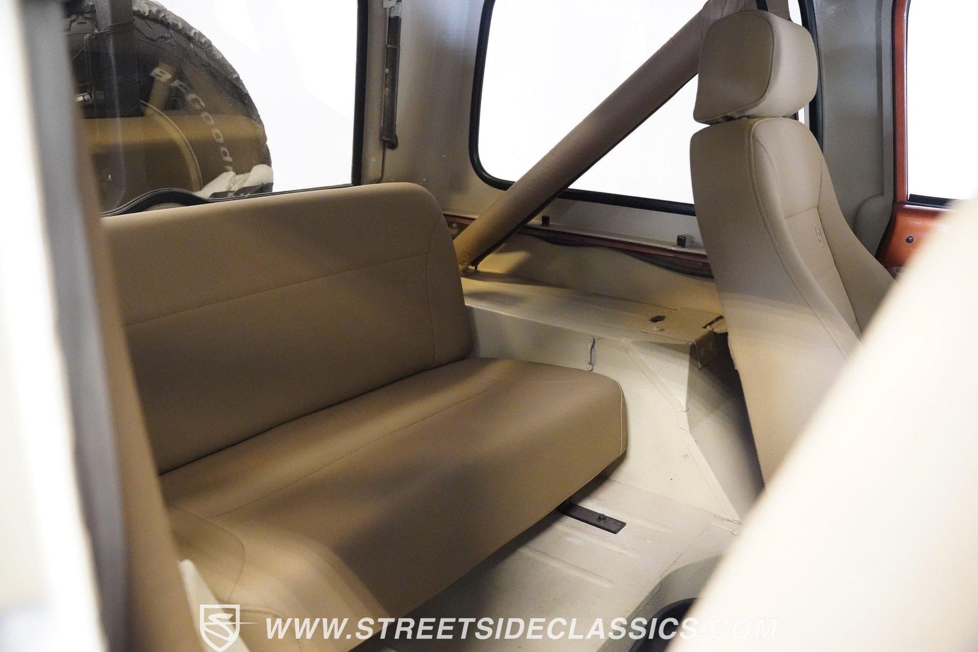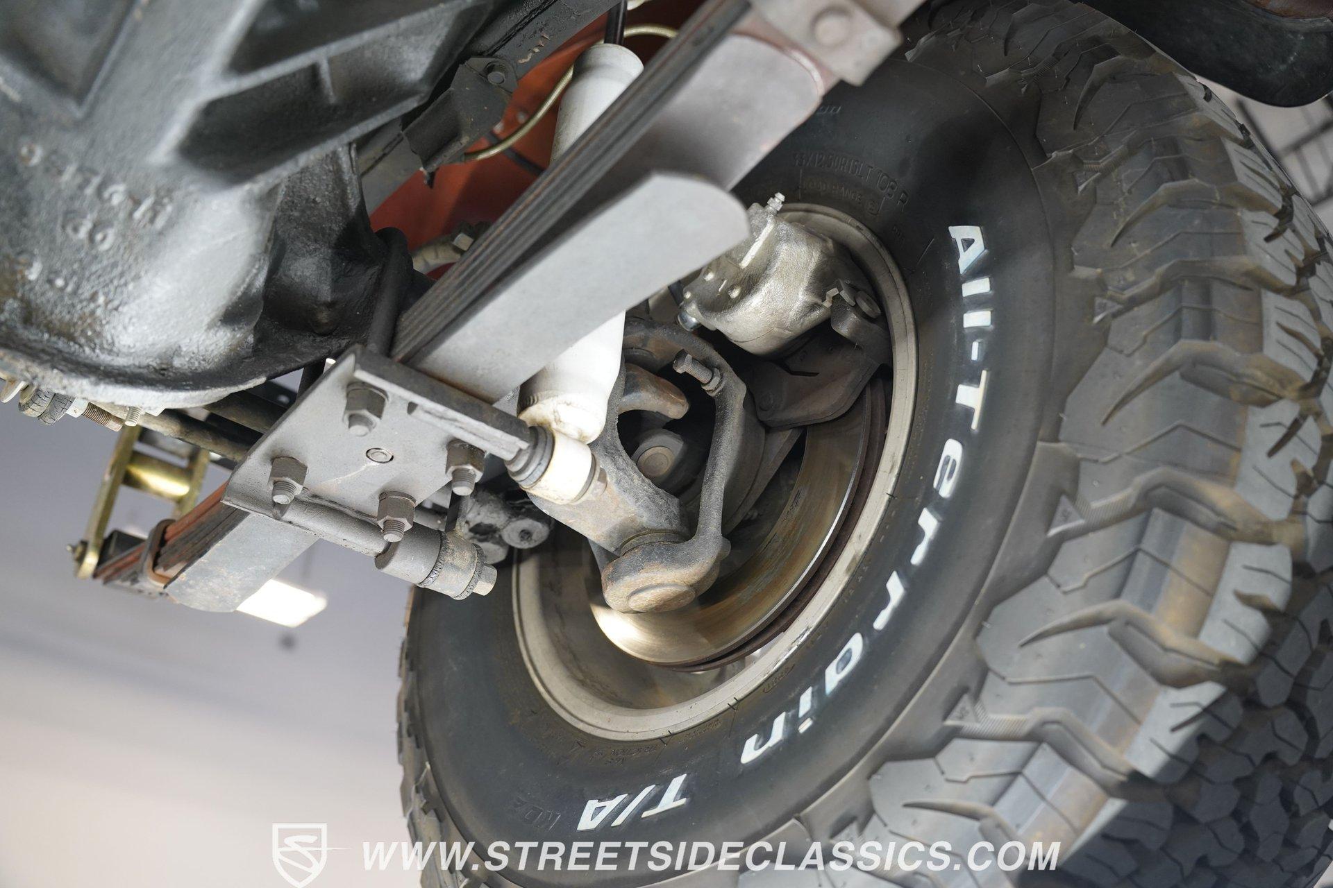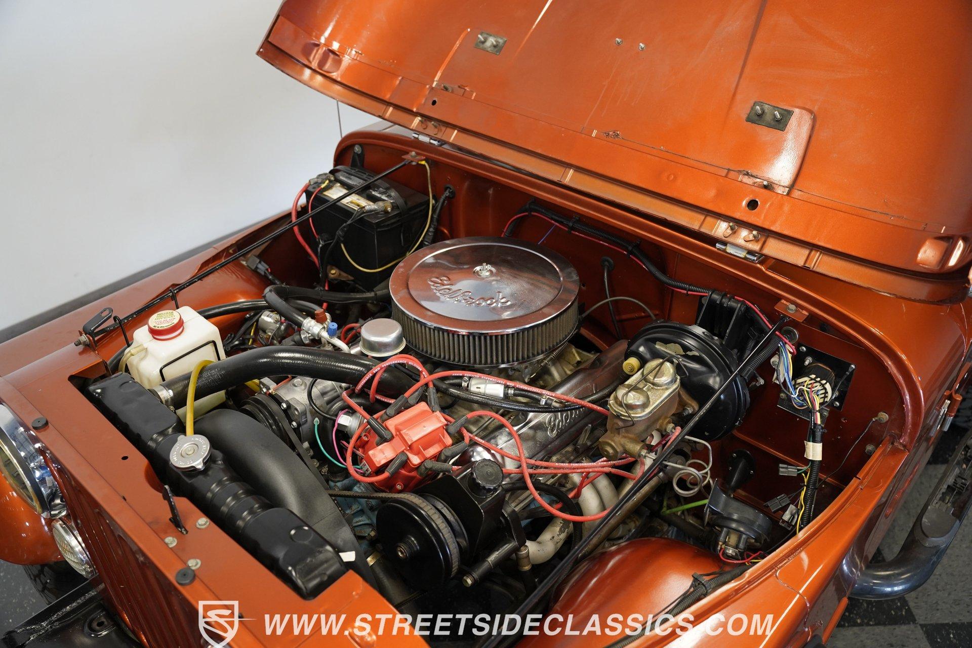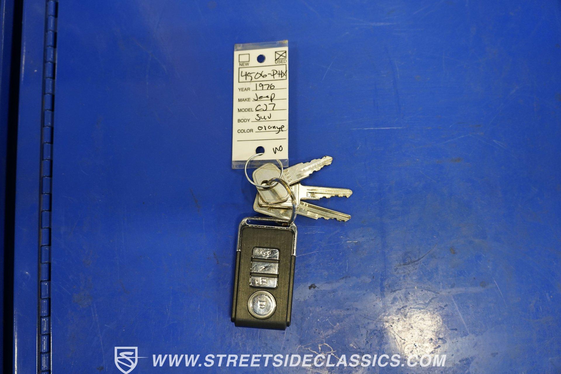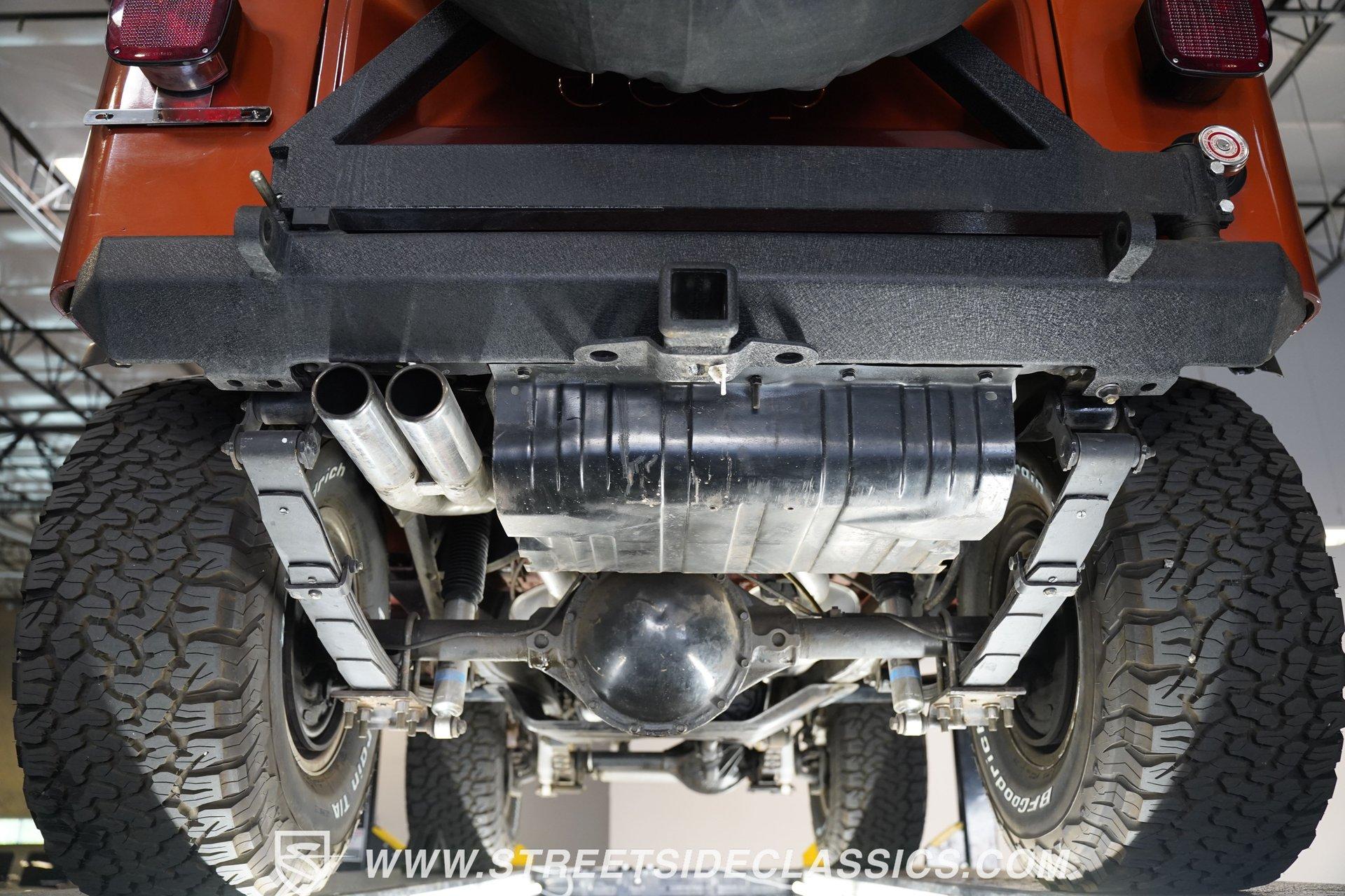 Here is a beautiful, rugged 1976 Jeep CJ7 4x4. It's perfect for back trails, hills, rock climbing, shallow streams, and whatever other adventures you might find yourself up to. With a Shackle lift, huge tires, a powerful engine/drivetrain, and a Smittybilt rear bumper with a hitch, there won't be much that can stop you on your conquest. The LED headlights and LED light bar on the front bumper allow you to see better in the darkness and make you more visible to people and animals in the dark. And of course, if you're just into cruising and enjoying the fresh air, you might as well look great while you do it. The body is painted a rugged Orange with a Tan removable hard-top. The Dark Grey wheel well extensions and black side steps make this Jeep look good and fun to drive anywhere. The interior looks well-kept, with tan front and rear Bestop cloth seats. The same Orange from the exterior carries over to the dashboard and door panels. The non-orange portions of the door panels are tan, clean, and visually appealing. Above the passenger seating is a painted roll bar for occupant safety and style. The dashboard appears mostly original, featuring the speedometer, other gauges, and stock knobs and dials in the correct locations. There is no carpet, but the easy-to-clean textured floor pan keeps things practical. The Retrosound head unit with AM/FM/Aux and dual Memphis speakers provides modern audio. All shifting needs are handled by a floor shifter, with the 4x4 drive engagement shifter conveniently located next to it. Under the hood, you'll find a 304 cubic-inch V8 with an Edelbrock 4-Barrel paired with a Performer RPM intake. This is connected to a 3-speed manual Borg-Warner T150 with a Dana model 18 transfer case. Both front and rear suspensions use leaf springs, connecting to a solid front Dana 30 axle and a solid rear AMC model 20 axle. Beefy 15-inch aftermarket wheels are wrapped in even beefier BFG all-terrain 33X12.5R15 LT tires, DOT dated 2011. Long tube headers, dual exhaust, and Xcelerator mufflers deliver the perfect tuned sound from this beast. Highlights: 304 Cubic-Inch V8 Edelbrock 4-Barrel Paired With A Performer RPM Intake 3-speed Manual Borg-Warren T150 With A Dana Model 18 Transfer Case Solid Front Dana 30 Axle Solid Rear AMC Model 20 Axle Leaf Springs Front And Back 15-Inch Rims BFG Front And Rear 33x12.5R15 LT Tires DOT Dated 2001 Long Tube Headers, Dual Exhaust, And Xcelerator Mufflers Tan Removable Hard-Top Painted Tan Roll Bar Tan Front And Rear Bestop Cloth Seats Aftermarket Steering Wheel With Tan Cover On The Rim Retrosound Head Unit With AM/FM/Aux And Dual Memphis Speakers Correct Size Spare Tire With Cover Are you ready to take on the roads with this 1976 Jeep CJ7 4x4 monster? If so, you need to act fast, because this road warrior won't last long. Call Today.