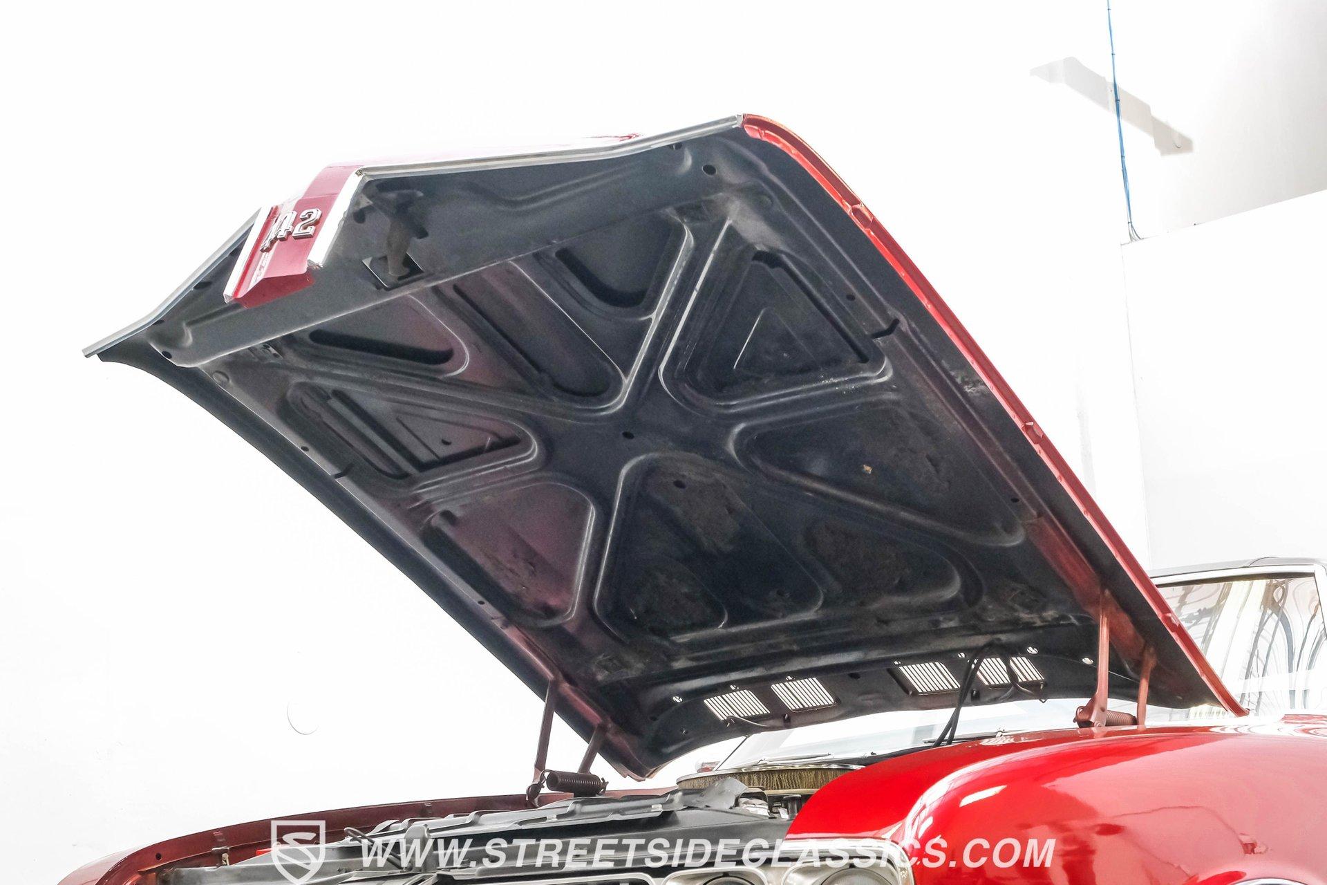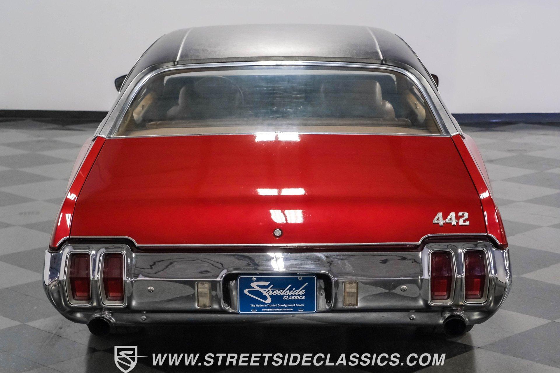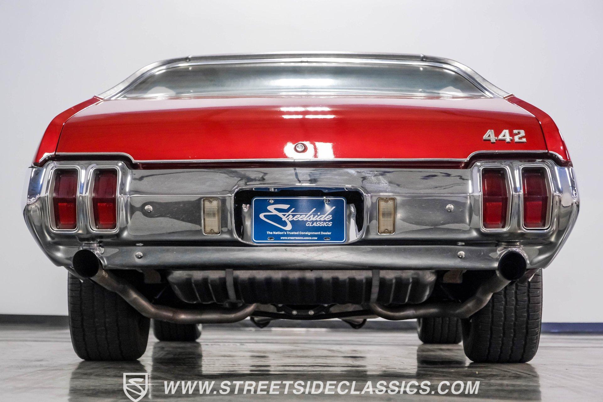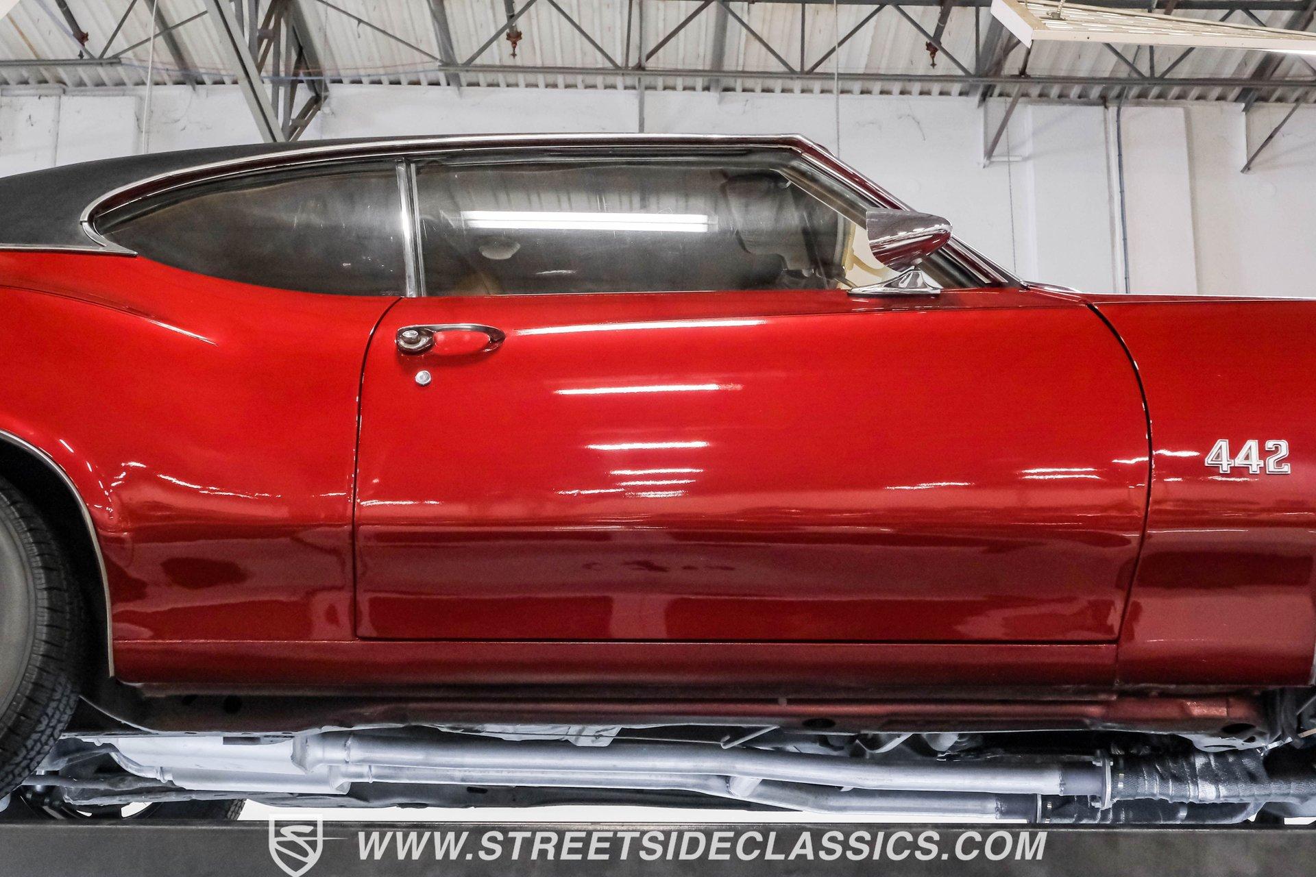 Often considered one of the high points in the muscle car era, and even more so for Oldsmobile, the 442 stands proudly as a flagship car for the Golden Age of high-horsepower vehicles. This particular 1970 Oldsmobile Cutlass 442 has an older repaint in a captivating shade of burgundy, complemented by its matching black hardtop and matching black hood stripes. Thanks to its streamlined Holiday Hardtop design, this awesome Olds look aggressive from any angle. Inside, we find a mostly original stock and correct saddle vinyl interior. A center console separates twin bucket seats, while a trick power-assisted Grant GT wheel sits just ahead of a trio of Rally Pack gauges. At the same time, another triplet of Sunpro auxiliary gauges is mounted under the dashboard, while a Retro Sound AM/FM/AUX head unit with a digital display takes the place of the original unit. Under the hood, we find a custom-built 455 cubic-inch overhead valve V-8 engine. Bored 0.30 over, balanced, and equipped with a mild performance cam, this big block is fed through an ample 750 cfm Edelbrock four-barrel carburetor and air gap intake manifold. Spent gases are expelled through long tube headers before the three-inch exhaust gives way to a set of FlowMaster mufflers, giving this old-school muscle car a growl commensurate with its power. Power is routed through a built TH400 three-speed automatic transmission with a 2500 stall converter before heading out to the 12-bolt rear, which transfers those ponies to the pavement via a set of polished 15-inch American Racing Torq Thrust II wheels shod in 225/60R-15 BFGoodrich rubber. HIGHLIGHTS: Holiday Hardtop Built 455 CID V8, Bored 0.30 Over 750 cfm Edelbrock Carb Air Gap Intake Performance Cam 1000 Miles On Rebuilt Engine Long Tubes Headers w/ H Pipe Three Inch Exhaust w/ FlowMasters Power Front Disc Brakes Polished American Racing Wheels The 1970 Oldsmobile Cutlass 442 is equipped with a suspension system featuring an independent front end and a live axle rear, complemented by coil springs and heavy-duty shocks at all four corners. Power brakes highlighted by a set of front discs stand ready to scrub off speed at a moment's notice. With just 1,000 miles on its newly built engine, this boulevard bruiser has plenty of life left for its new owner to enjoy. But don't wait, call today!