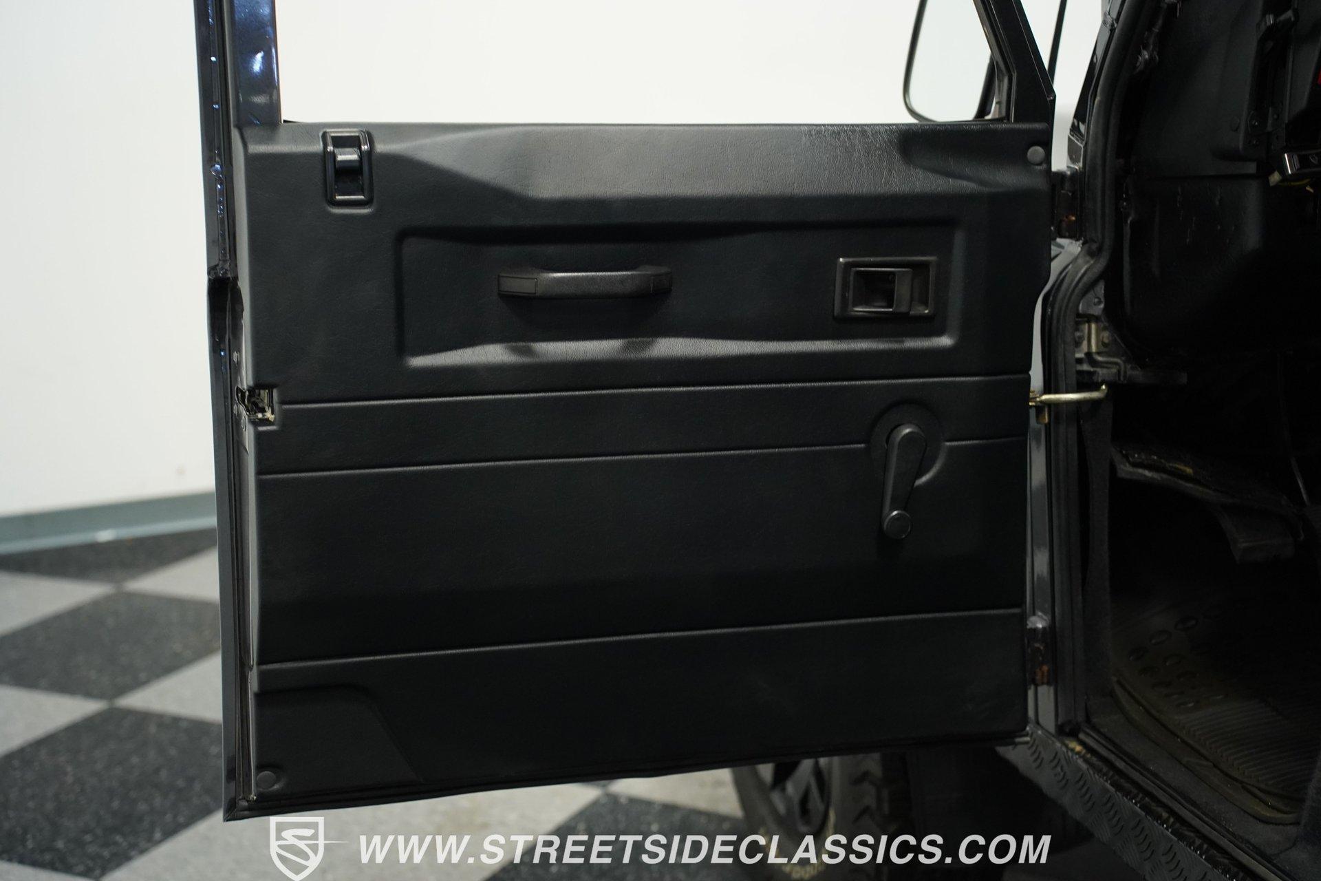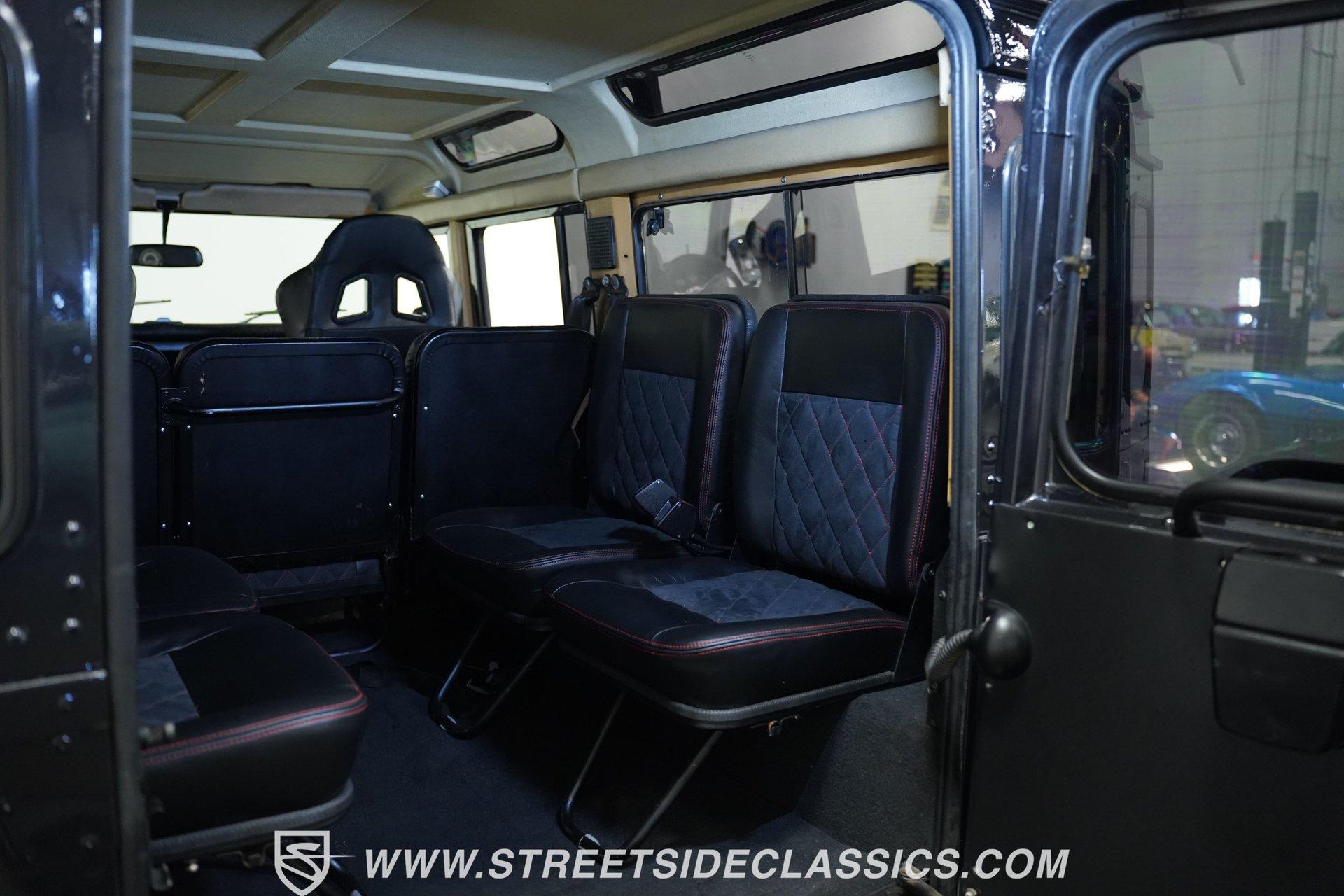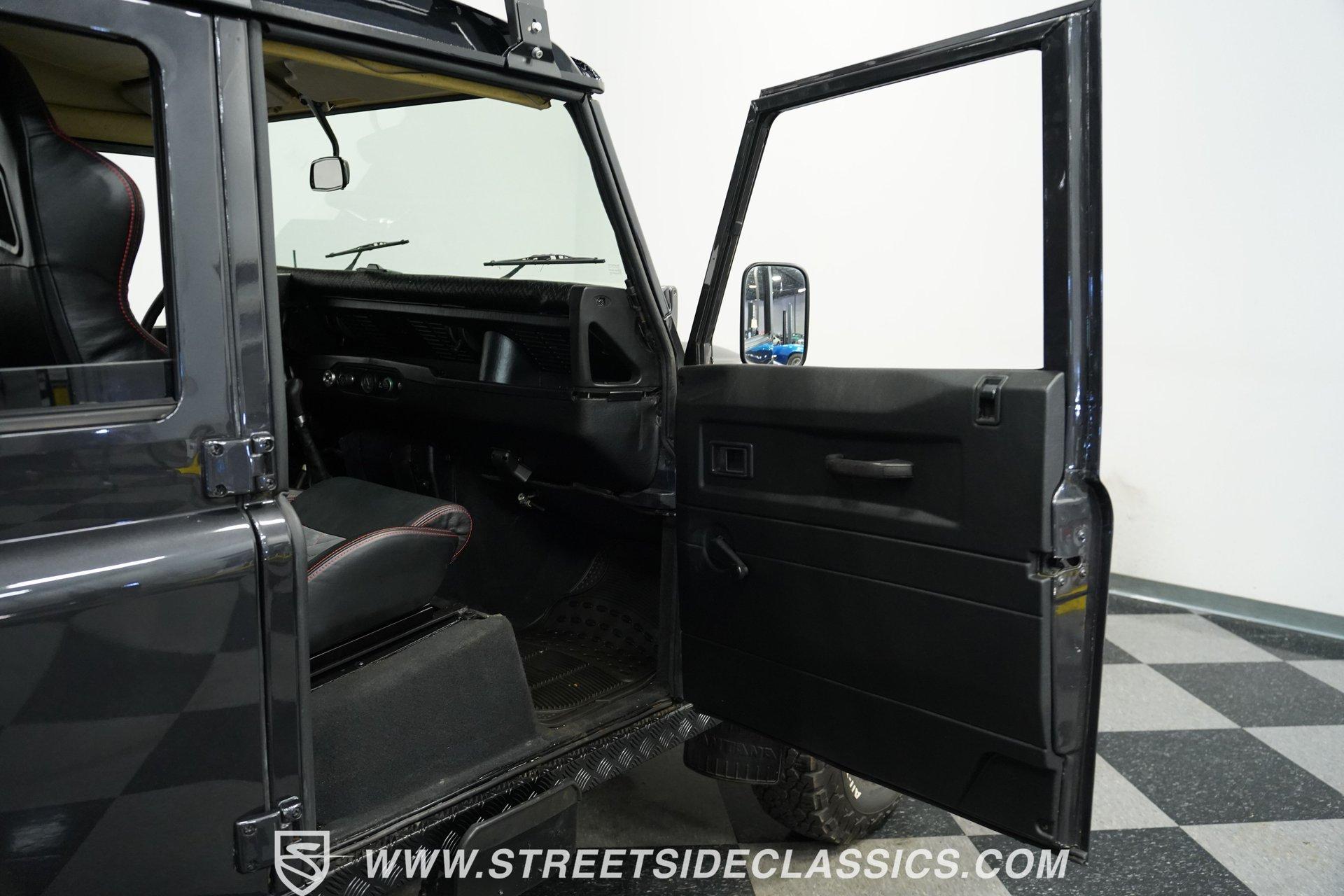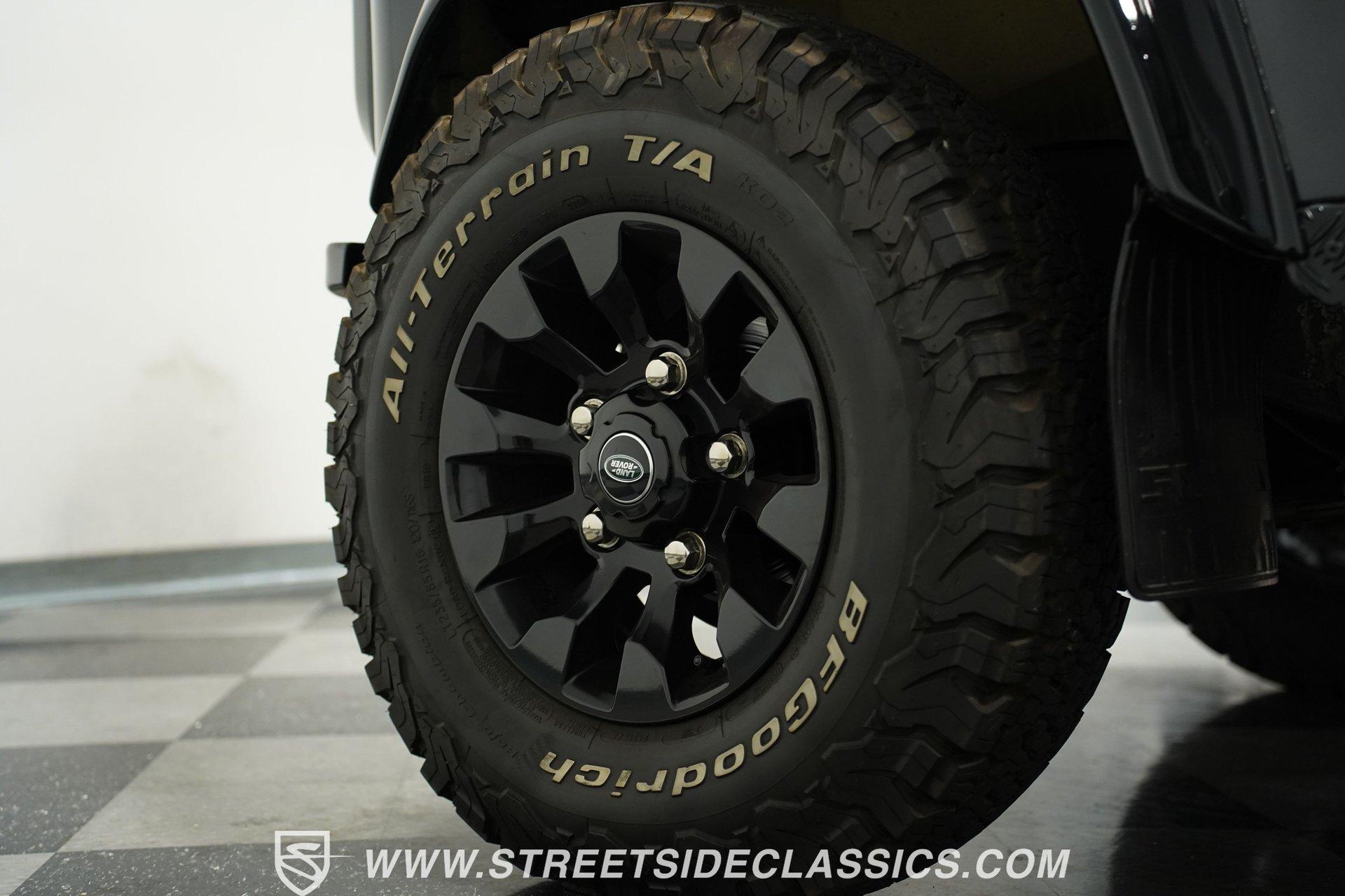 This 1989 Land Rover Santana 110 4x4 is made for toughness. It has been repainted in Charcoal Gray, a color that looks great on a rough-and-tumble truck like this. The aftermarket Defender front bumper pairs well with the heavy-duty rockers and fender extensions. The rear bumper also appears aftermarket and hardcore, complete with a trailer hitch. The Defender Land Rover wheels are in good shape-the black-painted look complements the truck's "Bad To The Bone" theme-and a full-sized spare is attached to the back end. Fold-down step sides make it easier to get in and out of the Land Rover, and the roof rack on top leaves you plenty of options for hauling cargo. The interior is semi-basic with a touch of custom flair. The front seats are high-back buckets covered in cloth and vinyl with red stitching, and there's a featured center console with cup holders. The second row seats three passengers, while the rear accommodates four more, and the seats are all wrapped in the same theme as the fronts. The headliner, carpets, and door panels are in decent condition. The steering wheel is custom, while the gauge cluster appears to be stock but easy to read. The door jambs are clean, the weather stripping looks solid, and the glass is free of major damage. Under the hood sits a 2.5-liter 4-cylinder diesel engine with fuel injection. Paired with it is a 5-speed manual transmission and a dual-range transfer case powering the front and rear axles. The front and rear suspension consists of coil springs and live axles. The 16-inch Defender wheels are wrapped in LT235/85R16 tires, date-coded 2018. Stopping this beast is power front disc brakes and power rear drum brakes. Highlights: 4x4 2.5-Liter 4-Cylinder Diesel Engine With Fuel Injection 5-Speed Manual Transmission With A Dual Range Transfer Case Front And Rear Coil Springs And Live Axles 16-Inch Defender Wheels Front And Rear BFG All-Terrian LT235/85R16 Tires Date Coded 2018 Full-Sized Matching Spare Tire Defender Front Grille Trailer Hitch Big Roof Rack Power Front Brakes And Rear Drum Brakes Stock-Style Exhaust Aftermarket Vinyl And Cloth Seating With Red Stitching Seats Up To Nine If your driving needs go beyond the average commute around the average town, maybe it's time to step into something that can take on much more. This 1989 Land Rover Santana 110 will get you wherever you want to go and through whatever terrain or obstacles you choose to conquer. Call Today!