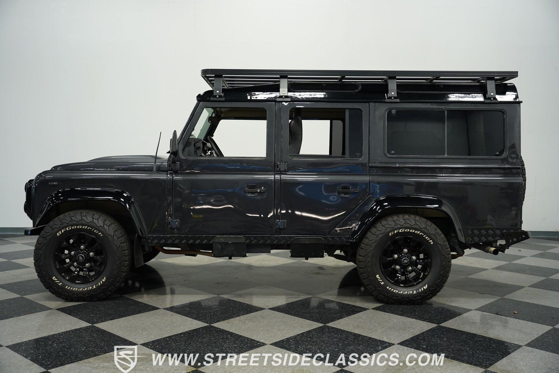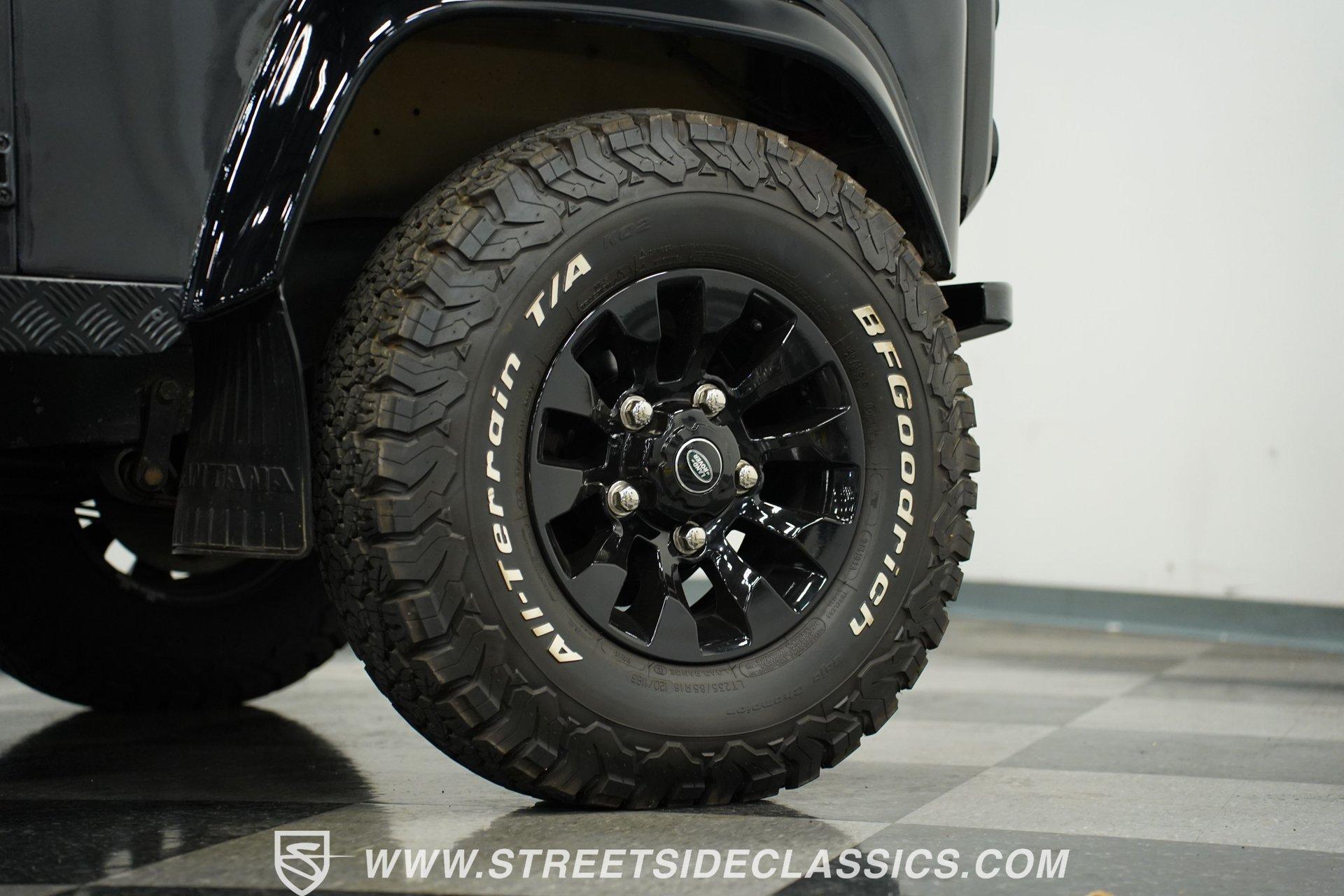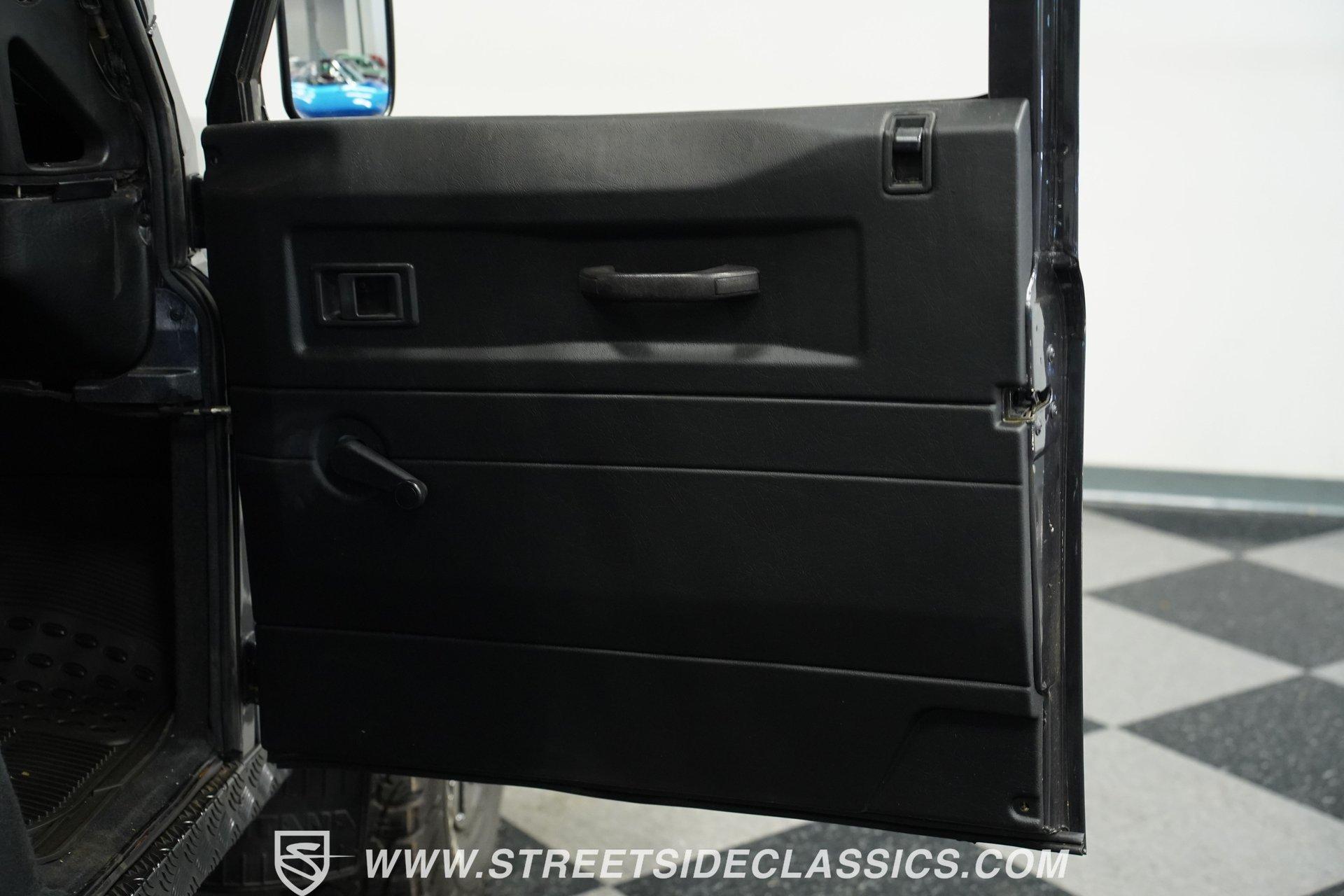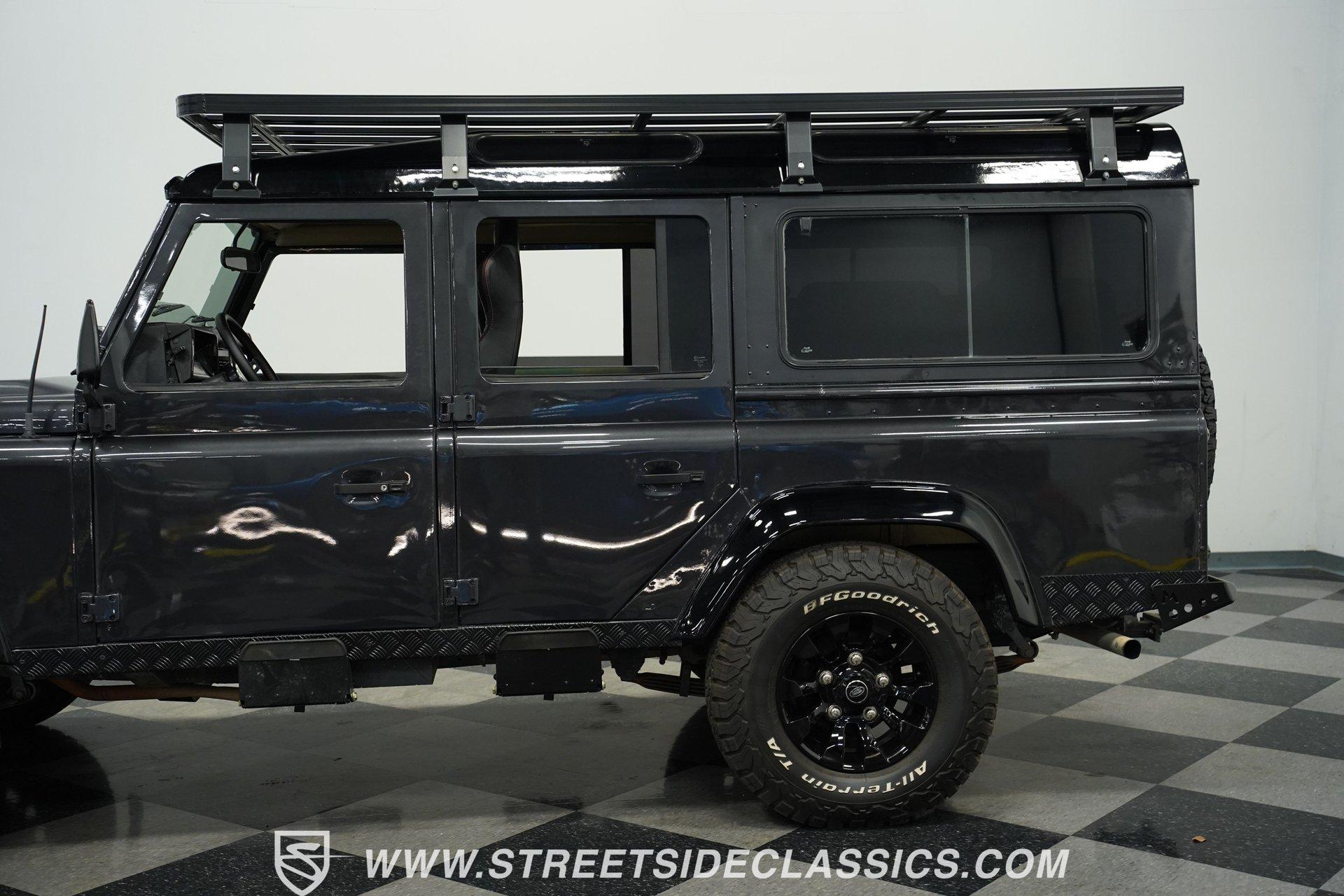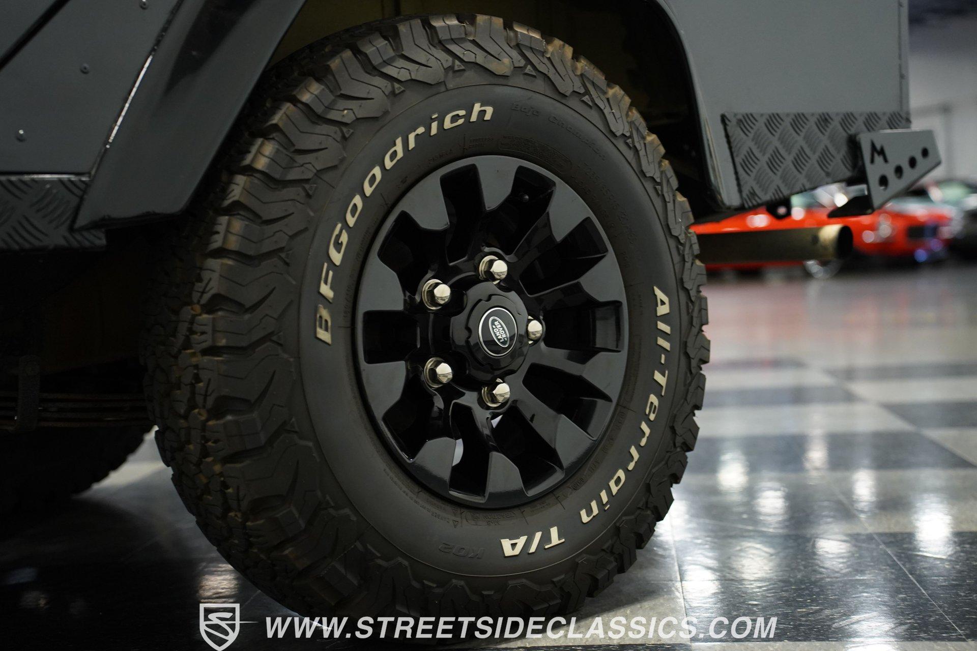 This 1989 Land Rover Santana 110 4x4 is made for toughness. It has been repainted in Charcoal Gray, a color that looks great on a rough-and-tumble truck like this. The aftermarket Defender front bumper pairs well with the heavy-duty rockers and fender extensions. The rear bumper also appears aftermarket and hardcore, complete with a trailer hitch. The Defender Land Rover wheels are in good shape-the black-painted look complements the truck's "Bad To The Bone" theme-and a full-sized spare is attached to the back end. Fold-down step sides make it easier to get in and out of the Land Rover, and the roof rack on top leaves you plenty of options for hauling cargo. The interior is semi-basic with a touch of custom flair. The front seats are high-back buckets covered in cloth and vinyl with red stitching, and there's a featured center console with cup holders. The second row seats three passengers, while the rear accommodates four more, and the seats are all wrapped in the same theme as the fronts. The headliner, carpets, and door panels are in decent condition. The steering wheel is custom, while the gauge cluster appears to be stock but easy to read. The door jambs are clean, the weather stripping looks solid, and the glass is free of major damage. Under the hood sits a 2.5-liter 4-cylinder diesel engine with fuel injection. Paired with it is a 5-speed manual transmission and a dual-range transfer case powering the front and rear axles. The front and rear suspension consists of coil springs and live axles. The 16-inch Defender wheels are wrapped in LT235/85R16 tires, date-coded 2018. Stopping this beast is power front disc brakes and power rear drum brakes. Highlights: 4x4 2.5-Liter 4-Cylinder Diesel Engine With Fuel Injection 5-Speed Manual Transmission With A Dual Range Transfer Case Front And Rear Coil Springs And Live Axles 16-Inch Defender Wheels Front And Rear BFG All-Terrian LT235/85R16 Tires Date Coded 2018 Full-Sized Matching Spare Tire Defender Front Grille Trailer Hitch Big Roof Rack Power Front Brakes And Rear Drum Brakes Stock-Style Exhaust Aftermarket Vinyl And Cloth Seating With Red Stitching Seats Up To Nine If your driving needs go beyond the average commute around the average town, maybe it's time to step into something that can take on much more. This 1989 Land Rover Santana 110 will get you wherever you want to go and through whatever terrain or obstacles you choose to conquer. Call Today!