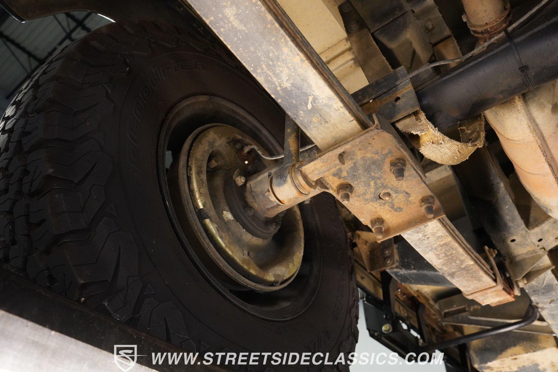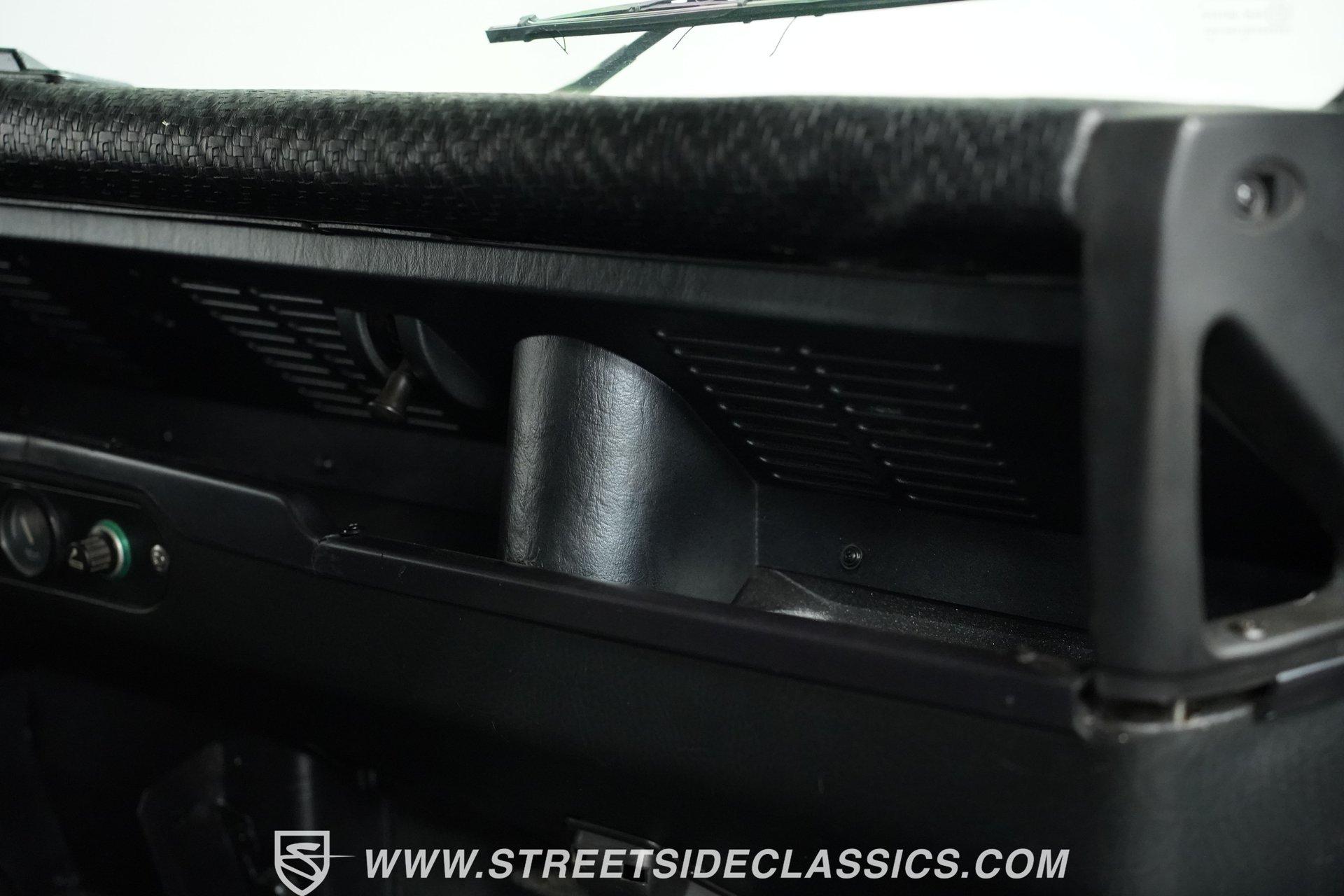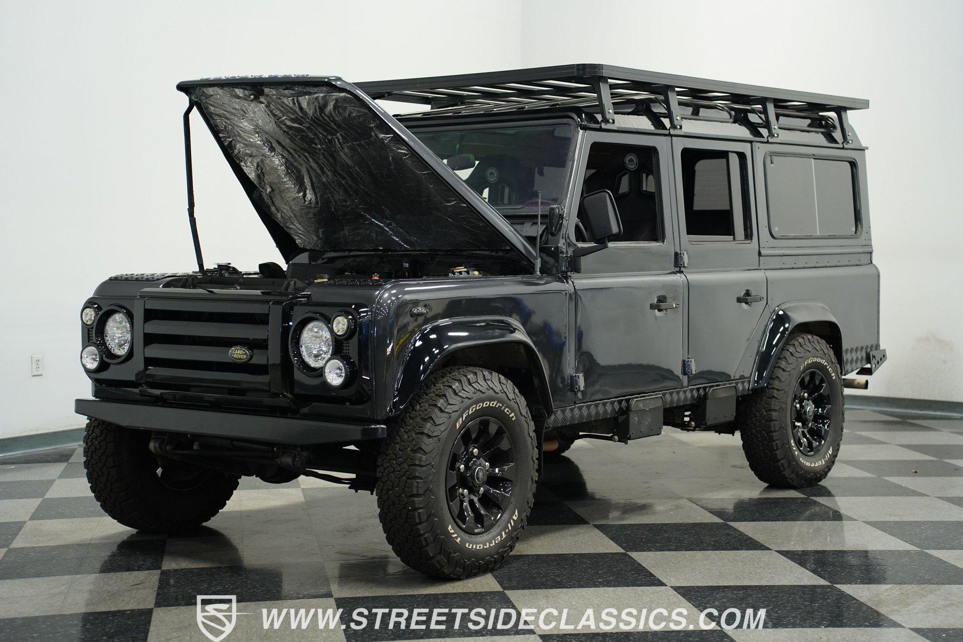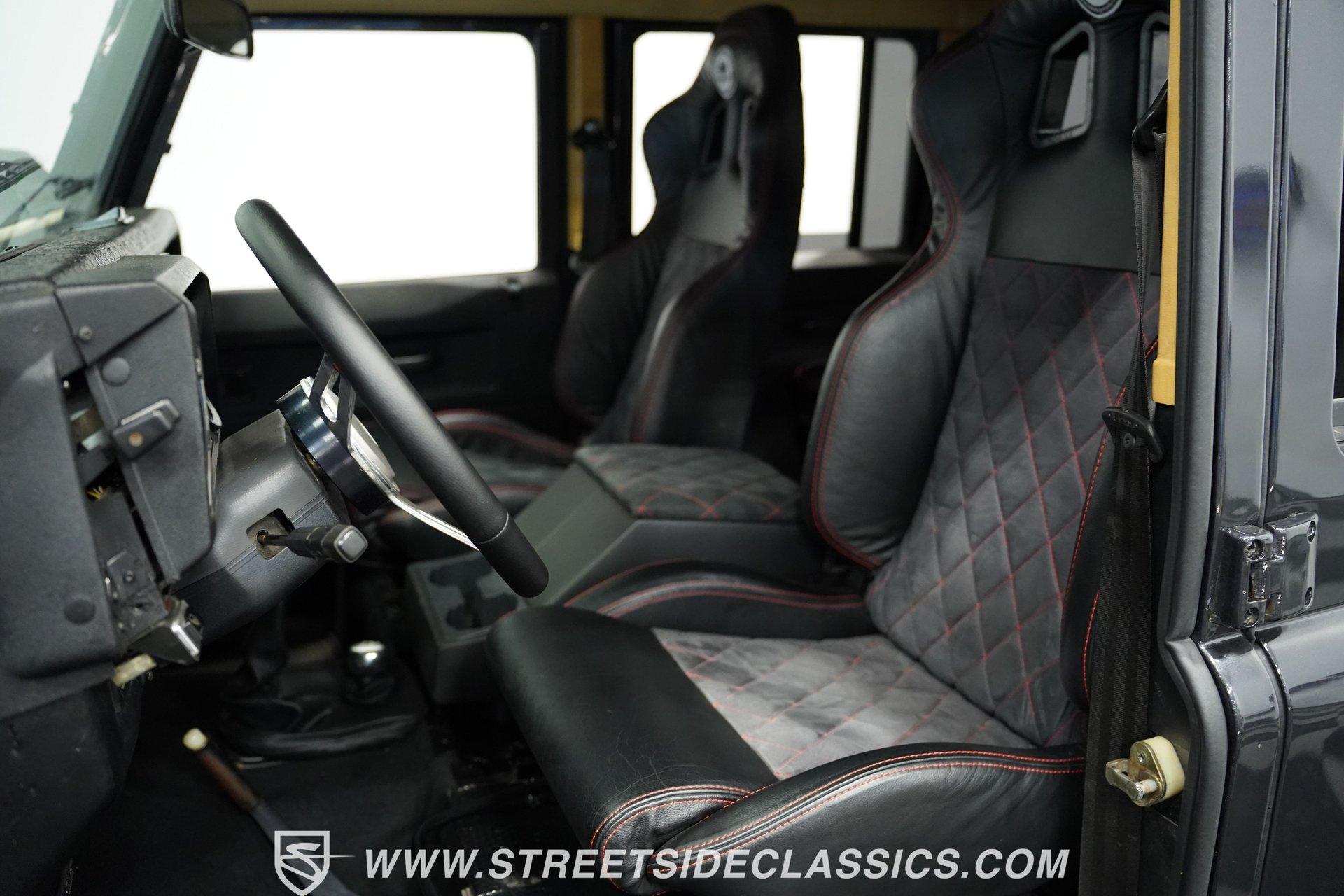 This 1989 Land Rover Santana 110 4x4 is made for toughness. It has been repainted in Charcoal Gray, a color that looks great on a rough-and-tumble truck like this. The aftermarket Defender front bumper pairs well with the heavy-duty rockers and fender extensions. The rear bumper also appears aftermarket and hardcore, complete with a trailer hitch. The Defender Land Rover wheels are in good shape-the black-painted look complements the truck's "Bad To The Bone" theme-and a full-sized spare is attached to the back end. Fold-down step sides make it easier to get in and out of the Land Rover, and the roof rack on top leaves you plenty of options for hauling cargo. The interior is semi-basic with a touch of custom flair. The front seats are high-back buckets covered in cloth and vinyl with red stitching, and there's a featured center console with cup holders. The second row seats three passengers, while the rear accommodates four more, and the seats are all wrapped in the same theme as the fronts. The headliner, carpets, and door panels are in decent condition. The steering wheel is custom, while the gauge cluster appears to be stock but easy to read. The door jambs are clean, the weather stripping looks solid, and the glass is free of major damage. Under the hood sits a 2.5-liter 4-cylinder diesel engine with fuel injection. Paired with it is a 5-speed manual transmission and a dual-range transfer case powering the front and rear axles. The front and rear suspension consists of coil springs and live axles. The 16-inch Defender wheels are wrapped in LT235/85R16 tires, date-coded 2018. Stopping this beast is power front disc brakes and power rear drum brakes. Highlights: 4x4 2.5-Liter 4-Cylinder Diesel Engine With Fuel Injection 5-Speed Manual Transmission With A Dual Range Transfer Case Front And Rear Coil Springs And Live Axles 16-Inch Defender Wheels Front And Rear BFG All-Terrian LT235/85R16 Tires Date Coded 2018 Full-Sized Matching Spare Tire Defender Front Grille Trailer Hitch Big Roof Rack Power Front Brakes And Rear Drum Brakes Stock-Style Exhaust Aftermarket Vinyl And Cloth Seating With Red Stitching Seats Up To Nine If your driving needs go beyond the average commute around the average town, maybe it's time to step into something that can take on much more. This 1989 Land Rover Santana 110 will get you wherever you want to go and through whatever terrain or obstacles you choose to conquer. Call Today!