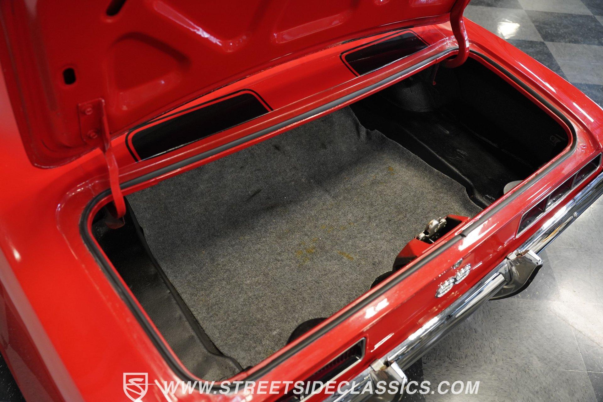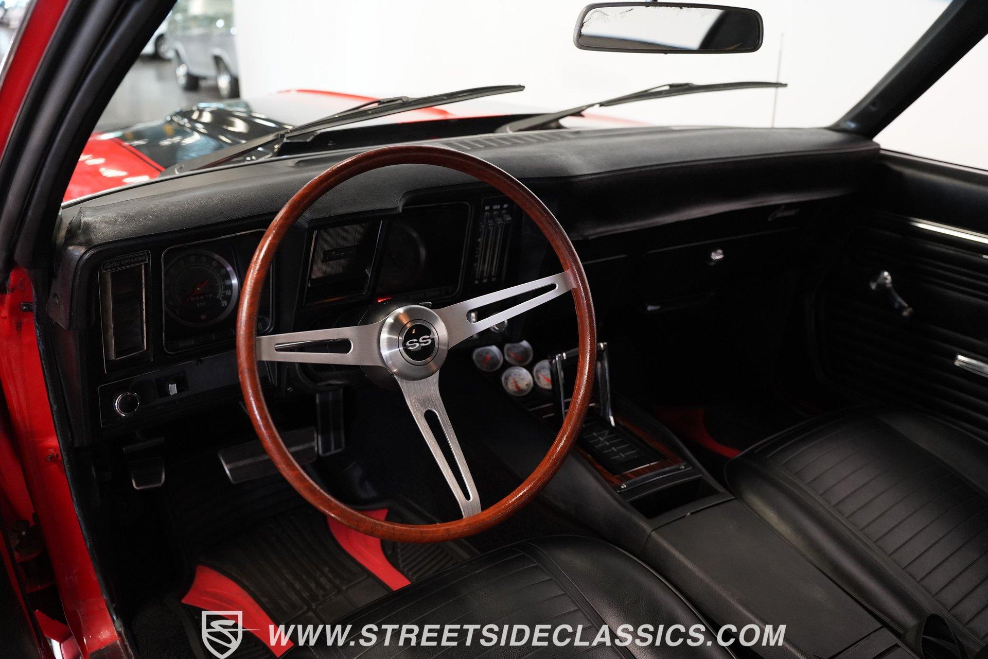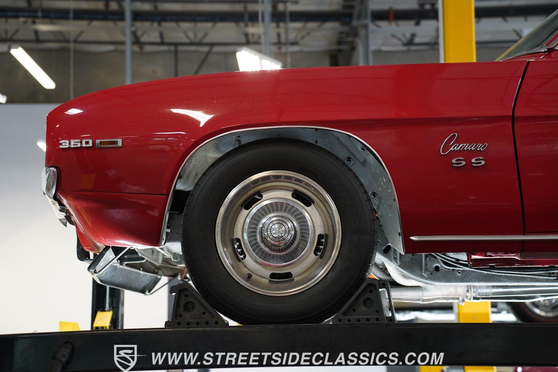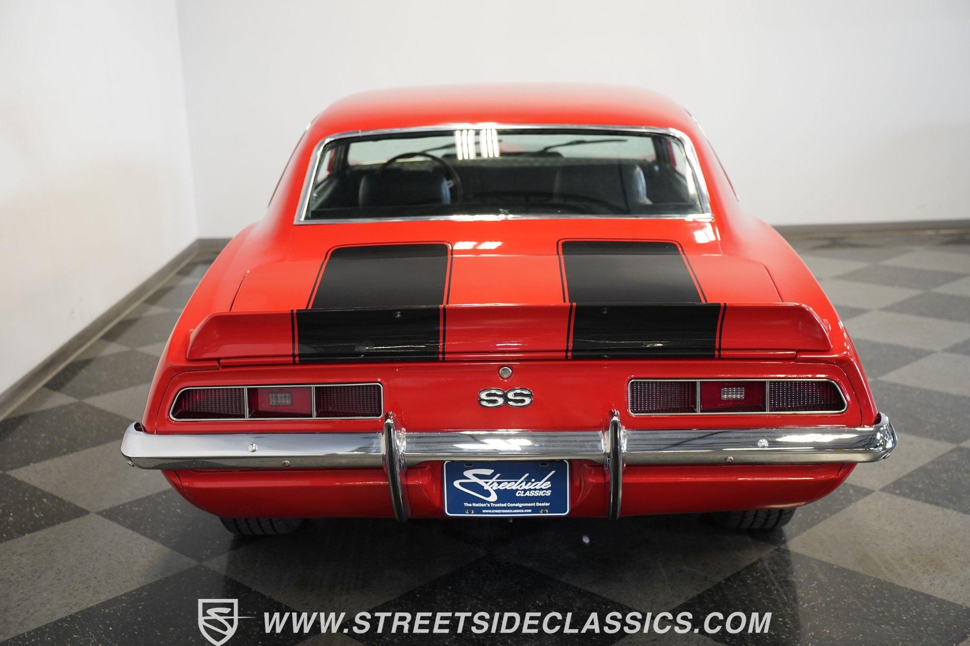 If you've ever wanted to own the classic car of your dreams, here's your chance. This 1969 Chevrolet Camaro SS 350 Tribute has all the attributes of a true SS and is priced to sell. The red paint with black painted stripes looks fantastic. All of the badges, trim, and stance look correct. The Chevy Rally wheels, cowl induction hood, sharp front grille, chin spoiler, and rear spoiler make it almost impossible to tell this is a tribute car. With the interior looking much the same, if you don't tell anyone, no one will ever know it's not a numbers-matching SS 350 The interior is black with vinyl high-back front bucket seats and a rear bench seat. They are in great condition, as are the door panels, carpet, and headliner. The dashboard retains its original look, featuring easy-to-read aftermarket gauges along with an additional set of gauges in the center console: Oil Temp, Trans Temp, Water Temp, and Voltage. The dash pad is in very good shape, as is the center console, which houses the sought-after staple shifter. For audio entertainment, there is a stock-appearing AM/FM/Cassette radio with a CD player mounted under the glove box. Heavy-duty floor mats protect the carpet, while the door sills, door jambs, and weather stripping all look good. Under the hood, the engine bay is well put together with chrome Edelbrock valve covers and an air cleaner cover. A black painted firewall and fenders frame the 350 cubic-inch V8 engine, equipped with an Edelbrock carburetor and intake. Power is delivered through a TH350 3-speed automatic transmission to a 10-bolt solid rear axle. The front suspension is an independent setup with control arms and coil springs, while the rear uses leaf springs and air shocks. The 15-inch Rally wheels with beauty rings and center caps are wrapped in Uniroyal 215/65R15 front tires and 235/60R15 rear tires. For stopping power, front and rear drum brakes handle the duties, while long-tube headers, dual exhaust, and Flowmaster mufflers make this Camaro sound like a true muscle car. HIghlights: 350 Cubic-Inch V8 Engine Edelbrock Carburetor Edelbrock Intake TH350 3-Speed Automatic Transmission 10-Bolt Solid Axle Rear End Front Independent Suspension With Control Arms And Coil Springs Rear Leaf Springs With Air Shocks 15-inch Rally Wheels With Beauty Rings And Center Caps Uniroyal 215/65R15 Front Tires And 235/60R15 Rear Tires Tube Headers, Dual Exhaust, Flowmaster Mufflers Power Steering Heat/Defrost AM/FM/Cassette Radio With CD Changer Center Console With Staple Shifter Aftermarket Gauges In Dash Aftermarket Gauges In Center Console: Oil Temp, Trans Temp, Water Temp, And Voltage This car is solid, clean, and an accurate rendition of what a true SS 350 would look like. Everyone wants to own a numbers-matching classic, but that's not always possible. This 1969 Chevrolet Camaro SS 350 Tribute is an awesome way to make your dream come true. Call Today!