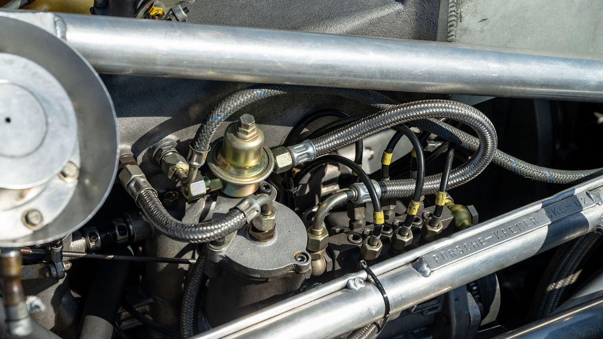 Engine No. 6980077/1 Transmission No. 917 093 Throughout the 1970s, 1980s, and 1990s Kremer and Porsche were about as inseparable as a privateer race team and manufacturer can be without being absorbed as an official works entry. Founded by the brothers Kremer (Manfred and Erwin) in 1962, the Auto Kremer restoration shop in Cologne, Germany, quickly became a racing hub of supreme significance. Toward the end of that decade the Kremer race team hit their stride with class wins at the Spa 24 Hours and Le Mans 24 Hours—always in GT-class Porsche 911s. As Porsche advanced throughout the ‘70s so too did Kremer. The Kremer brothers fielded Porsches in both Group 4 (934) and Group 5 (935) before striking it out on their own with their own 935-based Kremer K2s. As the Porsche factory began to move away from GT sports car racing, placing a greater importance on the Group 6 936, Kremer rolled all of their engineering knowledge into their own 935 K3. The K3 became a juggernaut catapulting the team to an overall victory at the 1979 24 Hours of Le Mans at the hands of Klaus Ludwig and the Whittington brothers, simultaneously entrenching them as bona fide race car manufacturers at the highest level. As the FIA announced new endurance racing rules for 1982 replacing the numeric nomenclature, Kremer had a decision to make: purchase Porsche’s cutting-edge design when it became available and race as a privateer against the factory or continue to build and modify their own cars as a constructor as they had since the late 1970s. It turns out Porsche made the decision for them with those in Zuffenhausen and Weissach restricting the use of the new 956 for the factory team for 1982. Spurred onward, Kremer’s technical team began construction of their new Group C class sportscar racing prototype dubbed the CK5 in reference to the series of "K" creations that began in 1976. Just as with the 935 K3, the CK5 was heavily Porsche influenced. The Group C sportscar racing prototype featured a closed cockpit and gullwing bodywork by Ekkehard Zimmermann of the famous Design Plastik firm with 936-style aluminum spaceframe construction and a chassis that combined elements of 908/3 and 936, with a roof added. Powering the new CK5 was the venerable twin-turbocharged flat-six in 2.8-liter form. Upon debut at Le Mans, against the mighty armada of three new factory 956s, Lancias, Ford C100s, and Sauber Fords, the CK5 qualified an impressive 8th in a solid field of 56. Clocked at 207 mph on the Mulsanne Straight, it was undeniably quick running as high as 3rd overall. At the end of the season Kremer’s CK5-01 was sold to Richard Cleare Racing in the U.K. In preparation for the 1983 Group C season, Kremer built a second CK5-02—the very same that Broad Arrow Auctions is proud to offer here. The engine gained 200-cc and according to Jürgen Barth was now similar to that used in the 935 K3. The four-valve race-spec engine featured flat-fan cooling, Bosch mechanical fuel-injection, twin-spark ignition, adjustable boost control, and a massive intercooler set on top. Numerous parts were borrowed from the all-conquering 917. In fact, Barth states that the car “owed more to the 917 than the 936.” Most notably the four-speed gearbox is a Type 920 unit from a 917/10, while 917 brake calipers and rotors were used in addition to 917 wishbones, suspension uprights, hubs, and steering rack. Given Kremer’s experience with the 936, which used a number of 917 parts, and their own 917/81 built for Le Mans in 1981, it makes sense that these tested lightweight components would find their way on the new car no matter how valuable they were quickly becoming. Kremer chassis CK5-02 made its race debut at the 24 Hours of Le Mans as start number 22 dressed in the colors of Grand Prix International magazine. With the trio of Formula One star Derek Warwick, German sports car ace Frank Jelinski, and Frenchman Patrick Gaillard behind the wheel, CK5-02 qualified 14th as the highest placed non-Porsche 956 or Lancia LC2. Warwick held his position on the opening laps and while battling the world’s best sports car teams and drivers, a head gasket failure put the team out after 76 laps and approximately five hours of hard racing. After Le Mans, chassis 02 stayed with the Kremer team piloted by Frank Jelinski at both the Trophäe and DRM Norisring races that July. By September the car was being run by Dutchman Kees Kroesemeijer who had previously raced a Porsche-powered URD prototype. The car was raced by Kroesemeijer, ex-F1 pilot Huub Rothengatter, and Austrian Franz Konrad at the Spa, Brands Hatch, and Kyalami 1000 Kms in Pametex Recycling livery to close out the 1983 season. For 1984, Kroesemeijer raced the car solo in German Interserie and DRM races and for longer events like the Nürburgring 1000 Kms he paired with South African George Fouché. 1985 held additional Interserie races for Kroesemeijer at the Nürburgring, AVUS, and Hockenheim among others. It is understood that after the 1985 race season, the Kremer team did few if any other racing events and would be retained within Kremer’s workshops into the late 1980s, eventually being painted dark blue and appearing in a period magazine advertisement for “Super Tronic”, a fuel injection additive. The dark blue prototype would then catch the eye of Walter Wolf, whose Wolf Racing F1 team already campaigned cars in this color. Entering the Wolf Racing stable, Walter would adorn the CK5 with his signature livery and it would feature in advertisements for Walter Wolf products. Eventually the CK5 would become part of the collection of Freisinger Motorsport, where it would remain for a number of years. When acquired by the present owner in 2018 from Freisinger Motorsport, the CK5, remaining in its period Walter Wolf livery, was brought to the U.S. Since that time this Porsche-Kremer prototype has been preserved in mostly undisturbed form as a testament to the early glory days of Group C inte