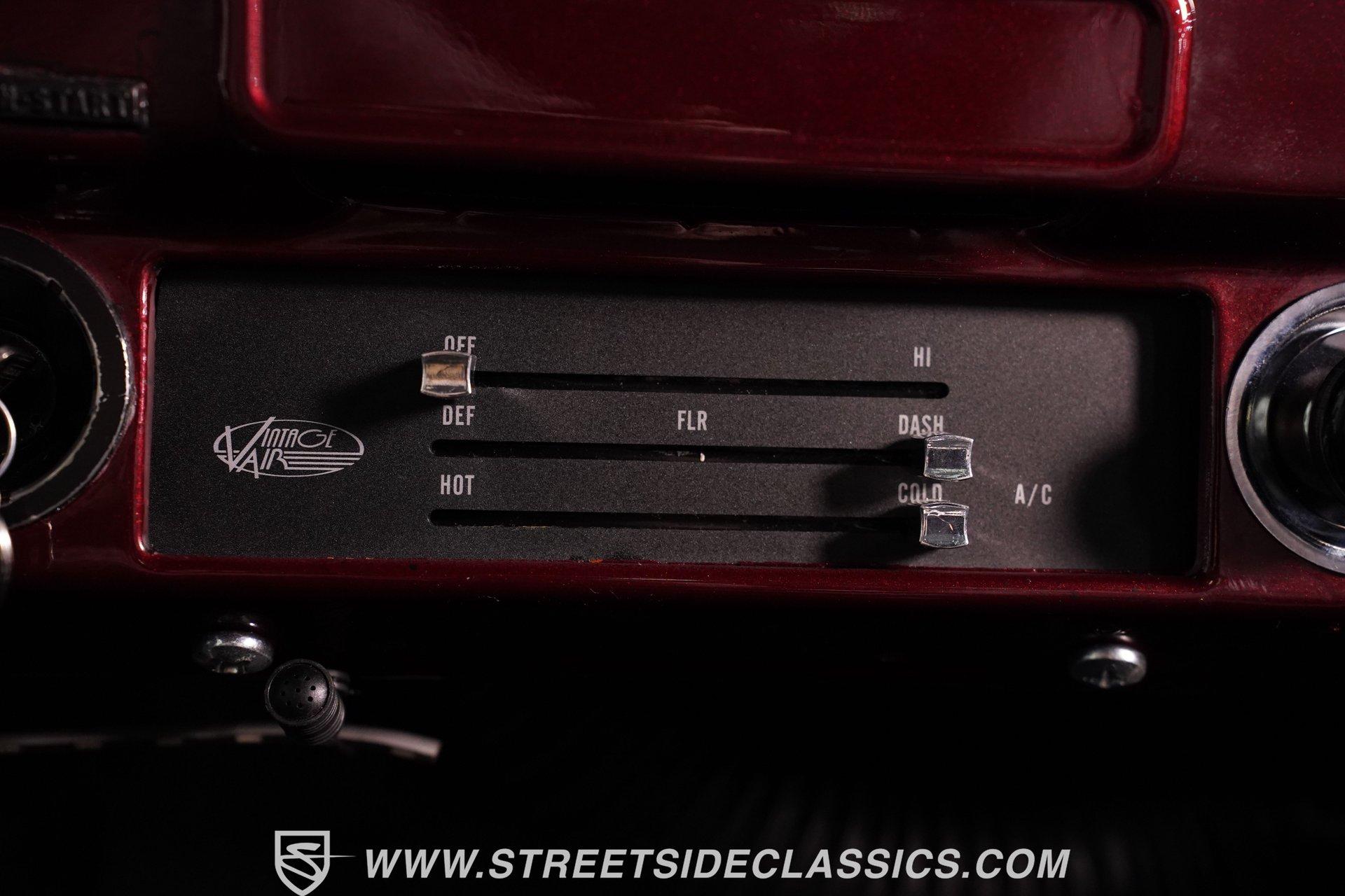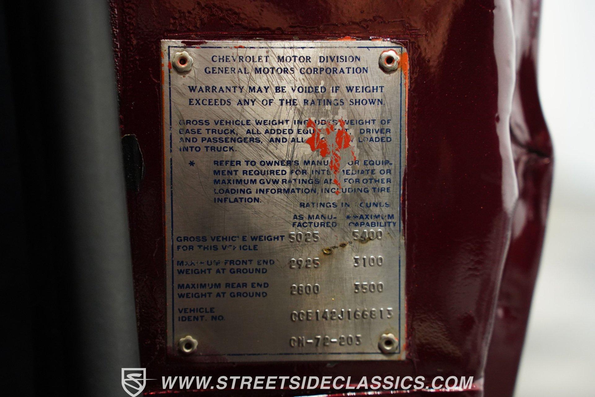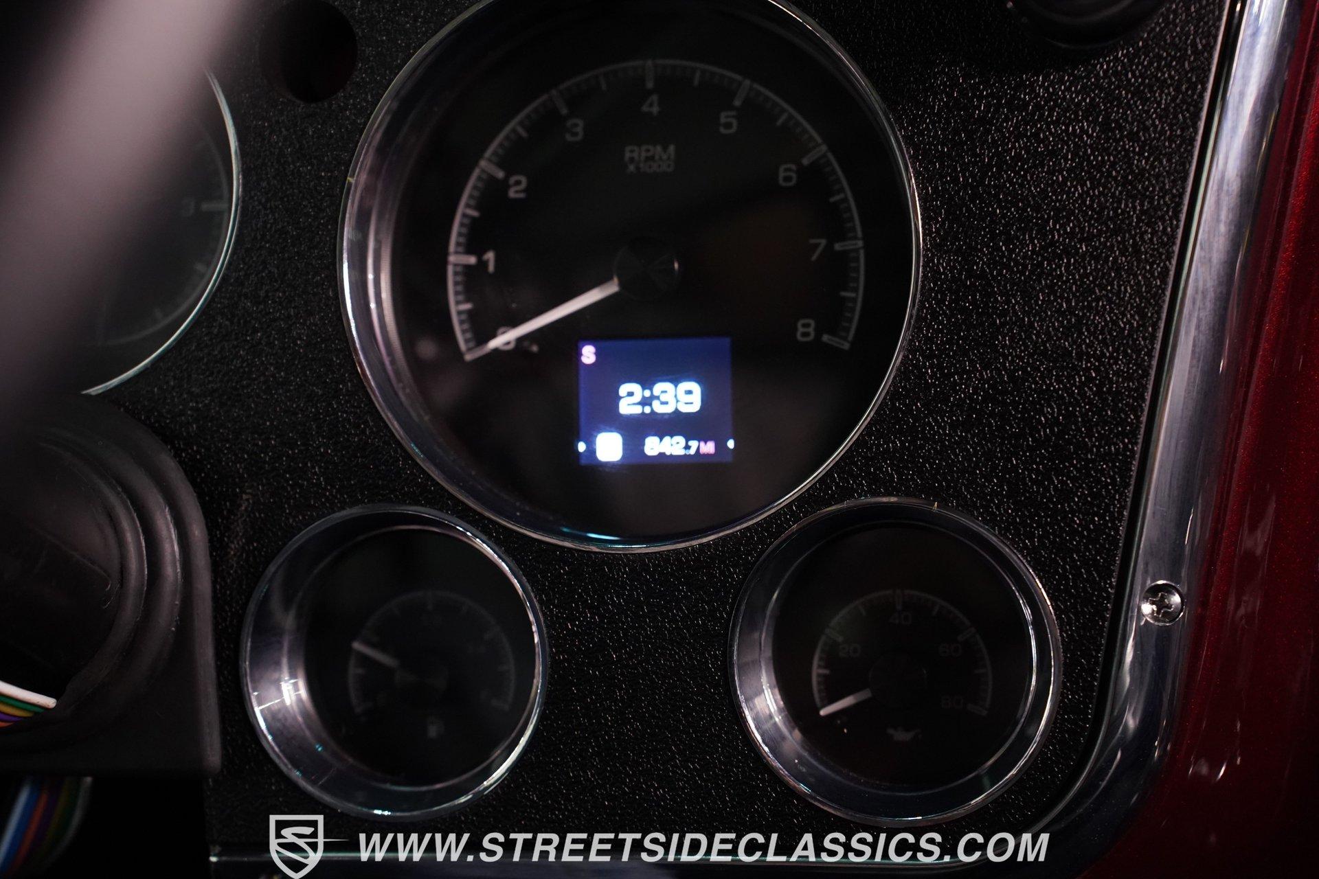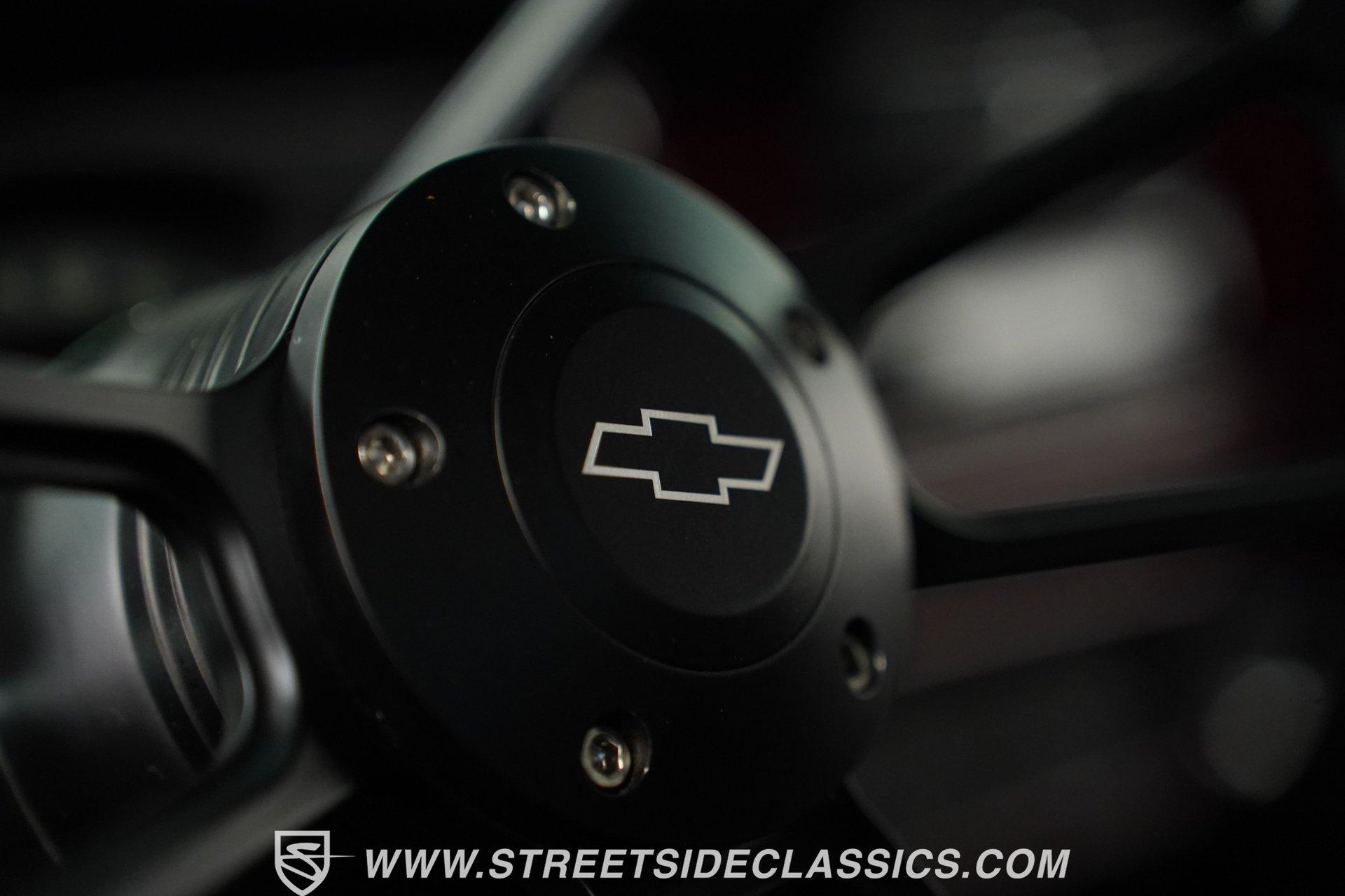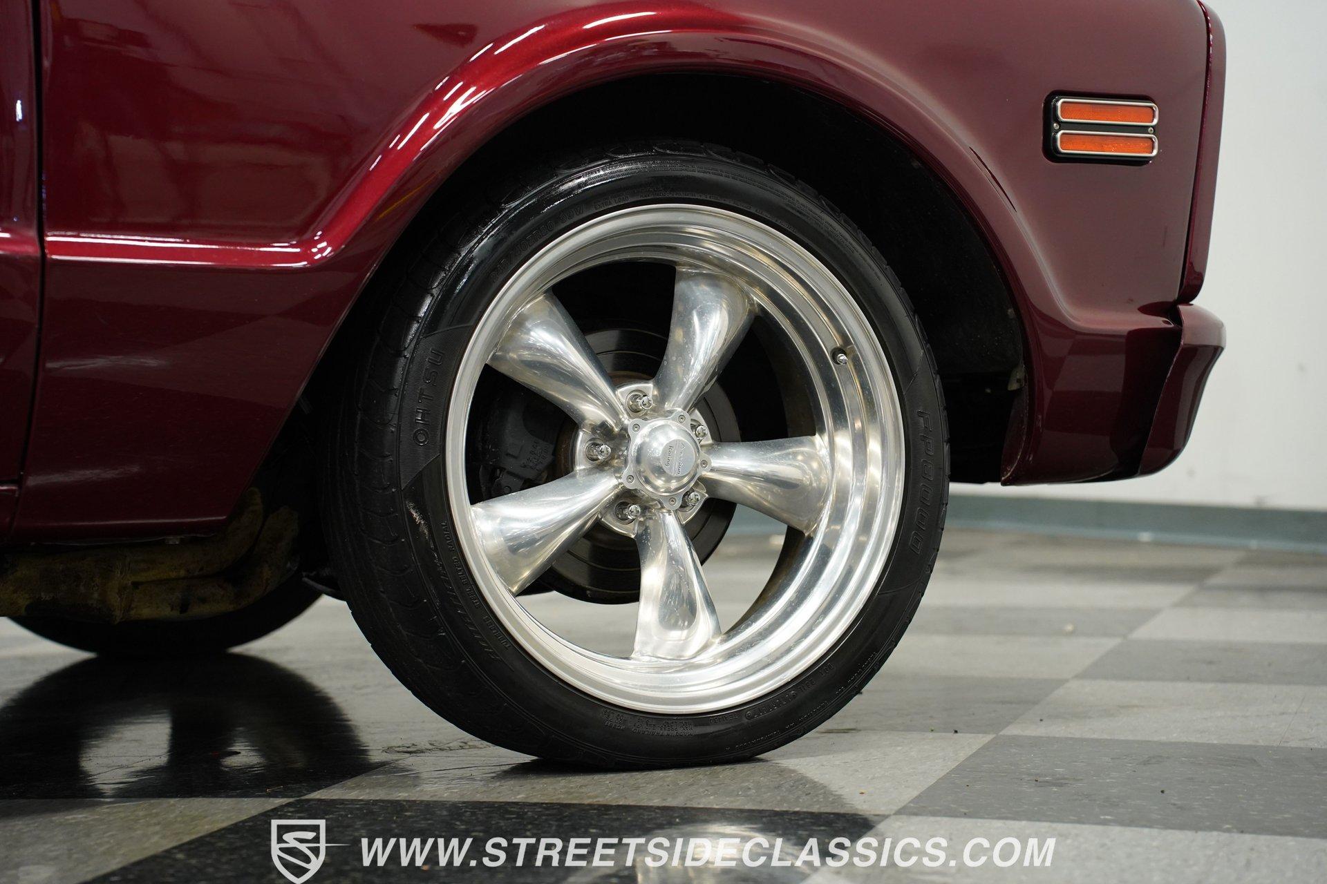 To say that this 1972 Chevrolet C10 Stepside was merely "restored" would be doing it a disservice. It was treated to a complete frame-off build, leaving it with a level of curb appeal that would be pretty hard to match. All the right aesthetic boxes were checked during the process. It boasts an outstanding maroon paint job with a shine that seems to be coming from way beneath the surface. Its color-matched bumpers and door handles combine with deleted chrome from front to back to maximize this Chevy's aggressive appearance. And take a look at that stance! Lowered and leveled, but still leaving enough ground clearance to make for worry-free driving in everyday conditions. This is one very sharp vintage pickup. Inside the doors, you'll find an essentially brand-new interior that features a pair of black vinyl-clad bucket seats sitting astride a center console that blends in perfectly while offering cupholders as well as some welcome interior storage space. The carpet below has a very fresh appearance that indicates it was installed not long ago. An aftermarket tilt column is now in place, putting the steering wheel in just the right position, and the upgraded gauge cluster looks very sharp and complements the painted maroon dash area that surrounds it. The bed area in the back has received its share of attention as well and is lined with wood planks that are in great shape. This classic Stepside is a blast to drive. It features a super-strong 396 cubic-inch V8 that's fed by a Holley Double Pumper carburetor, and its abundant power becomes obvious with just a tap on the accelerator. The engine sits in a very clean engine bay, dressed up with a CVF Front Runner serpentine pulley system, and crowned by an aluminum manifold, and it exhales into a pair of long tube headers that lead out to Flowmaster mufflers for a great, aggressive exhaust tone. Power steering makes this standout truck easy to navigate, while power brakes that include discs up front give it all the fade-resistant stopping ability it needs. HIGHLIGHTS 396 CUBIC-INCH V8 ENGINE NEW CVF FRONT RUNNER SERPENTINE PULLEY SYSTEM ELECTRIC FANS TO KEEP THINGS COOL UNDER THE HOOD ALUMINUM RADIATOR, ALTERNATOR, AND POWER STEERING PUMP 4-BARREL HOLLEY DOUBLE PUMPER CARBURETOR 3-SPEED AUTOMATIC TH350 TRANSMISSION POWER BRAKES, WITH DISCS UP FRONT POWER STEERING DUAL EXHAUST FEATURES FLOWMASTER MUFFLERS LONG TUBE HEADERS 20" AMERICAN RACING TORQ THRUST WHEELS STANDOUT MAROON EXTERIOR BLACK VINYL UPHOLSTERY, FEATURING BUCKET SEATS DAKOTA DIGITAL GAUGES AFTERMARKET TILT COLUMN AND STEERING WHEEL KENWOOD AM/FM STEREO WITH BLUETOOTH CONNECTIVITY AIR CONDITIONING Wielding outstanding power and configured to stand out in any crowd, this skillfully built 1972 Chevrolet C10 Stepside rolls on a set of 20" American Racing Torq Thrust wheels wrapped in beefy 245 series tires that add the perfect finishing touch to its tastefully aggressive look. Call today!
