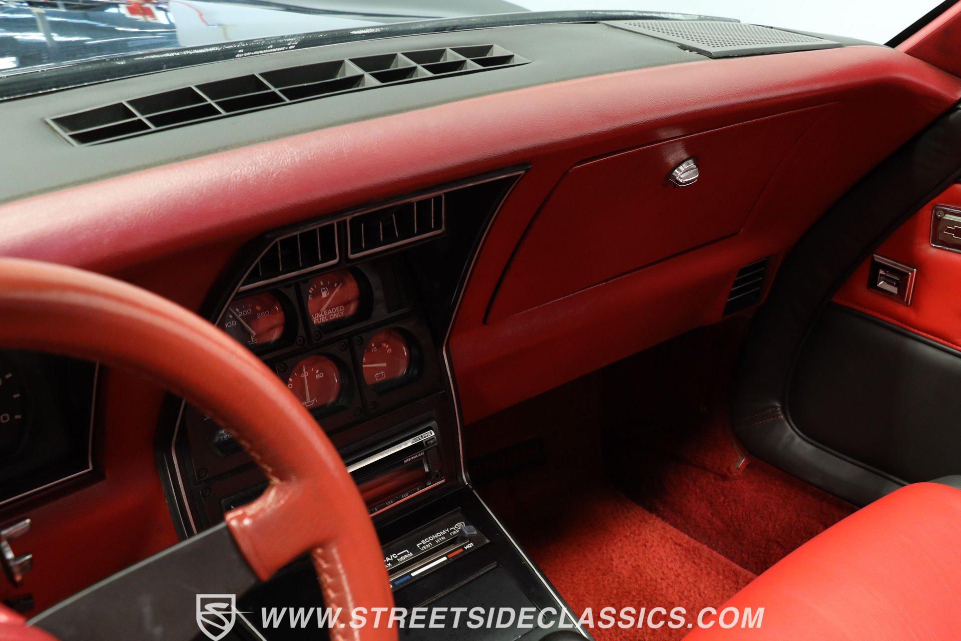 If numbers matching is one of those things you look for in a vehicle, then this 1981 Chevrolet Corvette falls right into your category. With 79,293 actual miles, this sports car is a true survivor. It looks great in its factory color Black, Corvette aluminum wheels, and with the curves that have made this American's #1 sports car. With the t-tops off, you won't want to stop cruising-just pass up your street and keep on going, listening to the sweet sound of the mufflers purr. The interior is super sporty, with red and black leather seats and classic Corvette symbols on the headrests. There are lots of power options, including power locks, power windows, power mirrors, power steering, and power brakes. Cold A/C is working and great to have in those hot summer months. The steering wheel is both tilt- and telescopic-adjustable. In the center console, there's an Alpine head unit with AM/FM/Aux and a CD player. Above that is a gauge cluster holding five different gauges, while to the left, in front of the driver, are the tachometer and speedometer. The shifter looks good and a rare sight in this year (we'll get to that later). The custom door panels look great and match the seats. Opening up the hood could feel a little odd since most Corvette hoods open in reverse. A couple of nice Chevy chrome valve covers present themselves well with a chrome air cleaner. But the real gem is the 350 cubic-inch engine, numbers-matching, with a Rochester Quadra-Jet carburetor. A 4-speed manual is used to slam those gears, making this Corvette a little rarer than others-since only about 1 out of every 8 Corvettes were built with a stick shift option in 1981. The front suspension uses A-arms with coil springs and shocks, while the rear suspension uses leaf springs with shocks. Aluminum stock-appearing wheels are 15-inch all the way around, wrapped with BFG Radial T/A 255/60R15 tires. For stopping power, four-wheel power disc brakes are used, and for exhaust sound, there is a mostly stock dual exhaust setup with aftermarket mufflers. Highlights: Owner's Manual With Plenty Of Receipts And Maintenance Records 79,293 Actual Miles 350 Cubic-Inch V8 Numbers Matching Numbers Matching 4-Speed Manual Front A-Arms With Coil Springs and Shocks Leaf Springs With Shocks 15-Inch Aluminum Corvette Wheels BFG Radial T/A 255/60R15 Tires Four-Wheel Power Disc Brakes Power Steering Air Conditioning Power Leather Seats Power Windows, Locks, And Mirrors Tilt And Telescopic Steering Wheel Alpine Stereo With AM/FM/CD/AUX Can you picture yourself in this 1981 Chevrolet Corvette? This is probably one of the best-looking, well-kept Corvettes from this era that you'll see this year. Original with numbers-matching, rare 4 speed option, black with red and black interior. Call today for more info! We can assist you with getting an Extended Vehicle Service Plan from Freedom Warranty, which provides comprehensive coverage that can save thousands of dollars on unexpected repairs. Inquire for more details and pricing!