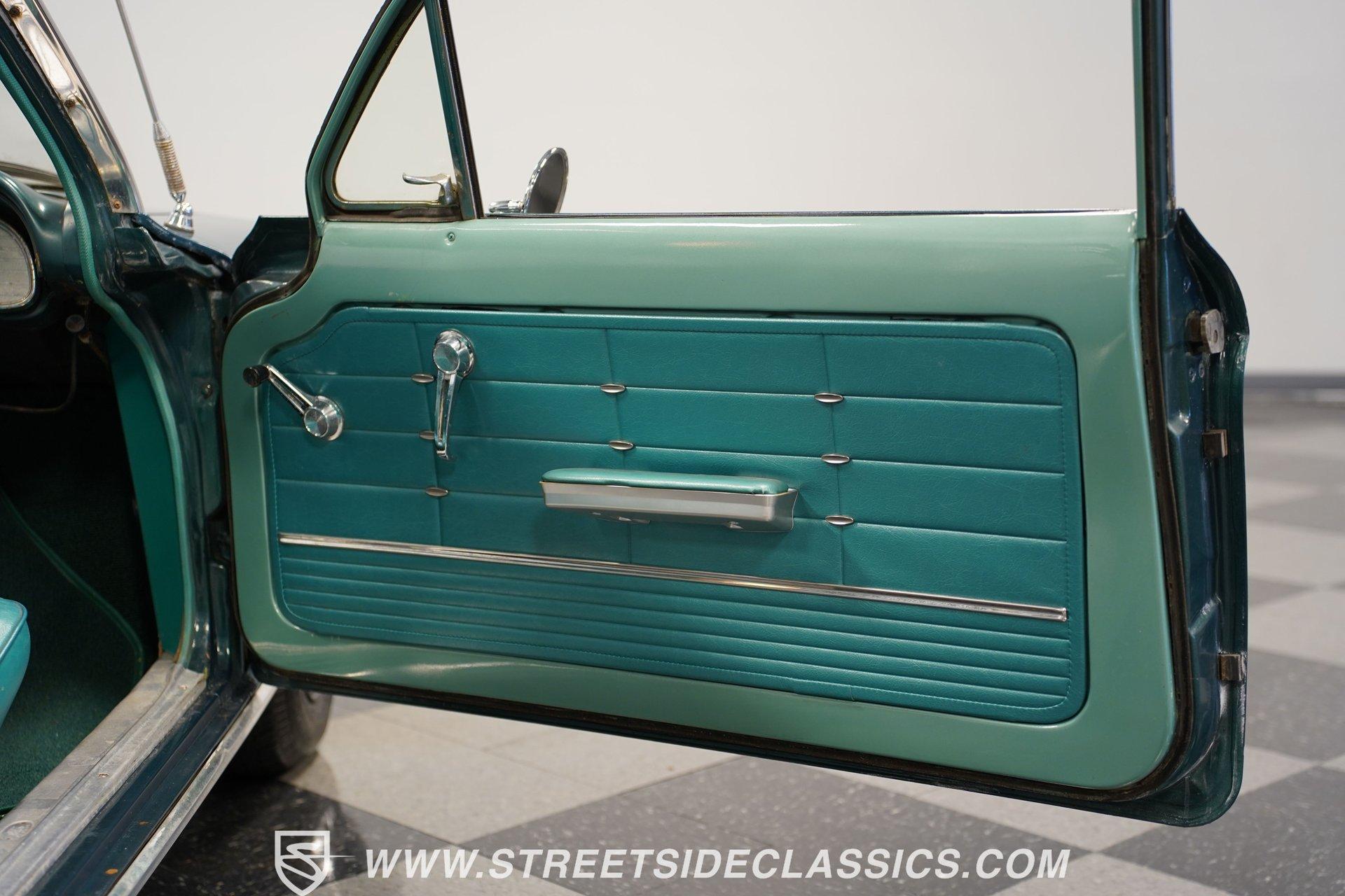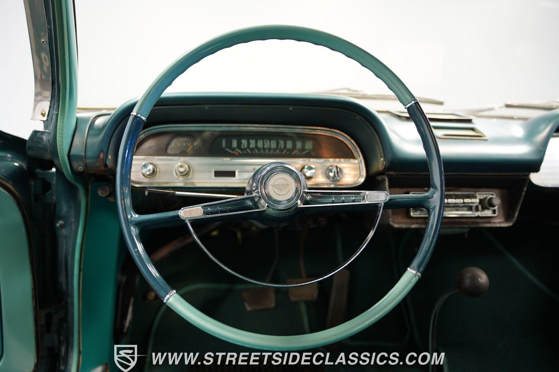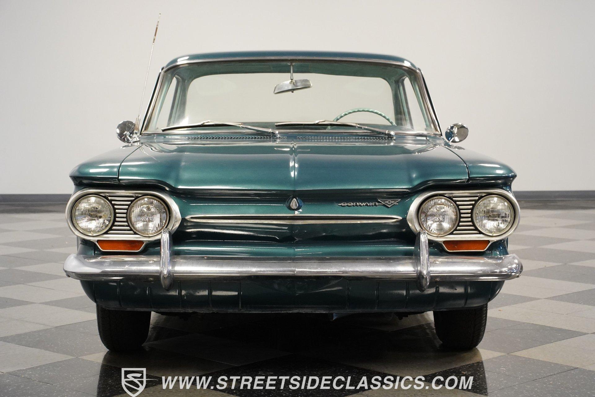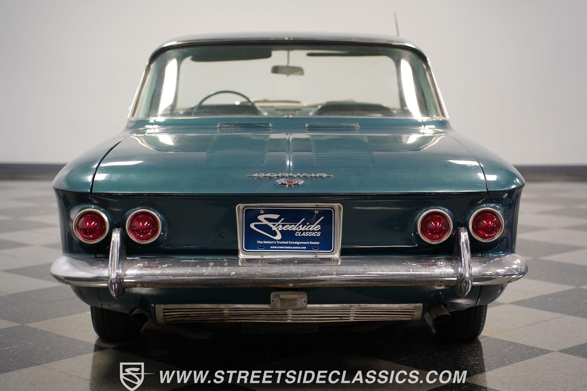 Here is a car you don't see every day, and one that doesn't get much attention or recognition in the antique classic car world. Nonetheless, this 1963 Chevrolet Corvair Monza still gets its share of looks for the obvious reason-it doesn't look like a modern car. The Aqua Green paint has its own uniqueness and character, while the steel body and chrome bumpers reflect a time when plastic and fiberglass were not the main sources of vehicle body structure. Although it may not be the main spectacle at car shows or cruises, it's still a fun and different car to drive. The Aqua interior has its high points. The seats appear to have been redone and are in good shape. The door panels and door cards fit well and look nice. Both the headliner and carpeting are fitted tightly and are in decent shape. The steering wheel is in good shape, and for their age, the original dashboard cluster, radio, and glove box are holding up nicely. Under the front storage lid is a clean, solid area that could handle plenty of storage, and the spare tire if you wanted to relocate it from the engine bay. In the back, the Corvair is powered by a flat-6 cylinder engine with dual 2-barrel carburetors. Power is delivered through a 4-speed manual transmission to a rear swing-axle independent suspension with transverse leaf springs. The front suspension is also independent, using coil springs and shocks. The 13-inch wheels wear stock-appearing hubcaps and are wrapped in P155/80R13 tires. Drum brakes all the way around stop this antique, while long tube headers with a glasspack muffler add a bit of sound to this Monza. Highlights: Flat-6 Cylinder Engine Dual 2-Barrel Carburetors 4-Speed Manual Transmission Front Independent Suspension With Coil Springs And Shocks Rear Swing-Axle Suspension With Transverse Leaf Springs 13-Inch Tires With Hubcaps P155/80R13 Tires And Matching Spare In Engine Bay Long Tube Headers With Glasspack Muffler Good-Looking Seats, Door Panels, And Door Cards AM/FM/Cassette Radio Heat And Defrost Cruising this 1963 Chevrolet Corvair Monza can be a fun way to spend the day. It's low-key, easy to drive, and by most accounts, light on gas. It may not be a show winner, but there are still plenty of people out there who enjoy seeing these cars around. For a good price, Call Today!