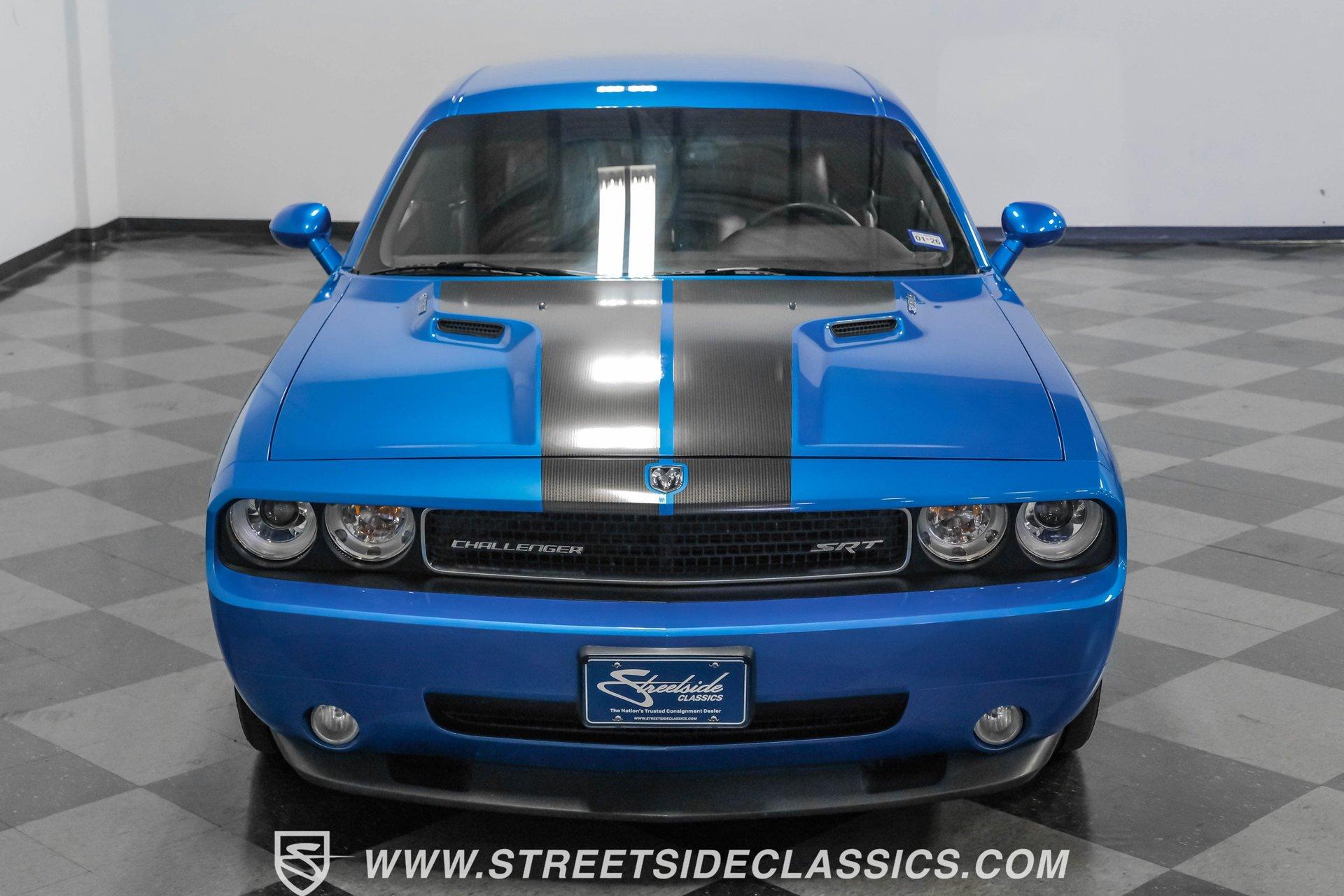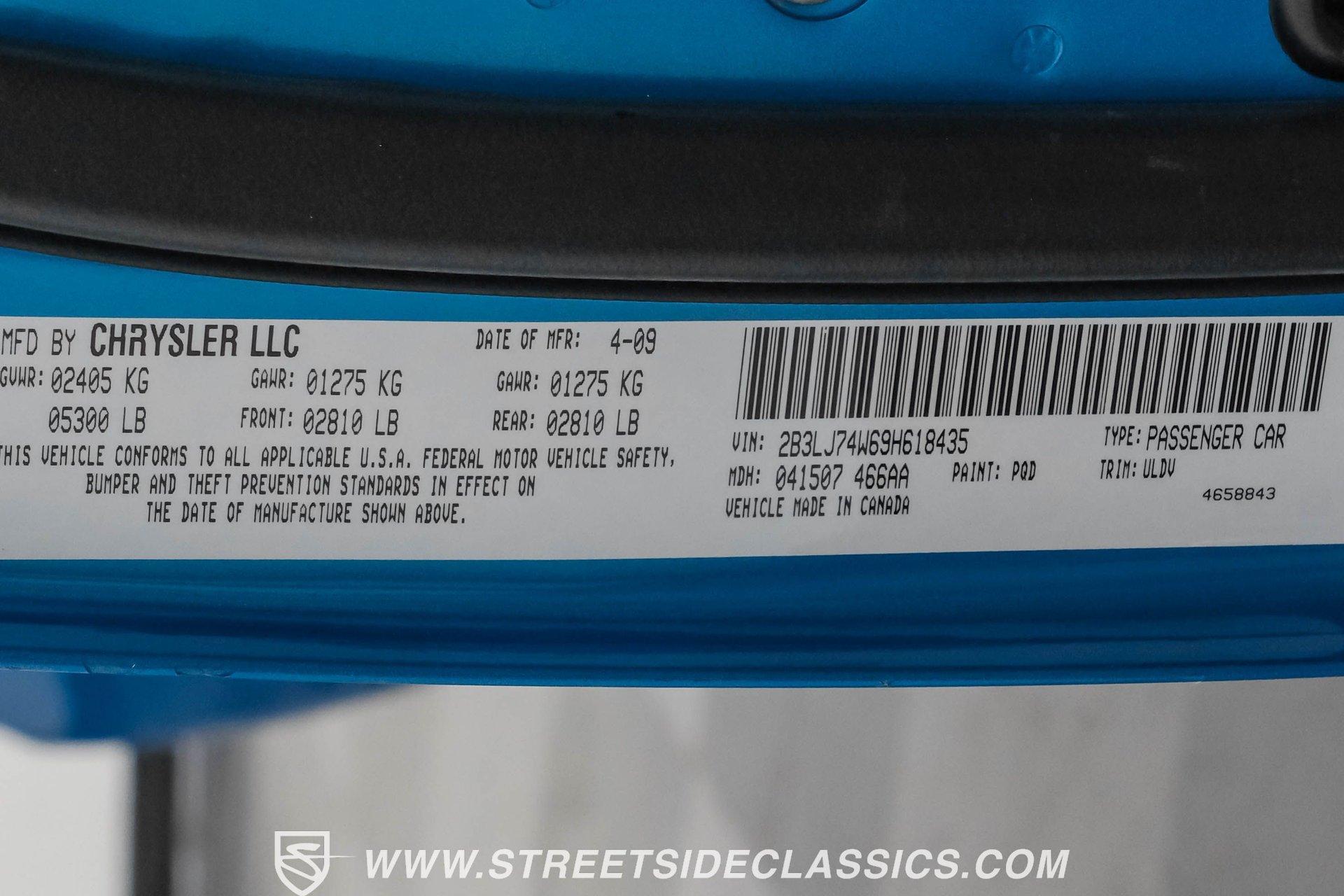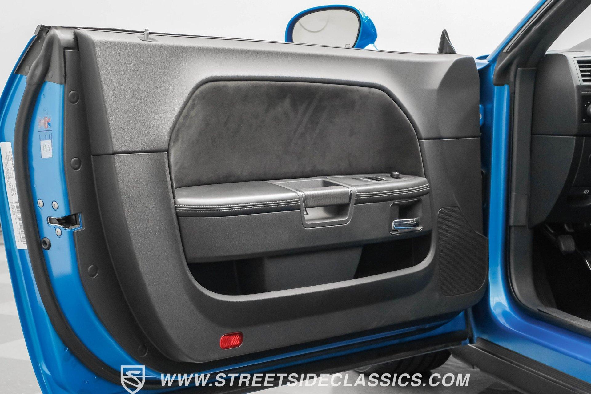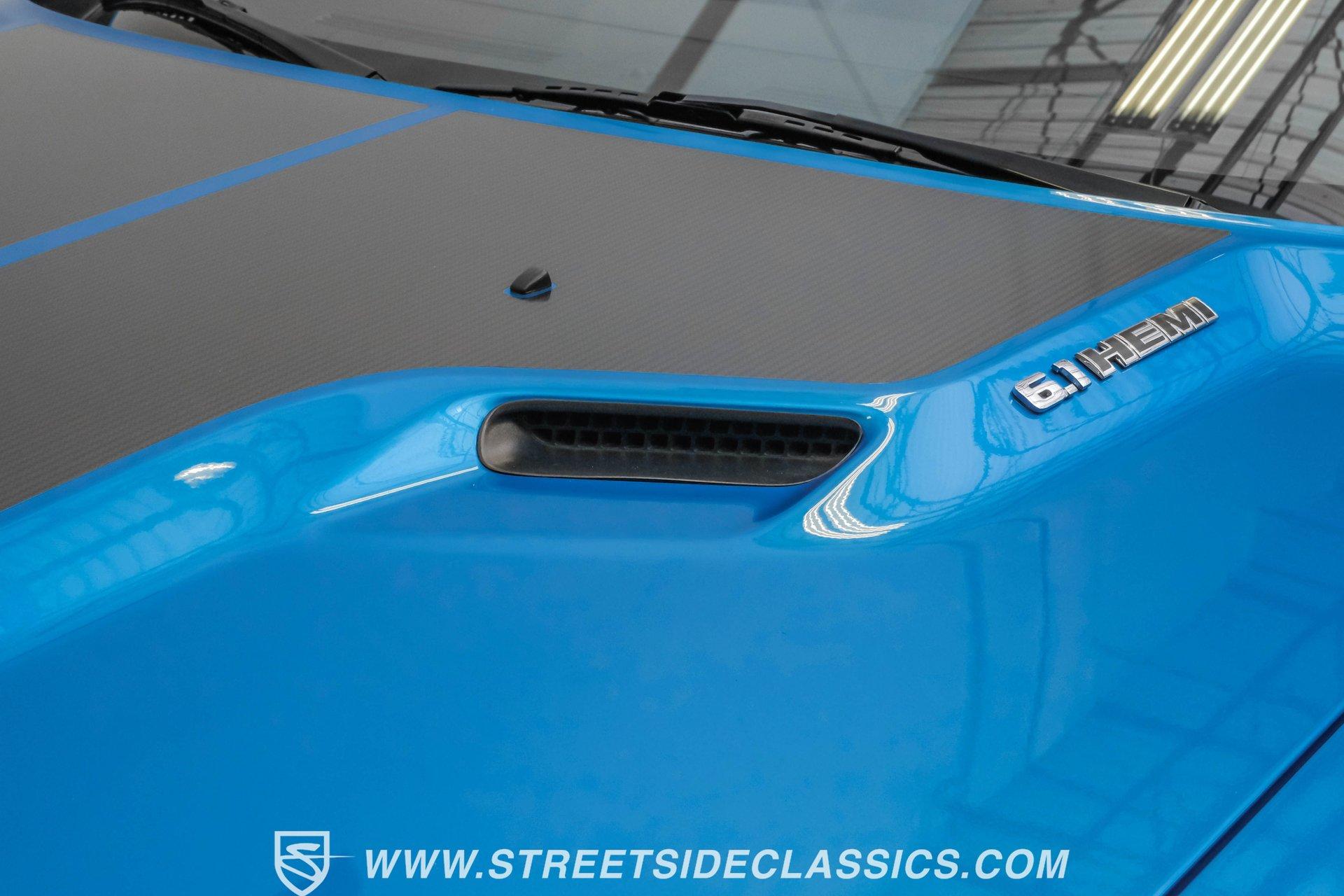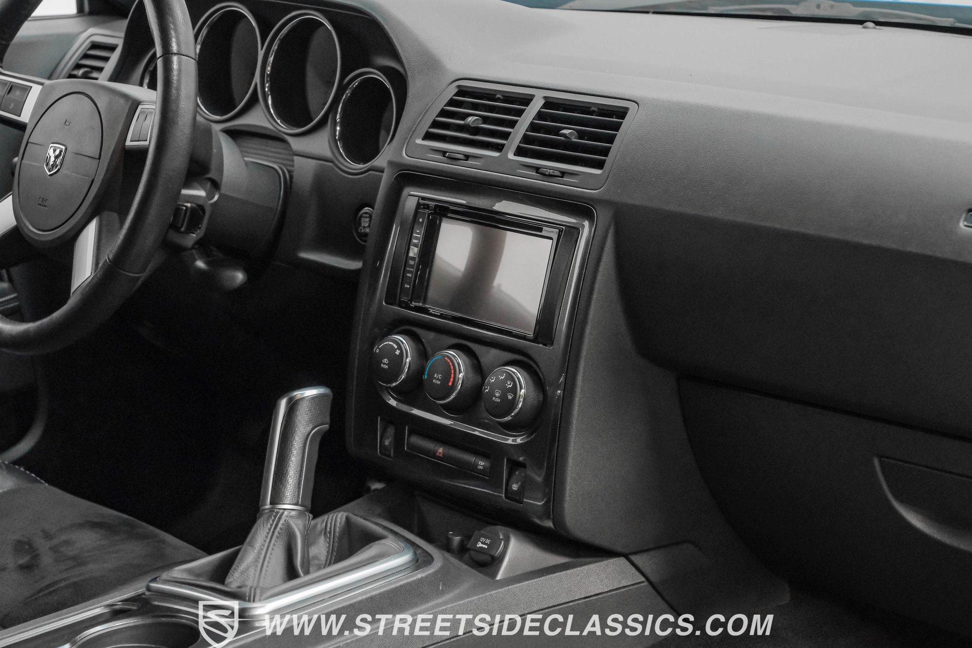 One look at this 2009 Dodge Challenger and you know it's a future classic. The tire-burning 425 hp HEMI V8 is a true modern interpretation of the best from the muscle car era, but now it comes with A/C, leather seats, sat-nav, and plenty of other comfortable features. This ultra-low mileage example is the perfect car to enjoy today and appreciate tomorrow. B5 Blue is not only a great factory color, but it is a throwback to the High Impact colors that helped make these Mopar muscle cars so striking back in the height of the muscle car era. This color is very rare as well. Only 236 B5 Blue SRT8 were produced for the 2009 model year, and of these, only 153 B5 colored SRT8 6-speeds were made according to ChallengerTalk.com. It is not just the paint that makes this one so special; it is the exceptional level of care. Averaging only less than 2,500 miles annually means this was someone's baby, and it shows in every inch of this car's shining presentation. Being a top-of-the-line SRT model, it is equipped with chin spoiler, classic fuel filler cap, carbon fiber hood stripes, HEMI vented hood complete w/callouts and the full-length spoiler - all clear indications this is a muscle car for the modern era. Dodge got the details right by striking a perfect balance between retro design and modern attraction. The wheels on this rare Challenger have been upgraded to 20-inch Milanni wheels wrapped with 245/45R20 Goodyear radials. Inside, the leather bucket seats with comfortable suede inserts match the rest of this deep black interior. It really lets you know this Challenger has a dark side, and there is even an aggressive blue streak across the seatbacks to back it all up. This is a loaded modern muscle machine with all the features you would expect, including power heated seats, heated mirrors, power windows, power locks, keyless entry and ignition, cruise control, dual airbags and side airbags. The AM/FM/CD/XM Bluetooth stereo is a premium touchscreen unit that includes everything from satellite navigation to a subwoofer speaker system. Highlights: Rare and desirable B5 Blue 32,196 miles from new 6.1-litre HEMI 425 Horsepower 6-Speed manual transmission 20-Inch Milanni wheels Goodyear Eagle RS tires Brembo 4-wheel disc brakes Leather interior Satellite navigation The SRT8 package includes a 6.1-liter HEMI V8 under the hood that growls to life like no other car out there, and with 425 hp and 420 lb-ft of torque straight from the factory, this one will outrun its muscle car ancestry. But serious power is only part of this car's story. As a modern computer-controlled and fuel-injected powerplant, it can settle into everyday life with ease. The smooth shifting 6-speed manual transmission makes this muscle car a thrill to drive. Great driving features such as the fully independent suspension, power steering, and big Brembo four-wheel disc brakes w/ABS add to the pleasurable driving experience. With low miles, a high level of quality and originality, as well as being one of only a handful of cars produced in classic B5 Blue, this 2009 Dodge Challenger SRT-8 is a rare and highly desirable example, presenting a unique opportunity to own one of the best of the breed. Call today!