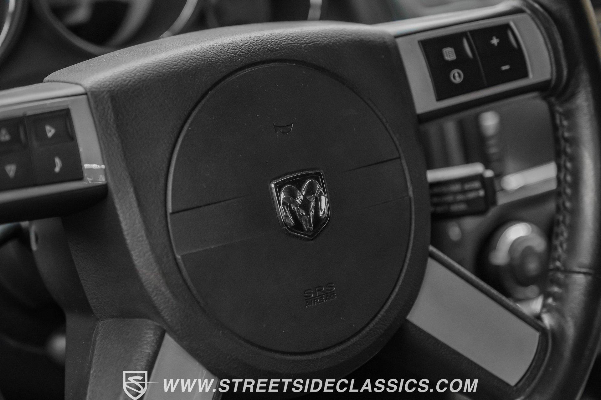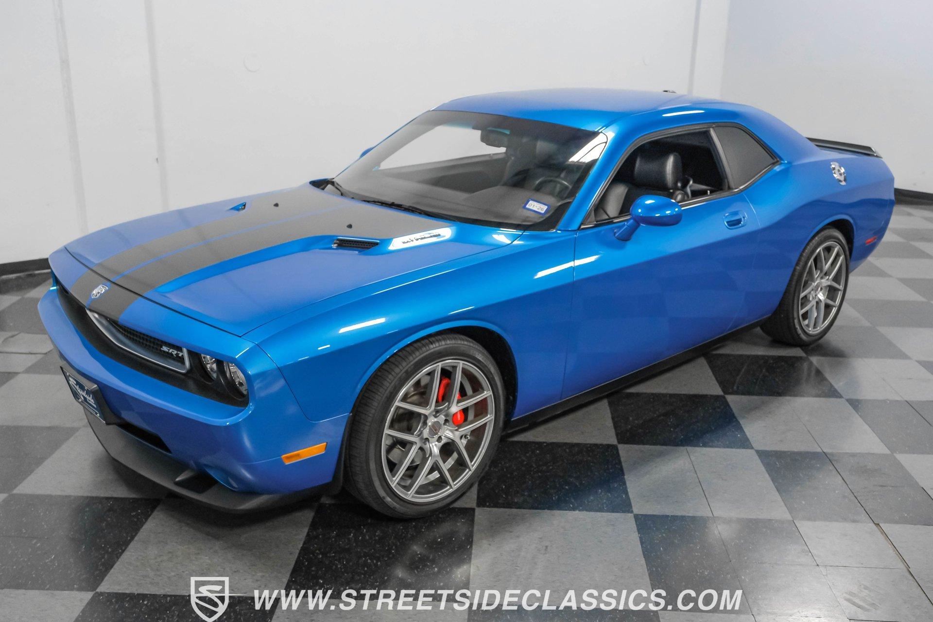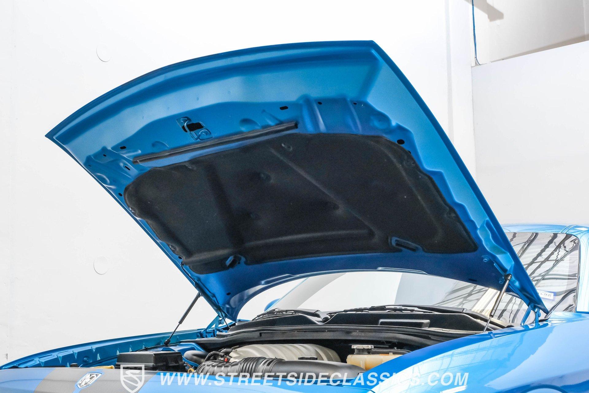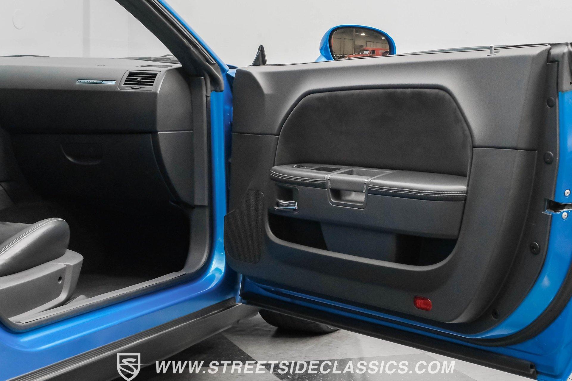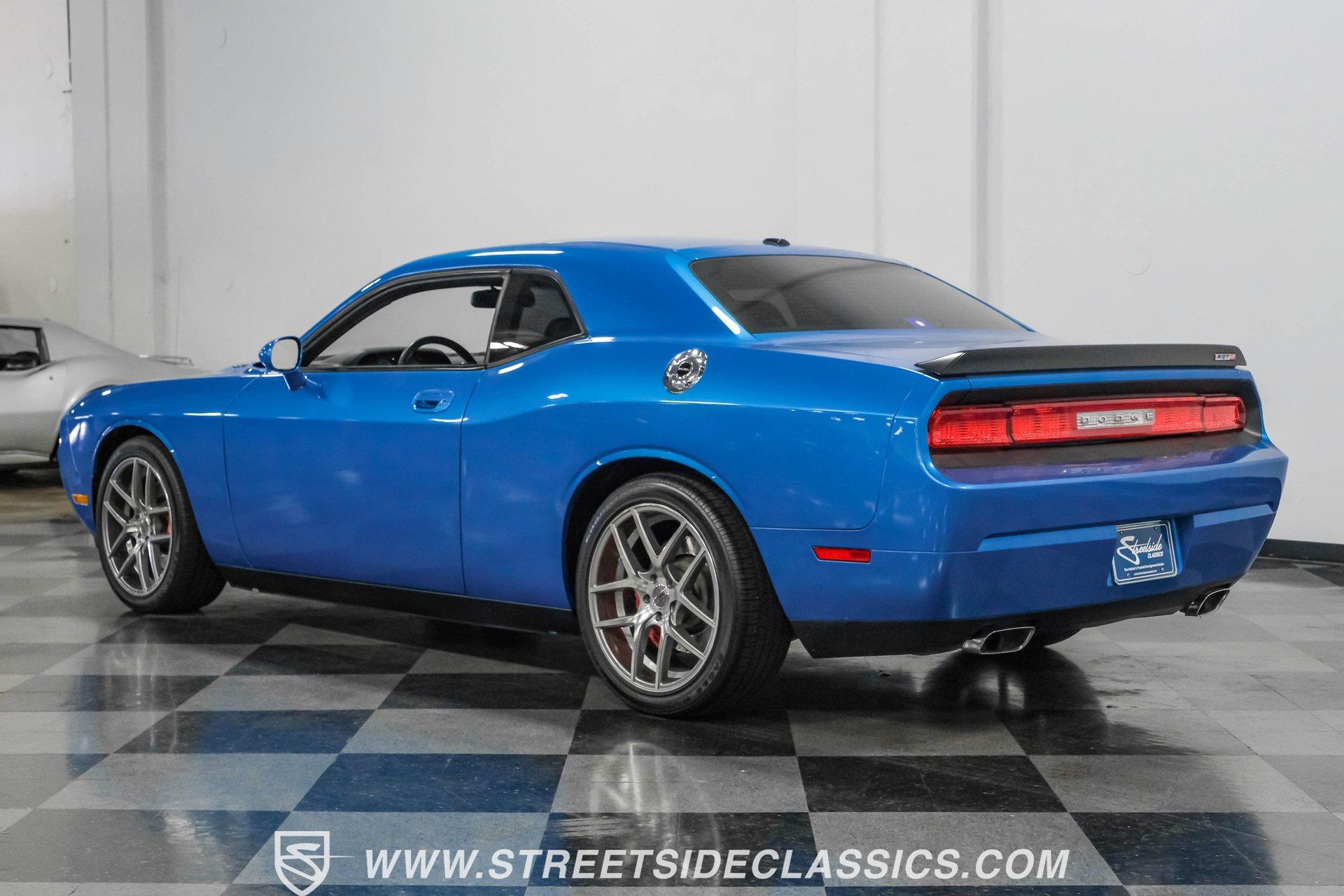 One look at this 2009 Dodge Challenger and you know it's a future classic. The tire-burning 425 hp HEMI V8 is a true modern interpretation of the best from the muscle car era, but now it comes with A/C, leather seats, sat-nav, and plenty of other comfortable features. This ultra-low mileage example is the perfect car to enjoy today and appreciate tomorrow. B5 Blue is not only a great factory color, but it is a throwback to the High Impact colors that helped make these Mopar muscle cars so striking back in the height of the muscle car era. This color is very rare as well. Only 236 B5 Blue SRT8 were produced for the 2009 model year, and of these, only 153 B5 colored SRT8 6-speeds were made according to ChallengerTalk.com. It is not just the paint that makes this one so special; it is the exceptional level of care. Averaging only less than 2,500 miles annually means this was someone's baby, and it shows in every inch of this car's shining presentation. Being a top-of-the-line SRT model, it is equipped with chin spoiler, classic fuel filler cap, carbon fiber hood stripes, HEMI vented hood complete w/callouts and the full-length spoiler - all clear indications this is a muscle car for the modern era. Dodge got the details right by striking a perfect balance between retro design and modern attraction. The wheels on this rare Challenger have been upgraded to 20-inch Milanni wheels wrapped with 245/45R20 Goodyear radials. Inside, the leather bucket seats with comfortable suede inserts match the rest of this deep black interior. It really lets you know this Challenger has a dark side, and there is even an aggressive blue streak across the seatbacks to back it all up. This is a loaded modern muscle machine with all the features you would expect, including power heated seats, heated mirrors, power windows, power locks, keyless entry and ignition, cruise control, dual airbags and side airbags. The AM/FM/CD/XM Bluetooth stereo is a premium touchscreen unit that includes everything from satellite navigation to a subwoofer speaker system. Highlights: Rare and desirable B5 Blue 32,196 miles from new 6.1-litre HEMI 425 Horsepower 6-Speed manual transmission 20-Inch Milanni wheels Goodyear Eagle RS tires Brembo 4-wheel disc brakes Leather interior Satellite navigation The SRT8 package includes a 6.1-liter HEMI V8 under the hood that growls to life like no other car out there, and with 425 hp and 420 lb-ft of torque straight from the factory, this one will outrun its muscle car ancestry. But serious power is only part of this car's story. As a modern computer-controlled and fuel-injected powerplant, it can settle into everyday life with ease. The smooth shifting 6-speed manual transmission makes this muscle car a thrill to drive. Great driving features such as the fully independent suspension, power steering, and big Brembo four-wheel disc brakes w/ABS add to the pleasurable driving experience. With low miles, a high level of quality and originality, as well as being one of only a handful of cars produced in classic B5 Blue, this 2009 Dodge Challenger SRT-8 is a rare and highly desirable example, presenting a unique opportunity to own one of the best of the breed. Call today!