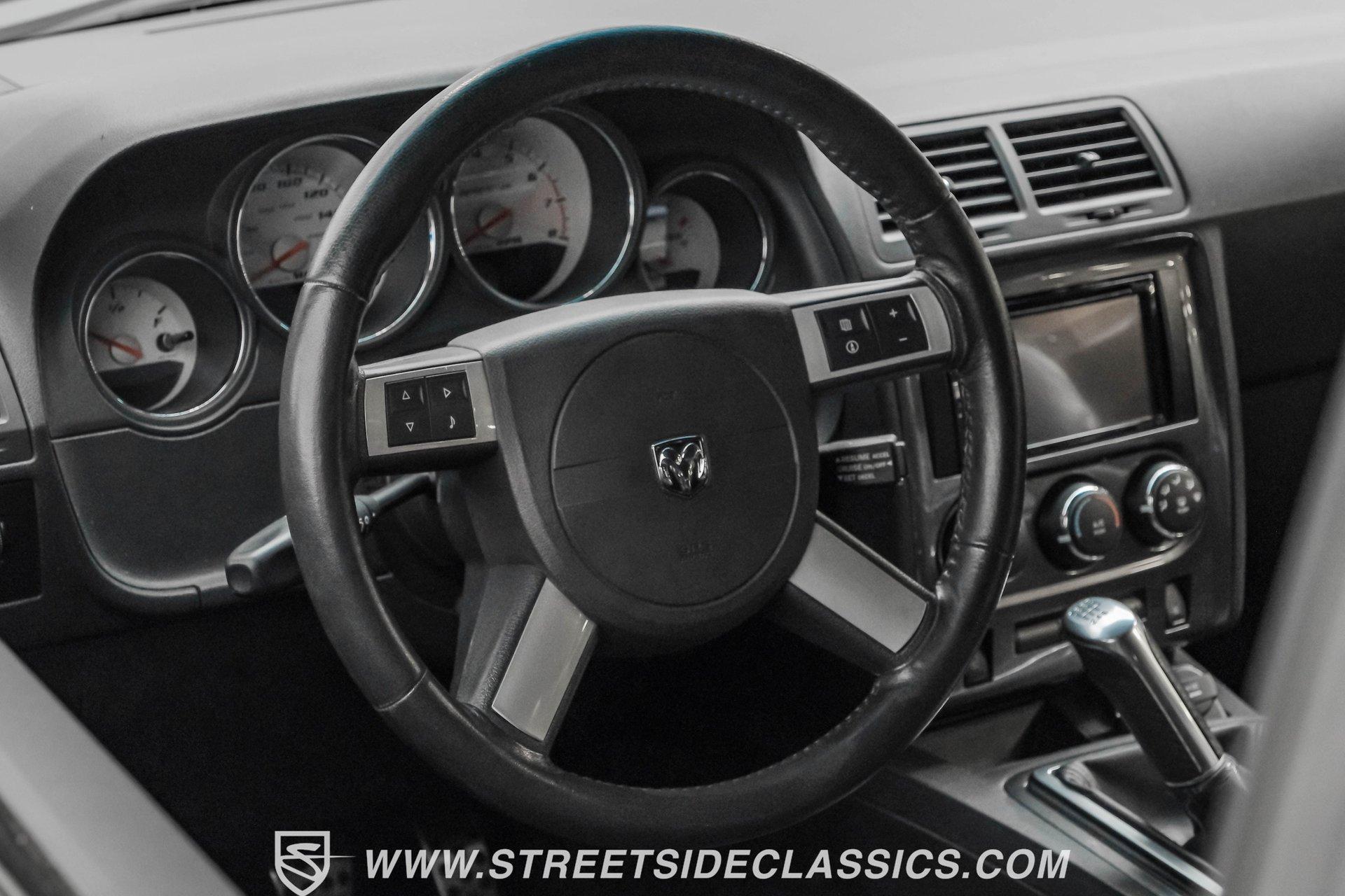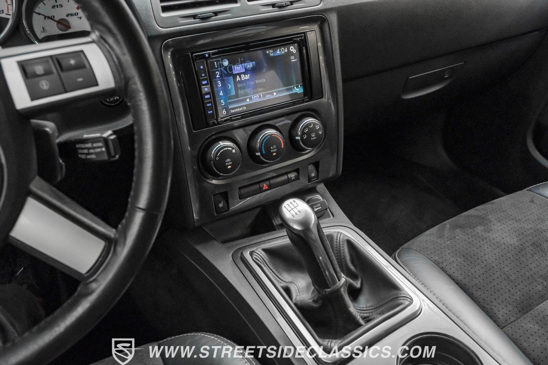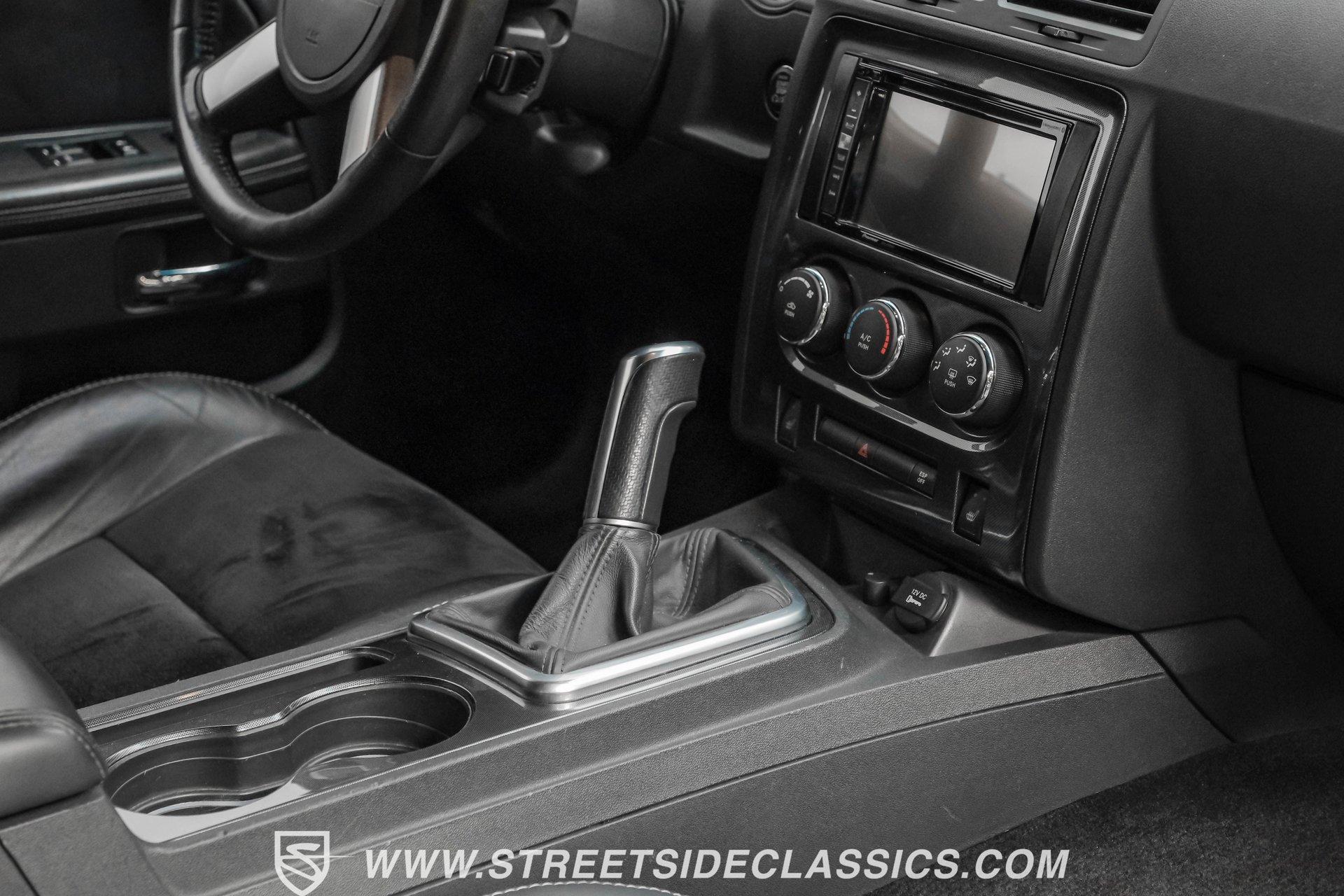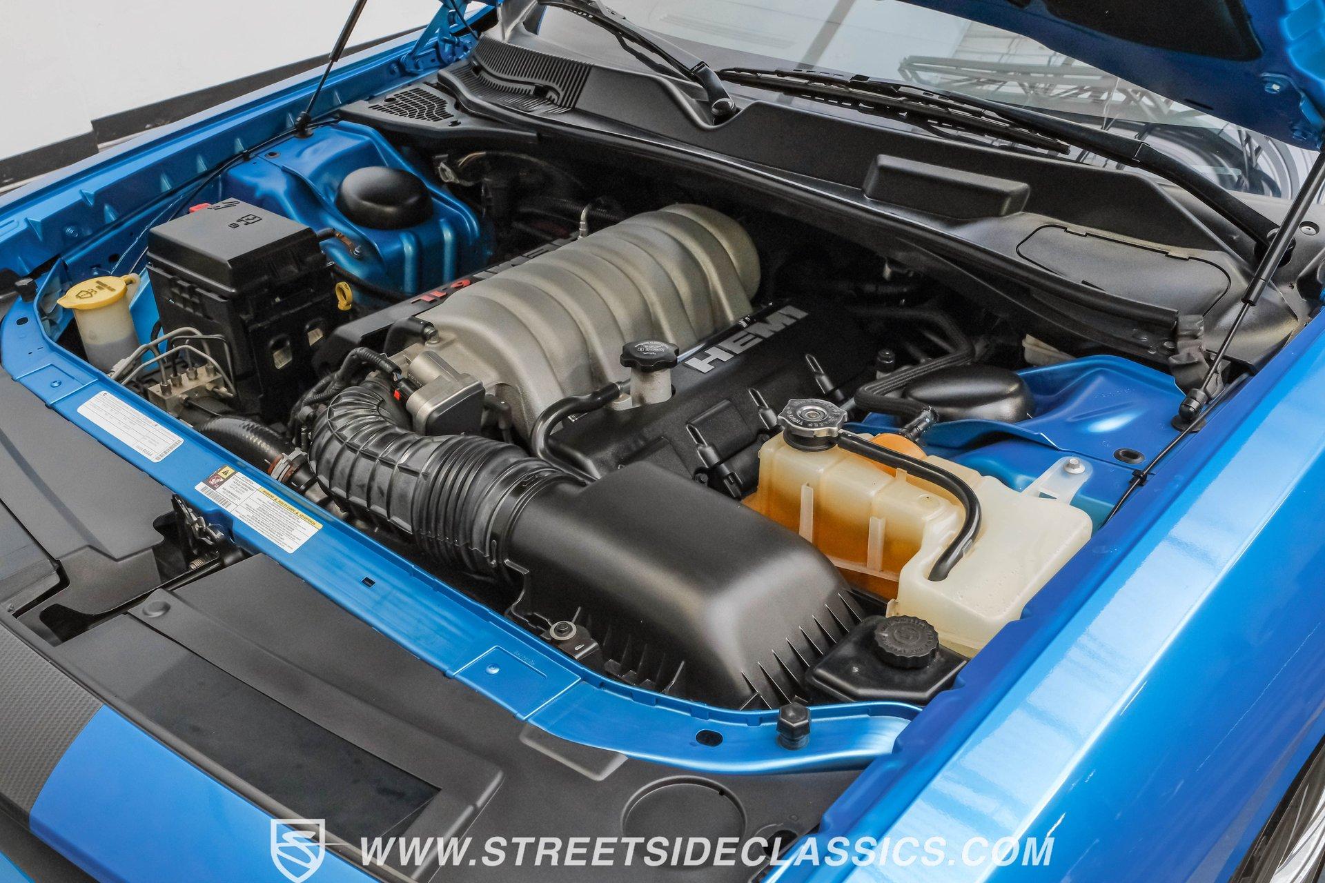 One look at this 2009 Dodge Challenger and you know it's a future classic. The tire-burning 425 hp HEMI V8 is a true modern interpretation of the best from the muscle car era, but now it comes with A/C, leather seats, sat-nav, and plenty of other comfortable features. This ultra-low mileage example is the perfect car to enjoy today and appreciate tomorrow. B5 Blue is not only a great factory color, but it is a throwback to the High Impact colors that helped make these Mopar muscle cars so striking back in the height of the muscle car era. This color is very rare as well. Only 236 B5 Blue SRT8 were produced for the 2009 model year, and of these, only 153 B5 colored SRT8 6-speeds were made according to ChallengerTalk.com. It is not just the paint that makes this one so special; it is the exceptional level of care. Averaging only less than 2,500 miles annually means this was someone's baby, and it shows in every inch of this car's shining presentation. Being a top-of-the-line SRT model, it is equipped with chin spoiler, classic fuel filler cap, carbon fiber hood stripes, HEMI vented hood complete w/callouts and the full-length spoiler - all clear indications this is a muscle car for the modern era. Dodge got the details right by striking a perfect balance between retro design and modern attraction. The wheels on this rare Challenger have been upgraded to 20-inch Milanni wheels wrapped with 245/45R20 Goodyear radials. Inside, the leather bucket seats with comfortable suede inserts match the rest of this deep black interior. It really lets you know this Challenger has a dark side, and there is even an aggressive blue streak across the seatbacks to back it all up. This is a loaded modern muscle machine with all the features you would expect, including power heated seats, heated mirrors, power windows, power locks, keyless entry and ignition, cruise control, dual airbags and side airbags. The AM/FM/CD/XM Bluetooth stereo is a premium touchscreen unit that includes everything from satellite navigation to a subwoofer speaker system. Highlights: Rare and desirable B5 Blue 32,196 miles from new 6.1-litre HEMI 425 Horsepower 6-Speed manual transmission 20-Inch Milanni wheels Goodyear Eagle RS tires Brembo 4-wheel disc brakes Leather interior Satellite navigation The SRT8 package includes a 6.1-liter HEMI V8 under the hood that growls to life like no other car out there, and with 425 hp and 420 lb-ft of torque straight from the factory, this one will outrun its muscle car ancestry. But serious power is only part of this car's story. As a modern computer-controlled and fuel-injected powerplant, it can settle into everyday life with ease. The smooth shifting 6-speed manual transmission makes this muscle car a thrill to drive. Great driving features such as the fully independent suspension, power steering, and big Brembo four-wheel disc brakes w/ABS add to the pleasurable driving experience. With low miles, a high level of quality and originality, as well as being one of only a handful of cars produced in classic B5 Blue, this 2009 Dodge Challenger SRT-8 is a rare and highly desirable example, presenting a unique opportunity to own one of the best of the breed. Call today!