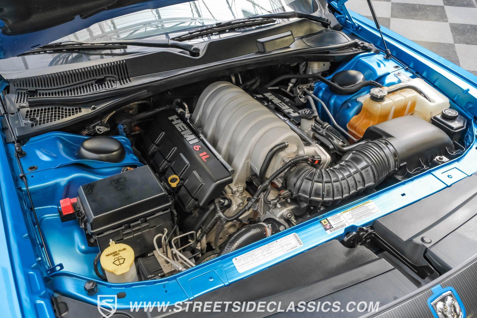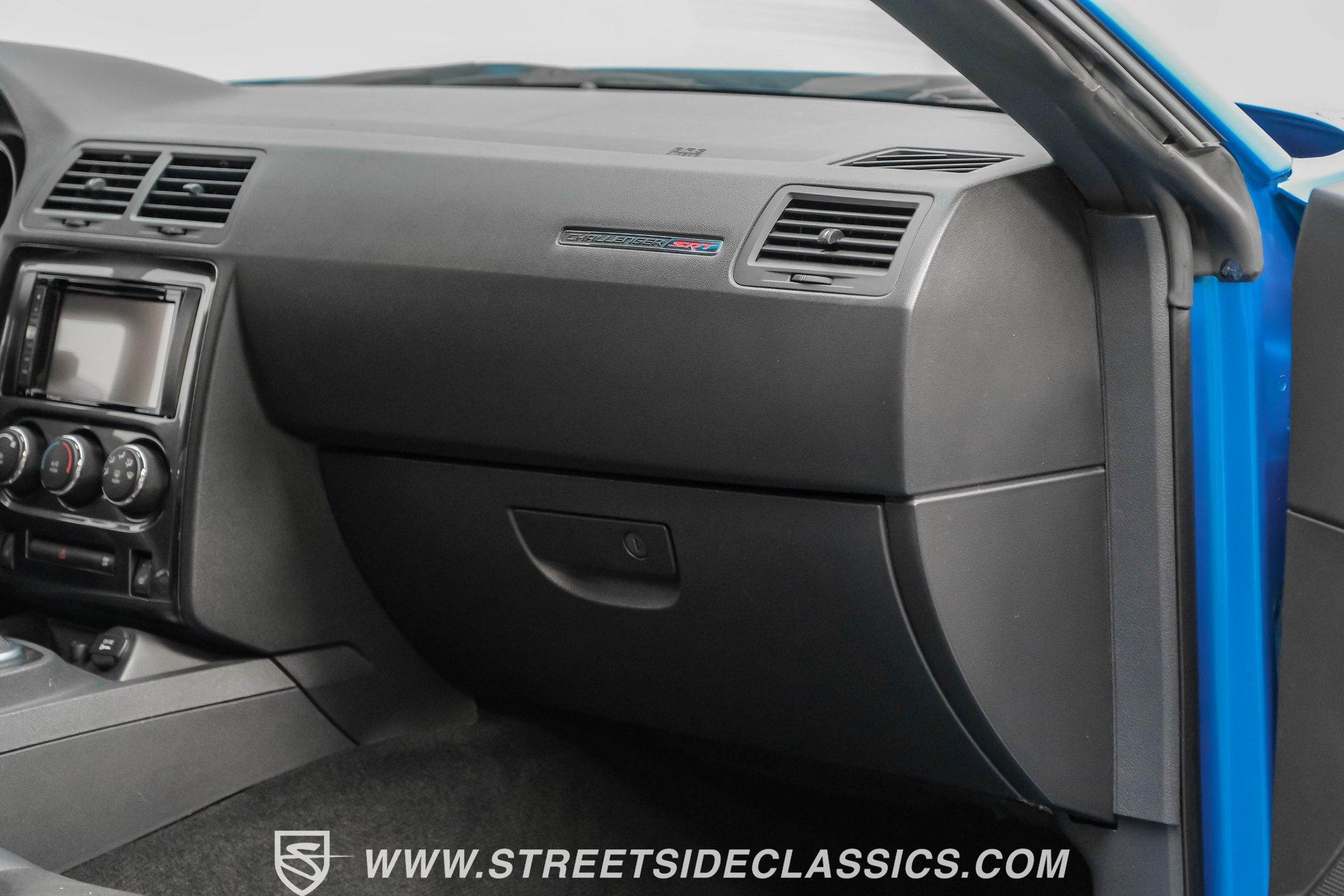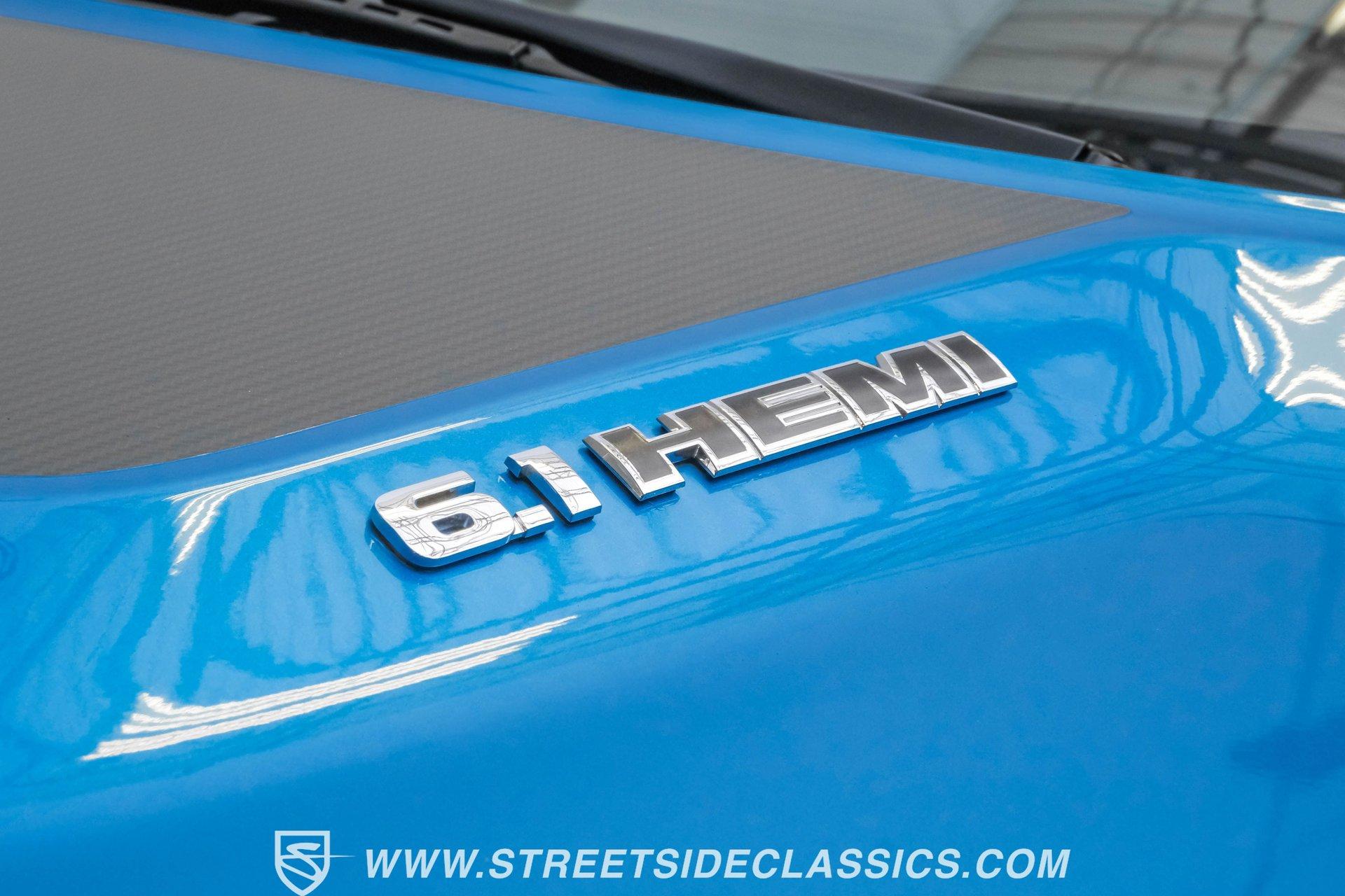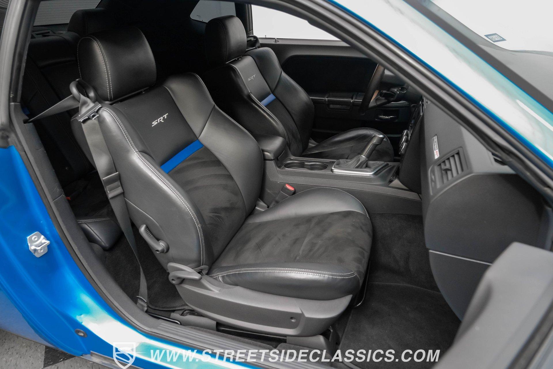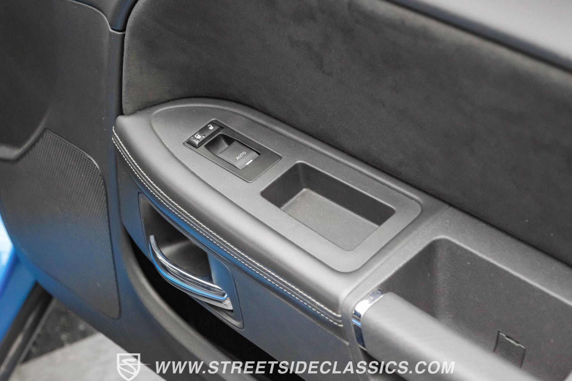 One look at this 2009 Dodge Challenger and you know it's a future classic. The tire-burning 425 hp HEMI V8 is a true modern interpretation of the best from the muscle car era, but now it comes with A/C, leather seats, sat-nav, and plenty of other comfortable features. This ultra-low mileage example is the perfect car to enjoy today and appreciate tomorrow. B5 Blue is not only a great factory color, but it is a throwback to the High Impact colors that helped make these Mopar muscle cars so striking back in the height of the muscle car era. This color is very rare as well. Only 236 B5 Blue SRT8 were produced for the 2009 model year, and of these, only 153 B5 colored SRT8 6-speeds were made according to ChallengerTalk.com. It is not just the paint that makes this one so special; it is the exceptional level of care. Averaging only less than 2,500 miles annually means this was someone's baby, and it shows in every inch of this car's shining presentation. Being a top-of-the-line SRT model, it is equipped with chin spoiler, classic fuel filler cap, carbon fiber hood stripes, HEMI vented hood complete w/callouts and the full-length spoiler - all clear indications this is a muscle car for the modern era. Dodge got the details right by striking a perfect balance between retro design and modern attraction. The wheels on this rare Challenger have been upgraded to 20-inch Milanni wheels wrapped with 245/45R20 Goodyear radials. Inside, the leather bucket seats with comfortable suede inserts match the rest of this deep black interior. It really lets you know this Challenger has a dark side, and there is even an aggressive blue streak across the seatbacks to back it all up. This is a loaded modern muscle machine with all the features you would expect, including power heated seats, heated mirrors, power windows, power locks, keyless entry and ignition, cruise control, dual airbags and side airbags. The AM/FM/CD/XM Bluetooth stereo is a premium touchscreen unit that includes everything from satellite navigation to a subwoofer speaker system. Highlights: Rare and desirable B5 Blue 32,196 miles from new 6.1-litre HEMI 425 Horsepower 6-Speed manual transmission 20-Inch Milanni wheels Goodyear Eagle RS tires Brembo 4-wheel disc brakes Leather interior Satellite navigation The SRT8 package includes a 6.1-liter HEMI V8 under the hood that growls to life like no other car out there, and with 425 hp and 420 lb-ft of torque straight from the factory, this one will outrun its muscle car ancestry. But serious power is only part of this car's story. As a modern computer-controlled and fuel-injected powerplant, it can settle into everyday life with ease. The smooth shifting 6-speed manual transmission makes this muscle car a thrill to drive. Great driving features such as the fully independent suspension, power steering, and big Brembo four-wheel disc brakes w/ABS add to the pleasurable driving experience. With low miles, a high level of quality and originality, as well as being one of only a handful of cars produced in classic B5 Blue, this 2009 Dodge Challenger SRT-8 is a rare and highly desirable example, presenting a unique opportunity to own one of the best of the breed. Call today!