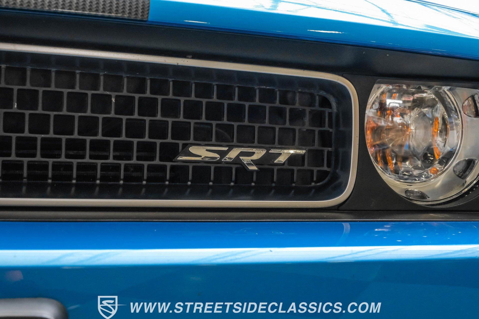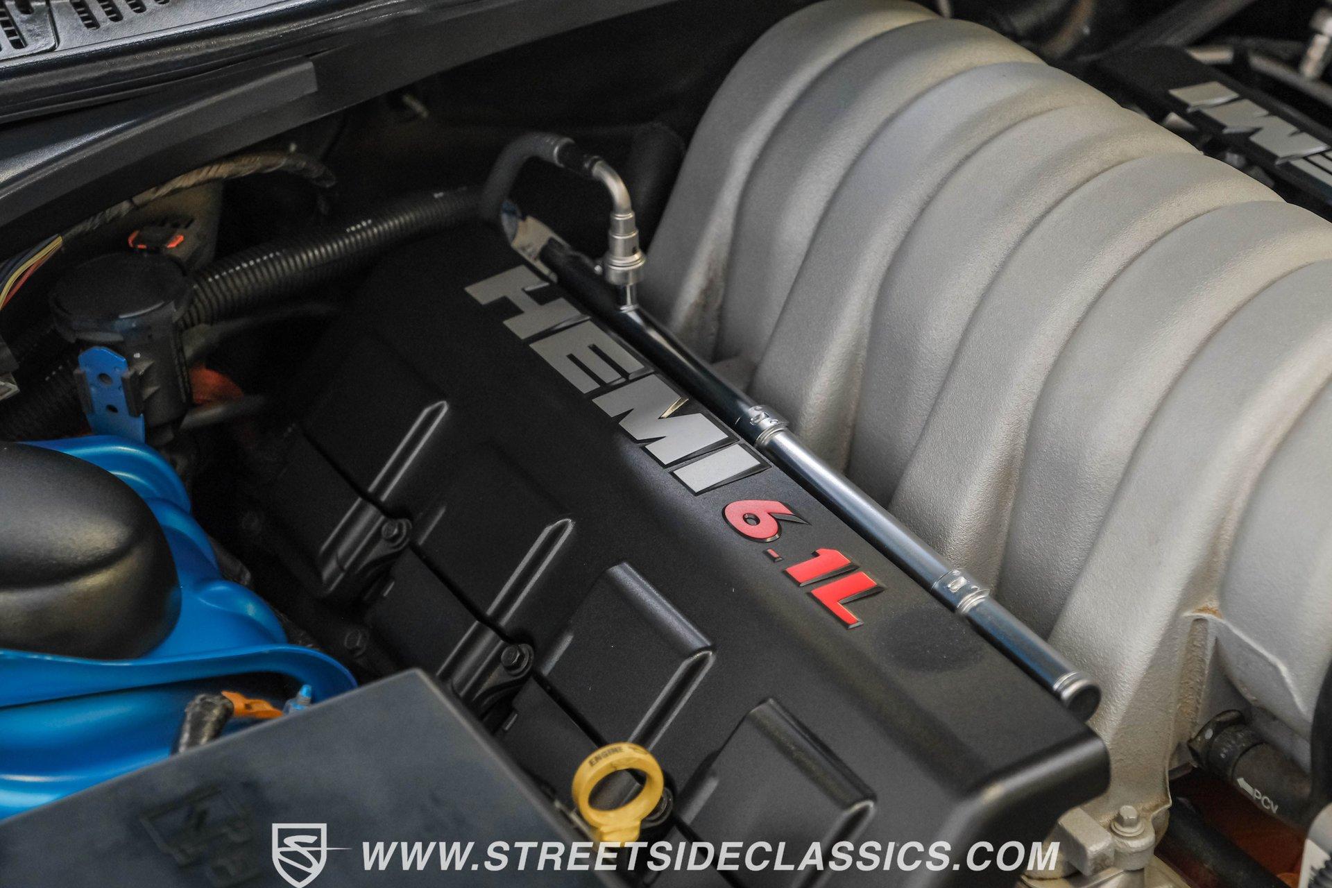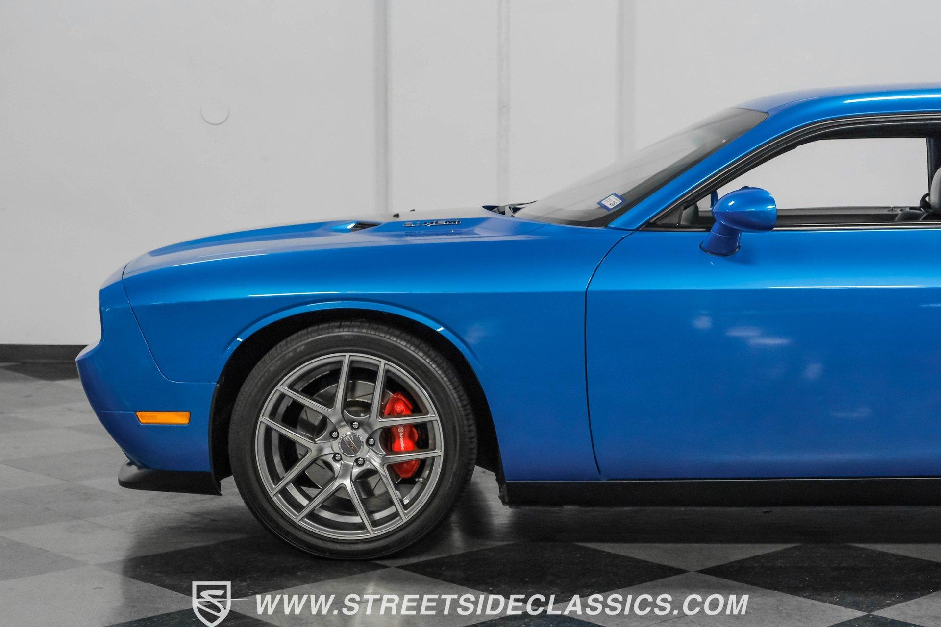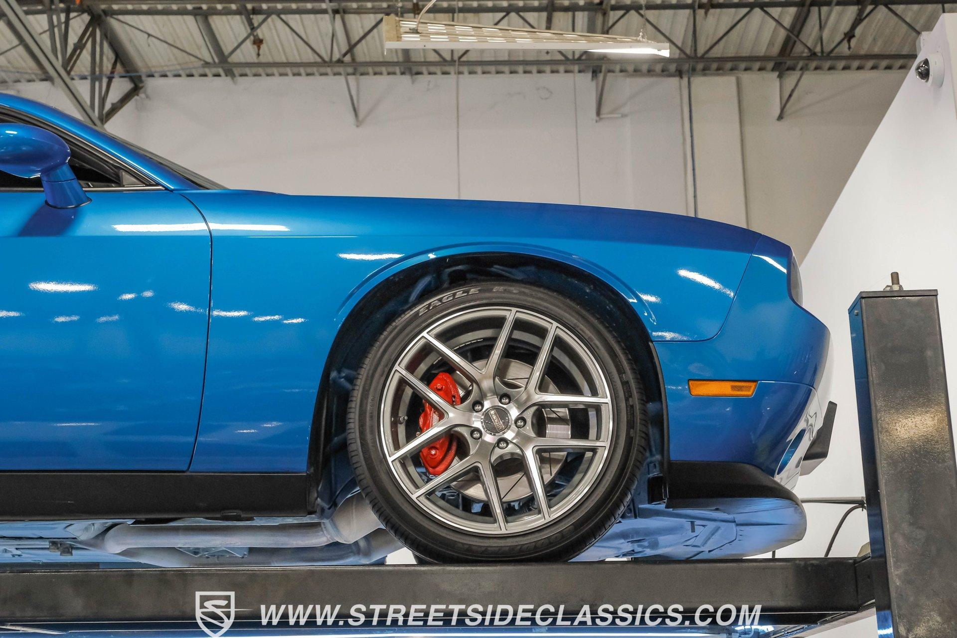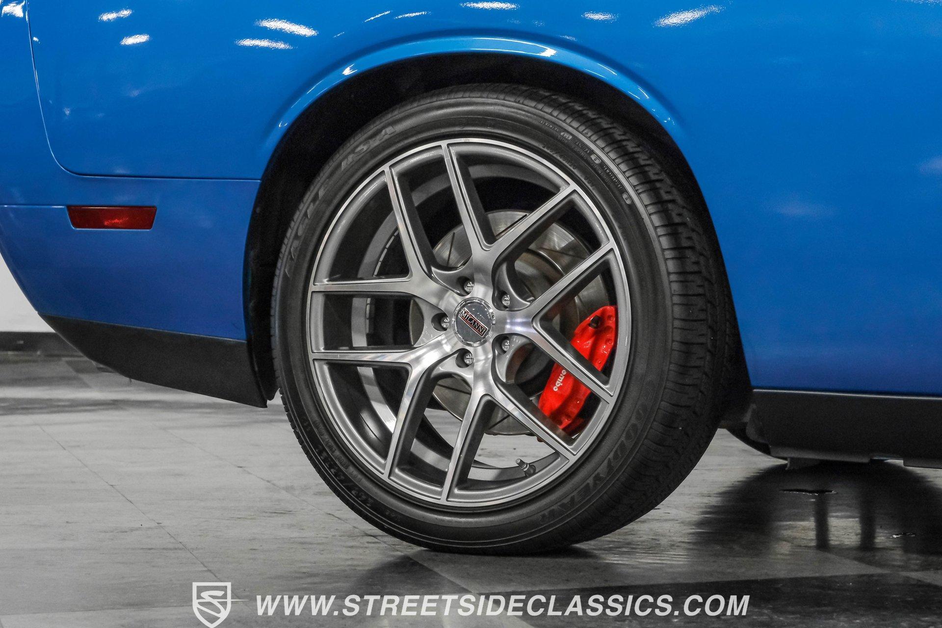 One look at this 2009 Dodge Challenger and you know it's a future classic. The tire-burning 425 hp HEMI V8 is a true modern interpretation of the best from the muscle car era, but now it comes with A/C, leather seats, sat-nav, and plenty of other comfortable features. This ultra-low mileage example is the perfect car to enjoy today and appreciate tomorrow. B5 Blue is not only a great factory color, but it is a throwback to the High Impact colors that helped make these Mopar muscle cars so striking back in the height of the muscle car era. This color is very rare as well. Only 236 B5 Blue SRT8 were produced for the 2009 model year, and of these, only 153 B5 colored SRT8 6-speeds were made according to ChallengerTalk.com. It is not just the paint that makes this one so special; it is the exceptional level of care. Averaging only less than 2,500 miles annually means this was someone's baby, and it shows in every inch of this car's shining presentation. Being a top-of-the-line SRT model, it is equipped with chin spoiler, classic fuel filler cap, carbon fiber hood stripes, HEMI vented hood complete w/callouts and the full-length spoiler - all clear indications this is a muscle car for the modern era. Dodge got the details right by striking a perfect balance between retro design and modern attraction. The wheels on this rare Challenger have been upgraded to 20-inch Milanni wheels wrapped with 245/45R20 Goodyear radials. Inside, the leather bucket seats with comfortable suede inserts match the rest of this deep black interior. It really lets you know this Challenger has a dark side, and there is even an aggressive blue streak across the seatbacks to back it all up. This is a loaded modern muscle machine with all the features you would expect, including power heated seats, heated mirrors, power windows, power locks, keyless entry and ignition, cruise control, dual airbags and side airbags. The AM/FM/CD/XM Bluetooth stereo is a premium touchscreen unit that includes everything from satellite navigation to a subwoofer speaker system. Highlights: Rare and desirable B5 Blue 32,196 miles from new 6.1-litre HEMI 425 Horsepower 6-Speed manual transmission 20-Inch Milanni wheels Goodyear Eagle RS tires Brembo 4-wheel disc brakes Leather interior Satellite navigation The SRT8 package includes a 6.1-liter HEMI V8 under the hood that growls to life like no other car out there, and with 425 hp and 420 lb-ft of torque straight from the factory, this one will outrun its muscle car ancestry. But serious power is only part of this car's story. As a modern computer-controlled and fuel-injected powerplant, it can settle into everyday life with ease. The smooth shifting 6-speed manual transmission makes this muscle car a thrill to drive. Great driving features such as the fully independent suspension, power steering, and big Brembo four-wheel disc brakes w/ABS add to the pleasurable driving experience. With low miles, a high level of quality and originality, as well as being one of only a handful of cars produced in classic B5 Blue, this 2009 Dodge Challenger SRT-8 is a rare and highly desirable example, presenting a unique opportunity to own one of the best of the breed. Call today!