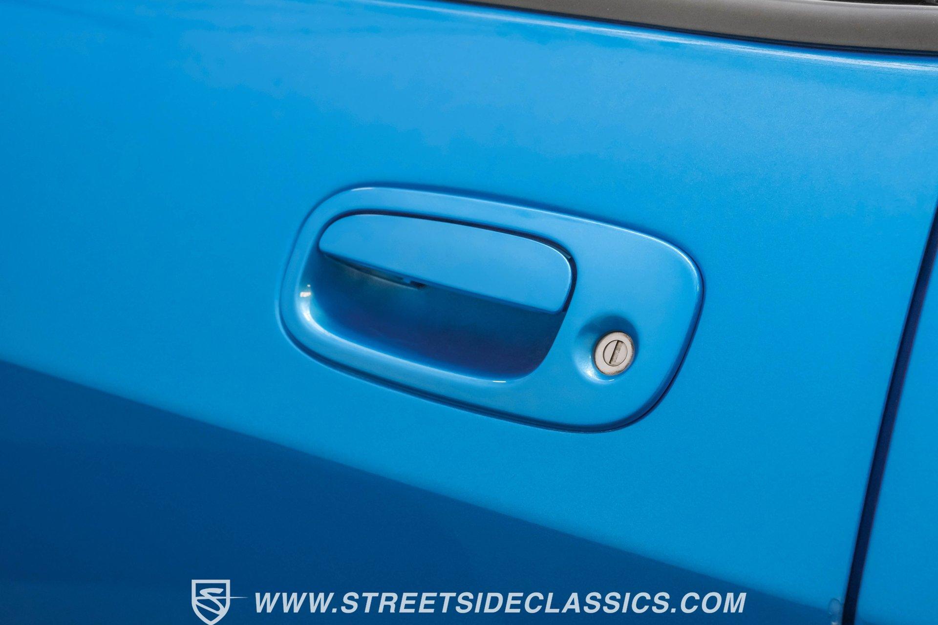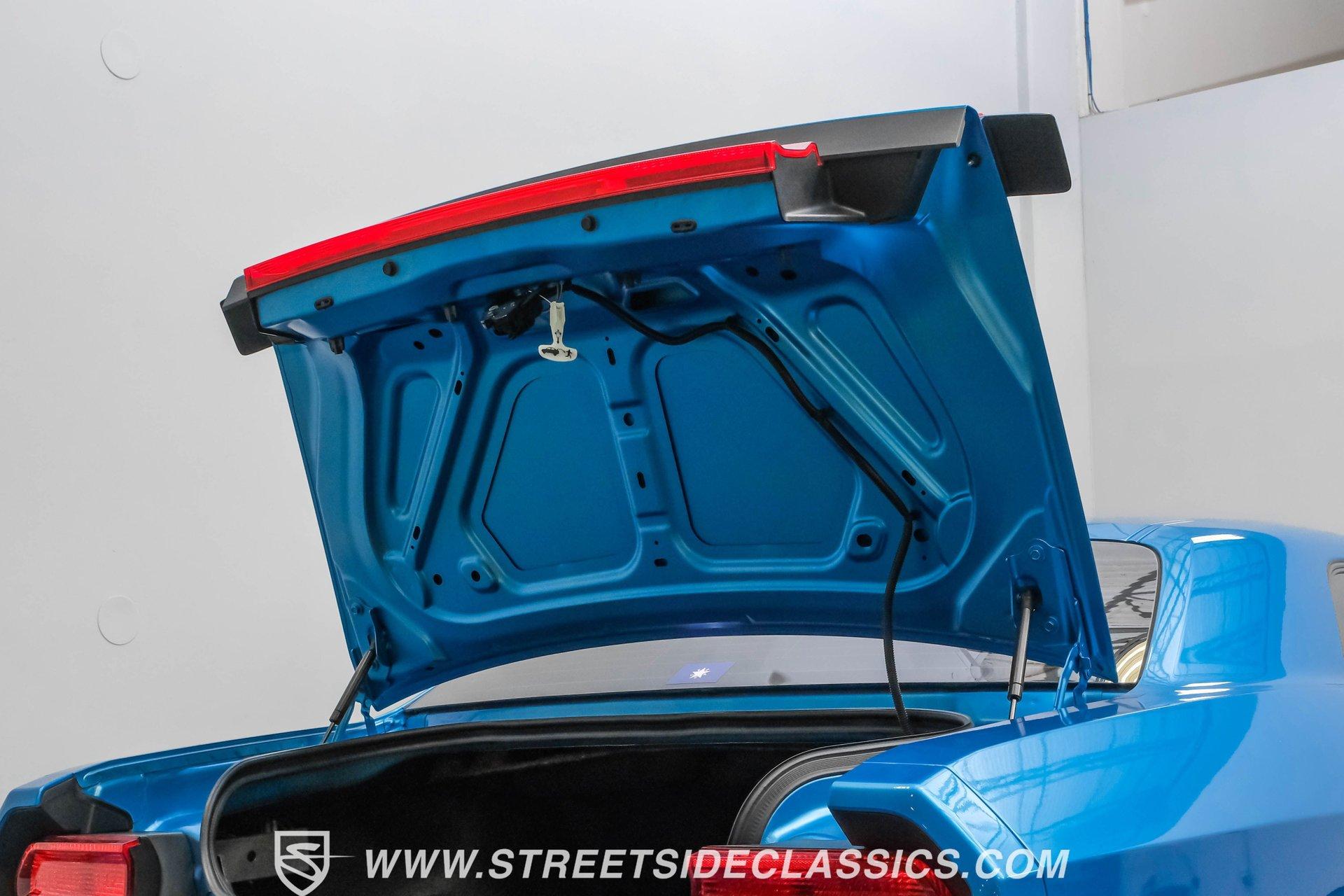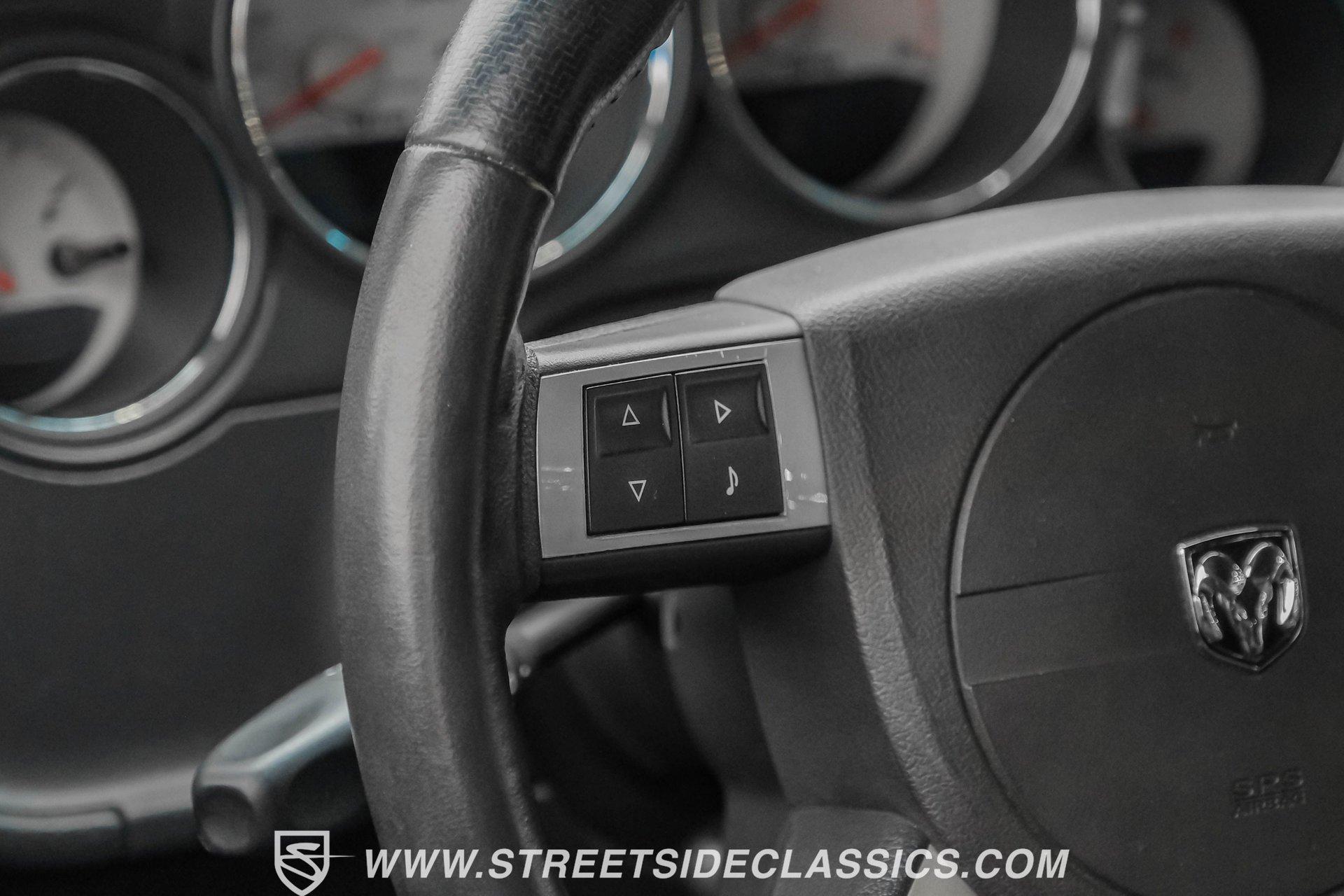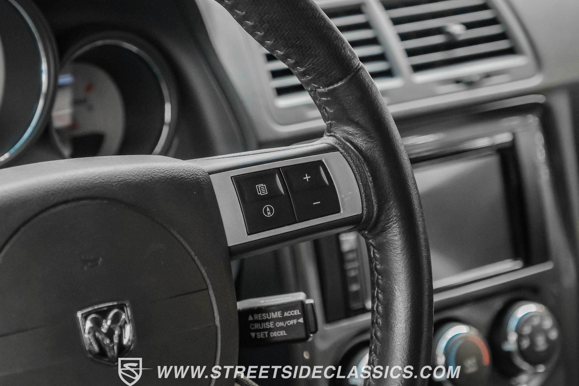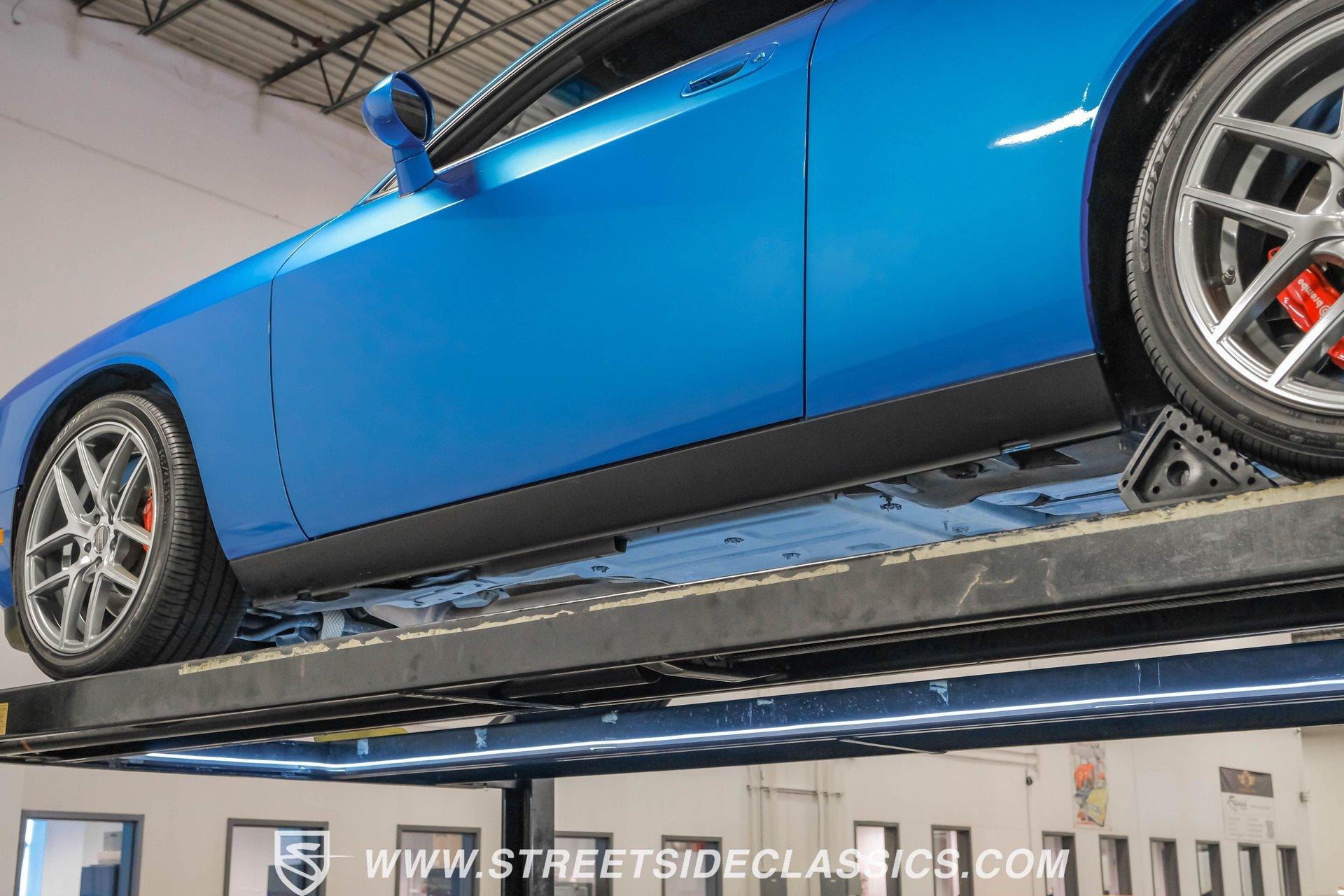 One look at this 2009 Dodge Challenger and you know it's a future classic. The tire-burning 425 hp HEMI V8 is a true modern interpretation of the best from the muscle car era, but now it comes with A/C, leather seats, sat-nav, and plenty of other comfortable features. This ultra-low mileage example is the perfect car to enjoy today and appreciate tomorrow. B5 Blue is not only a great factory color, but it is a throwback to the High Impact colors that helped make these Mopar muscle cars so striking back in the height of the muscle car era. This color is very rare as well. Only 236 B5 Blue SRT8 were produced for the 2009 model year, and of these, only 153 B5 colored SRT8 6-speeds were made according to ChallengerTalk.com. It is not just the paint that makes this one so special; it is the exceptional level of care. Averaging only less than 2,500 miles annually means this was someone's baby, and it shows in every inch of this car's shining presentation. Being a top-of-the-line SRT model, it is equipped with chin spoiler, classic fuel filler cap, carbon fiber hood stripes, HEMI vented hood complete w/callouts and the full-length spoiler - all clear indications this is a muscle car for the modern era. Dodge got the details right by striking a perfect balance between retro design and modern attraction. The wheels on this rare Challenger have been upgraded to 20-inch Milanni wheels wrapped with 245/45R20 Goodyear radials. Inside, the leather bucket seats with comfortable suede inserts match the rest of this deep black interior. It really lets you know this Challenger has a dark side, and there is even an aggressive blue streak across the seatbacks to back it all up. This is a loaded modern muscle machine with all the features you would expect, including power heated seats, heated mirrors, power windows, power locks, keyless entry and ignition, cruise control, dual airbags and side airbags. The AM/FM/CD/XM Bluetooth stereo is a premium touchscreen unit that includes everything from satellite navigation to a subwoofer speaker system. Highlights: Rare and desirable B5 Blue 32,196 miles from new 6.1-litre HEMI 425 Horsepower 6-Speed manual transmission 20-Inch Milanni wheels Goodyear Eagle RS tires Brembo 4-wheel disc brakes Leather interior Satellite navigation The SRT8 package includes a 6.1-liter HEMI V8 under the hood that growls to life like no other car out there, and with 425 hp and 420 lb-ft of torque straight from the factory, this one will outrun its muscle car ancestry. But serious power is only part of this car's story. As a modern computer-controlled and fuel-injected powerplant, it can settle into everyday life with ease. The smooth shifting 6-speed manual transmission makes this muscle car a thrill to drive. Great driving features such as the fully independent suspension, power steering, and big Brembo four-wheel disc brakes w/ABS add to the pleasurable driving experience. With low miles, a high level of quality and originality, as well as being one of only a handful of cars produced in classic B5 Blue, this 2009 Dodge Challenger SRT-8 is a rare and highly desirable example, presenting a unique opportunity to own one of the best of the breed. Call today!