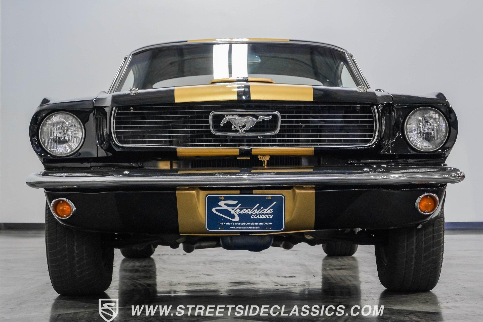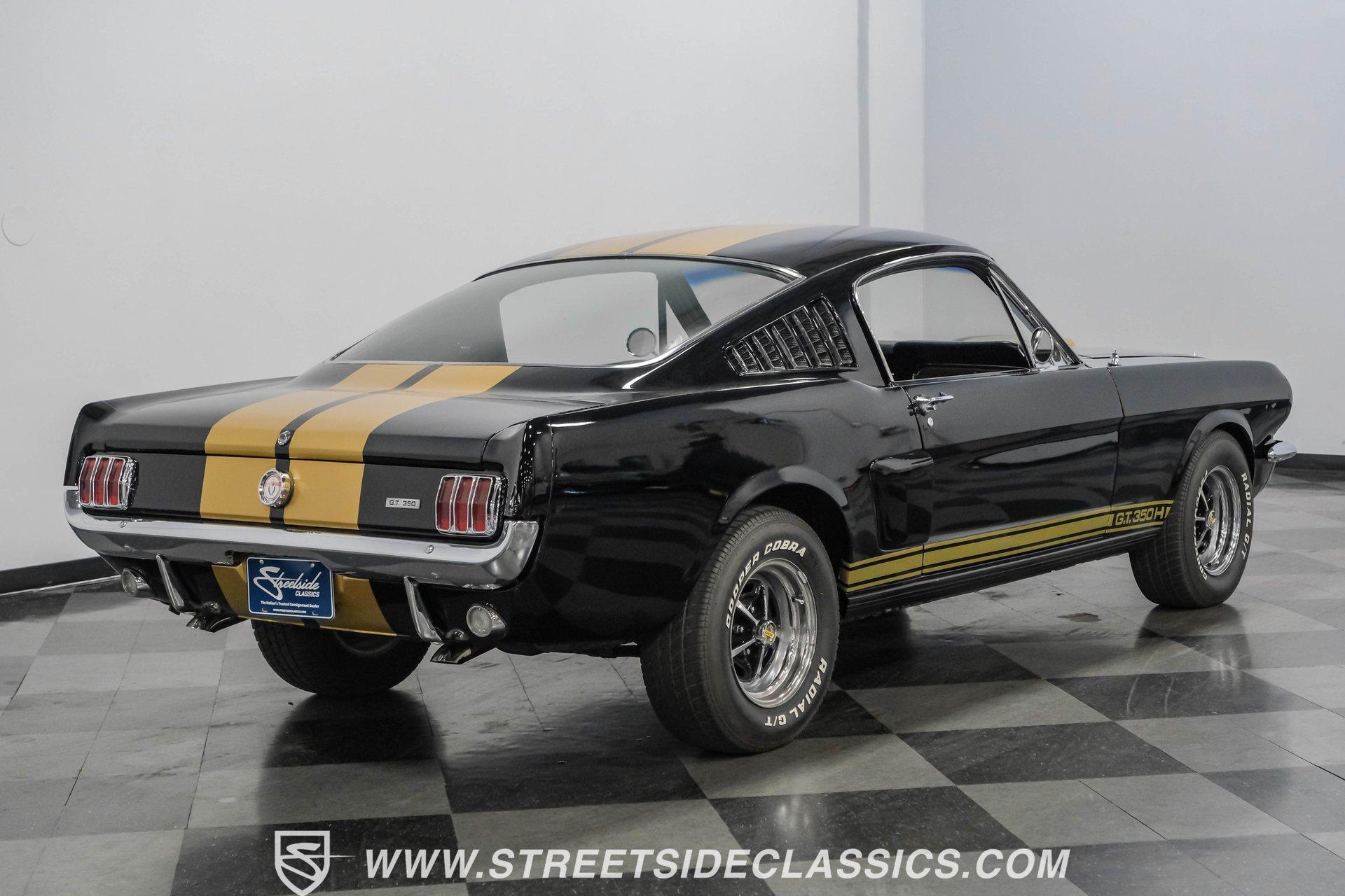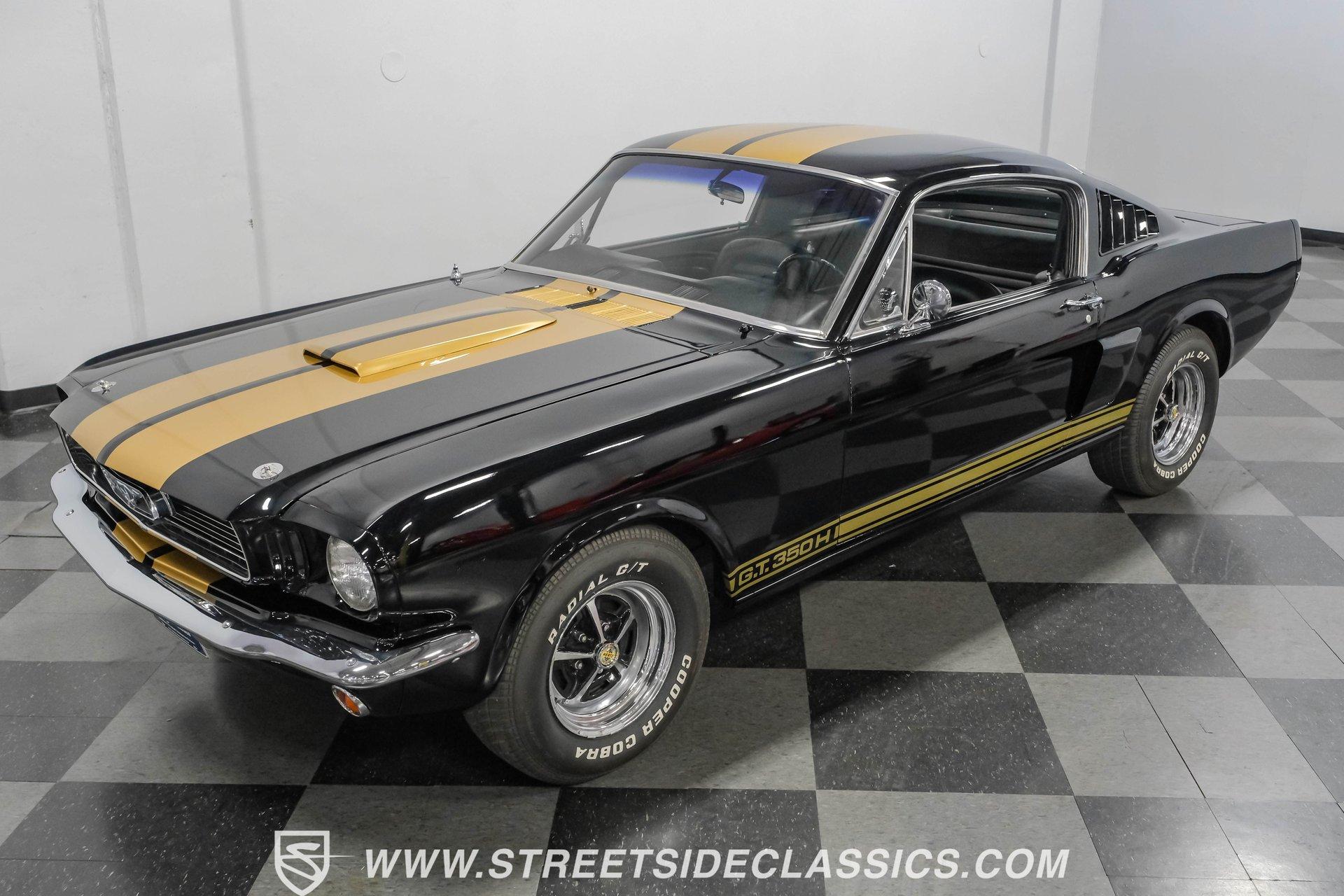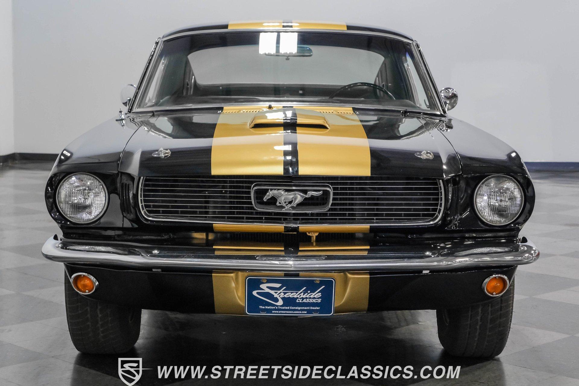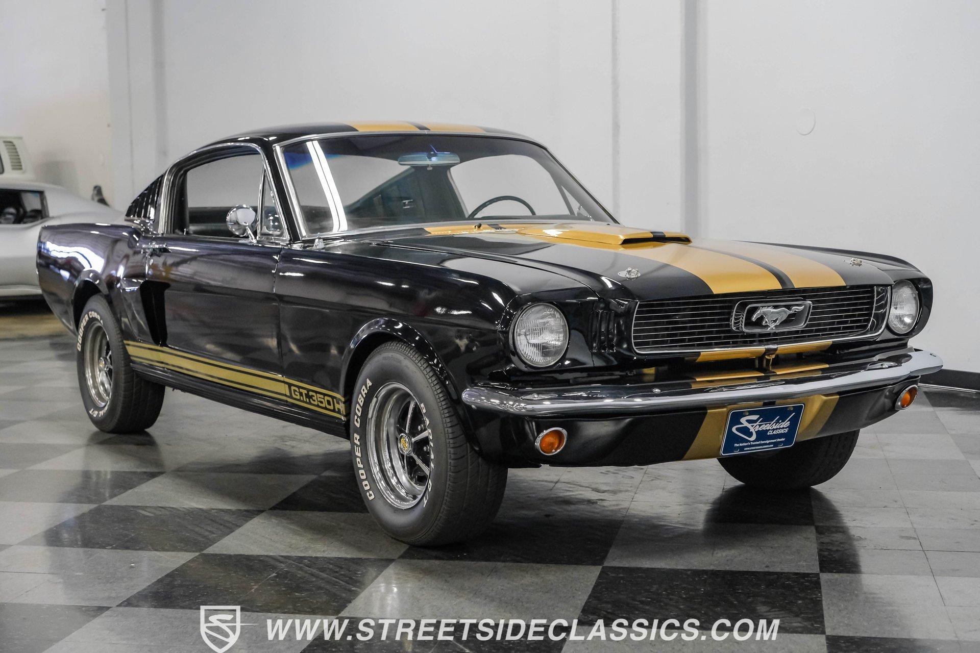Ask any group of classic Mustang enthusiasts which of the model's early offerings was the most visually pleasing, and you're bound to hear a lot of them reply without hesitation that the first-generation fastback takes that honor. When it was first released, its clean, flowing lines and lean but robust overall size couldn't help but attract attention. This 1966 Ford Mustang Shelby GT350H Tribute is an outstanding example of the model in upgraded Shelby form. It features high-impact black paint with accurately rendered gold stripes, creating a magnetic color combination, while its louvered rear window and side scoops provide a well-deserved shout-out to its top-tier counterparts. Take a closer look and you'll appreciate the craftsmanship that went into the modifications. This is a great-looking fastback. Climb inside and you'll appreciate the overall quality of the black vinyl interior. The bucket seats are in good shape, with no tears or loose seams, and they're bracketed by door panels that are in matching condition. The dashboard shows no cracking, which is always a welcome find in a car with black upholstery, and the headliner is still nice and snug. In the back, the sport deck rear seat folds and unfolds with ease, creating either additional seating or storage space at your choosing. You'll find a set of Rally Pac gauges perched on the steering column to monitor conditions on the road, and an aftermarket AM/FM/CD stereo is on hand to provide the soundtrack for your road-bound adventures. Beneath the scooped hood, you'll find a period-correct 289-cubic-inch V8, an engine that gained a well-deserved reputation for reliability, with many still on the road today. True to form, it starts right up and idles smoothly and is outfitted with an aluminum Edelbrock intake manifold, shorty headers, and a Holley 4-barrel carburetor to up its power. Its dual exhaust terminates in a pair of Flowmaster mufflers, so this fastback has a deep, but not overpowering, exhaust note. It also has strong road manners. It tracks nicely as it cruises on its set of 14" wheels outfitted with Cooper Cobra tires, and its 3-speed manual transmission shifts without issue. HIGHLIGHTS 289-cubic-inch V8 engine 4-barrel Holley carburetor Edelbrock intake manifold 3-speed manual transmission Dual exhaust, with Flowmaster mufflers High-impact black exterior with contrasting stripes Super clean interior Period-correct black vinyl upholstery Bucket seats Folding sport deck rear seat Rally Pac column-mounted gauges AM/FM/CD stereo Owner's manual included Champ 500 Wheels Featuring excellent aftermarket craftsmanship inspired by one of the most iconic cars of its era, running in good form and wearing an outstanding color combination, this 1966 Ford Mustang Shelby GT350H Tribute is a fine-looking classic. It's impressively clean, both inside and out, and ready to provide its next owner with plenty of great memories behind the wheel. Call today!