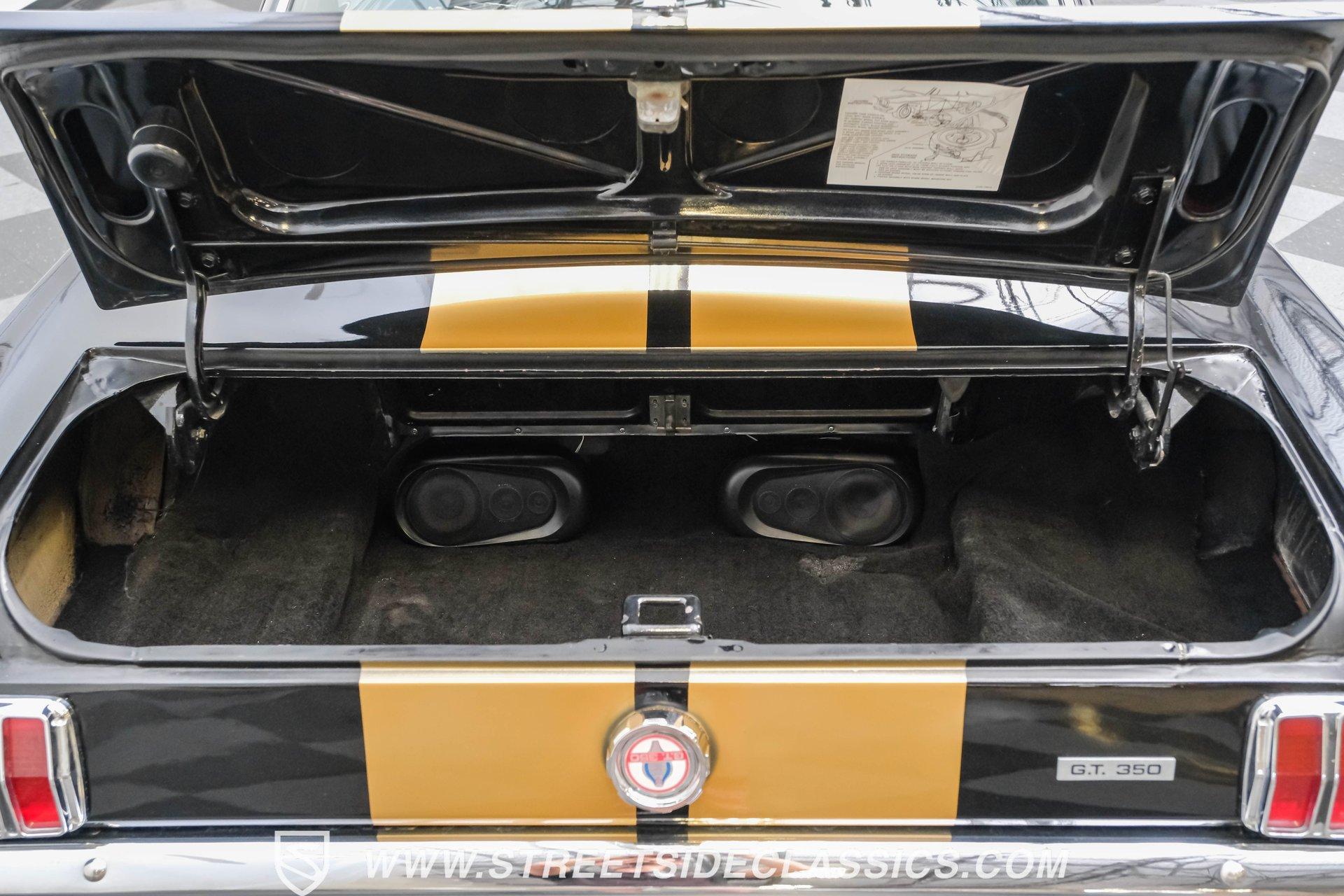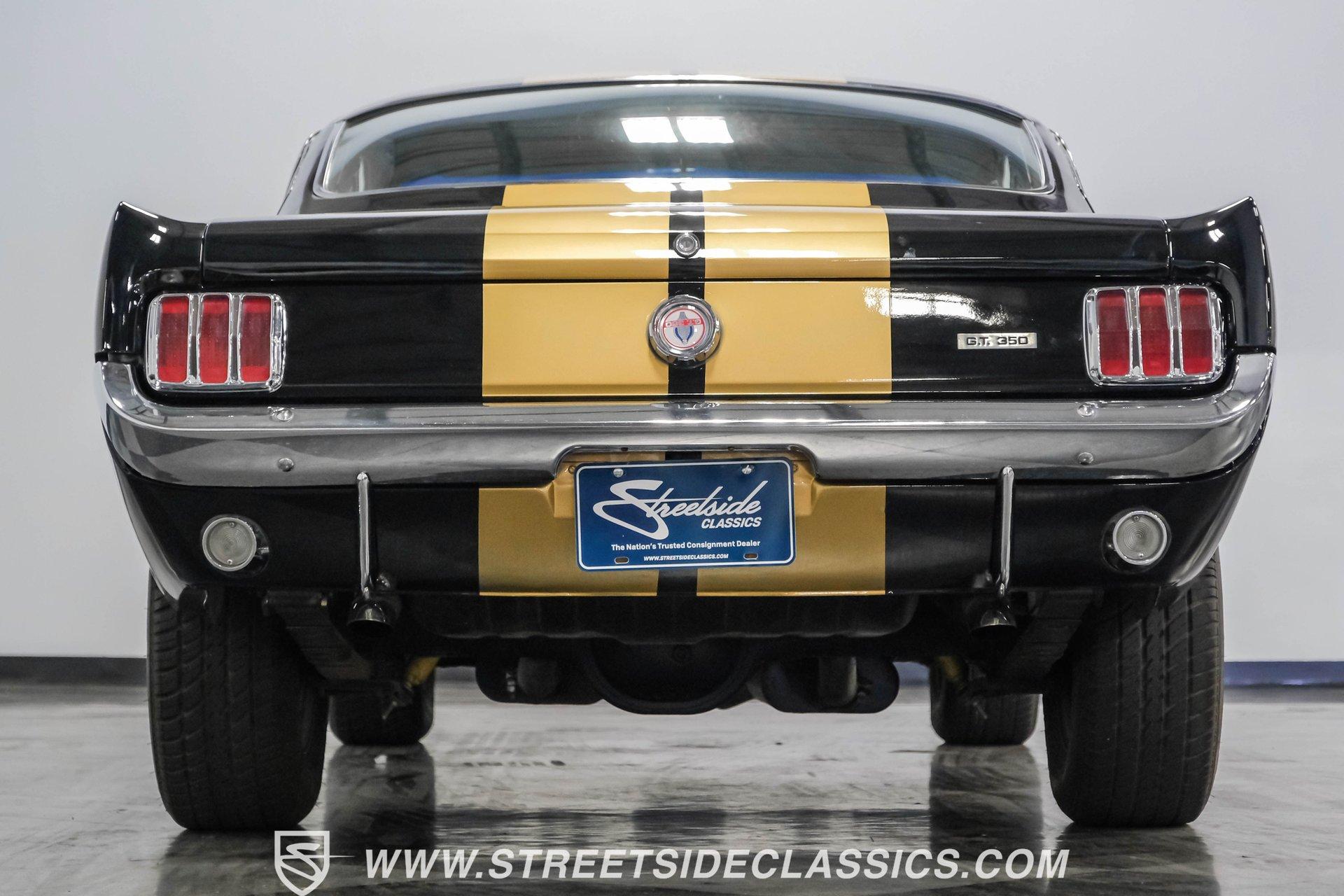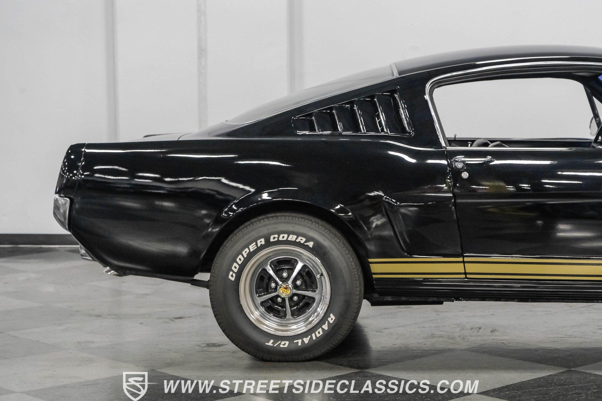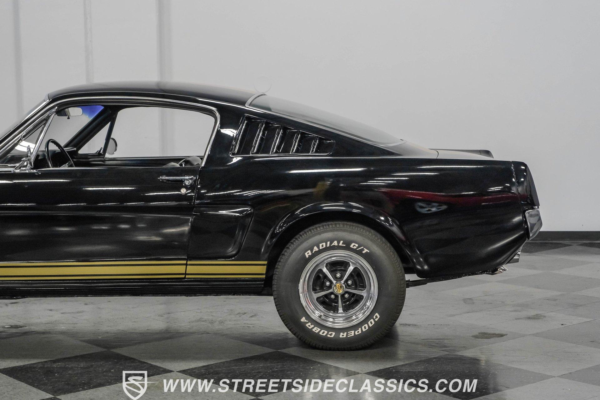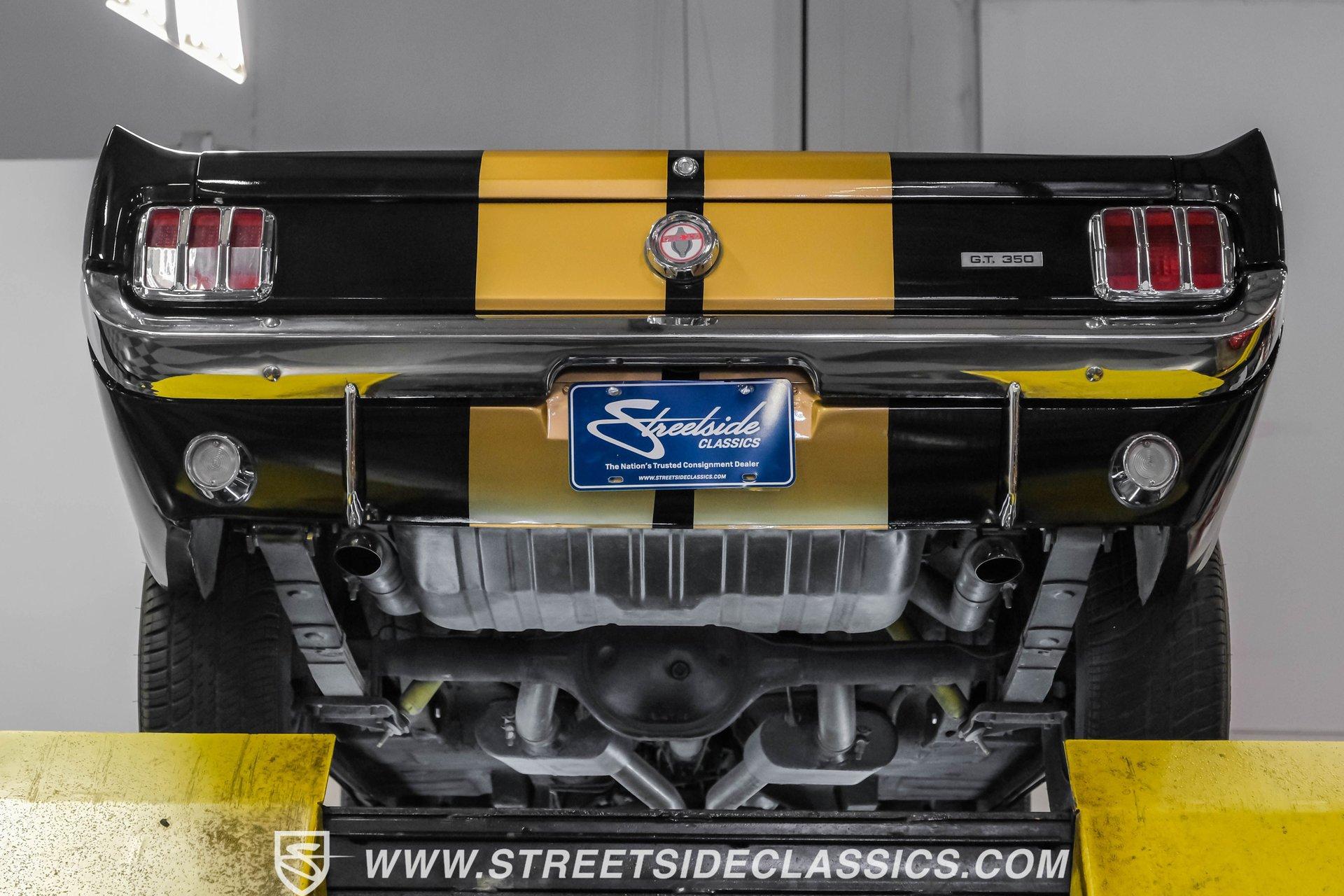 Ask any group of classic Mustang enthusiasts which of the model's early offerings was the most visually pleasing, and you're bound to hear a lot of them reply without hesitation that the first-generation fastback takes that honor. When it was first released, its clean, flowing lines and lean but robust overall size couldn't help but attract attention. This 1966 Ford Mustang Shelby GT350H Tribute is an outstanding example of the model in upgraded Shelby form. It features high-impact black paint with accurately rendered gold stripes, creating a magnetic color combination, while its louvered rear window and side scoops provide a well-deserved shout-out to its top-tier counterparts. Take a closer look and you'll appreciate the craftsmanship that went into the modifications. This is a great-looking fastback. Climb inside and you'll appreciate the overall quality of the black vinyl interior. The bucket seats are in good shape, with no tears or loose seams, and they're bracketed by door panels that are in matching condition. The dashboard shows no cracking, which is always a welcome find in a car with black upholstery, and the headliner is still nice and snug. In the back, the sport deck rear seat folds and unfolds with ease, creating either additional seating or storage space at your choosing. You'll find a set of Rally Pac gauges perched on the steering column to monitor conditions on the road, and an aftermarket AM/FM/CD stereo is on hand to provide the soundtrack for your road-bound adventures. Beneath the scooped hood, you'll find a period-correct 289-cubic-inch V8, an engine that gained a well-deserved reputation for reliability, with many still on the road today. True to form, it starts right up and idles smoothly and is outfitted with an aluminum Edelbrock intake manifold, shorty headers, and a Holley 4-barrel carburetor to up its power. Its dual exhaust terminates in a pair of Flowmaster mufflers, so this fastback has a deep, but not overpowering, exhaust note. It also has strong road manners. It tracks nicely as it cruises on its set of 14" wheels outfitted with Cooper Cobra tires, and its 3-speed manual transmission shifts without issue. HIGHLIGHTS 289-cubic-inch V8 engine 4-barrel Holley carburetor Edelbrock intake manifold 3-speed manual transmission Dual exhaust, with Flowmaster mufflers High-impact black exterior with contrasting stripes Super clean interior Period-correct black vinyl upholstery Bucket seats Folding sport deck rear seat Rally Pac column-mounted gauges AM/FM/CD stereo Owner's manual included Champ 500 Wheels Featuring excellent aftermarket craftsmanship inspired by one of the most iconic cars of its era, running in good form and wearing an outstanding color combination, this 1966 Ford Mustang Shelby GT350H Tribute is a fine-looking classic. It's impressively clean, both inside and out, and ready to provide its next owner with plenty of great memories behind the wheel. Call today!