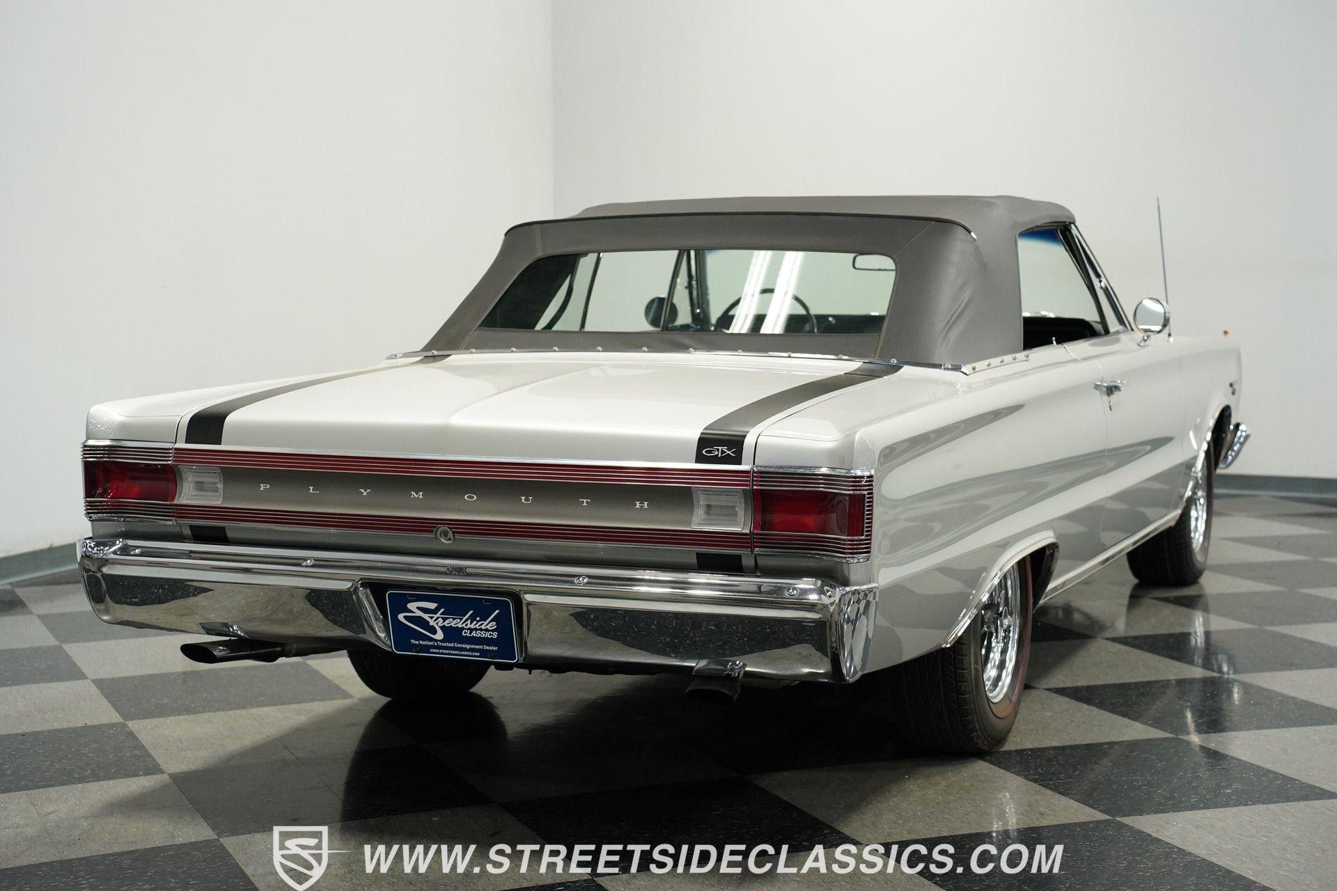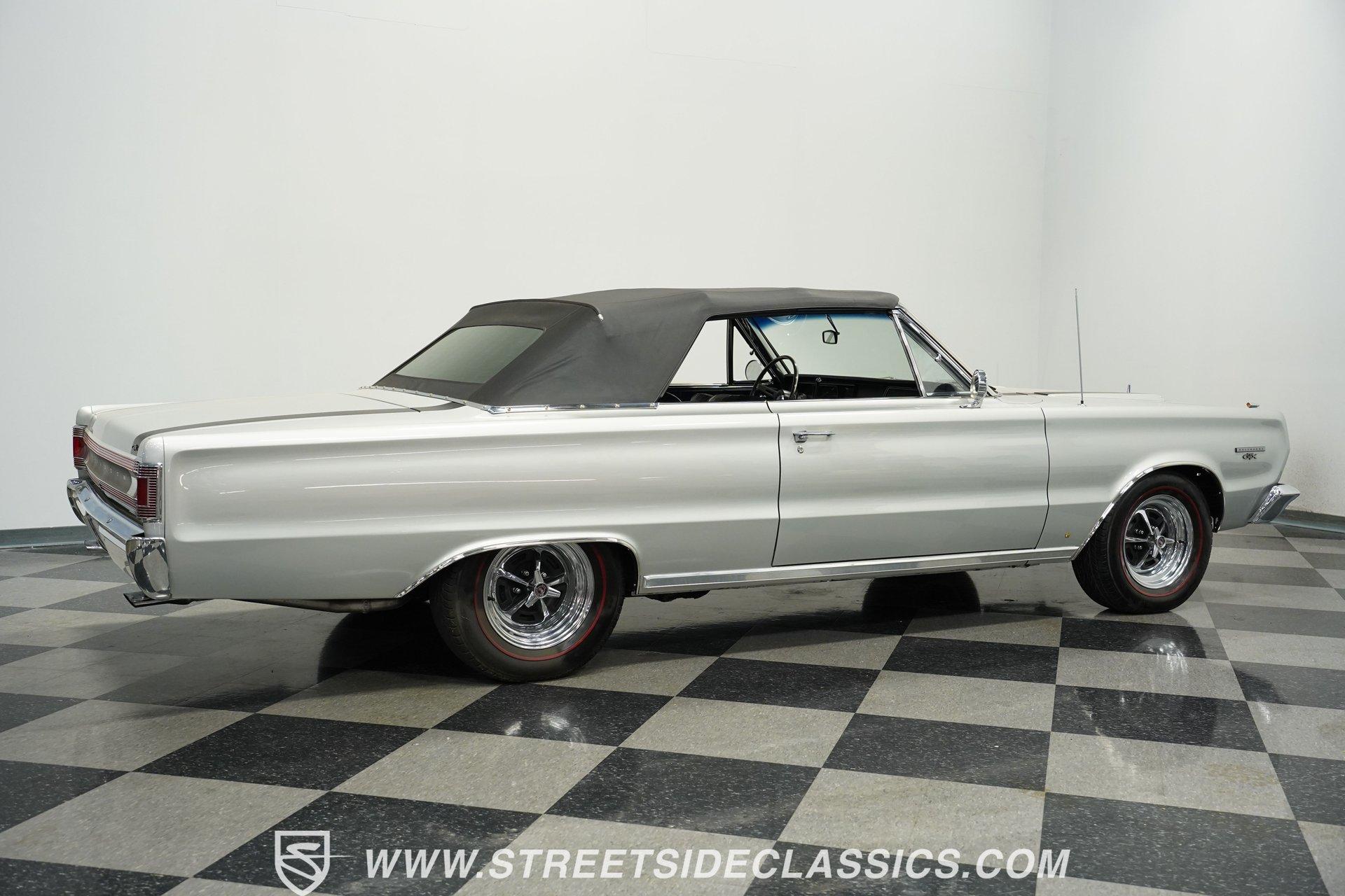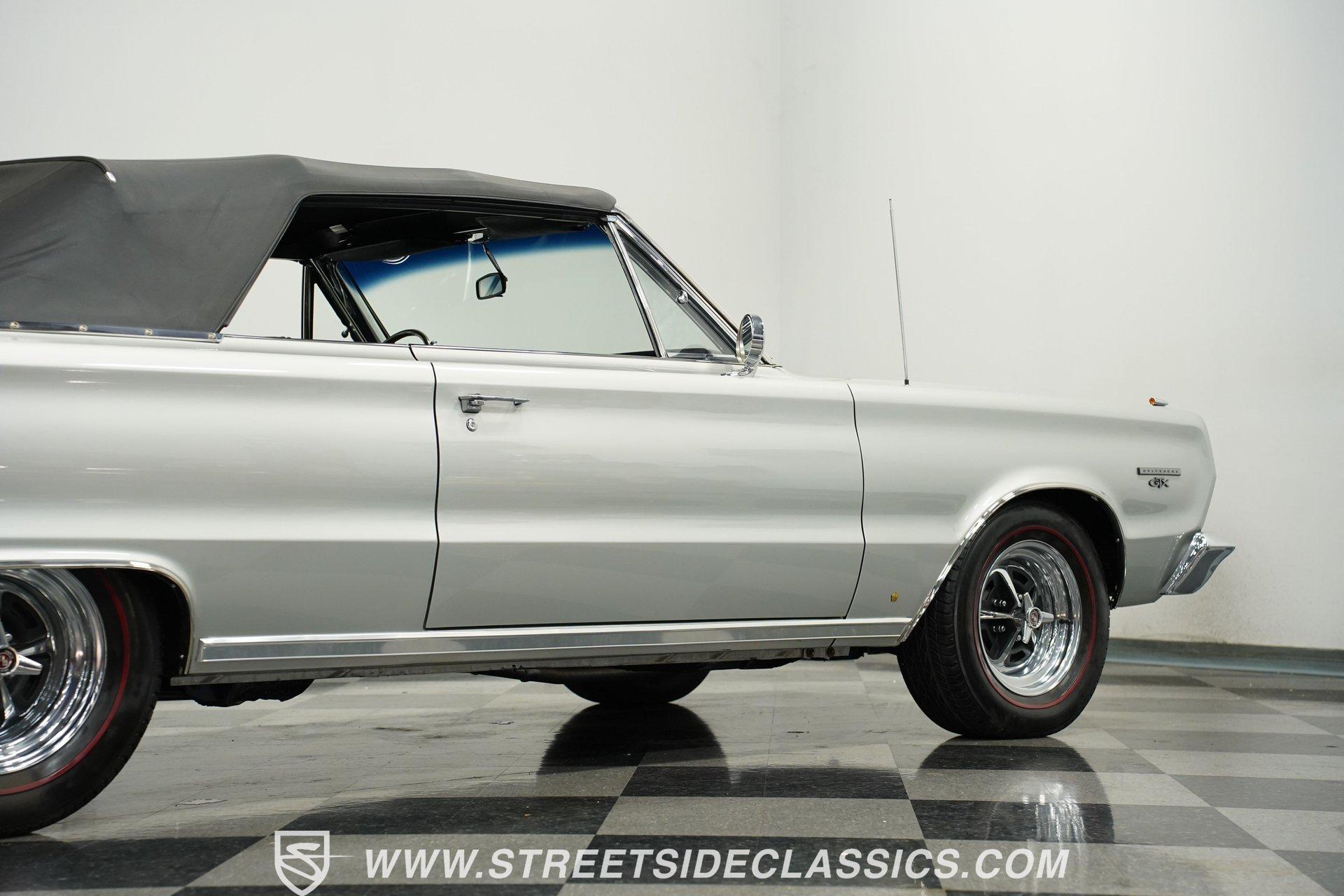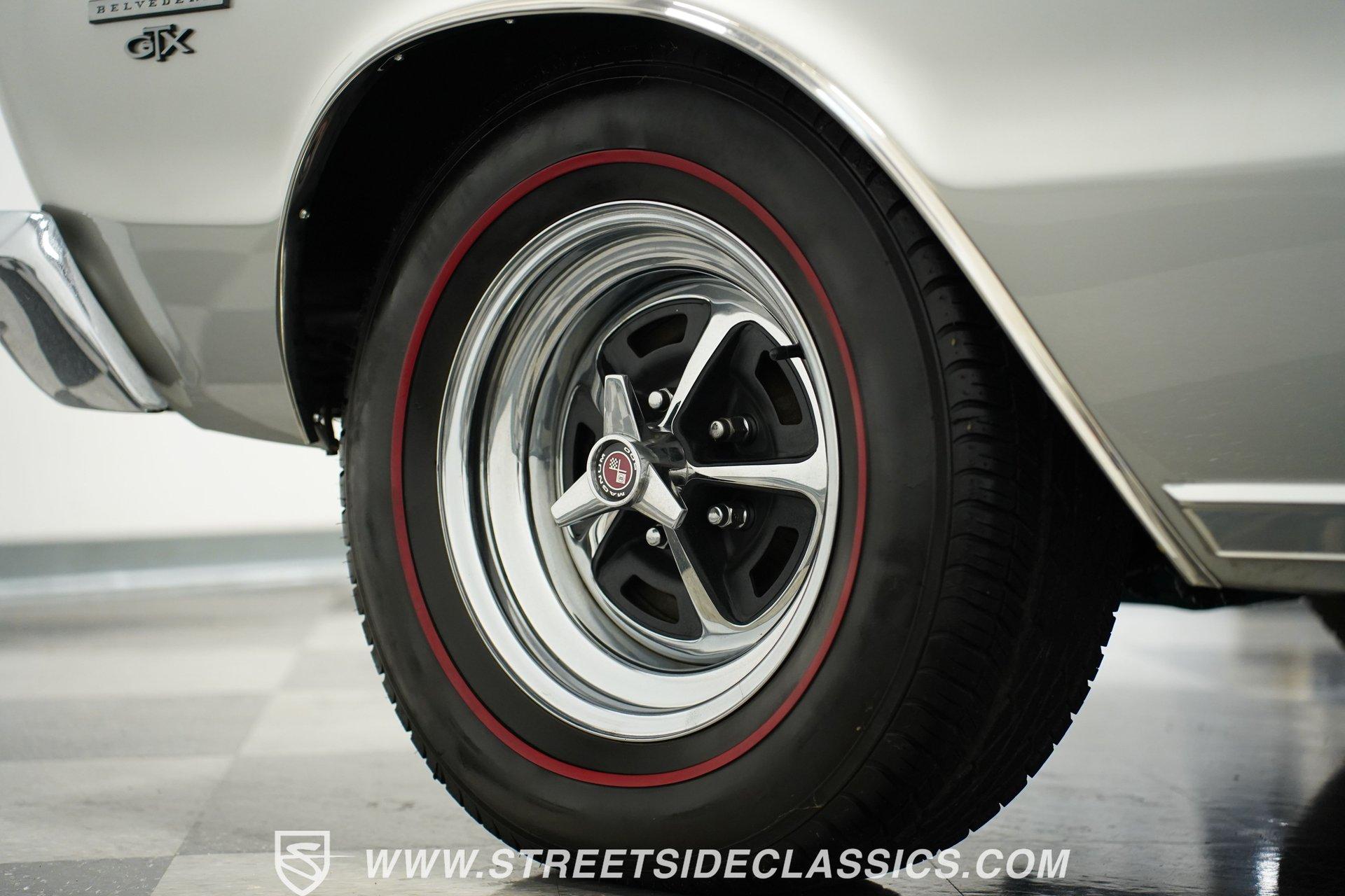 If style points were being awarded for 1960s muscle cars, then this 1967 Plymouth Belvedere GTX 440 Convertible would be at the top of the list. A sub-model of the Belvedere, the GTX debuted in 1967 and took everything Mopar fans liked about the base car and ratcheted it up to muscle car status. Fully repainted in its original Silver Metallic and complemented by dual full-length black racing stripes, this droptop looks ready to go from any angle, and with as few as 680 GTX convertibles made for its inaugural year, you're not likely to see another one of these any time soon. Inside, we find out why the GTX was oftentimes referred to as "the gentleman's muscle car." Restored to its factory black vinyl, its chrome trim gives this car an upmarket vibe. Its three-spoke, wood-rimmed, power-assisted steering wheel sits just ahead of a five-pod rectangular gauge cluster, featuring a large, easy-to-read 150 mph speedometer that takes center stage, while a pair of auxiliary gauges flank it on either side. An original-looking AM radio works well, while a rotary-knob-based setup is used for HVAC controls to keep things simple and easy. Under that expansive scooped hood, we find a (believed) original 440 cubic-inch V-8 engine. Topped with a single four-barrel Carter carburetor, this big V-8 is believed also to contain its stock internals. That massive power is routed through an A727 TorqueFlite three-speed automatic transmission before heading out to an 8.75-inch rear end that houses a set of 3.23:1 gears. Those ponies are transferred to the pavement via a set of 15-inch Magnum 500 wheels shod in 255/70R-15 Redline tires. First Year GTX One of Approx 680 Convertibles Made for 1967 Numbers Matching 440 CID V8 Believed Stock Internals A727 TorqueFlite Carter Four Barrel Carb 3.23 Rear Gears Power Brakes Power Steering Magnum 500 Wheels Redline Tires Full Silver Metallic Repaint Black Racing Stripes Power Top This 1967 Plymouth Belvedere GTX 440 Convertible comes equipped with a factory heavy-duty suspension. Featuring heavy-duty shocks, six-leaf rear springs, front torsion bars, and ball joints, this optional setup enables the GTX to handle more aggressively and ride better than many of its contemporaries. If you want a Golden Age numbers-matching muscle car that is as scarce as it is fun, and also happens to have one of the coolest names in the history of the autoverse, this is the one you've been waiting for. Don't wait, call today!