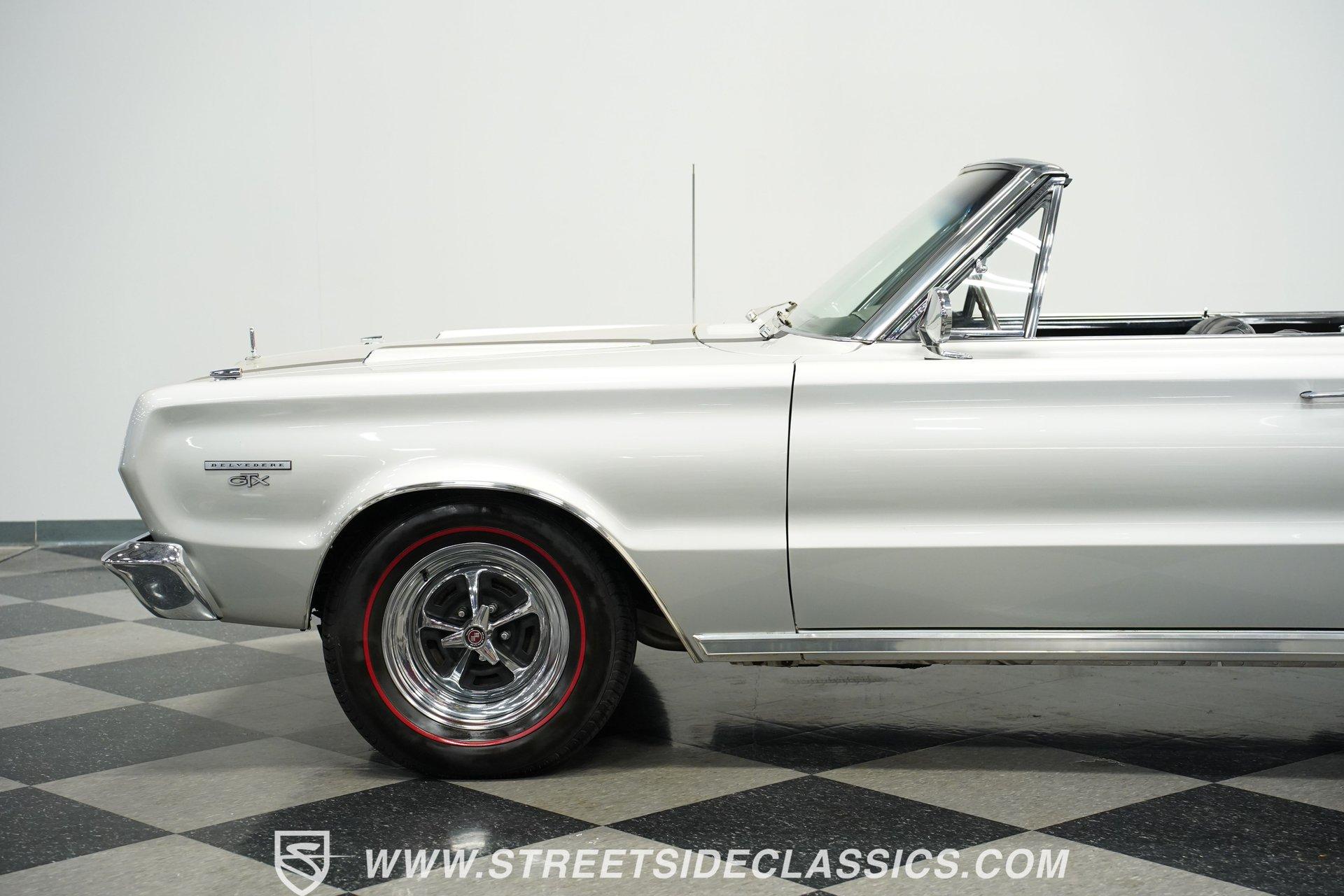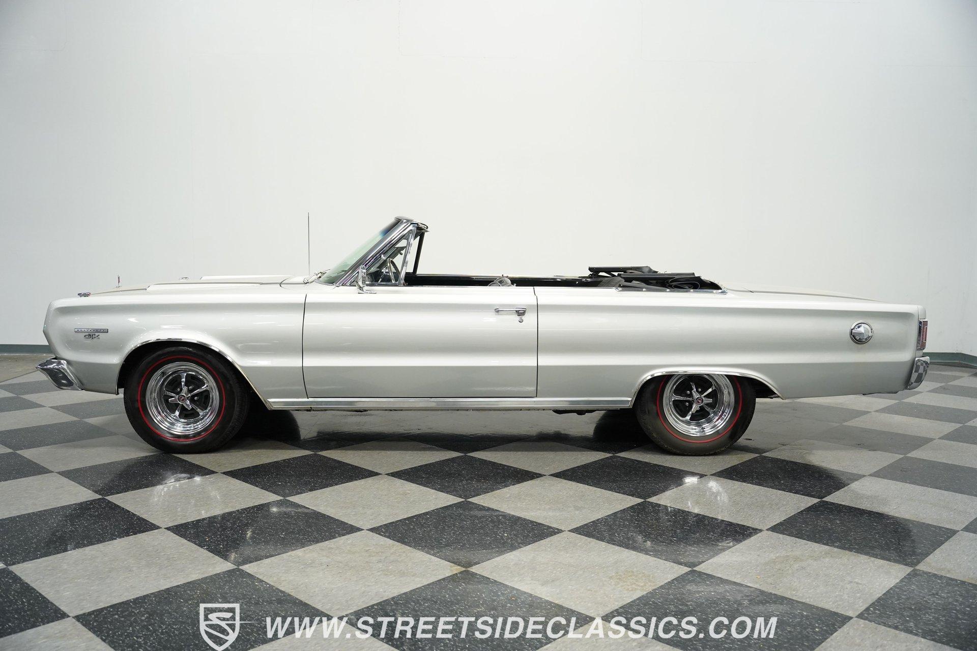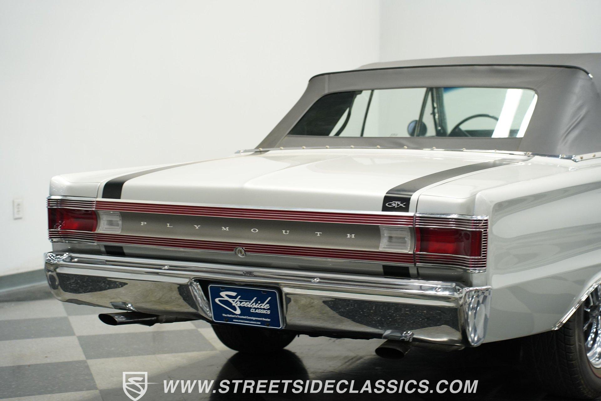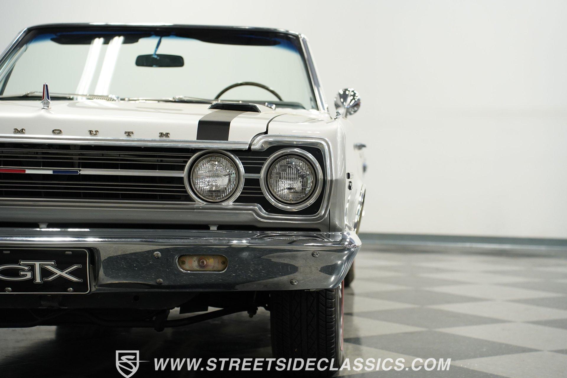 If style points were being awarded for 1960s muscle cars, then this 1967 Plymouth Belvedere GTX 440 Convertible would be at the top of the list. A sub-model of the Belvedere, the GTX debuted in 1967 and took everything Mopar fans liked about the base car and ratcheted it up to muscle car status. Fully repainted in its original Silver Metallic and complemented by dual full-length black racing stripes, this droptop looks ready to go from any angle, and with as few as 680 GTX convertibles made for its inaugural year, you're not likely to see another one of these any time soon. Inside, we find out why the GTX was oftentimes referred to as "the gentleman's muscle car." Restored to its factory black vinyl, its chrome trim gives this car an upmarket vibe. Its three-spoke, wood-rimmed, power-assisted steering wheel sits just ahead of a five-pod rectangular gauge cluster, featuring a large, easy-to-read 150 mph speedometer that takes center stage, while a pair of auxiliary gauges flank it on either side. An original-looking AM radio works well, while a rotary-knob-based setup is used for HVAC controls to keep things simple and easy. Under that expansive scooped hood, we find a (believed) original 440 cubic-inch V-8 engine. Topped with a single four-barrel Carter carburetor, this big V-8 is believed also to contain its stock internals. That massive power is routed through an A727 TorqueFlite three-speed automatic transmission before heading out to an 8.75-inch rear end that houses a set of 3.23:1 gears. Those ponies are transferred to the pavement via a set of 15-inch Magnum 500 wheels shod in 255/70R-15 Redline tires. First Year GTX One of Approx 680 Convertibles Made for 1967 Numbers Matching 440 CID V8 Believed Stock Internals A727 TorqueFlite Carter Four Barrel Carb 3.23 Rear Gears Power Brakes Power Steering Magnum 500 Wheels Redline Tires Full Silver Metallic Repaint Black Racing Stripes Power Top This 1967 Plymouth Belvedere GTX 440 Convertible comes equipped with a factory heavy-duty suspension. Featuring heavy-duty shocks, six-leaf rear springs, front torsion bars, and ball joints, this optional setup enables the GTX to handle more aggressively and ride better than many of its contemporaries. If you want a Golden Age numbers-matching muscle car that is as scarce as it is fun, and also happens to have one of the coolest names in the history of the autoverse, this is the one you've been waiting for. Don't wait, call today!