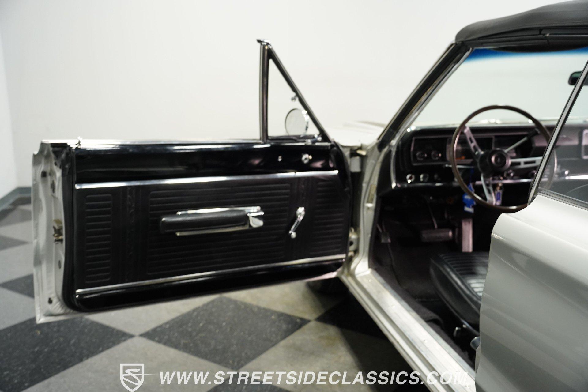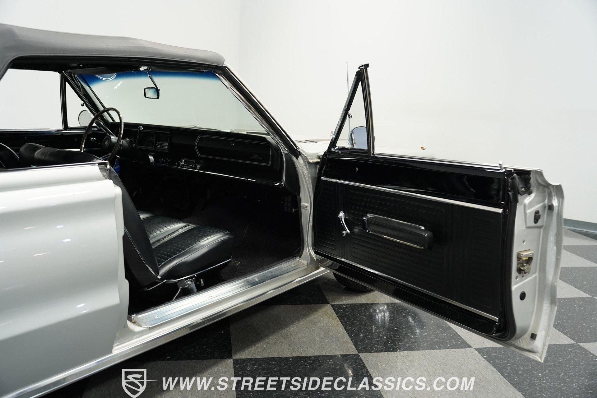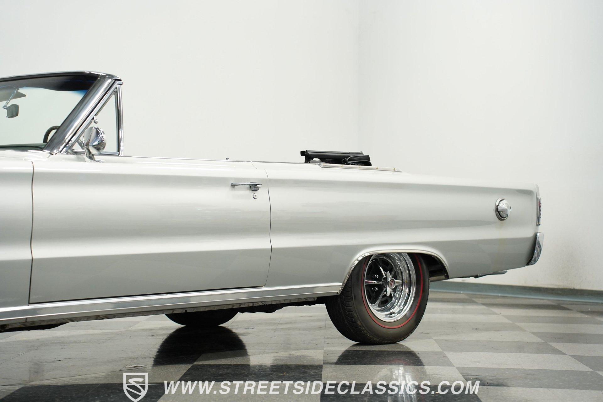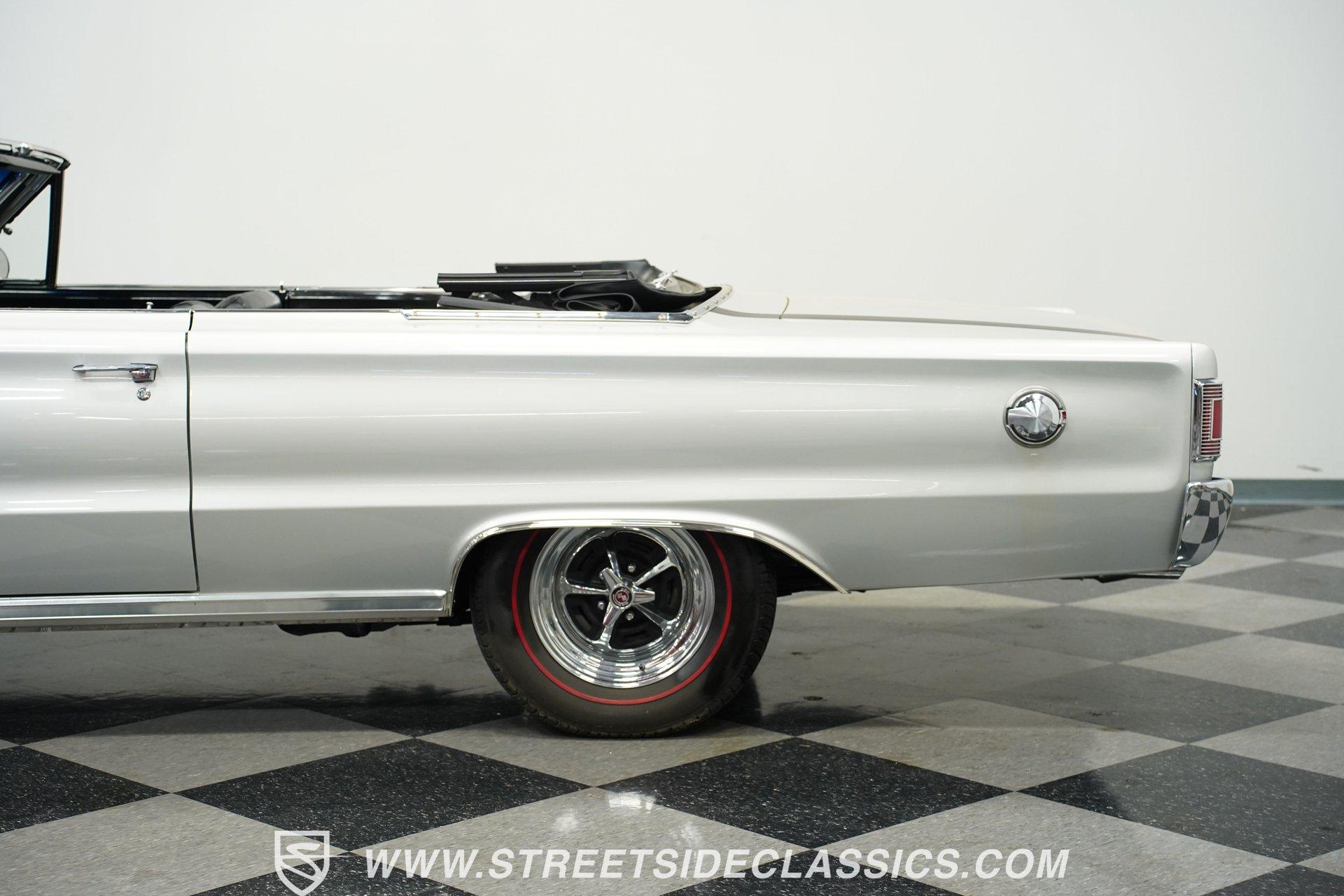 If style points were being awarded for 1960s muscle cars, then this 1967 Plymouth Belvedere GTX 440 Convertible would be at the top of the list. A sub-model of the Belvedere, the GTX debuted in 1967 and took everything Mopar fans liked about the base car and ratcheted it up to muscle car status. Fully repainted in its original Silver Metallic and complemented by dual full-length black racing stripes, this droptop looks ready to go from any angle, and with as few as 680 GTX convertibles made for its inaugural year, you're not likely to see another one of these any time soon. Inside, we find out why the GTX was oftentimes referred to as "the gentleman's muscle car." Restored to its factory black vinyl, its chrome trim gives this car an upmarket vibe. Its three-spoke, wood-rimmed, power-assisted steering wheel sits just ahead of a five-pod rectangular gauge cluster, featuring a large, easy-to-read 150 mph speedometer that takes center stage, while a pair of auxiliary gauges flank it on either side. An original-looking AM radio works well, while a rotary-knob-based setup is used for HVAC controls to keep things simple and easy. Under that expansive scooped hood, we find a (believed) original 440 cubic-inch V-8 engine. Topped with a single four-barrel Carter carburetor, this big V-8 is believed also to contain its stock internals. That massive power is routed through an A727 TorqueFlite three-speed automatic transmission before heading out to an 8.75-inch rear end that houses a set of 3.23:1 gears. Those ponies are transferred to the pavement via a set of 15-inch Magnum 500 wheels shod in 255/70R-15 Redline tires. First Year GTX One of Approx 680 Convertibles Made for 1967 Numbers Matching 440 CID V8 Believed Stock Internals A727 TorqueFlite Carter Four Barrel Carb 3.23 Rear Gears Power Brakes Power Steering Magnum 500 Wheels Redline Tires Full Silver Metallic Repaint Black Racing Stripes Power Top This 1967 Plymouth Belvedere GTX 440 Convertible comes equipped with a factory heavy-duty suspension. Featuring heavy-duty shocks, six-leaf rear springs, front torsion bars, and ball joints, this optional setup enables the GTX to handle more aggressively and ride better than many of its contemporaries. If you want a Golden Age numbers-matching muscle car that is as scarce as it is fun, and also happens to have one of the coolest names in the history of the autoverse, this is the one you've been waiting for. Don't wait, call today!