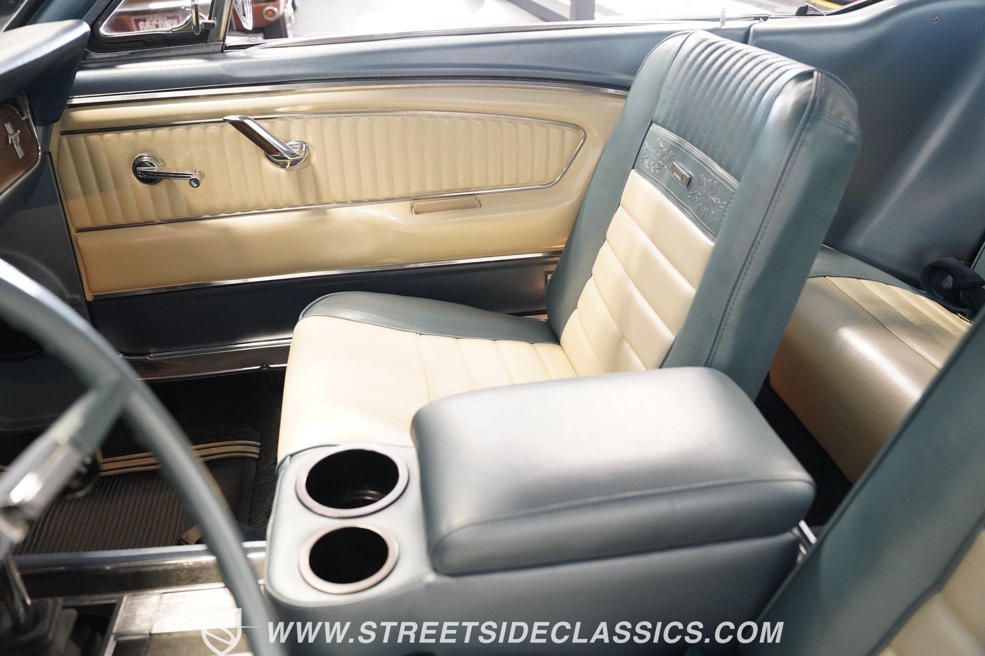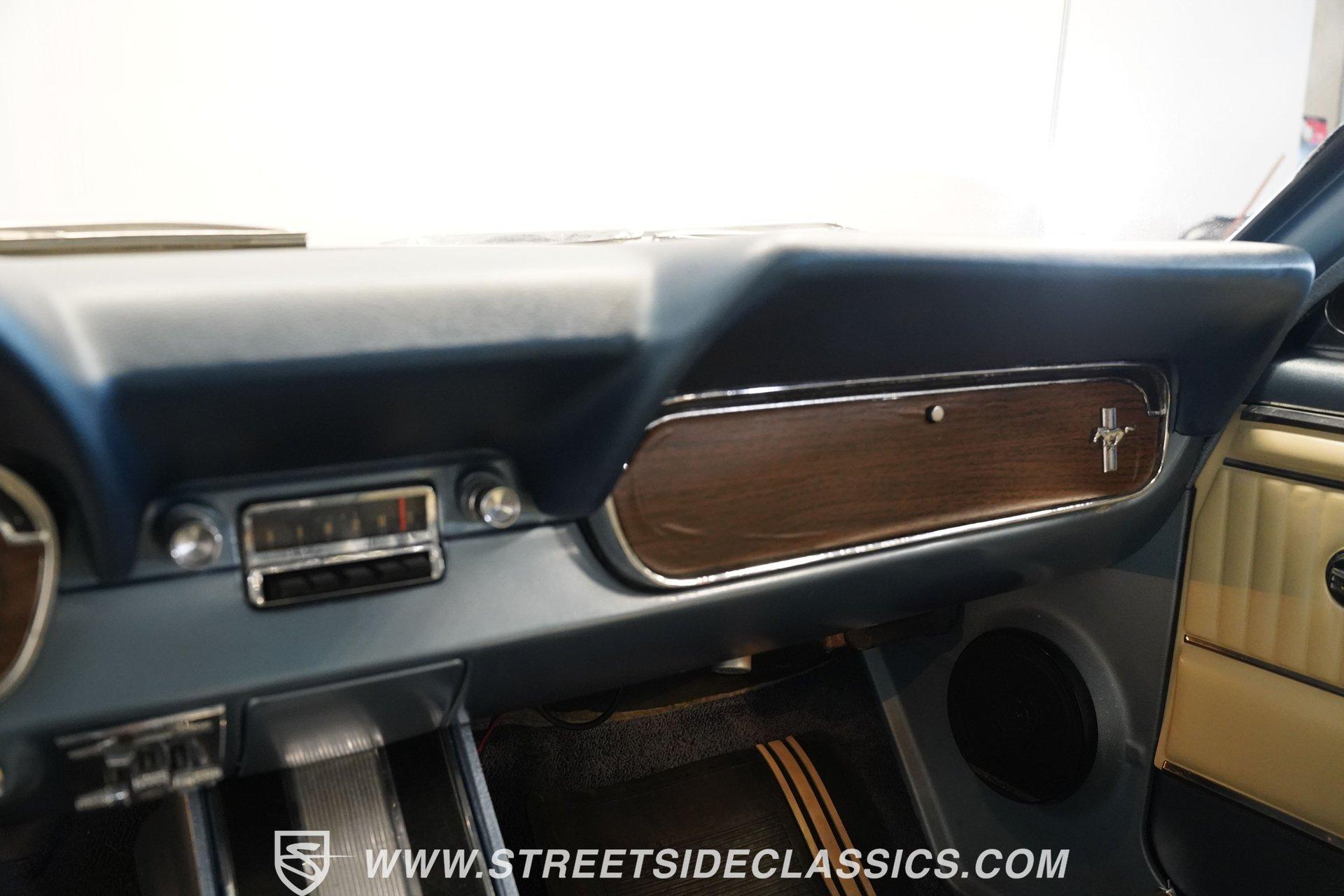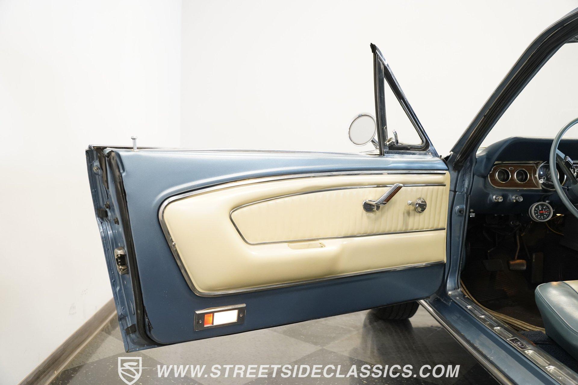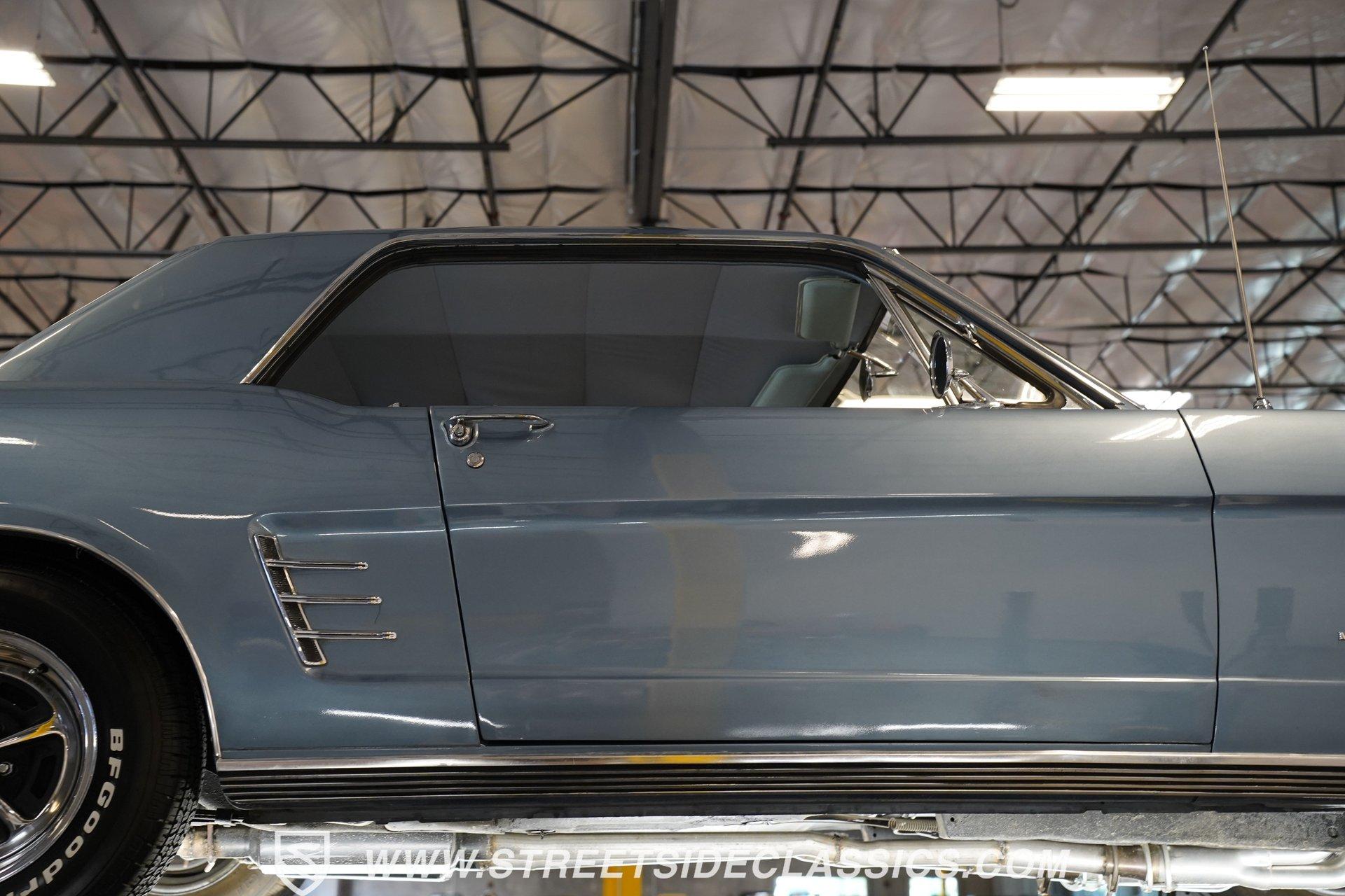 Arguably, the only thing that may make rowing through the gears of a first-generation Pony Car is driving behind the wheel of a classic muscle car that has been the beneficiary of a few modern upgrades. This particular 1966 Ford Mustang comes decked out in a full Silver Blue repaint, which complements the GT-style front grille, fog lights, and rear valance. And as pretty as this Mustang is on the surface, it is what lies under that shimmering exterior that makes this car a genuine Grand Tourer. Inside, we find a gorgeous blue and white Pony Interior. An aftermarket center console provides storage, a comfortable armrest, and a pair of cup holders. The GT theme is continued with a five-pod gauge cluster, along with a column-mounted tachometer offset to the left of the steering wheel. A sneaky retro-style head unit resembles an AM radio, but actually offers satellite and Bluetooth connectivity, a CD player, and an AUX input providing all the soundtrack options anyone could wish for. The real soundtrack, however, is situated beneath that steel hood. A Blueprint Engines 347 cubic-inch stroker V-8 engine. Equipped with Blueprint aluminum heads, a performance-oriented cam, a Holley four-barrel carburetor, a Blueprint aluminum intake manifold, and long-tube headers, this built small block has been dyno-proven to produce 416 horsepower and 433 pound-feet of torque at the rear wheels. That massive power is routed through a Tremec TR3551 five-speed manual transmission before being sent out to an eight-inch rear end. HIGHLIGHTS: Full Silver Blue Repaint GT Style Grille GT Style Fog Lights GT Style Rear Valance Blueprint 347 Stroker V8 Holley Four Barrel Blueprint Aluminum Heads Performance Cam Blueprint Aluminum Intake Long Tube Headers FlowMasters 416 RWHP 433 RWTQ Tremec Five Speed Manual Magnum 500 Wheels BFG Tires Pony Interior GT Style Gauges Column Mounted Tach AM/FM/CD/AUX/Satellite Bluetooth Center Console Cupholders This 1966 Ford Mustang rides on a suspension consisting of an independent front and a solid axle, leaf spring rear. The front end benefits from the addition of a beefed-up sway bar and a strut tower brace. Trick 14-inch Magnum 500 wheels are shod in 215/70R-14 BFGoodrich rubber, providing a solid contact patch for all those galloping ponies under the hood. If you've never experienced the thrill of a classic Pony Car, this restomodded Mustang will help you make up for lost time and then some. But don't wait, call today!